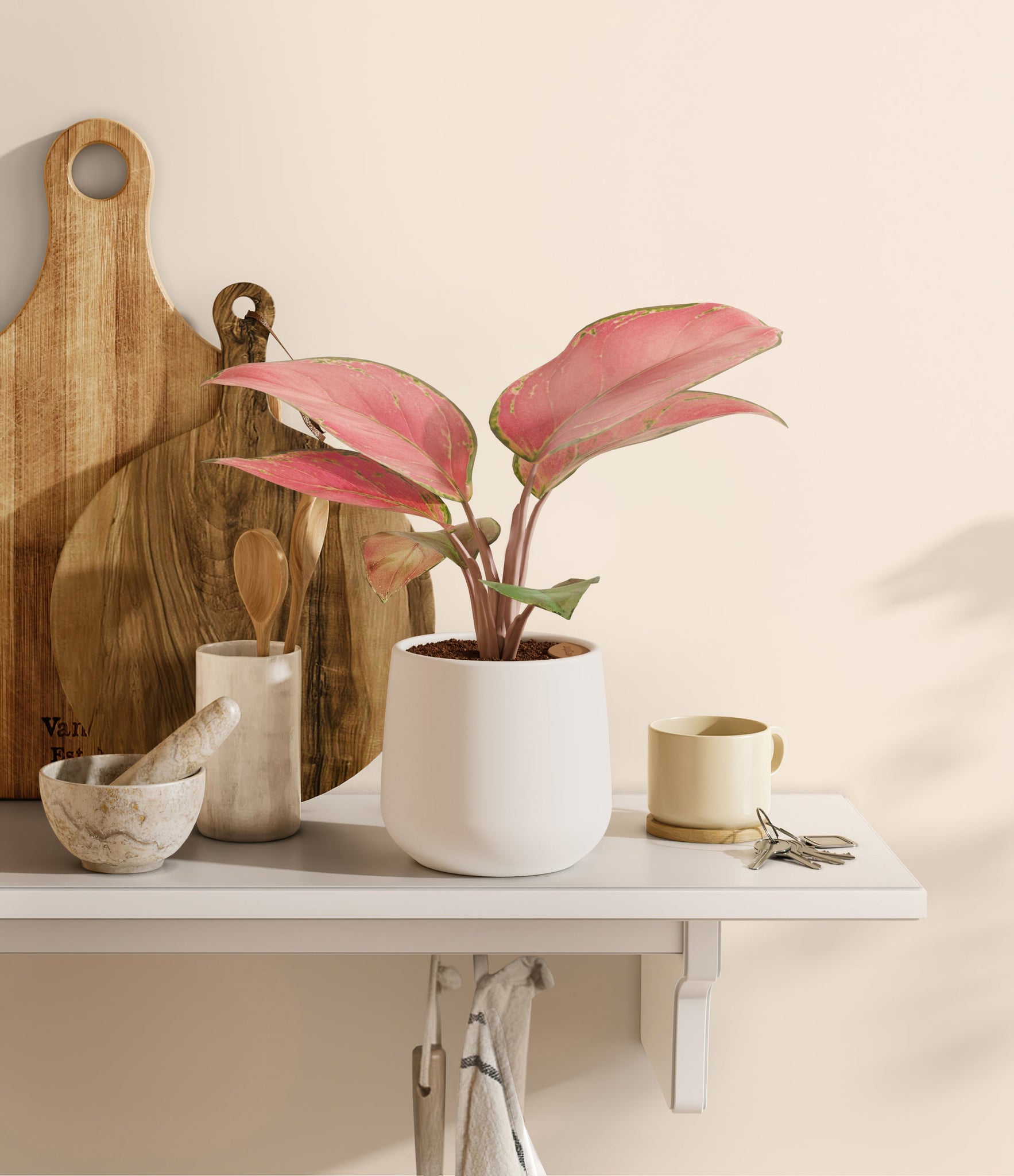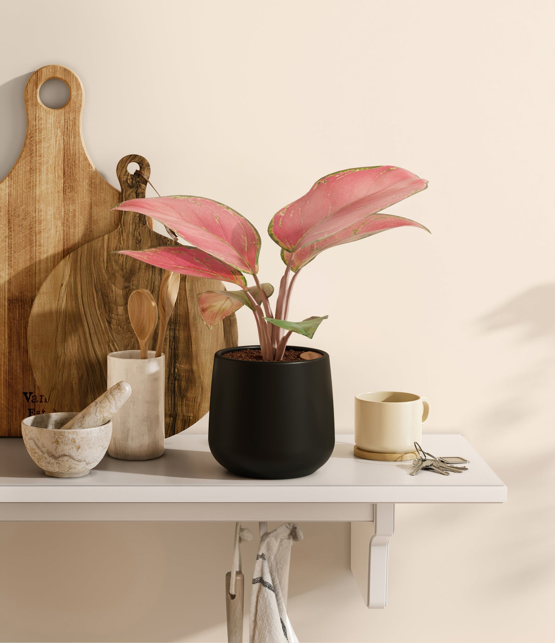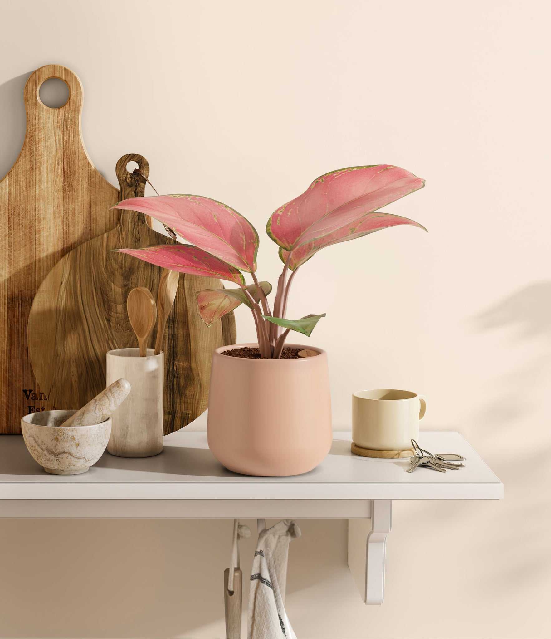 Originating from Southeast Asia's tropical forests, Aglaonema Beauty, also known as Pink Chinese Evergreen, emerges as a vibrant gem that captivates with its striking pink foliage. Adorned with a rich tapestry of pink and subtle hints of green, it transforms any space into a serene haven of color. This botanical treasure is not only a visual delight but also a testament to nature's resilience, requiring minimal care and resonating with plant lovers at every skill level.