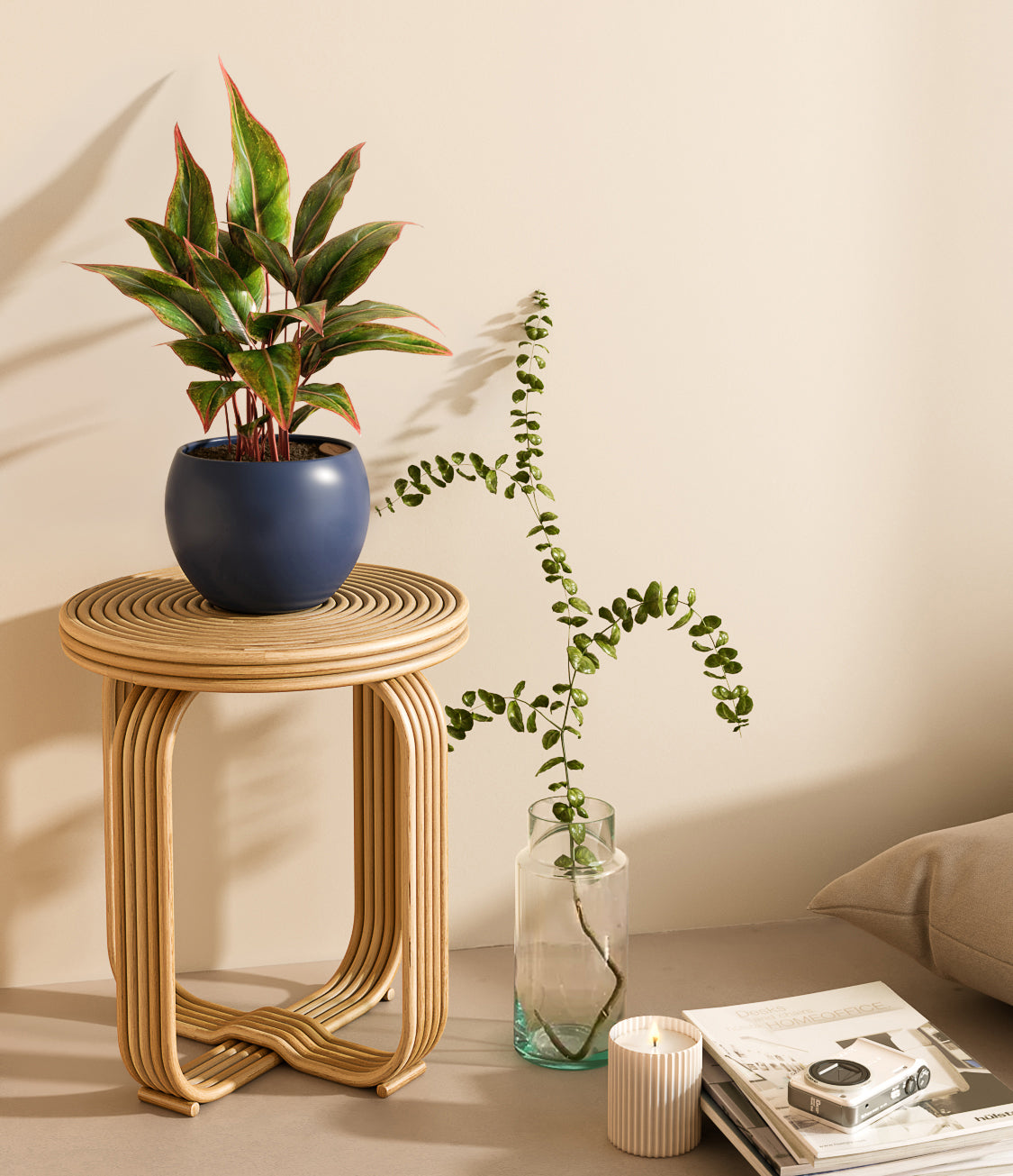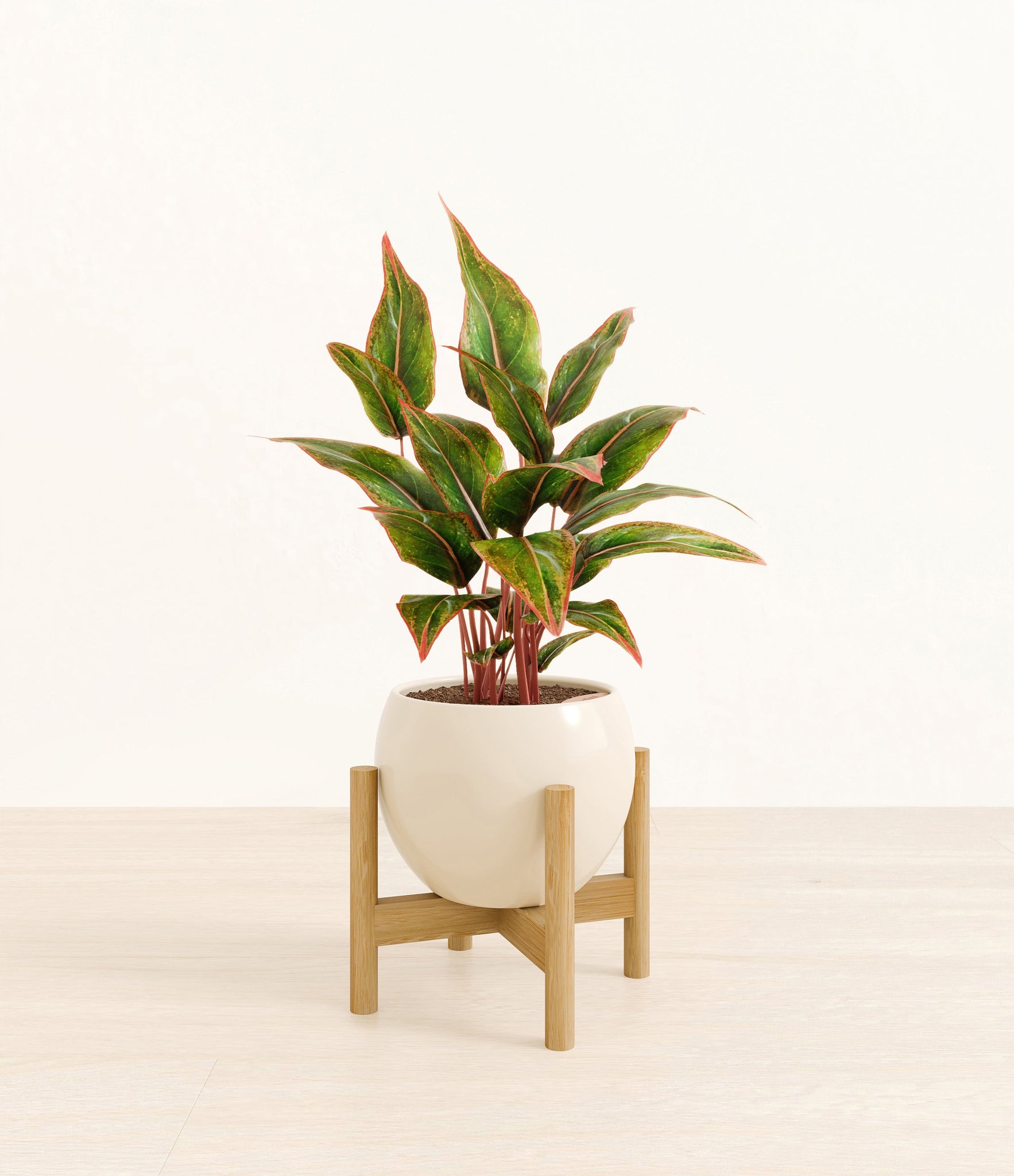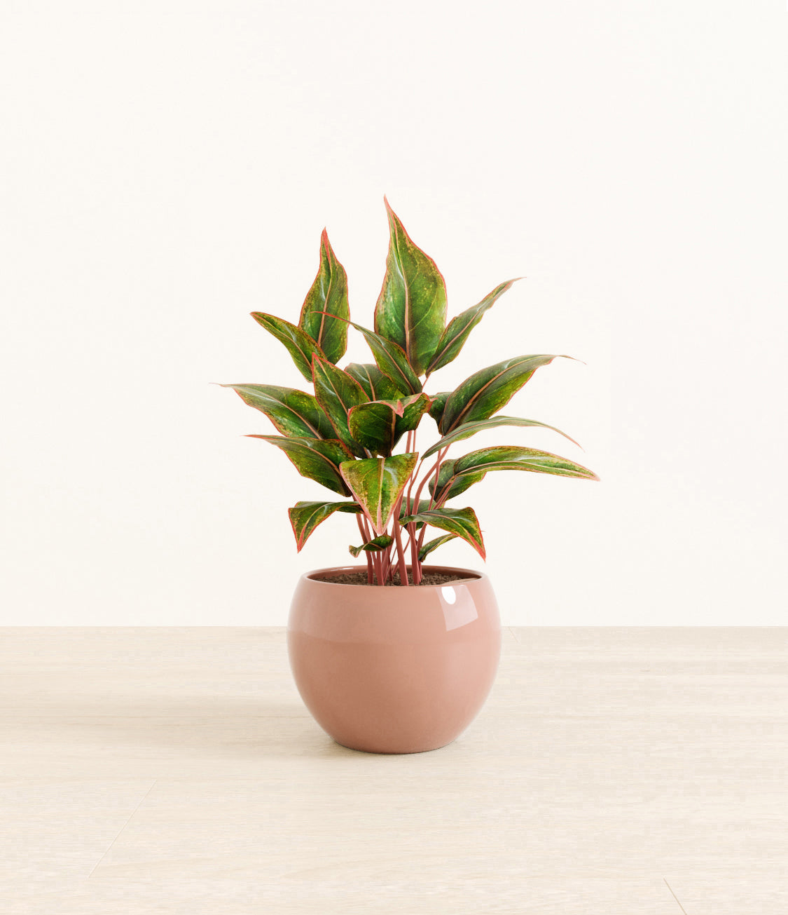 Native to the tropical and subtropical regions of Asia and New Guinea, Aglaonema Siam has been cultivated for centuries as a good luck charm. Known to live a long and healthy life, it is believed to bring wellbeing to the home and all its dwellers. Aglaonema Siam wears a vibrant, ruby-hued foliage that vivaciously warms up every space.