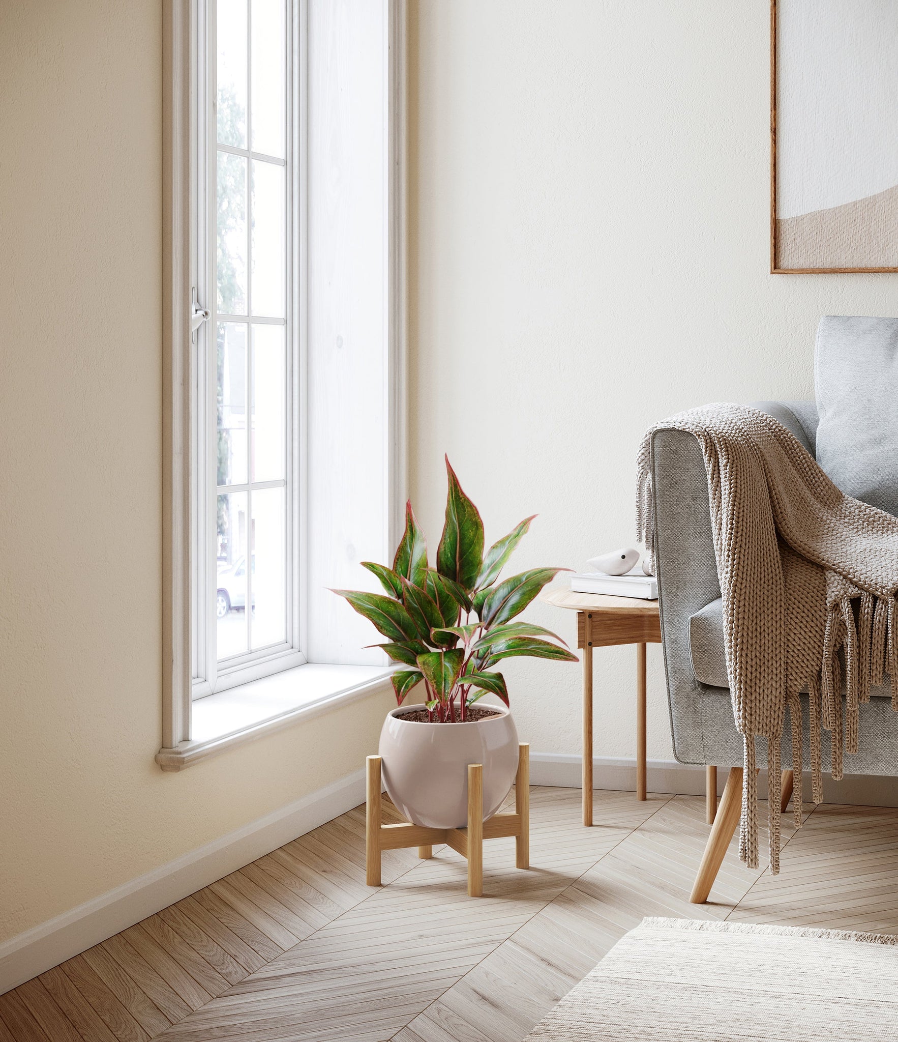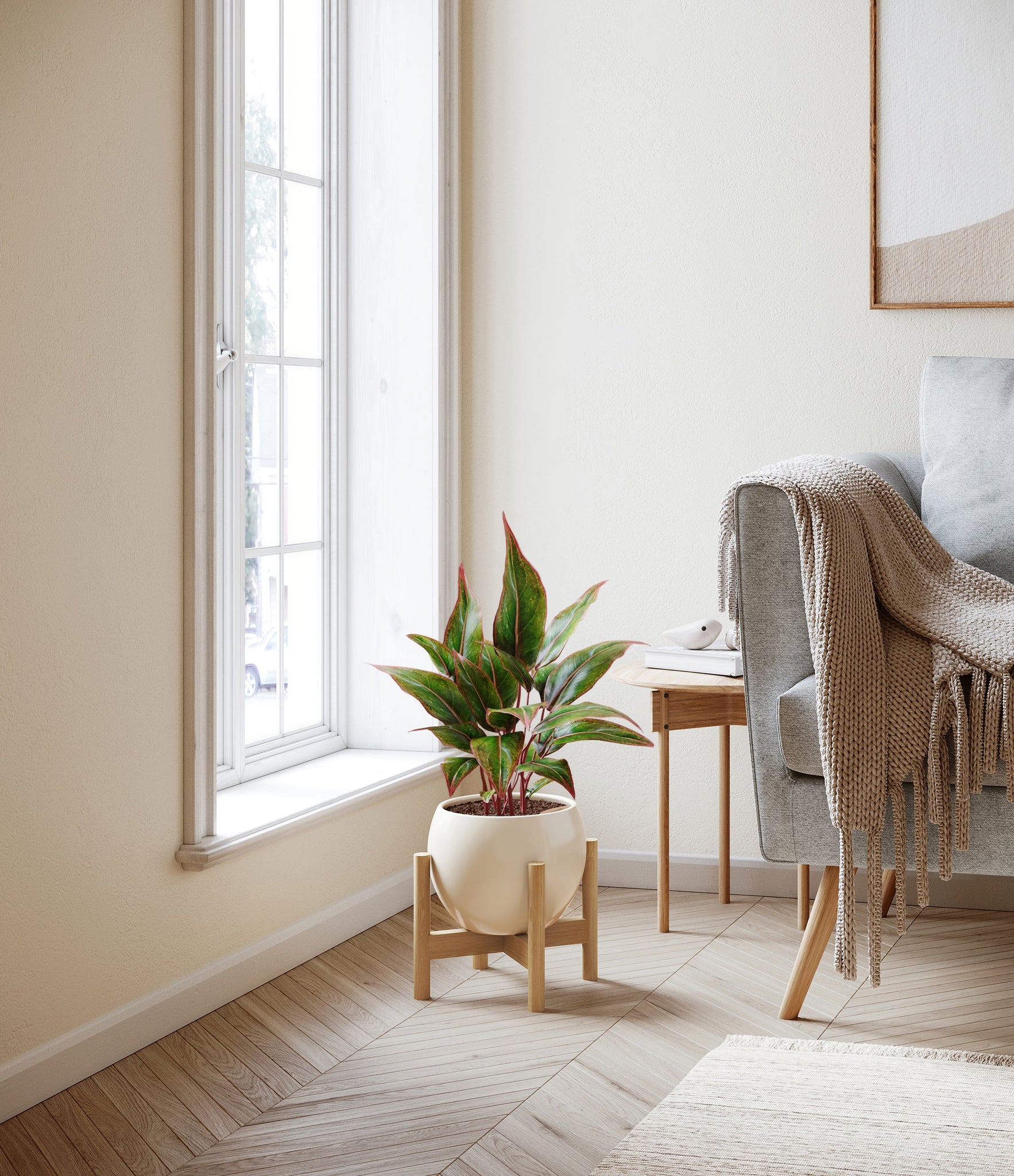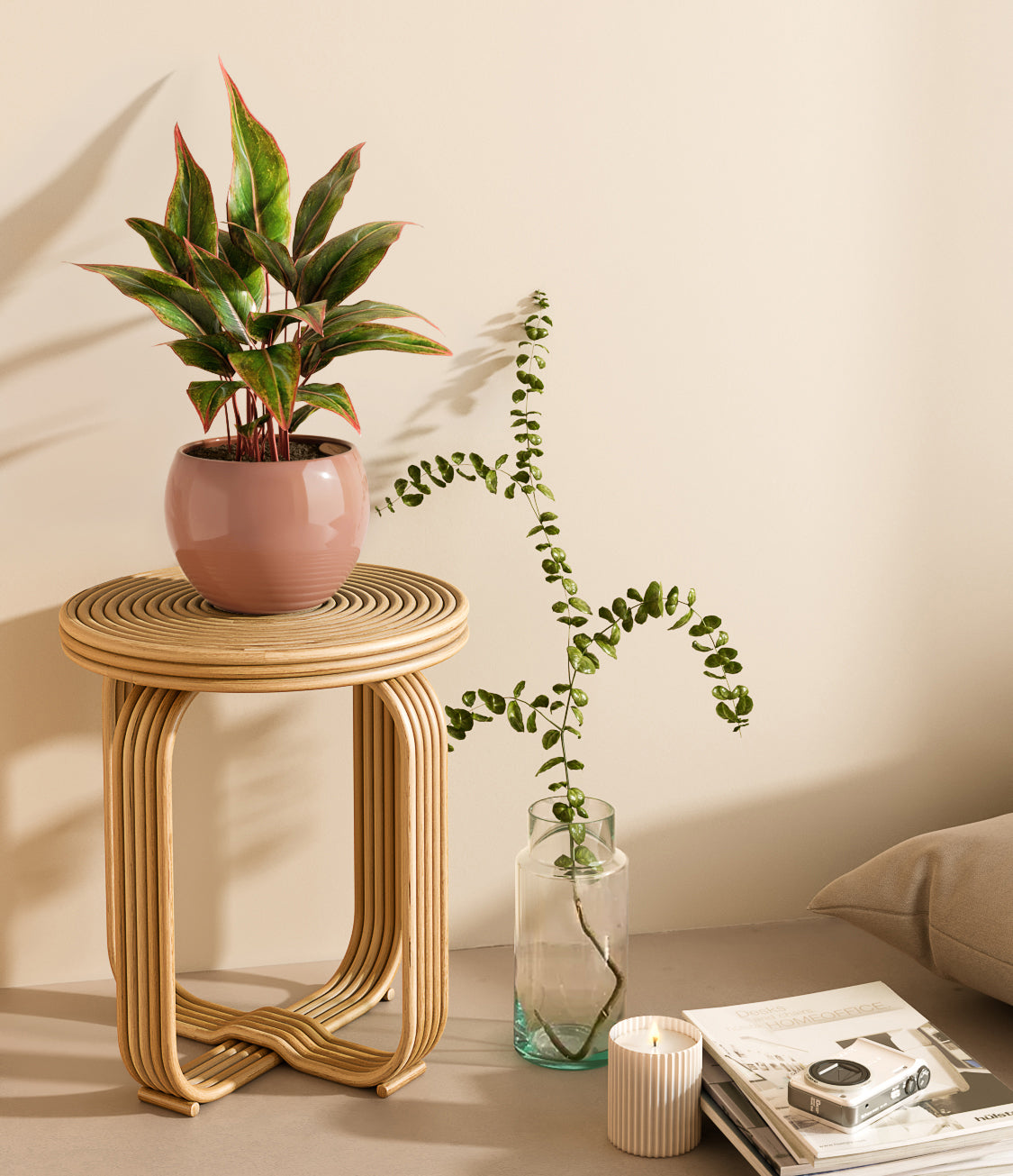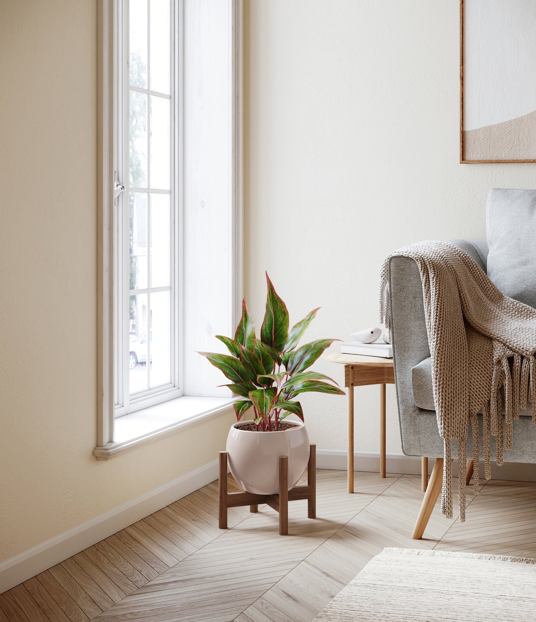 Native to the tropical and subtropical regions of Asia and New Guinea, Aglaonema Siam has been cultivated for centuries as a good luck charm. Known to live a long and healthy life, it is believed to bring wellbeing to the home and all its dwellers. Aglaonema Siam wears a vibrant, ruby-hued foliage that vivaciously warms up every space.
