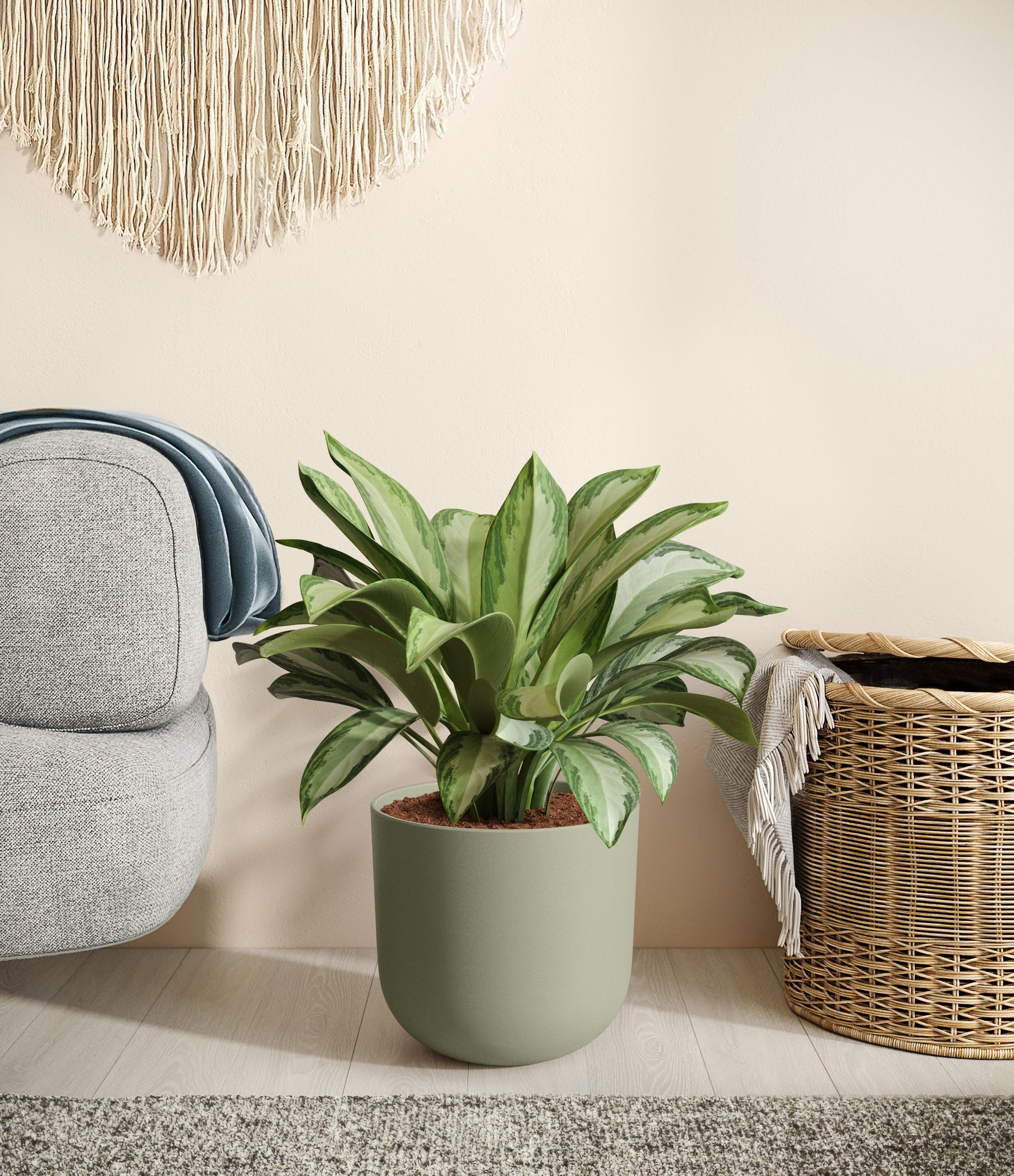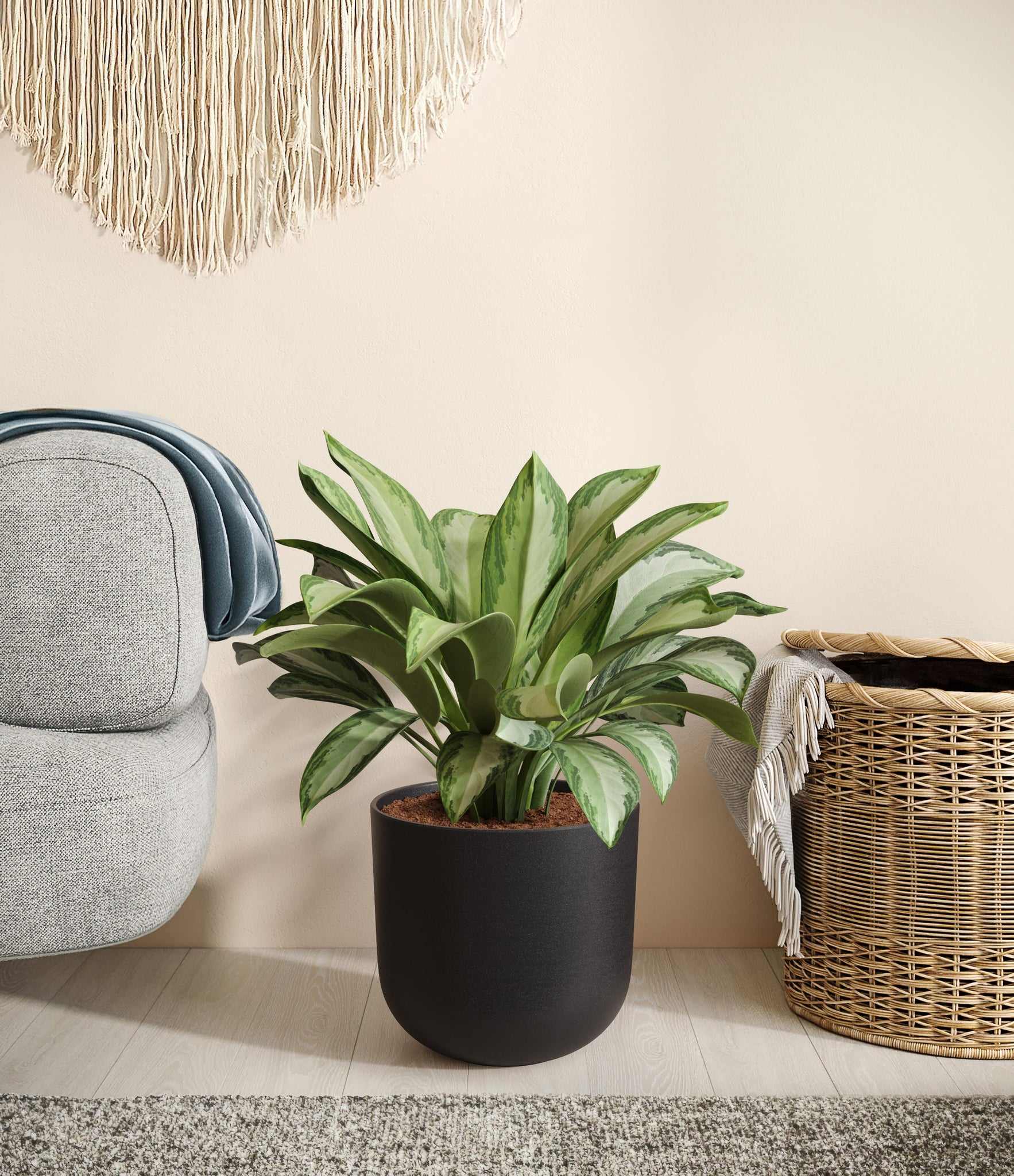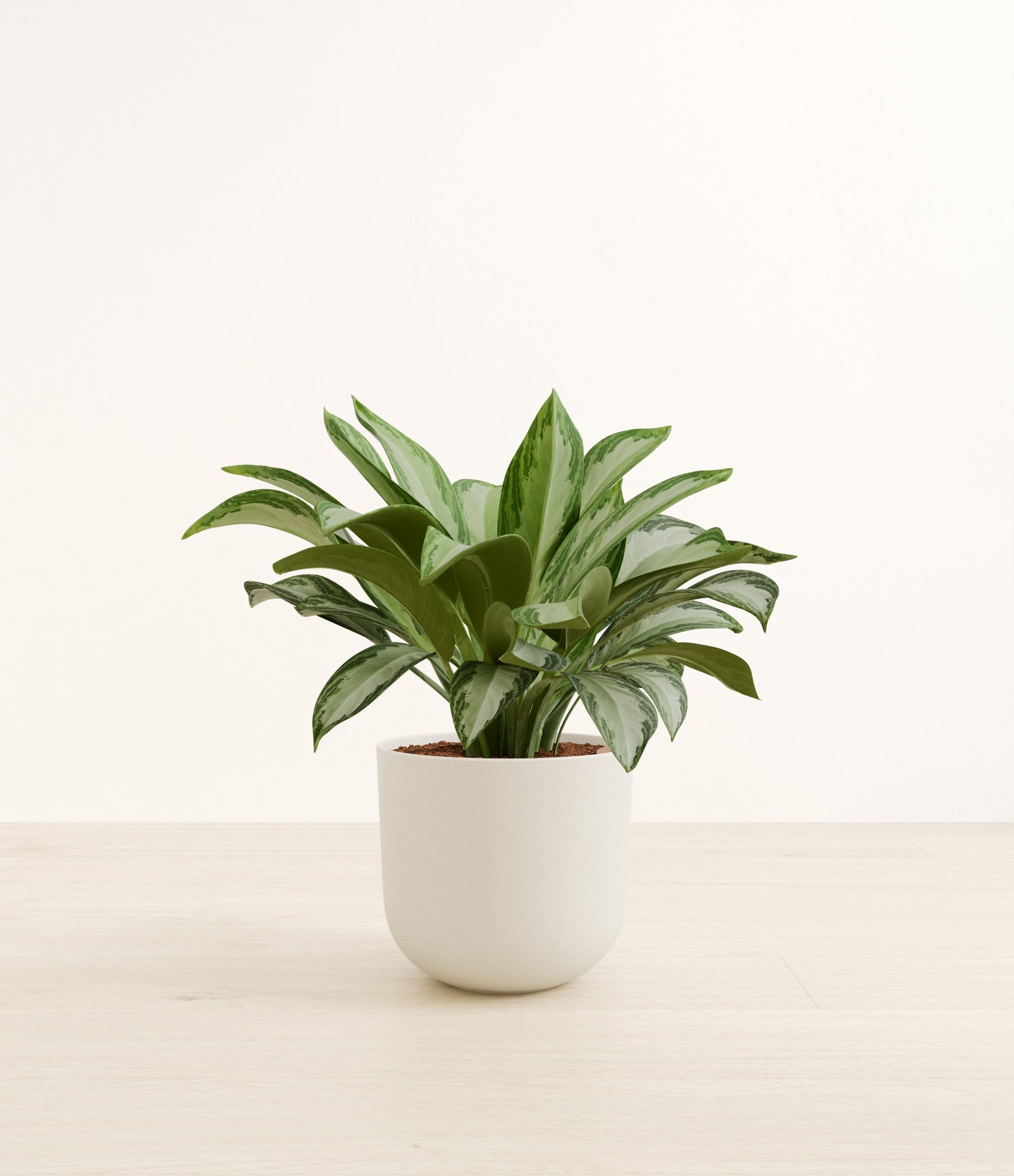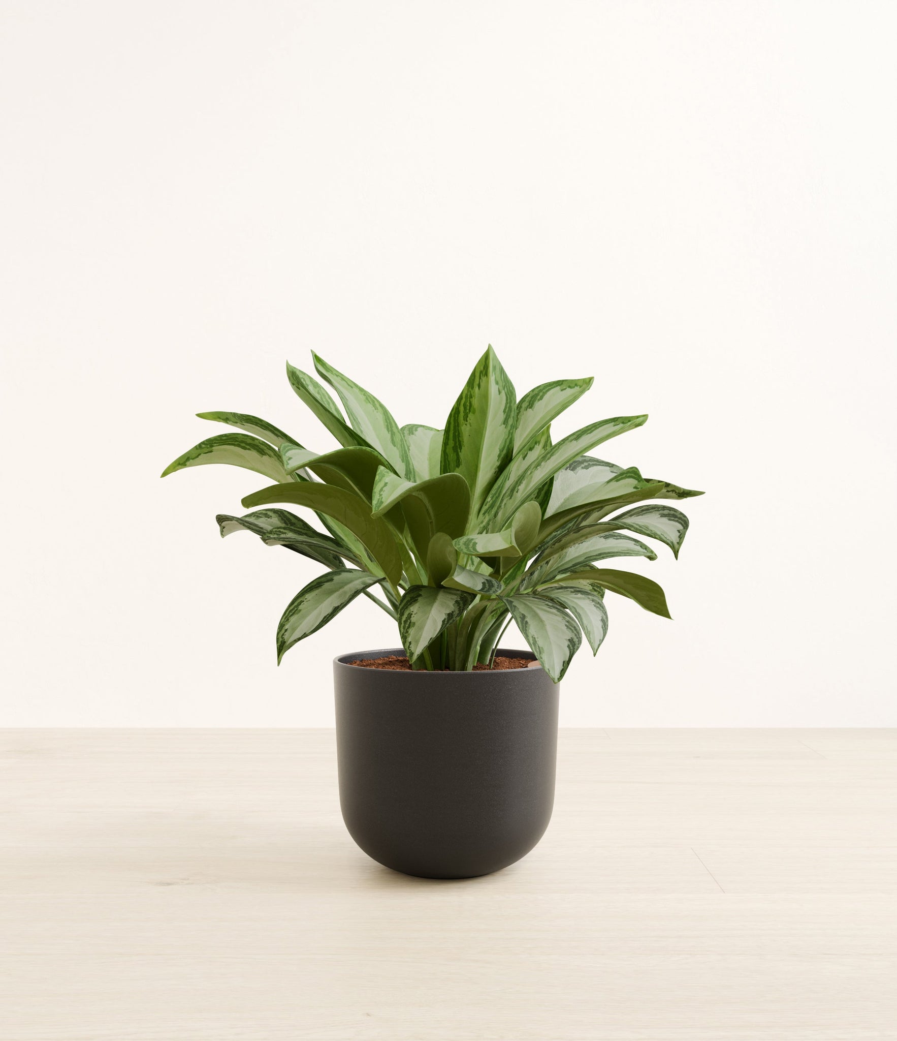 Potted in a premium quality self-watering pot with a soft matte finish, the slow-growing Aglaonema Silver Bay can reach up to 3 ft. tall at full maturity.