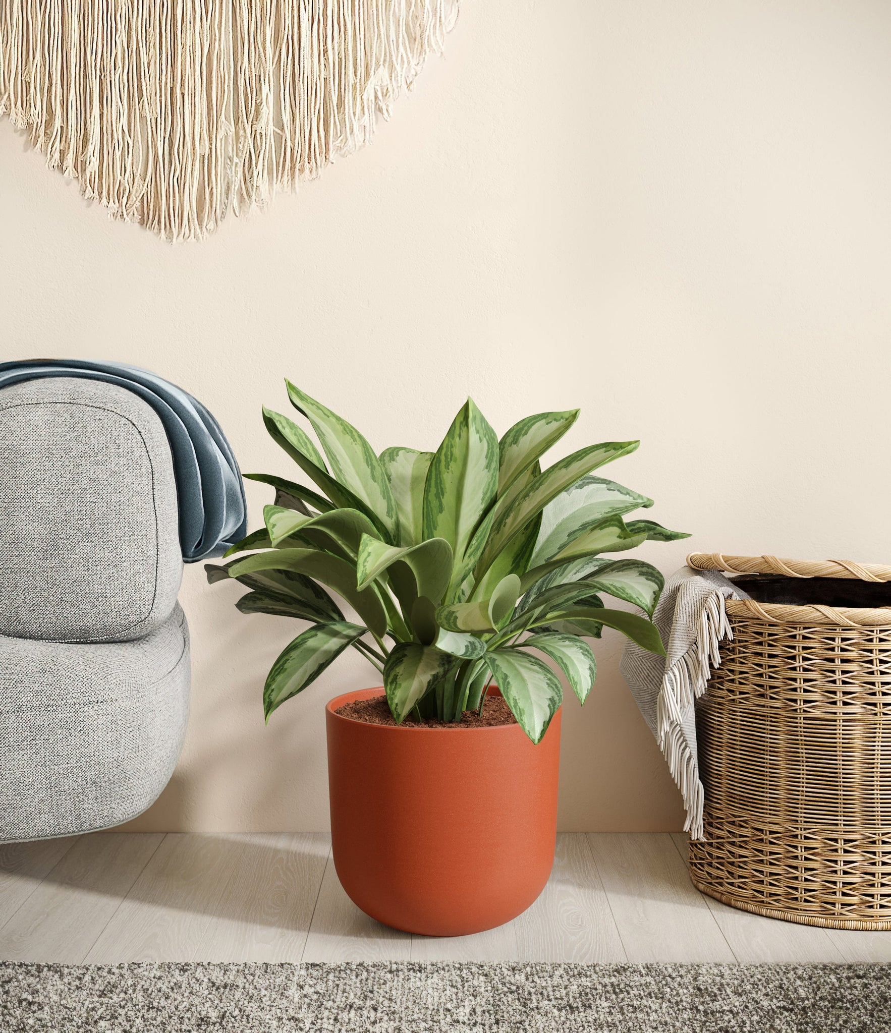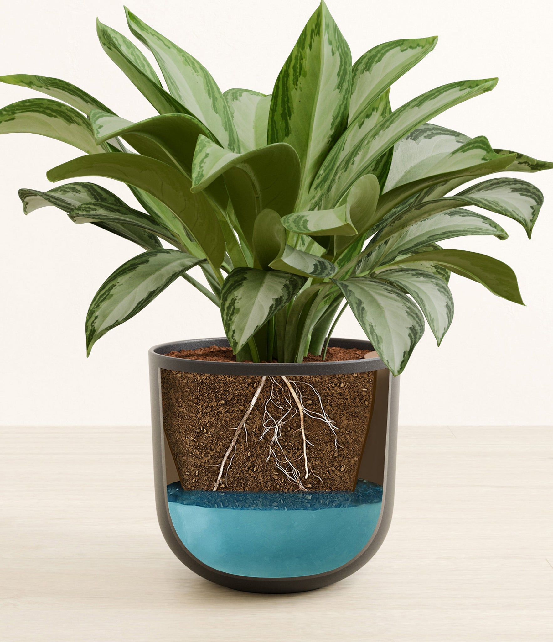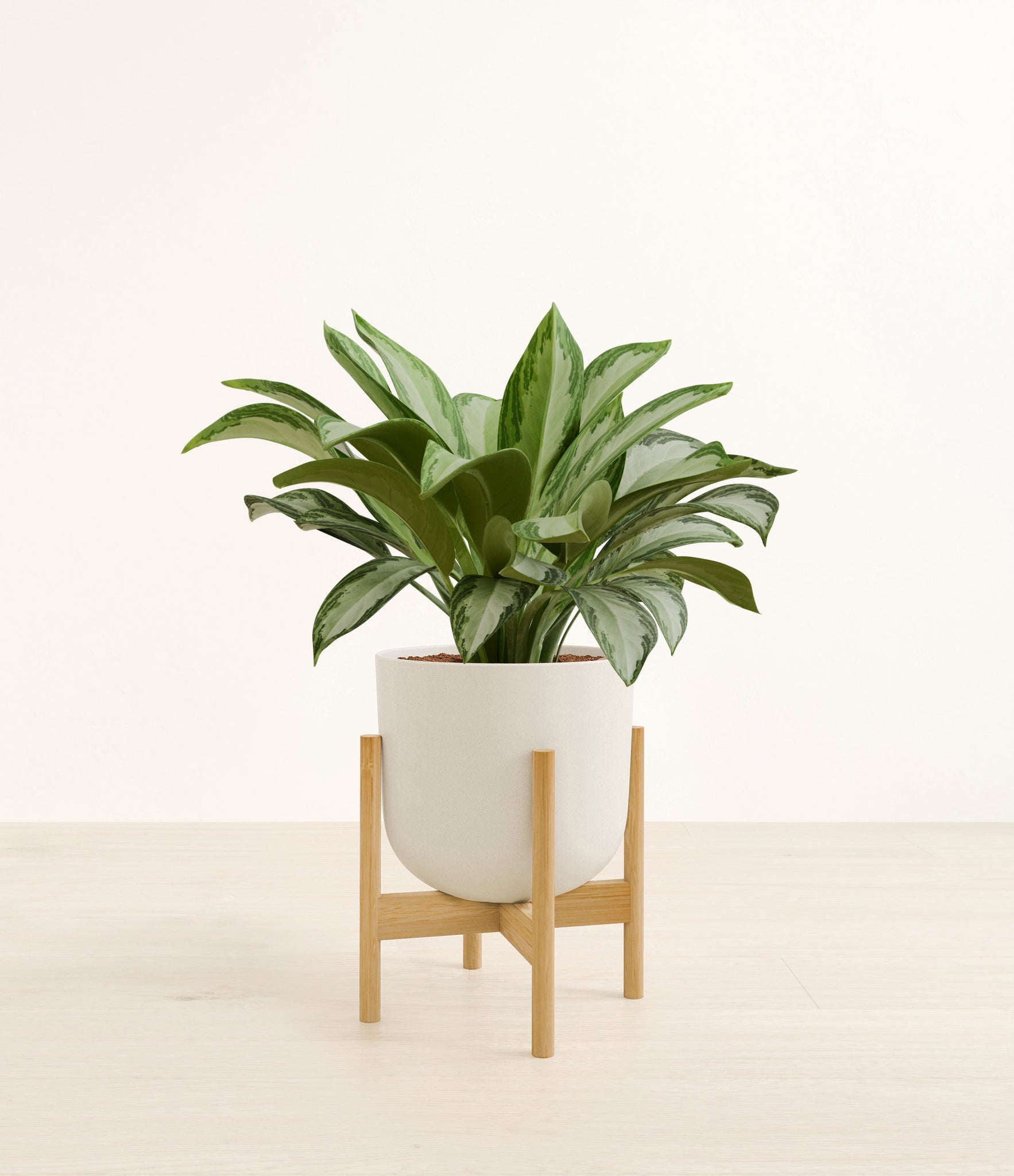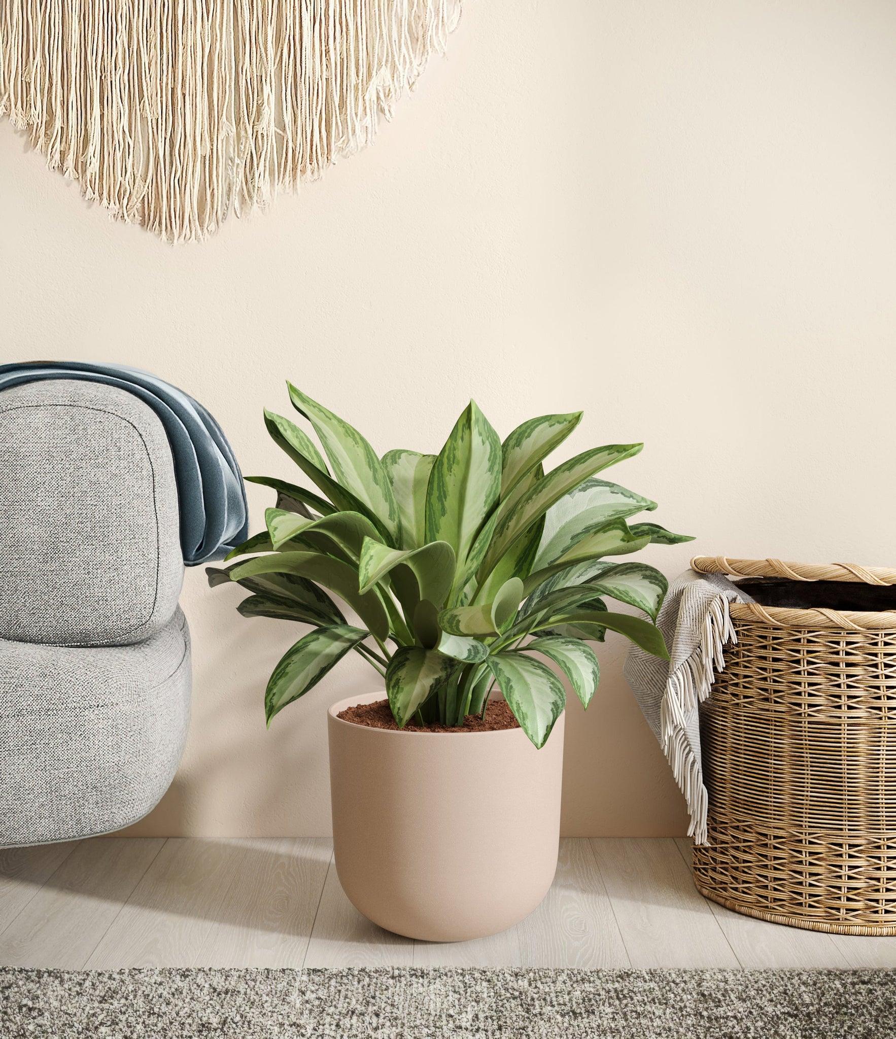 Potted in a premium quality self-watering pot with a soft matte finish, the slow-growing Aglaonema Silver Bay can reach up to 3 ft. tall at full maturity.