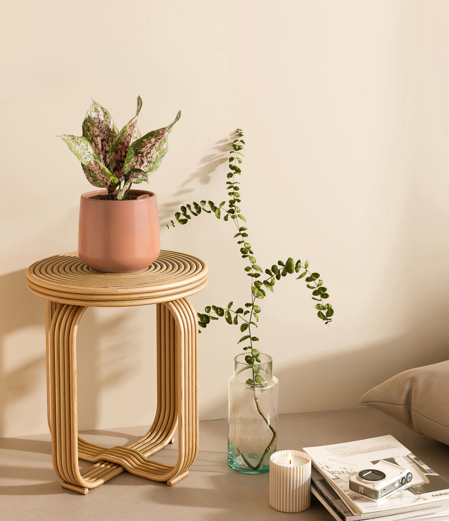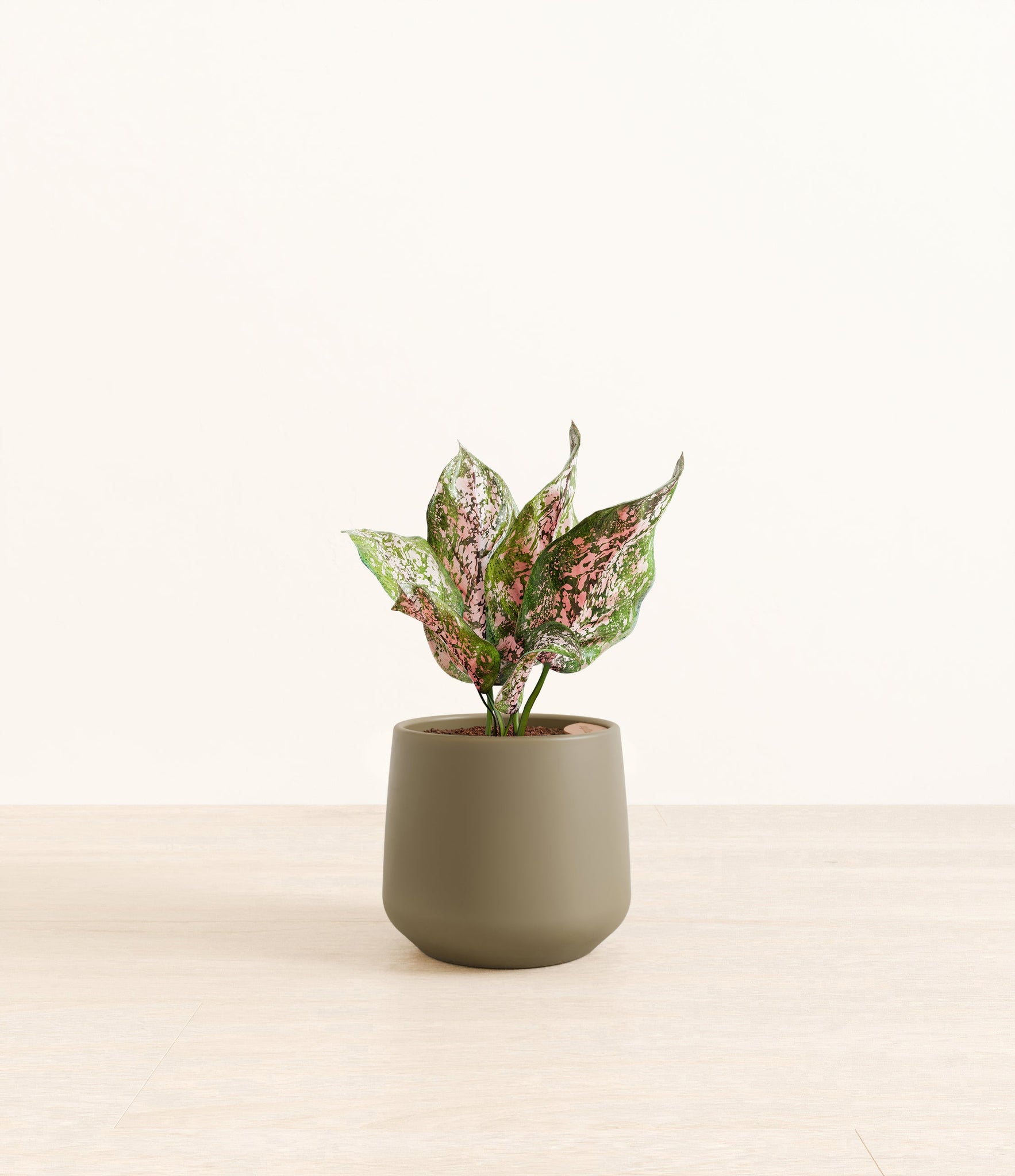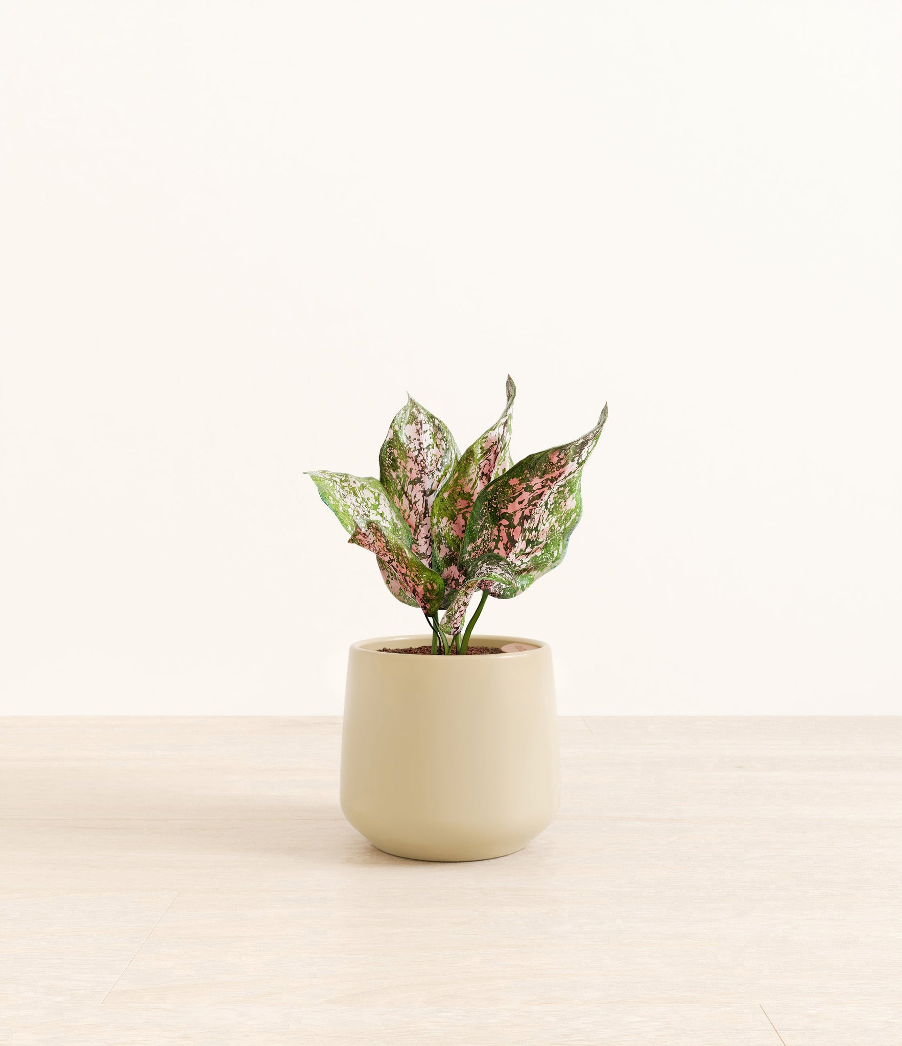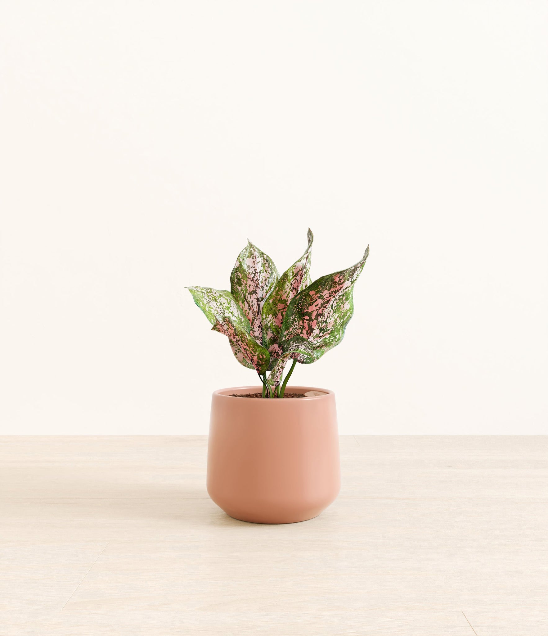 Originating from Southeast Asia's lush rainforests, Aglaonema Wishes, also known as Chinese Evergreen, is a tropical gem celebrated for its captivating pink and green foliage. Its leaves, adorned with splashes of pink, effortlessly infuse warmth and color into any space. Despite its vibrant beauty, this evergreen is resilient and easy to care for, winning the affection of both expert and novice plant enthusiasts.