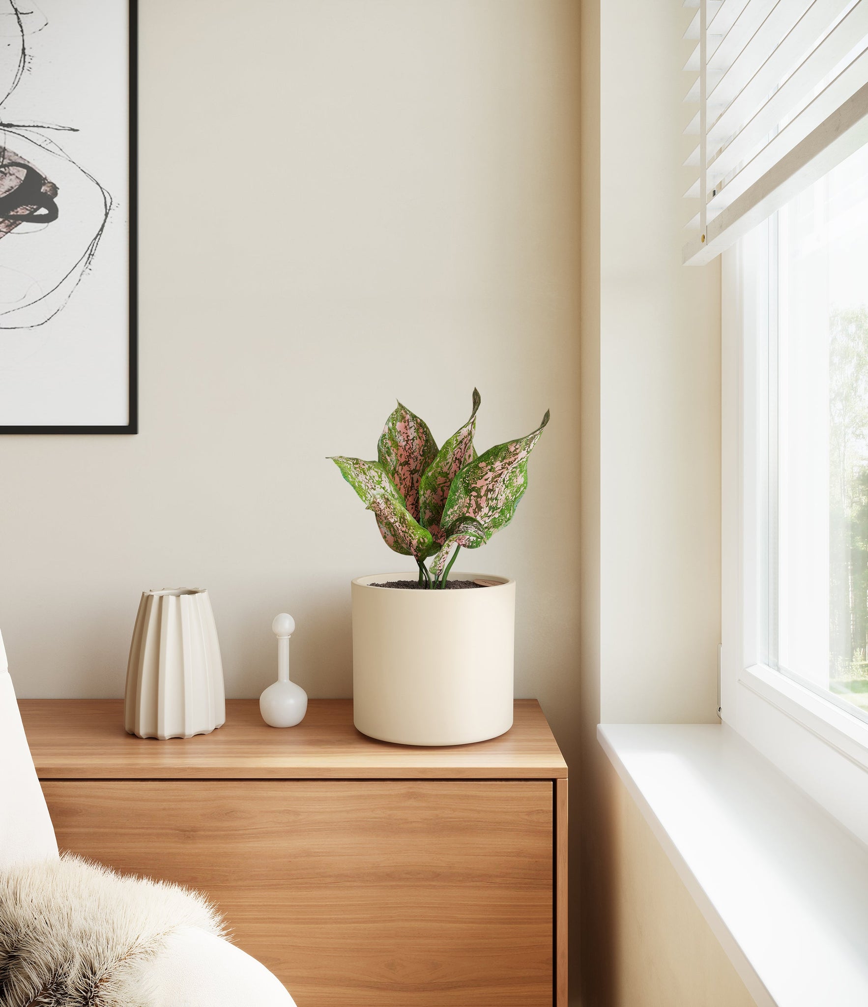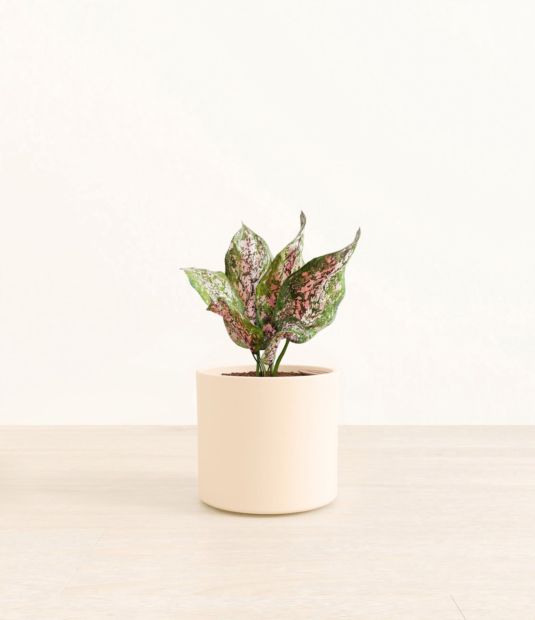 Originating from Southeast Asia's lush rainforests, Aglaonema Wishes, also known as Chinese Evergreen, is a tropical gem celebrated for its captivating pink and green foliage. Its leaves, adorned with splashes of pink, effortlessly infuse warmth and color into any space. Despite its vibrant beauty, this evergreen is resilient and easy to care for, winning the affection of both expert and novice plant enthusiasts.