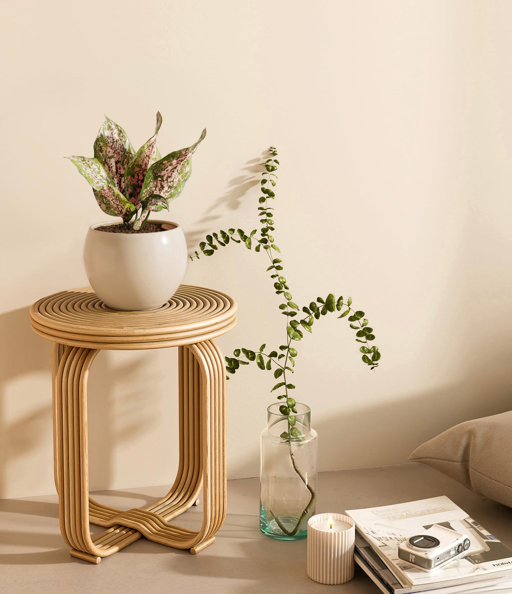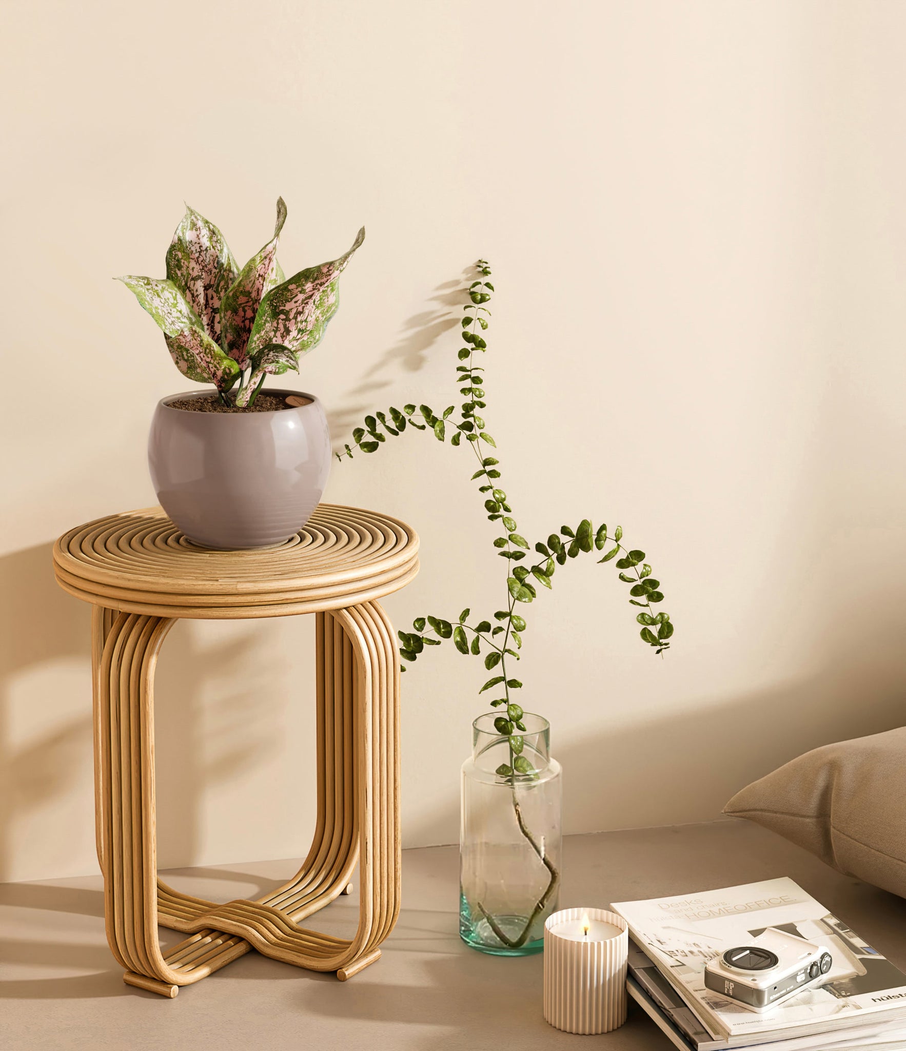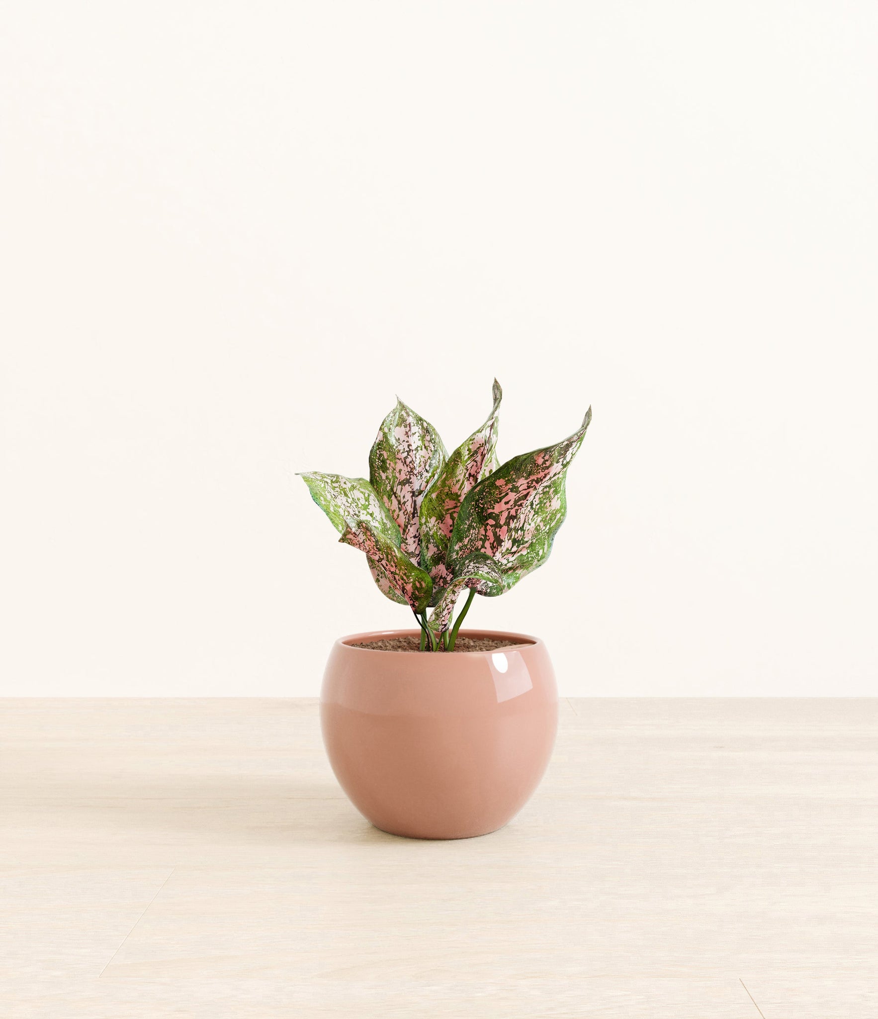 Originating from Southeast Asia's lush rainforests, Aglaonema Wishes, also known as Chinese Evergreen, is a tropical gem celebrated for its captivating pink and green foliage. Its leaves, adorned with splashes of pink, effortlessly infuse warmth and color into any space. Despite its vibrant beauty, this evergreen is resilient and easy to care for, winning the affection of both expert and novice plant enthusiasts.