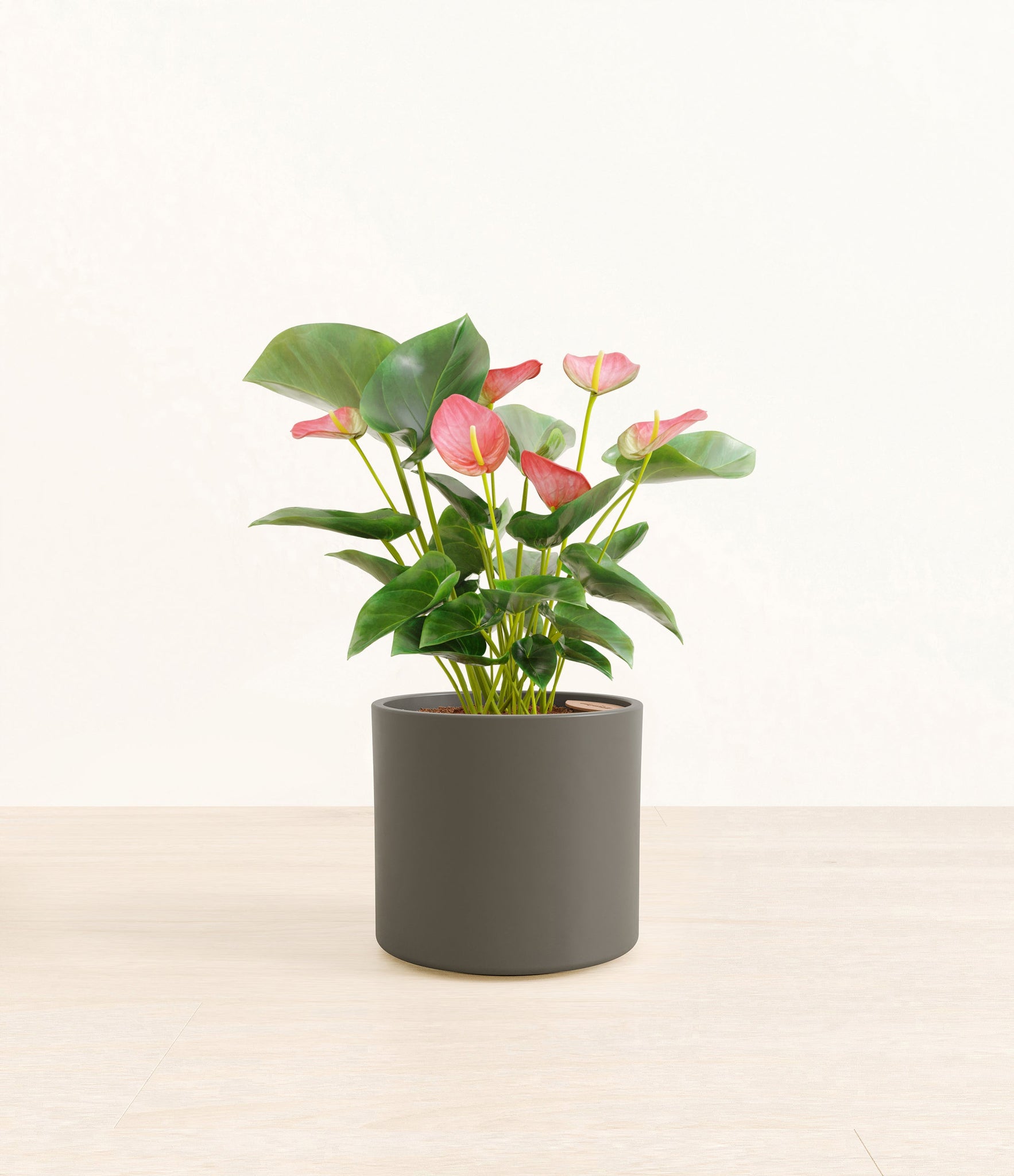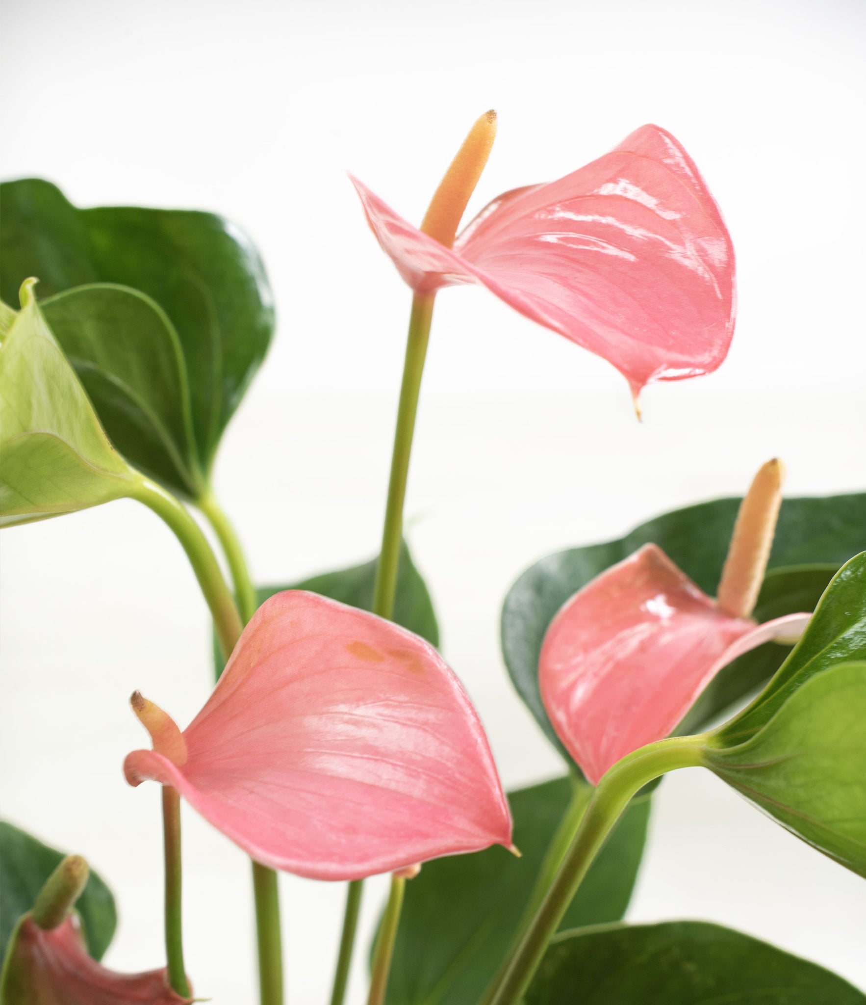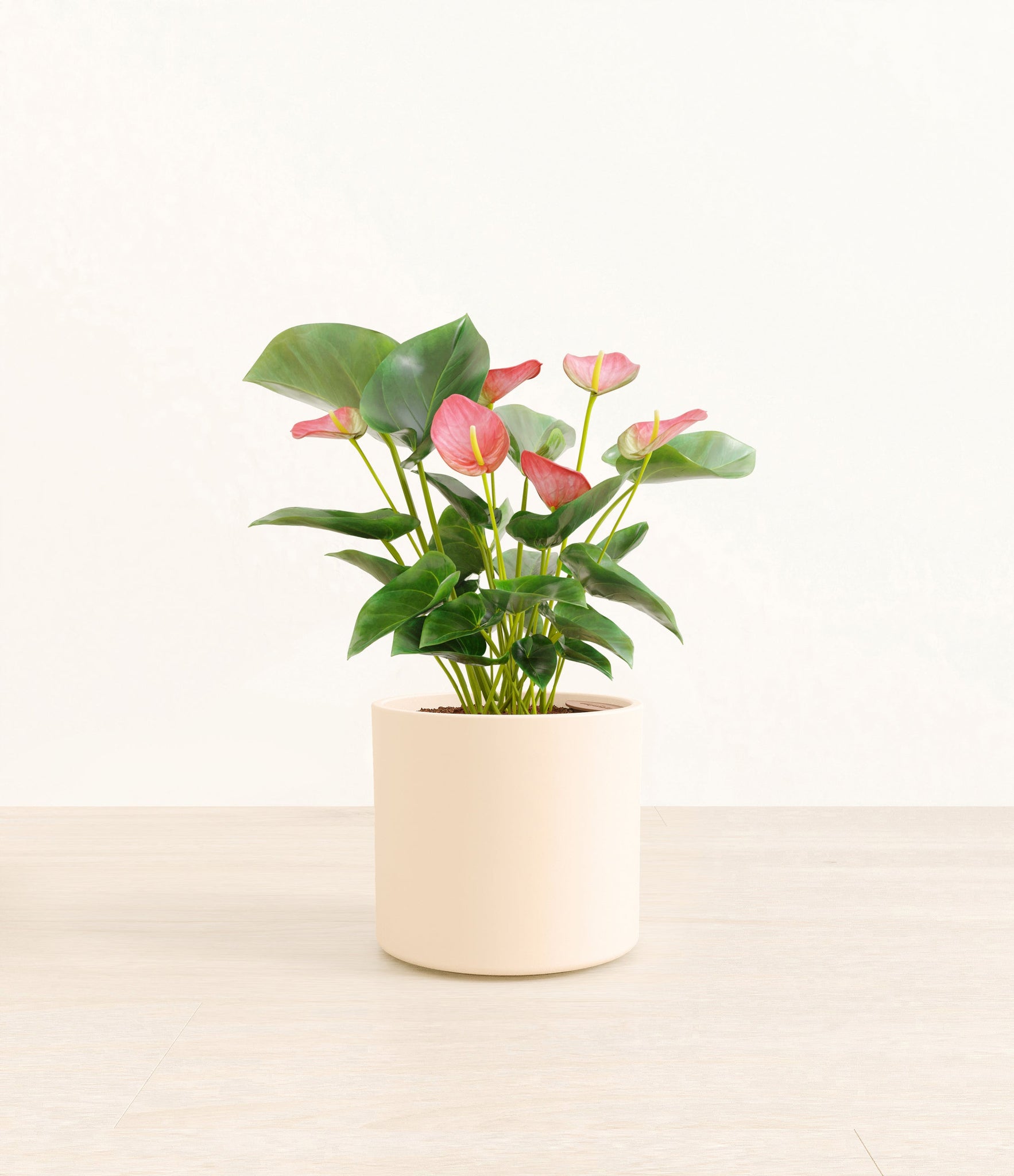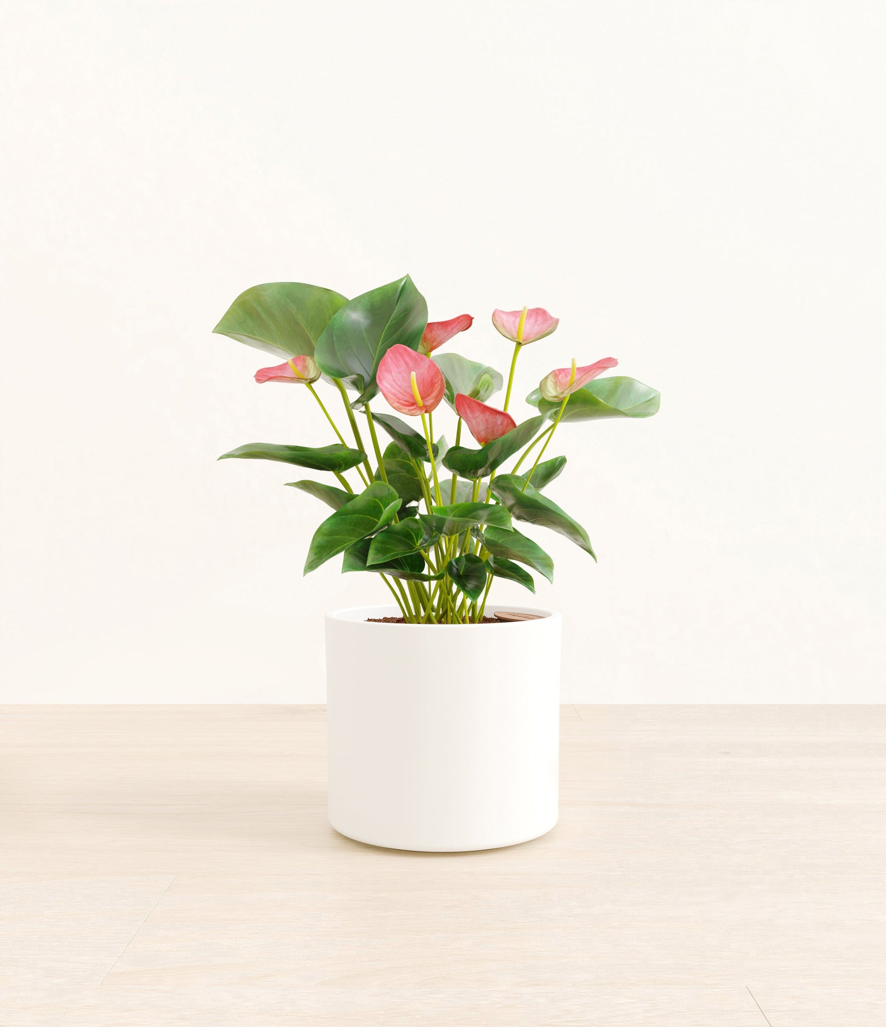 Native to the Americas and Caribbeans, this tropical evergreen beauty brings out the best and brightest in any space it inhabits. The colorful heart-shaped waxy leaves, called spathes, act as protectors for its straight spike, called spadix, where very small flowers grow in its bloom. Thanks to its long-lived, heart-opening charm, Anthurium is the quintessential symbol of generosity and kindness, making it a perfect gift for those you love the most. It is cherished for its long blooms, lasting anywhere from eight to twelve weeks. Anthurium grows best in a well-lit space. Avoid placing it in direct sunlight or spaces without natural light.