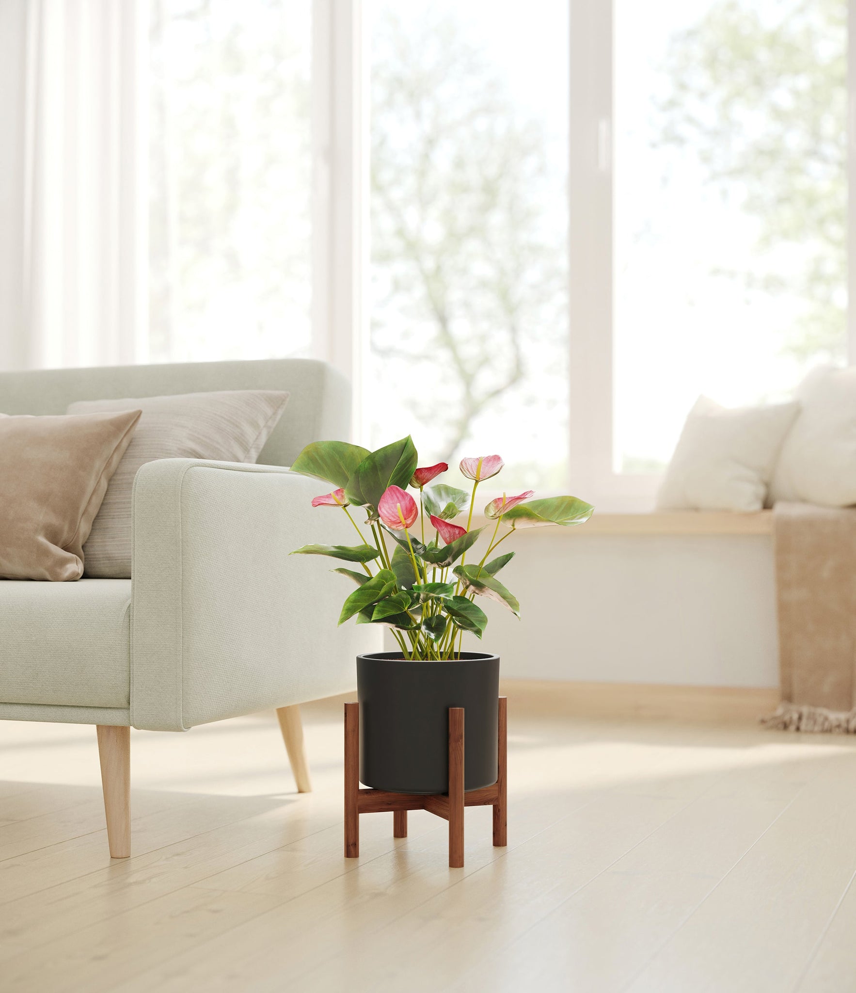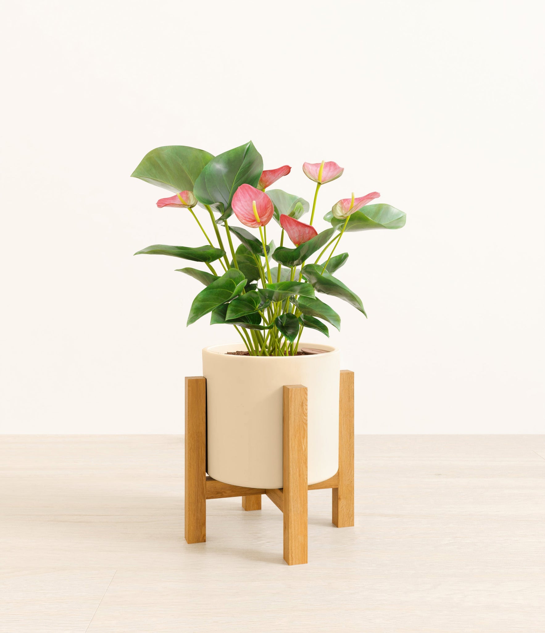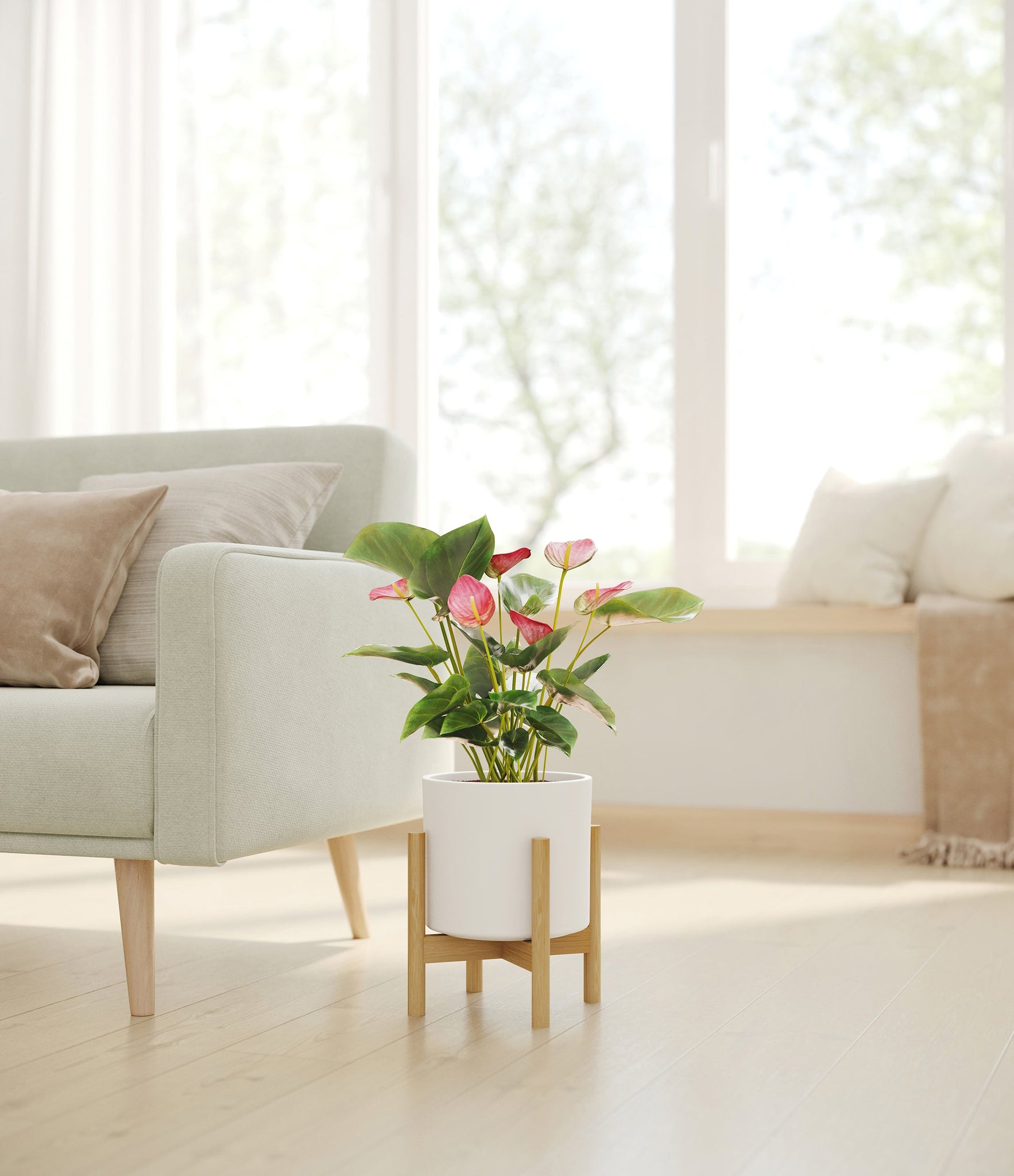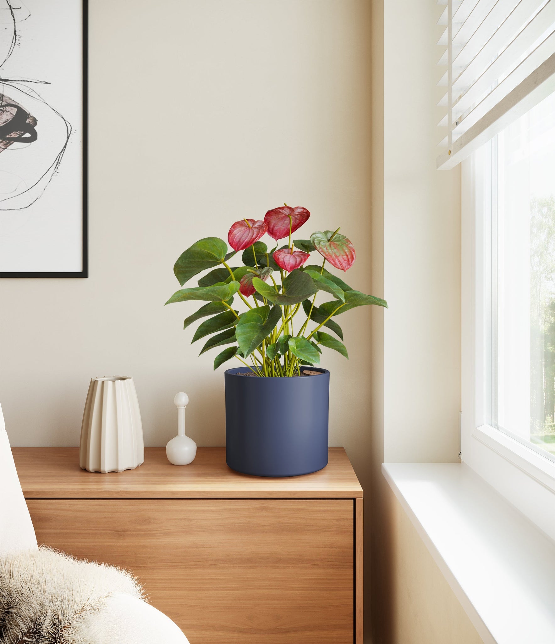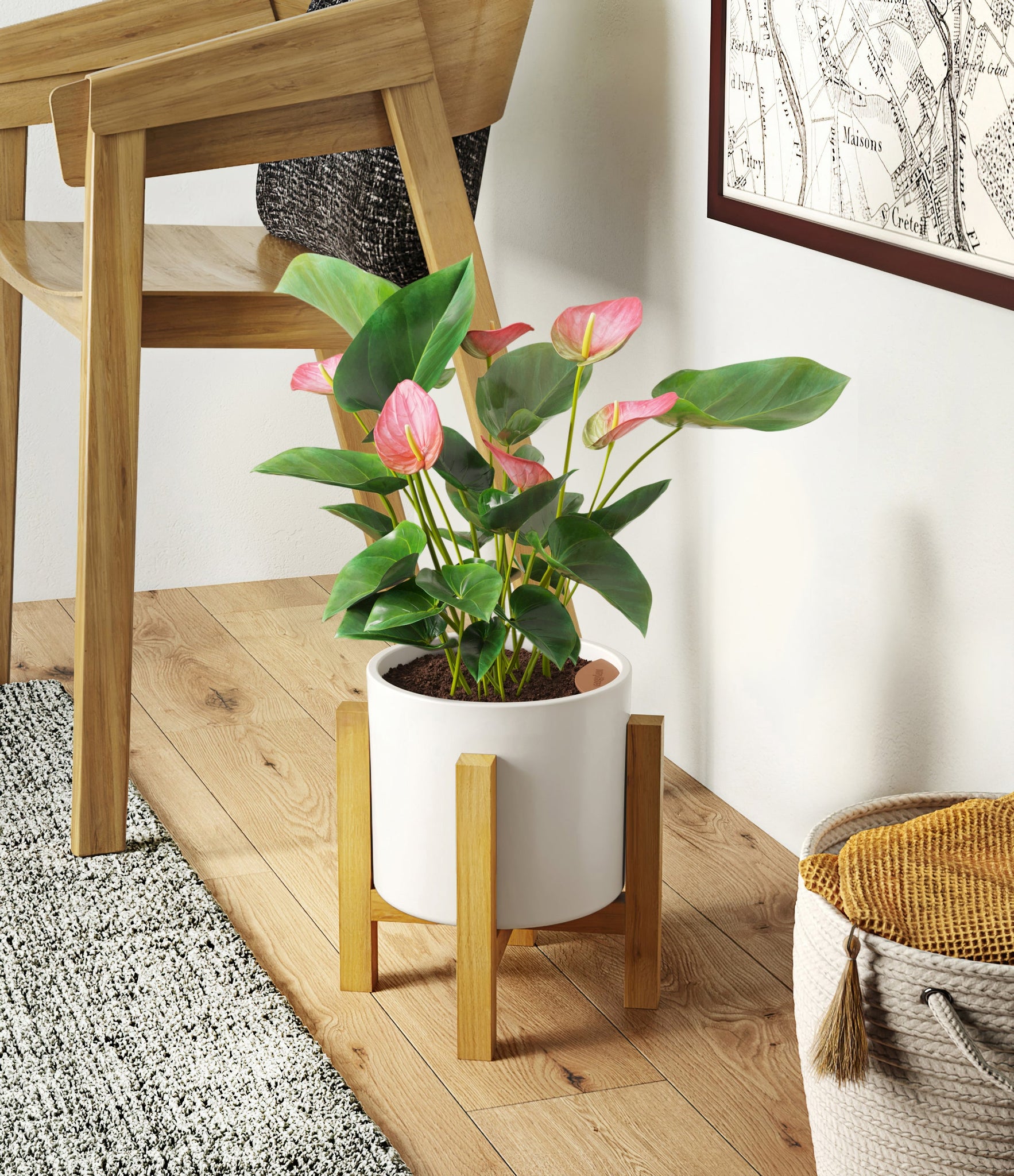 Native to the Americas and Caribbeans, this tropical evergreen beauty brings out the best and brightest in any space it inhabits. The colorful heart-shaped waxy leaves, called spathes, act as protectors for its straight spike, called spadix, where very small flowers grow in its bloom. Thanks to its long-lived, heart-opening charm, Anthurium is the quintessential symbol of generosity and kindness, making it a perfect gift for those you love the most. It is cherished for its long blooms, lasting anywhere from eight to twelve weeks. Anthurium grows best in a well-lit space. Avoid placing it in direct sunlight or spaces without natural light.