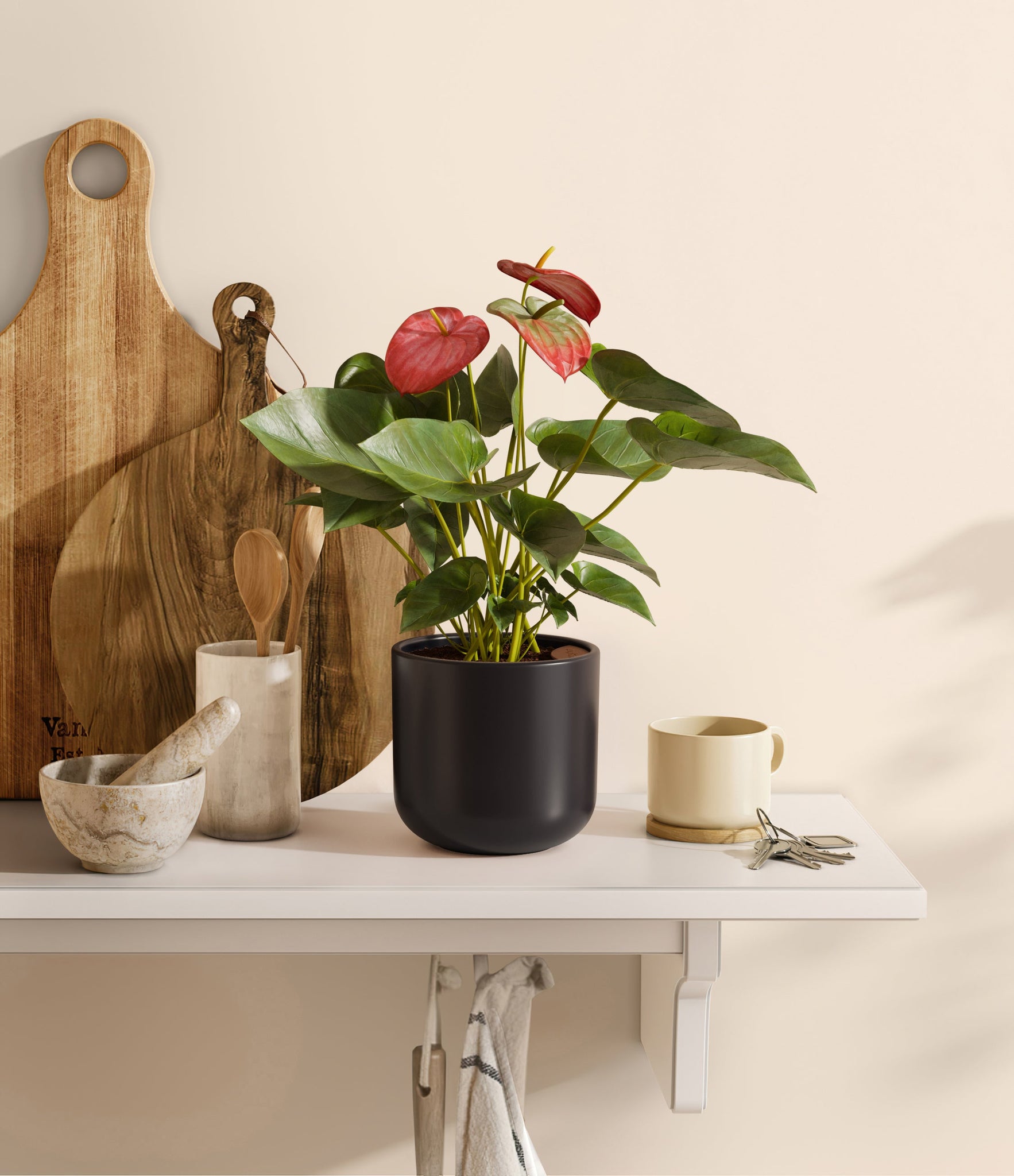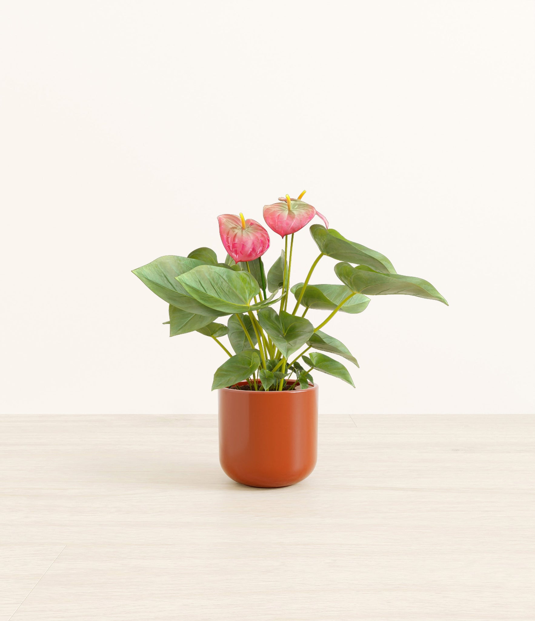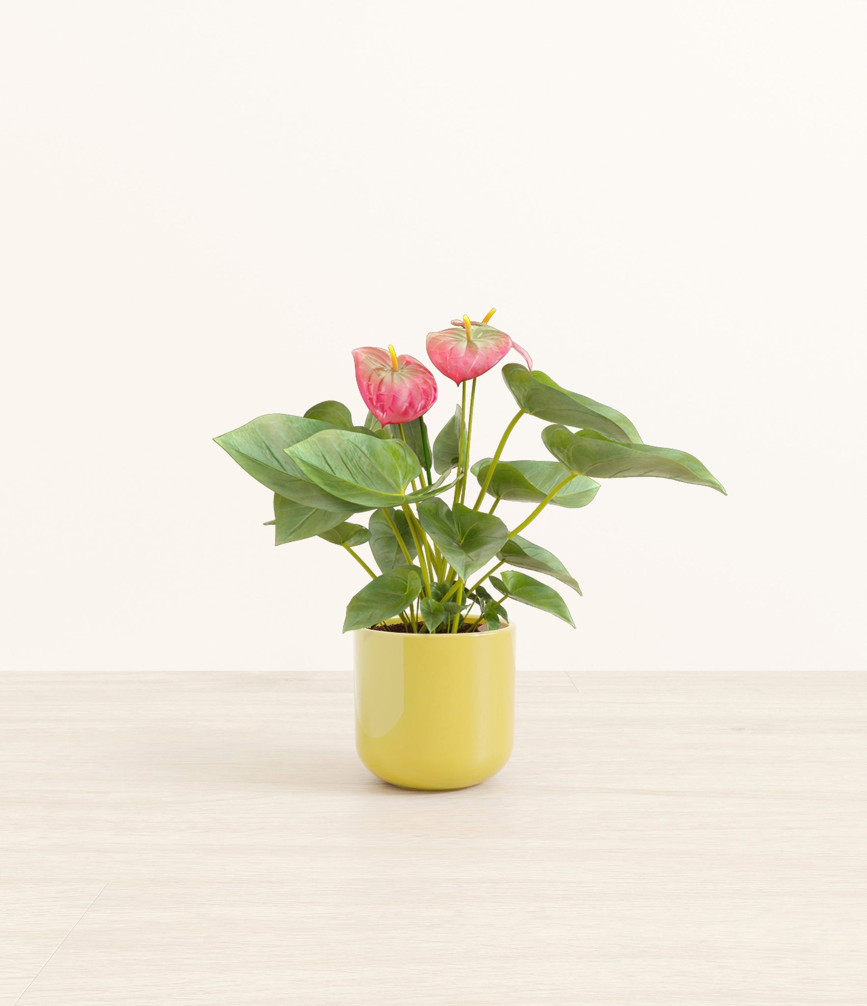 Native to the Americas and Caribbeans, this tropical evergreen beauty brings out the best and brightest in any space it inhabits. The colorful heart-shaped waxy leaves, called spathes, act as protectors for its straight spike, called spadix, where very small flowers grow in its bloom. Thanks to its long-lived, heart-opening charm, Anthurium is the quintessential symbol of generosity and kindness, making it a perfect gift for those you love the most. It is cherished for its long blooms, lasting anywhere from eight to twelve weeks.