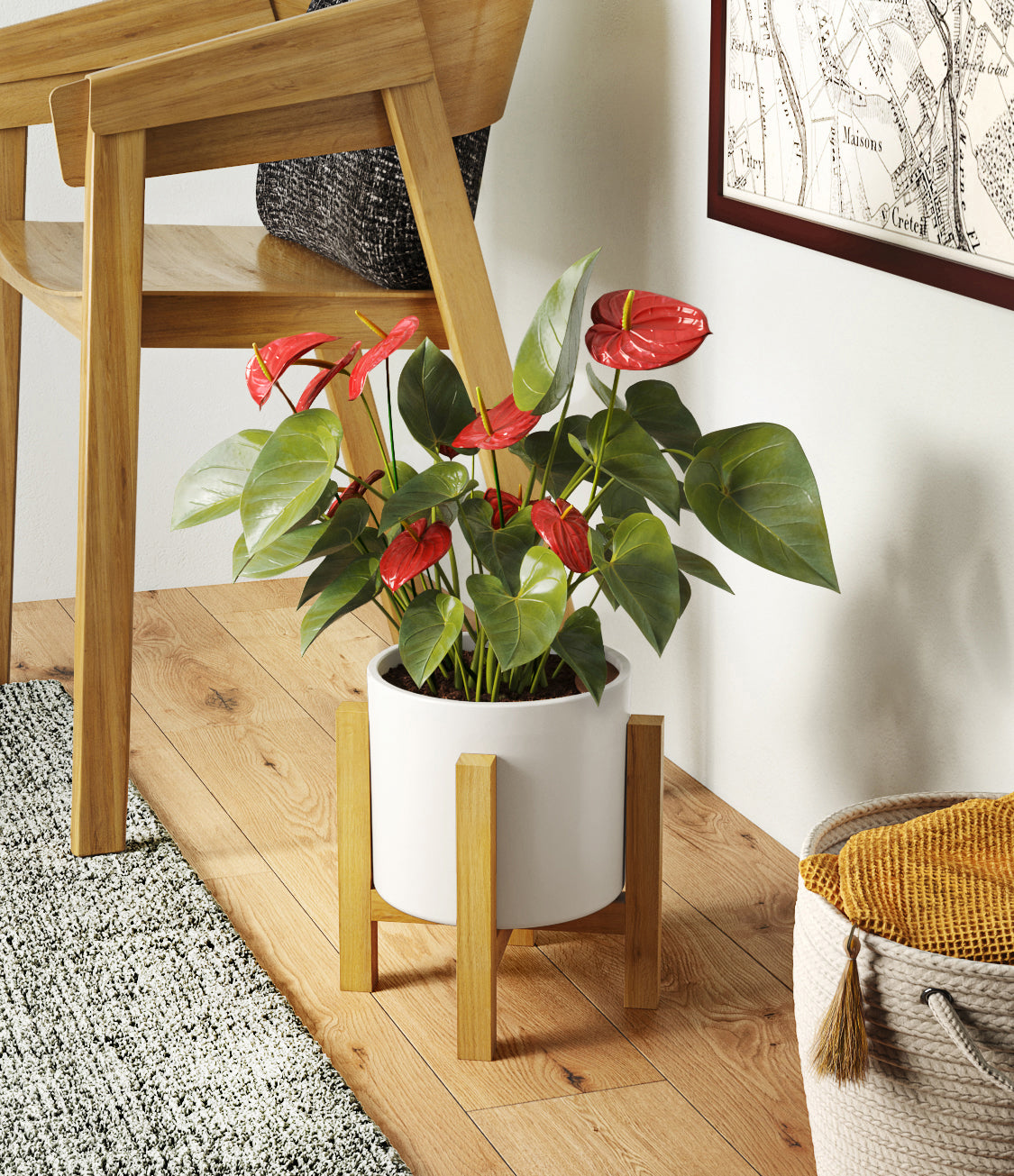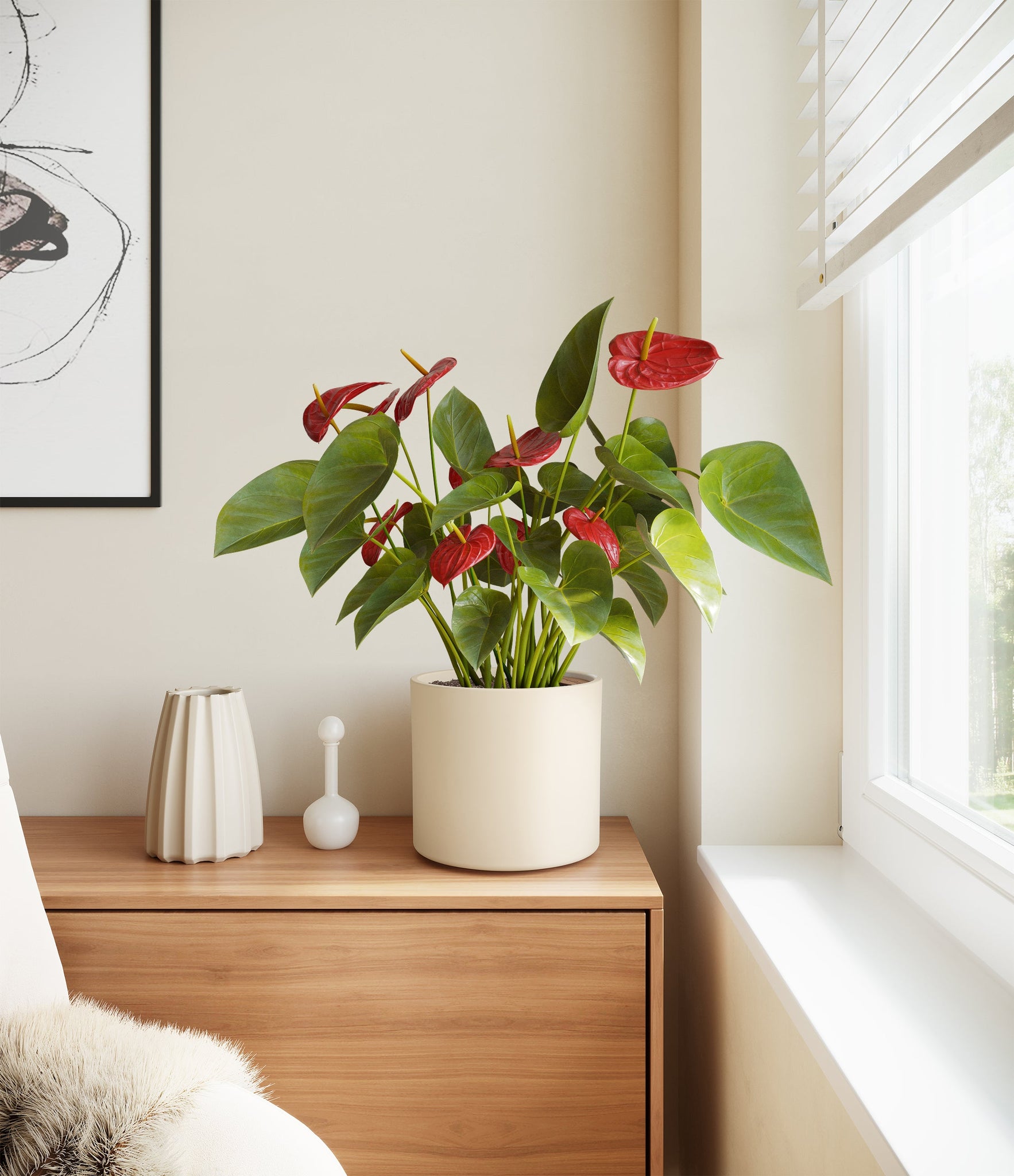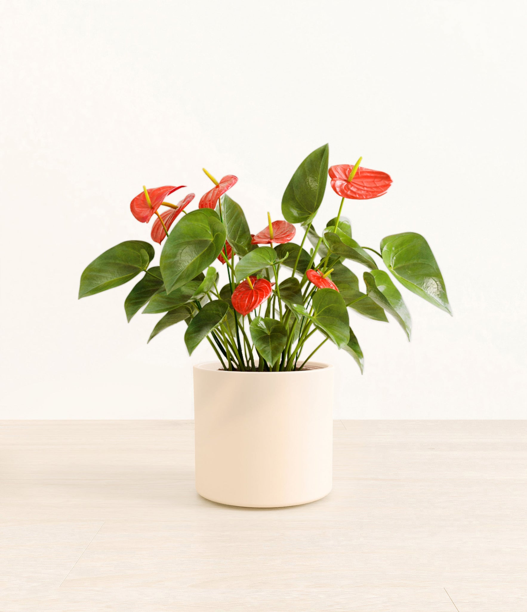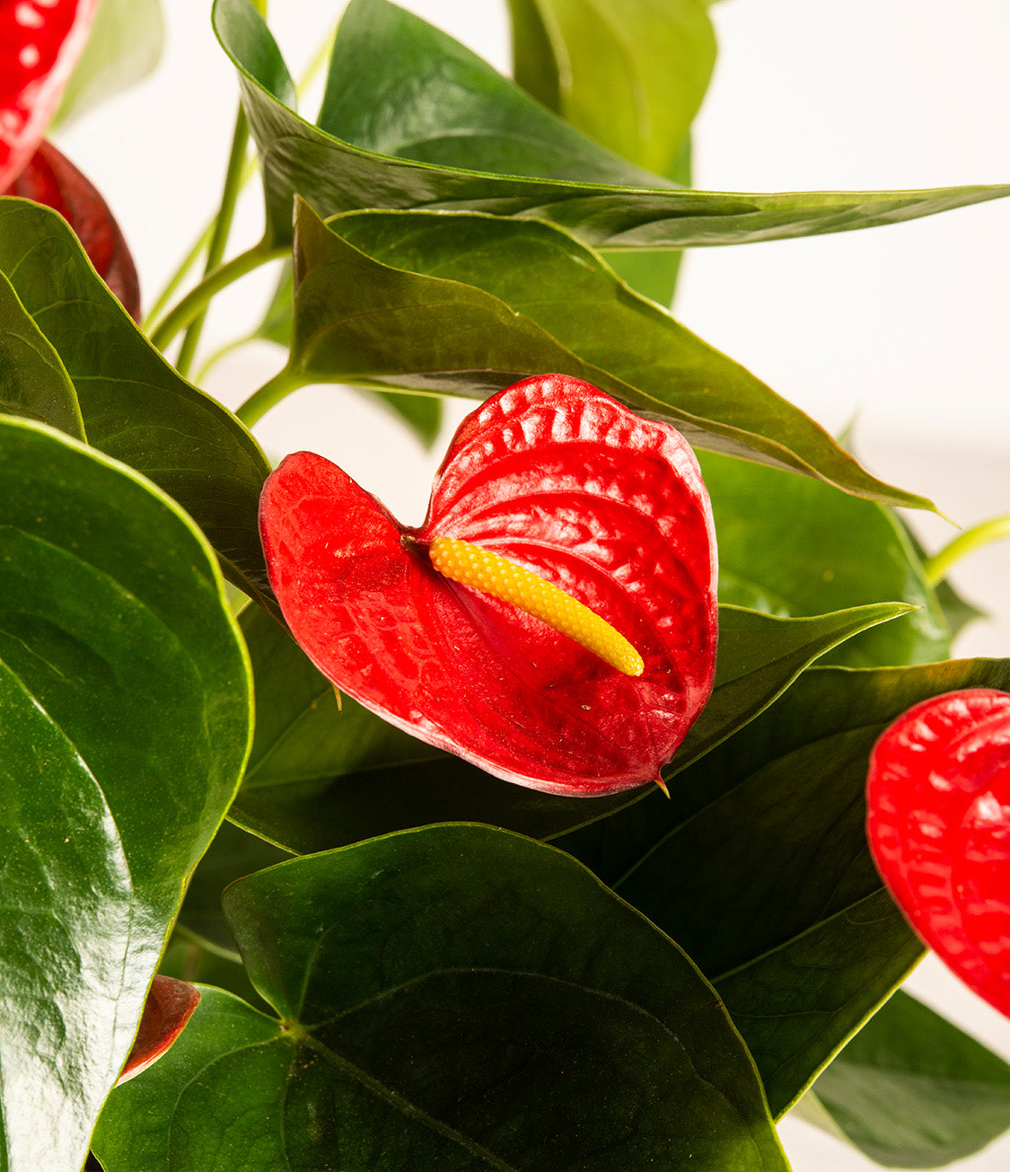 Native to the Americas and Caribbeans, this tropical evergreen beauty brings out the best and brightest in any space it inhabits. The colorful heart-shaped waxy leaves, called spathes, act as protectors for its straight spike, called spadix, where very small flowers grow in its bloom. Thanks to its long-lived, heart-opening charm, Anthurium is the quintessential symbol of generosity and kindness, making it a perfect gift for those you love the most. It is cherished for its long blooms, lasting anywhere from eight to twelve weeks.