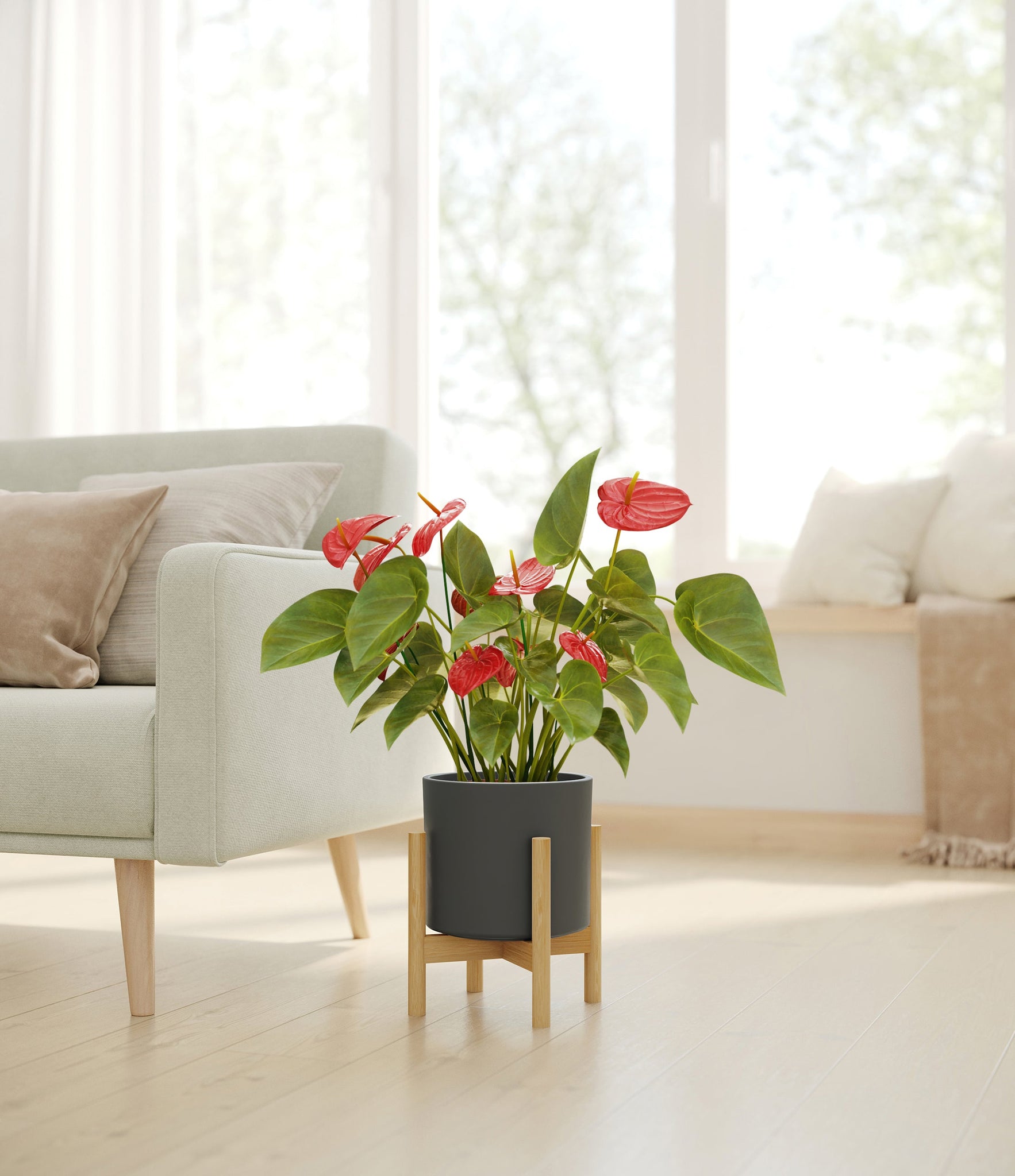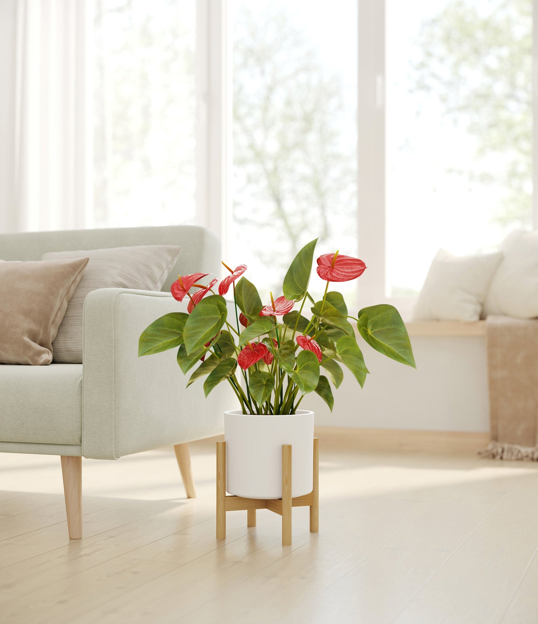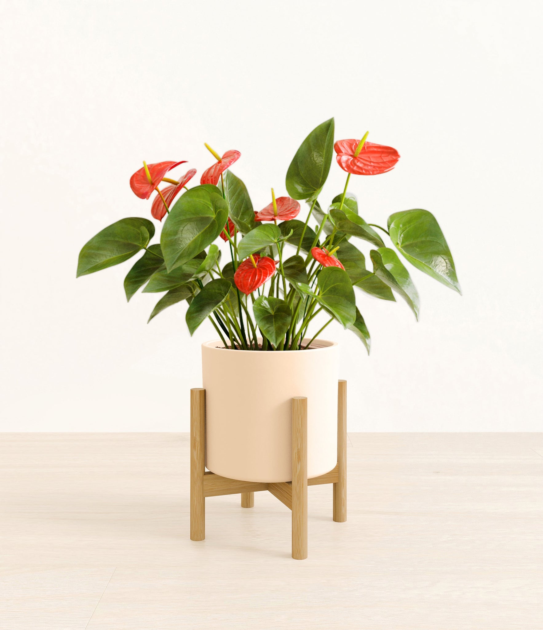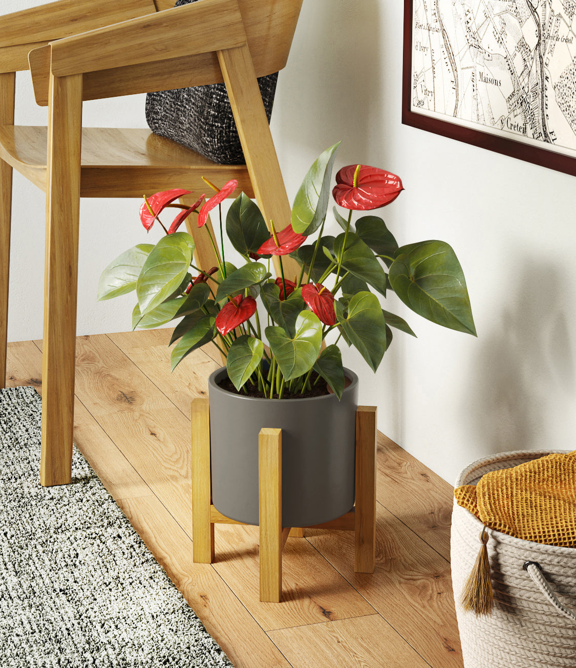 Native to the Americas and Caribbeans, this tropical evergreen beauty brings out the best and brightest in any space it inhabits. The colorful heart-shaped waxy leaves, called spathes, act as protectors for its straight spike, called spadix, where very small flowers grow in its bloom. Thanks to its long-lived, heart-opening charm, Anthurium is the quintessential symbol of generosity and kindness, making it a perfect gift for those you love the most. It is cherished for its long blooms, lasting anywhere from eight to twelve weeks.