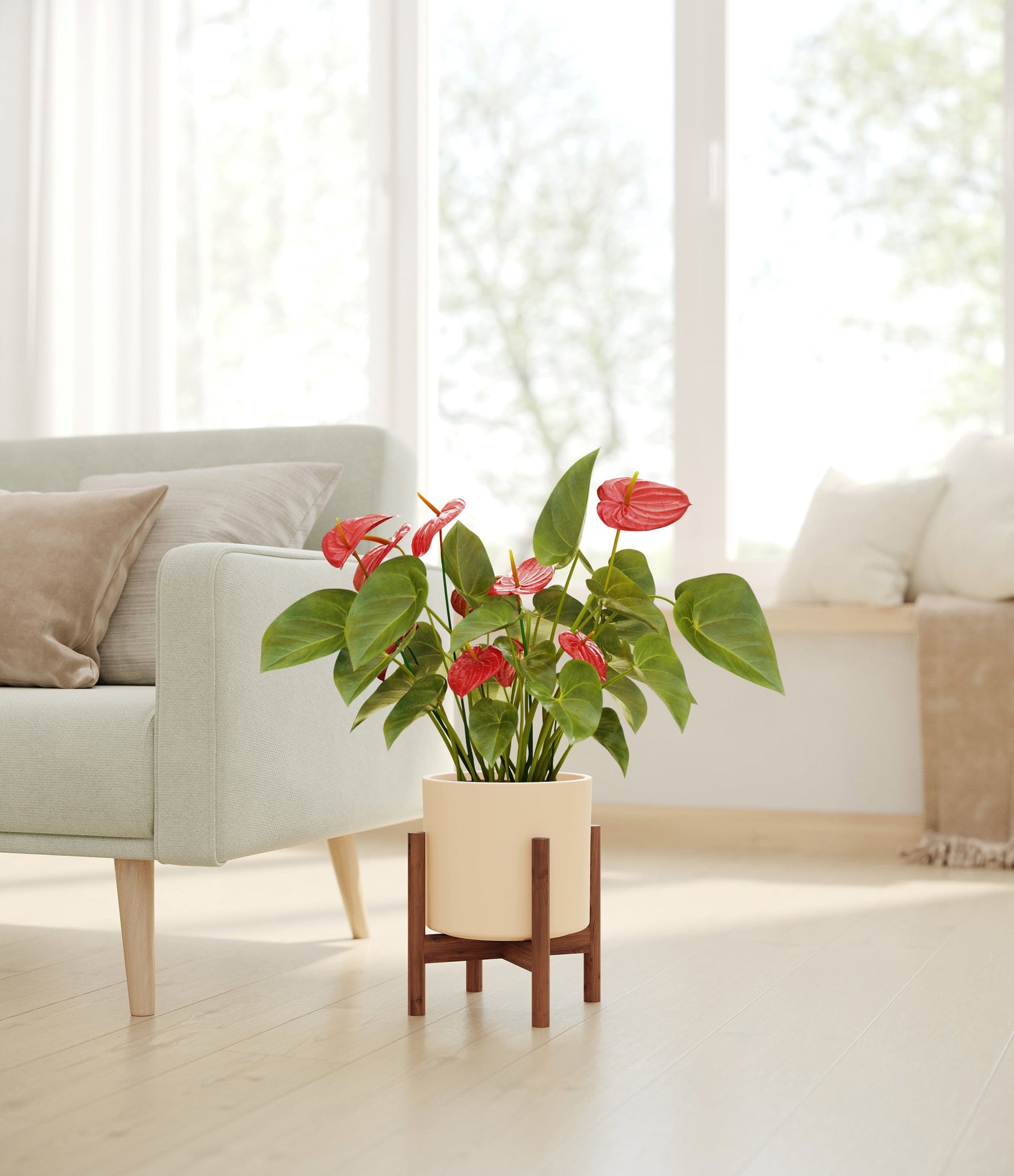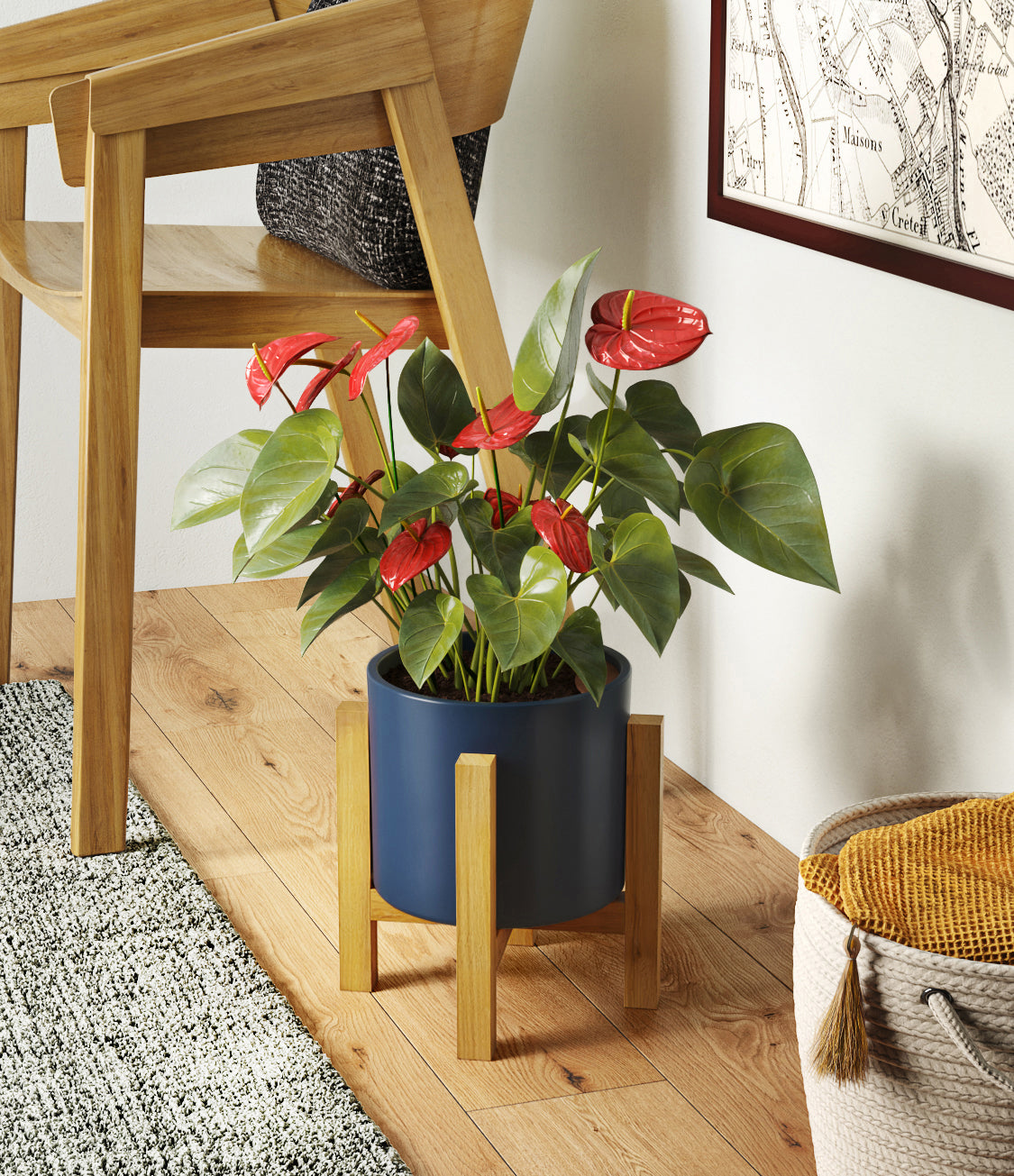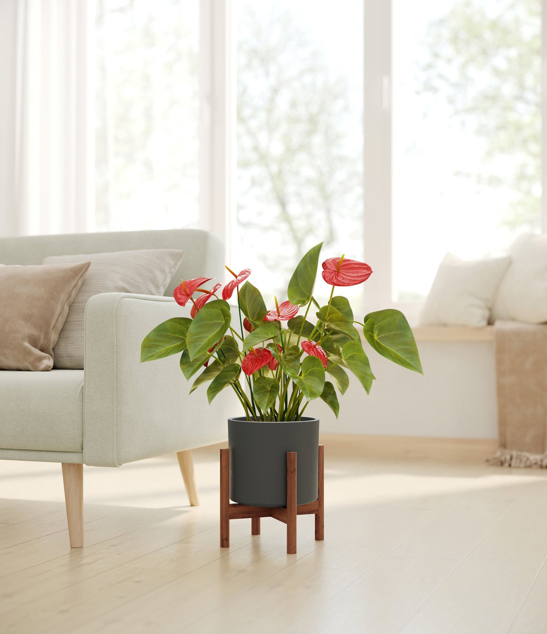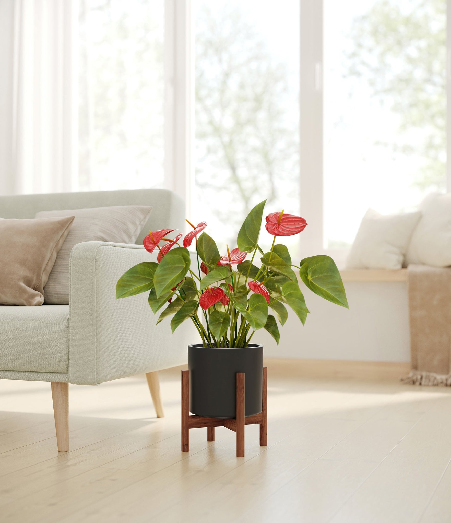 Native to the Americas and Caribbeans, this tropical evergreen beauty brings out the best and brightest in any space it inhabits. The colorful heart-shaped waxy leaves, called spathes, act as protectors for its straight spike, called spadix, where very small flowers grow in its bloom. Thanks to its long-lived, heart-opening charm, Anthurium is the quintessential symbol of generosity and kindness, making it a perfect gift for those you love the most. It is cherished for its long blooms, lasting anywhere from eight to twelve weeks.
