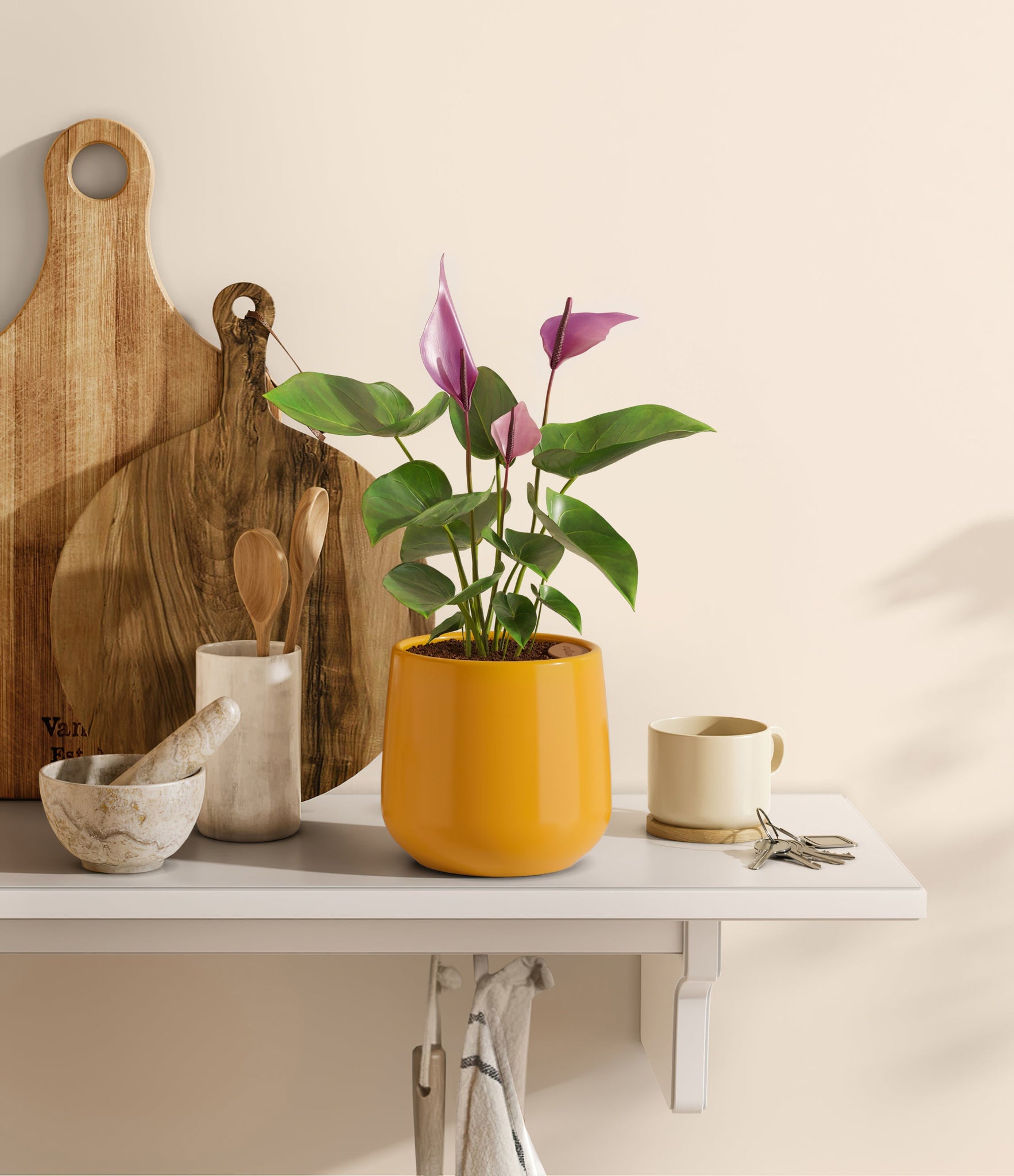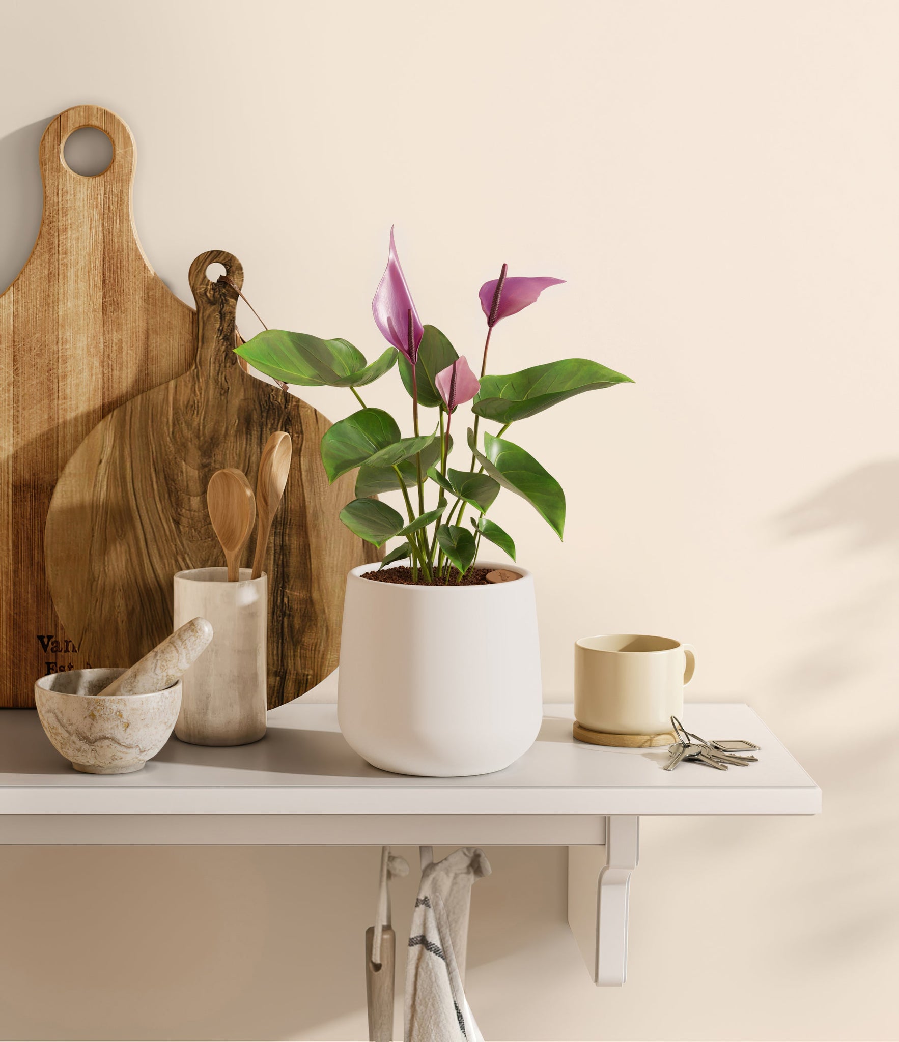 Hailing from Colombia and Ecuador, the Anthurium 'Zizou' dazzles with its vibrant pink and purple spathes that bring a touch of the Andean tropics to any setting. This cultivar is celebrated for its glossy, deep green foliage and heart-shaped leaves that frame its colorful flowers. Symbolizing hospitality and joy, 'Zizou' is a delightful choice for plant lovers seeking minimal maintenance and year-round beauty. Its long-lasting blooms and resilience make it an ideal indoor companion, enhancing your space with its tropical charm.