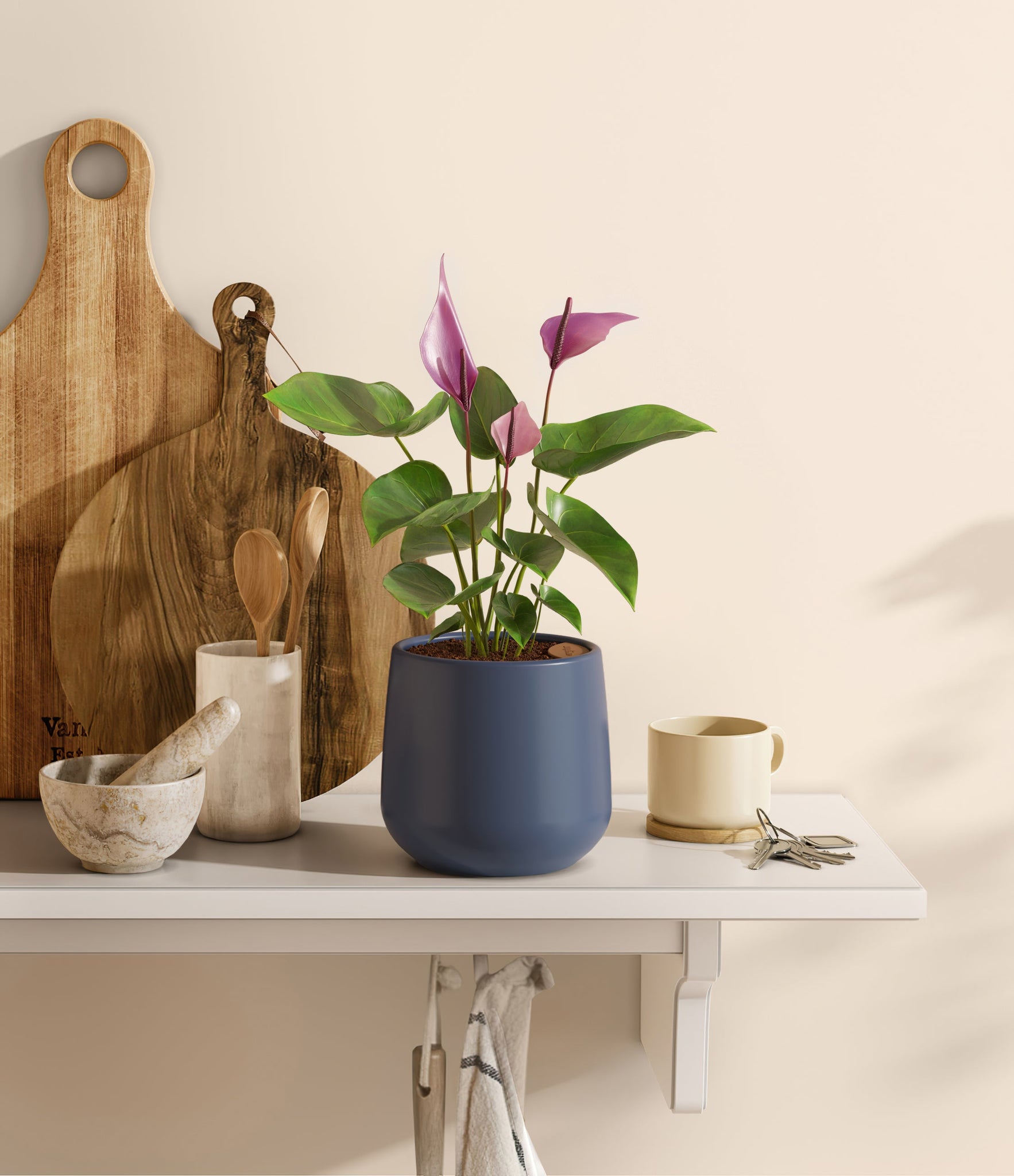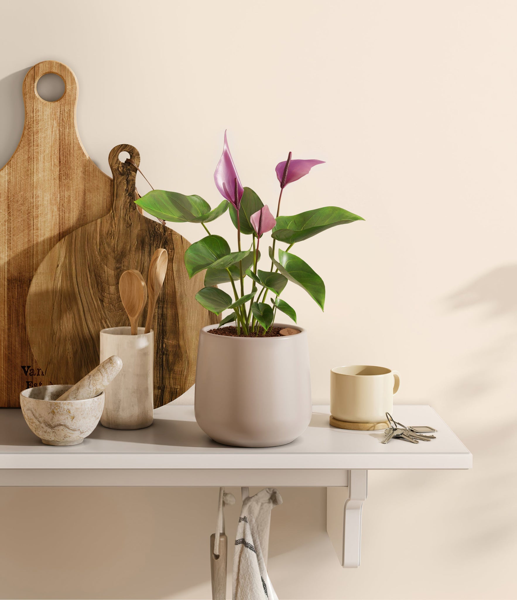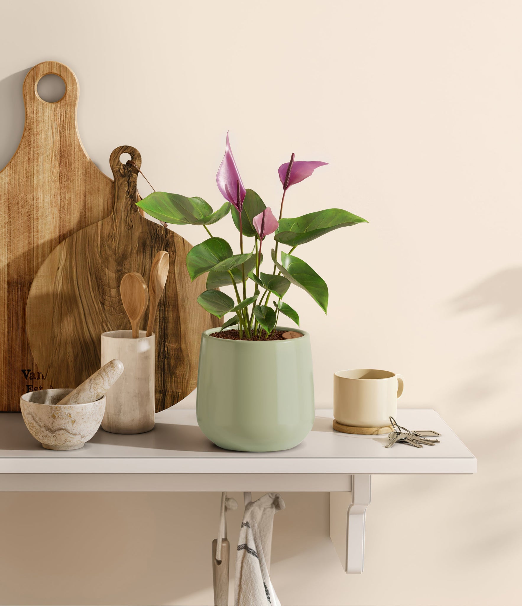 Hailing from Colombia and Ecuador, the Anthurium 'Zizou' dazzles with its vibrant pink and purple spathes that bring a touch of the Andean tropics to any setting. This cultivar is celebrated for its glossy, deep green foliage and heart-shaped leaves that frame its colorful flowers. Symbolizing hospitality and joy, 'Zizou' is a delightful choice for plant lovers seeking minimal maintenance and year-round beauty. Its long-lasting blooms and resilience make it an ideal indoor companion, enhancing your space with its tropical charm.