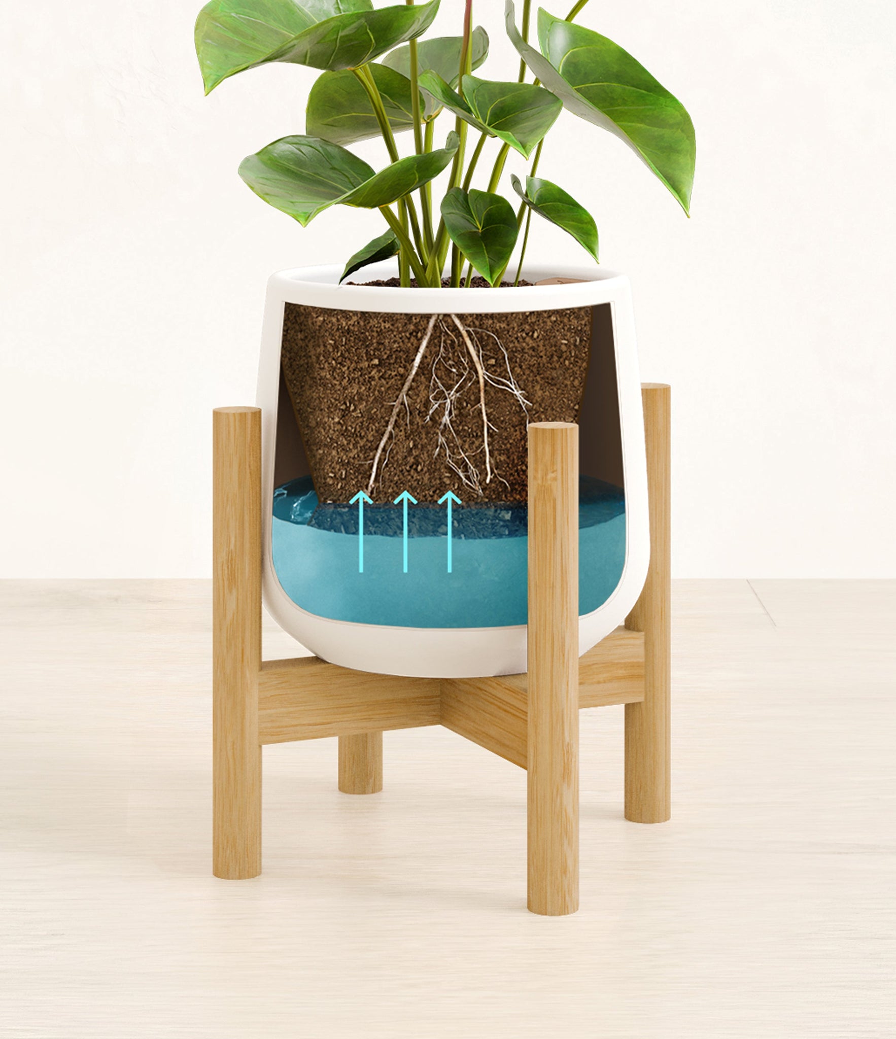 Turquoise stand:bamboo