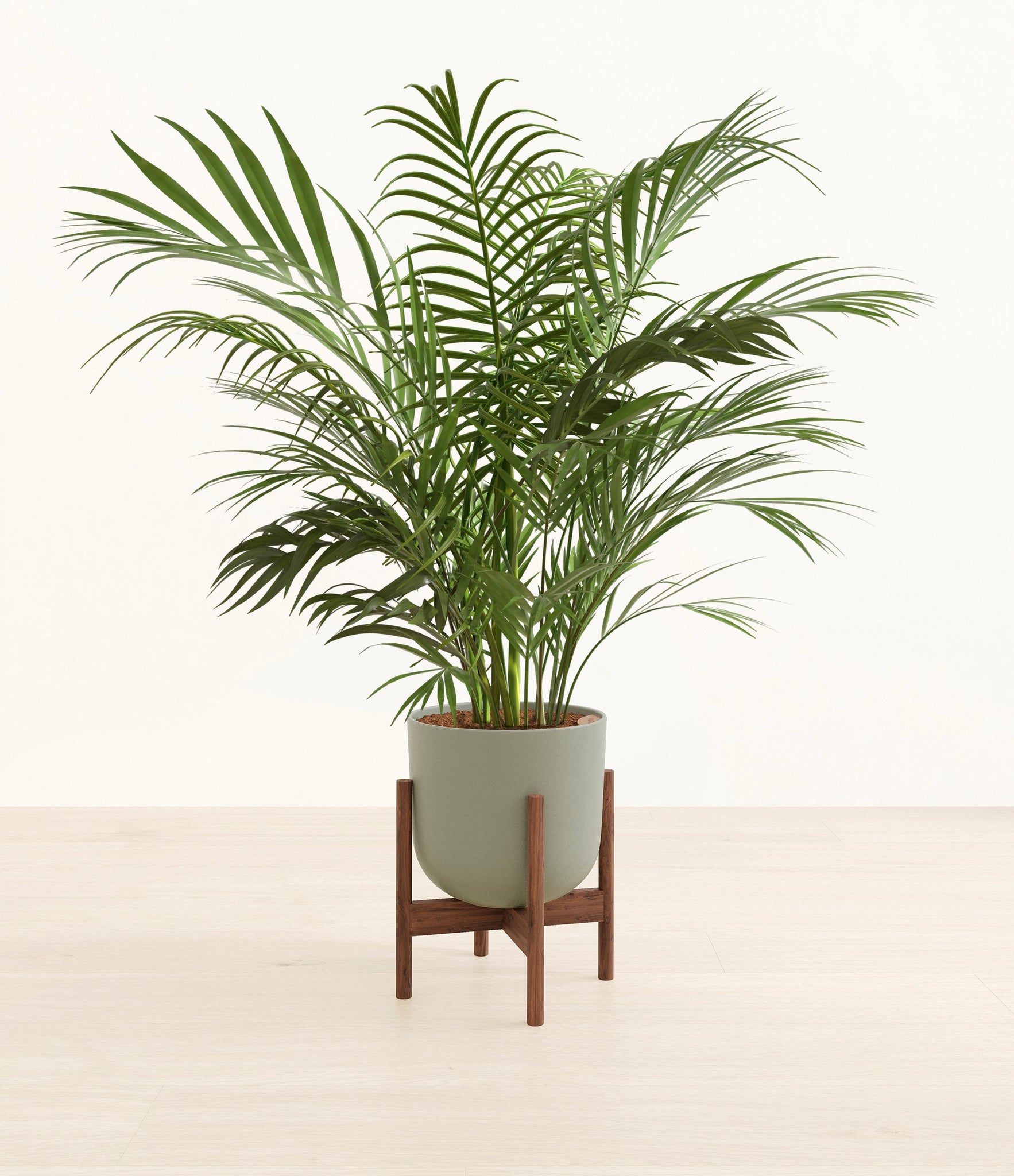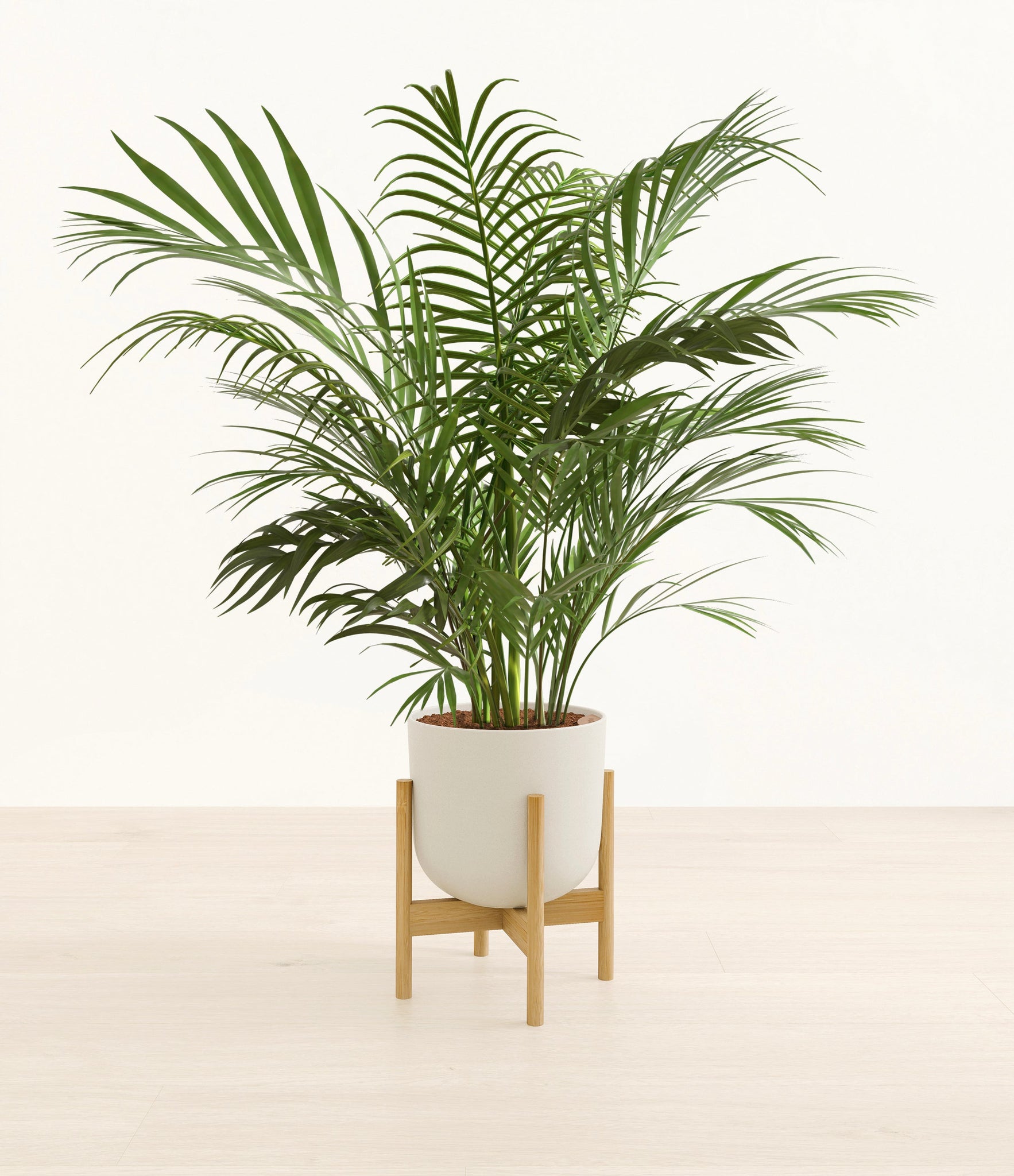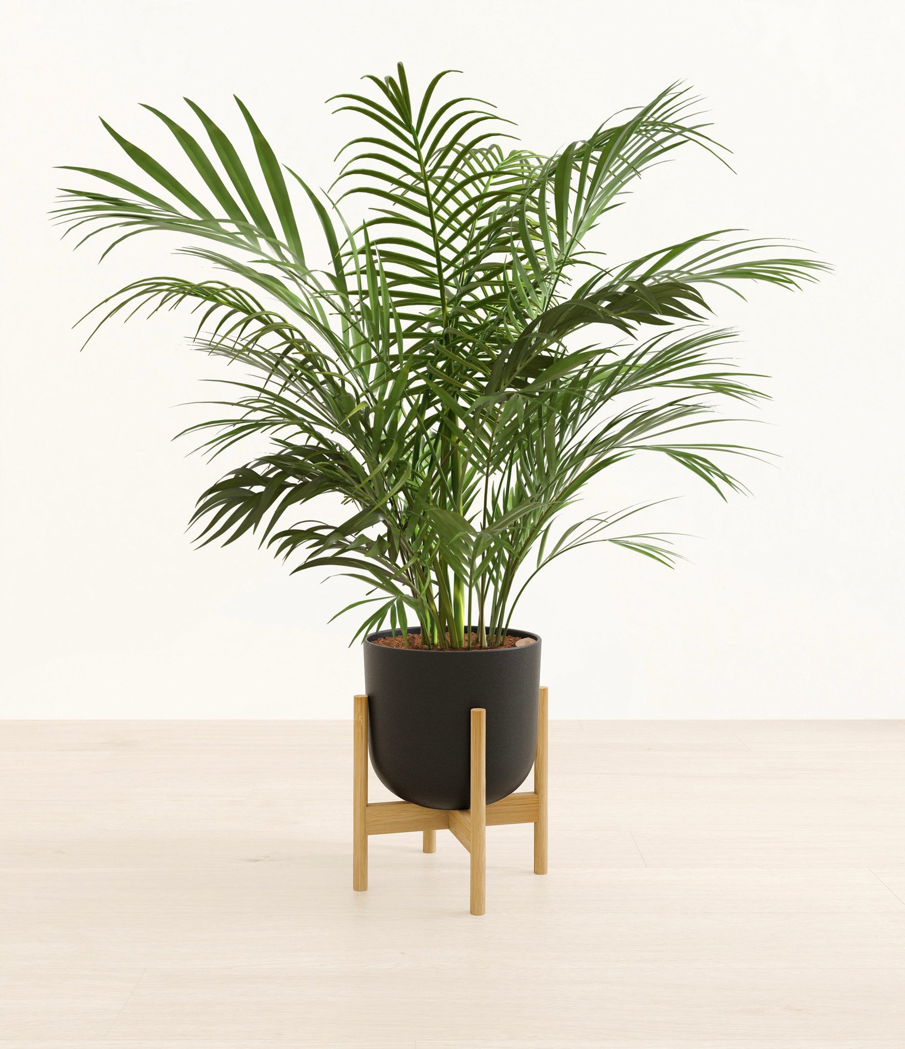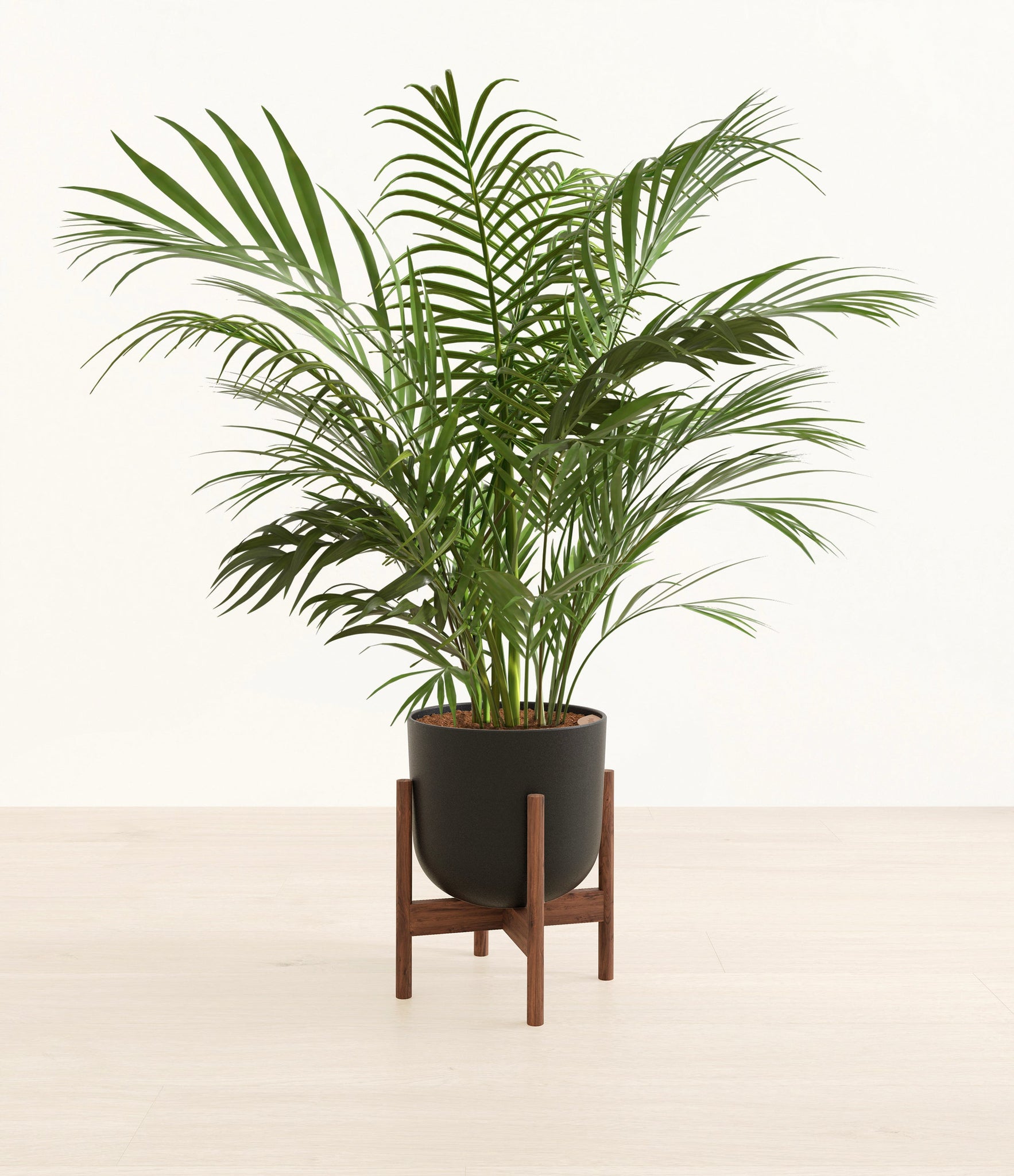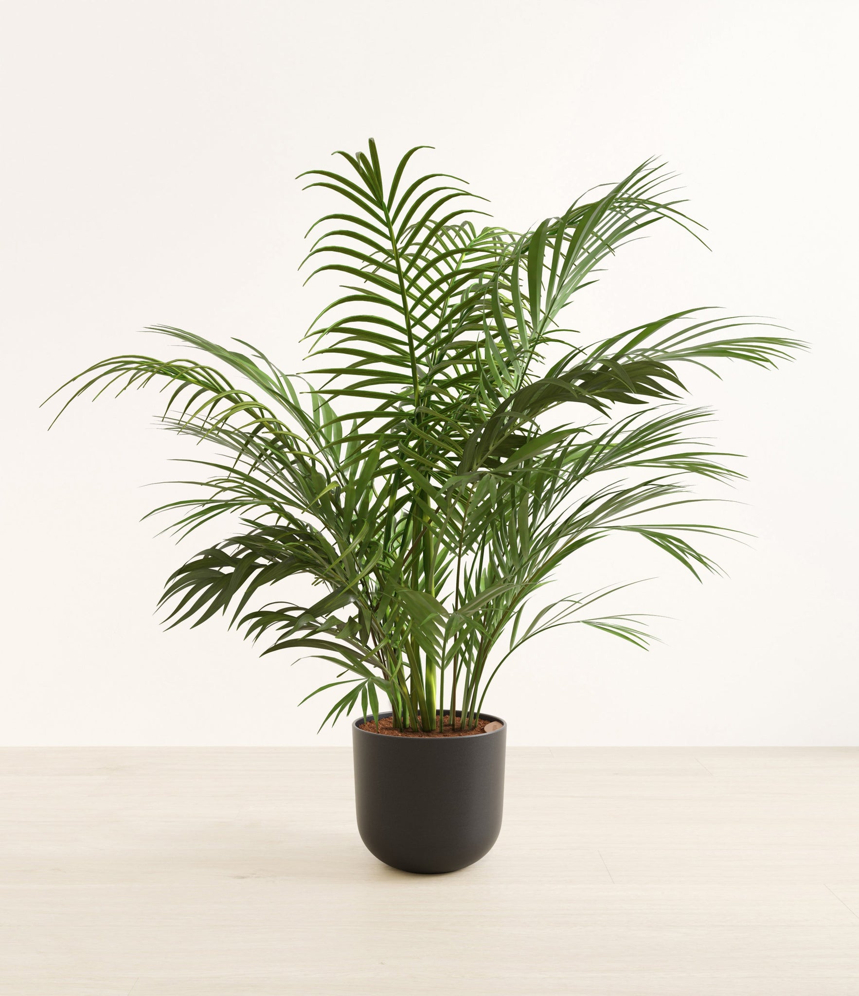 Potted in a premium quality self-watering pot with a soft matte finish, the Areca Palm is a slow to moderate-growing plant that can reach ten feet indoors and up to 35 feet outdoors.