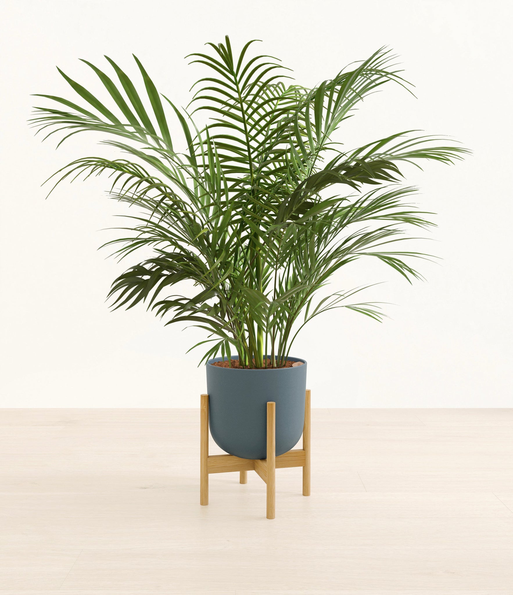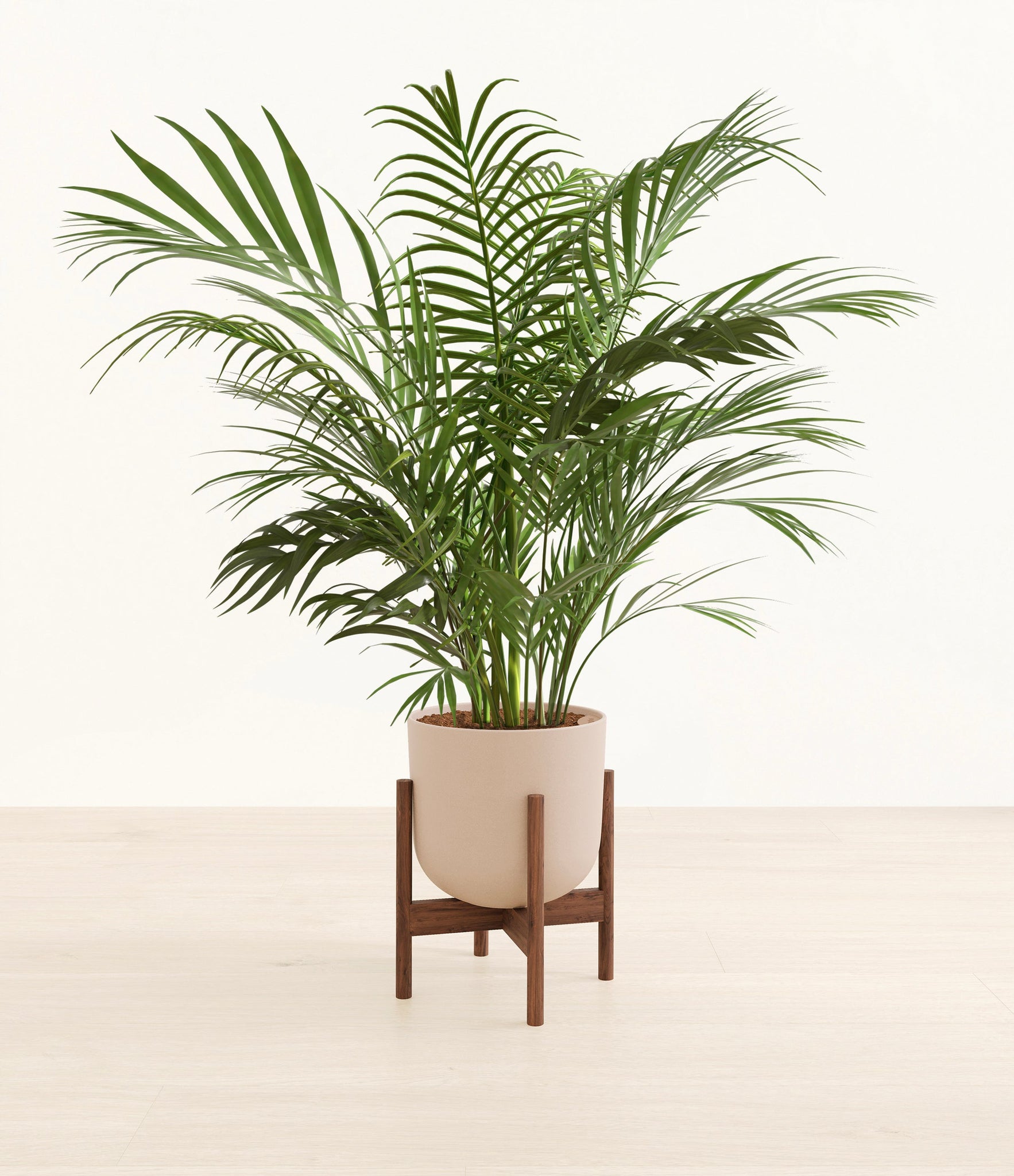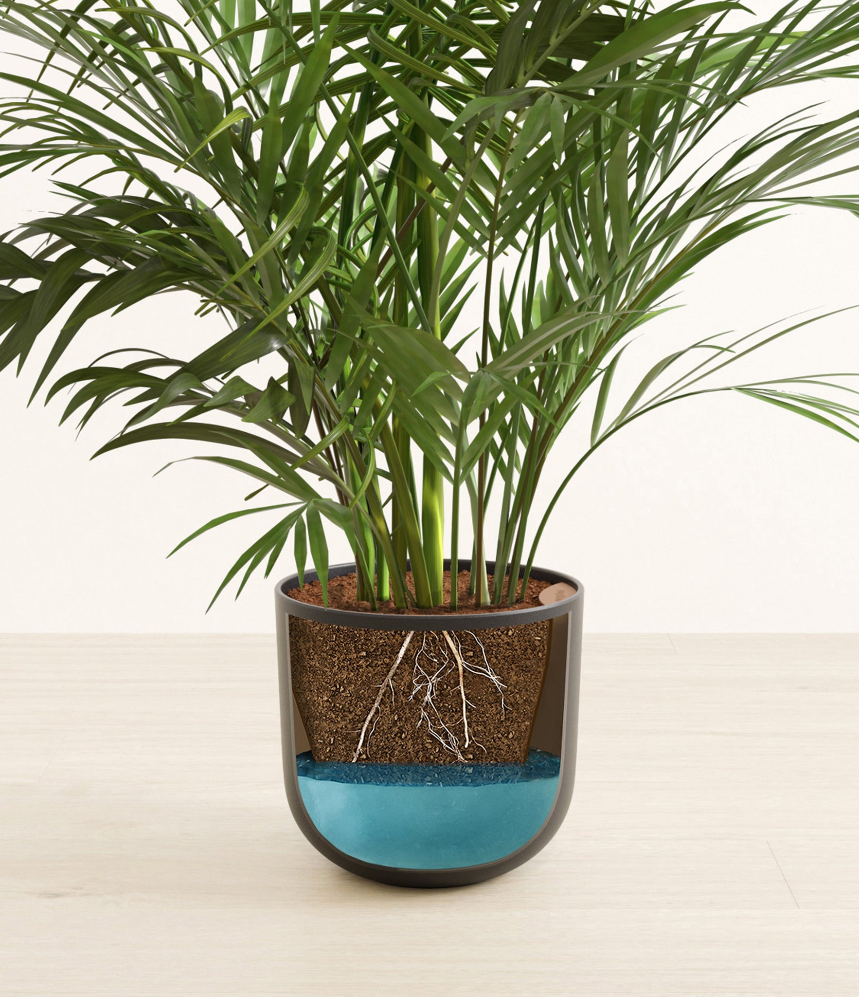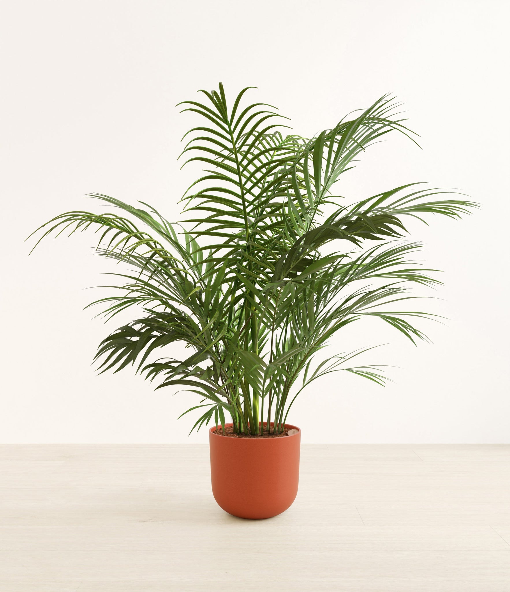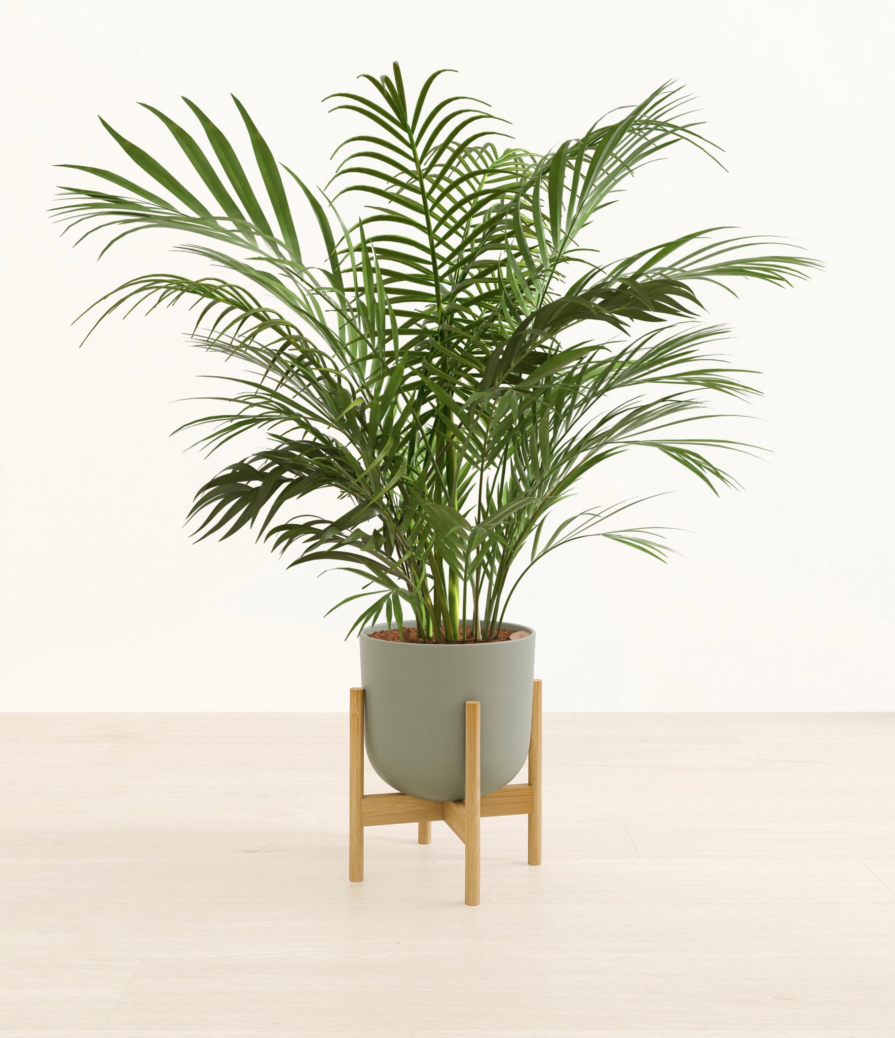 Potted in a premium quality self-watering pot with a soft matte finish, the Areca Palm is a slow to moderate-growing plant that can reach ten feet indoors and up to 35 feet outdoors.