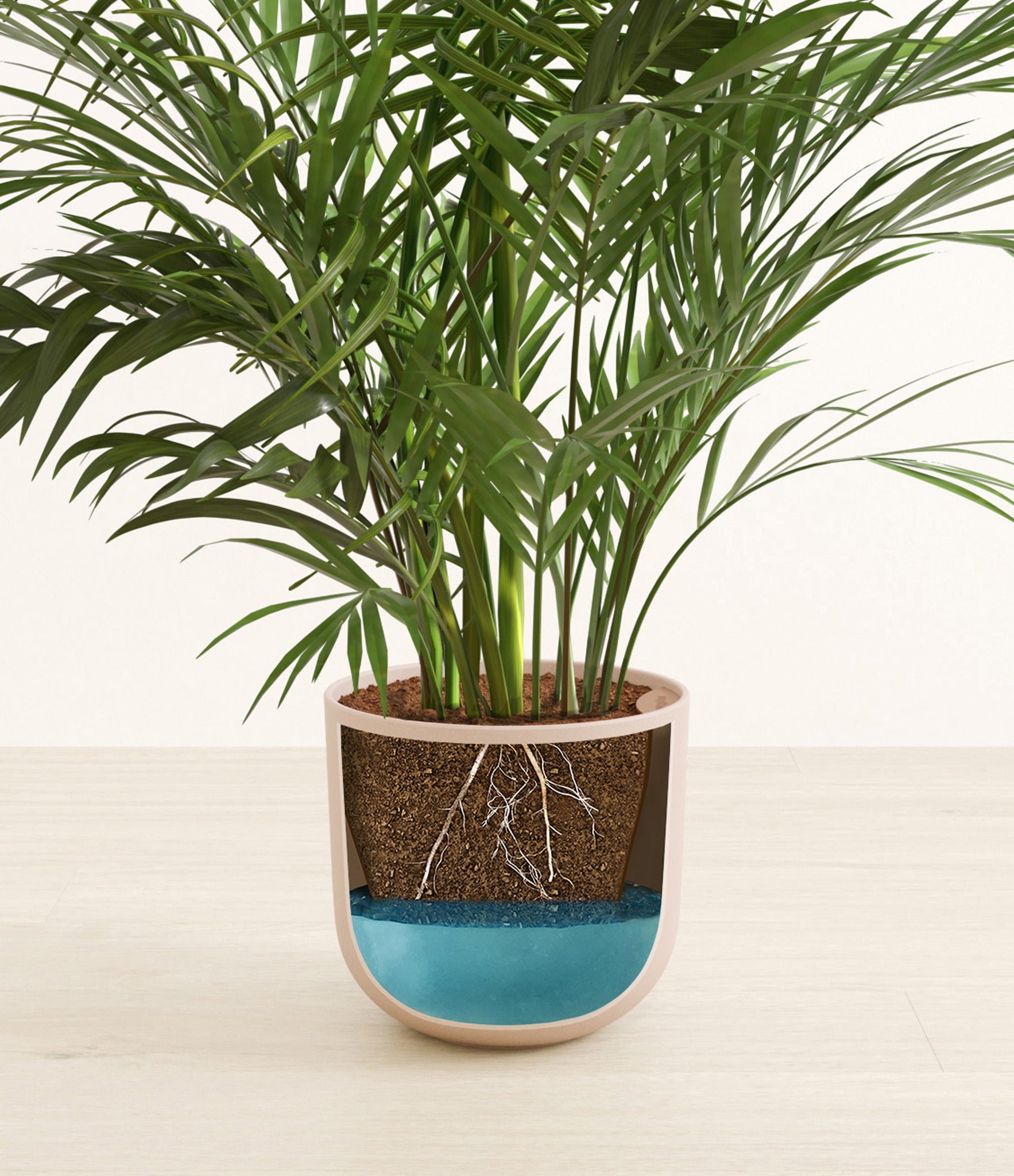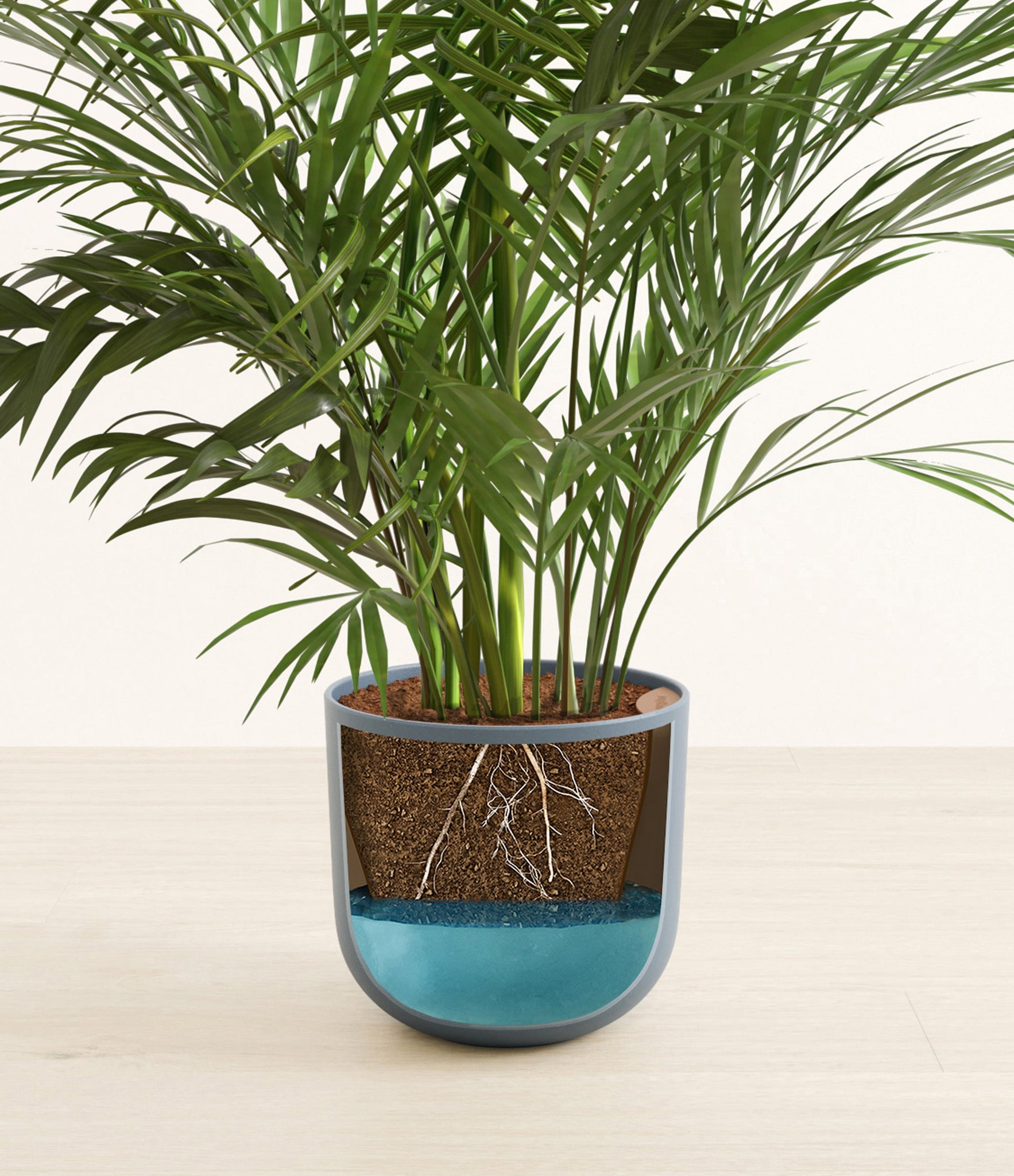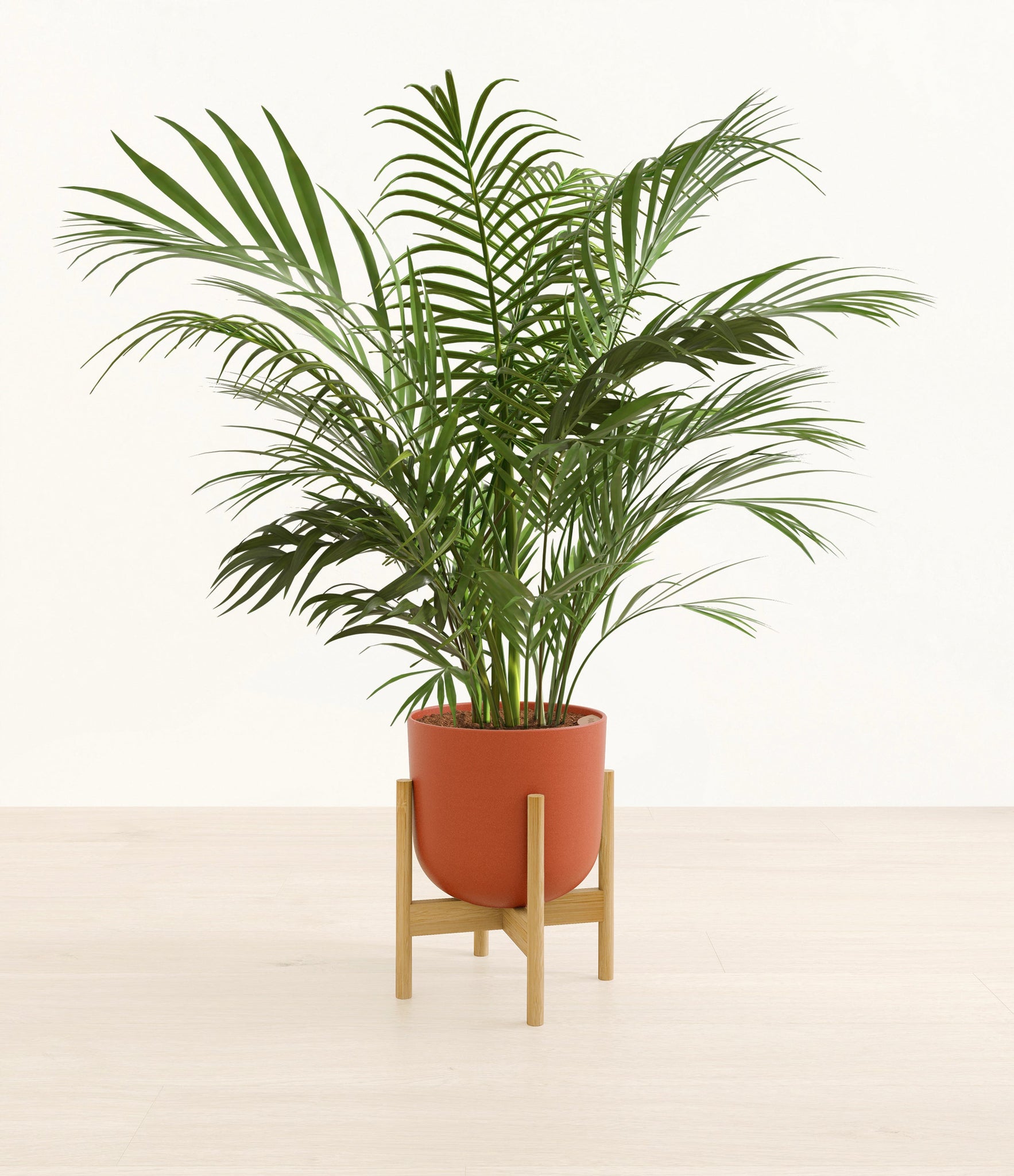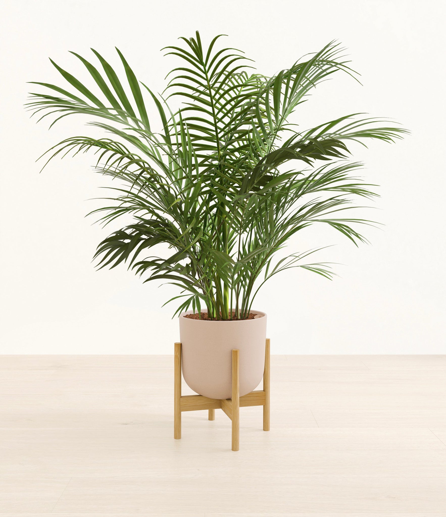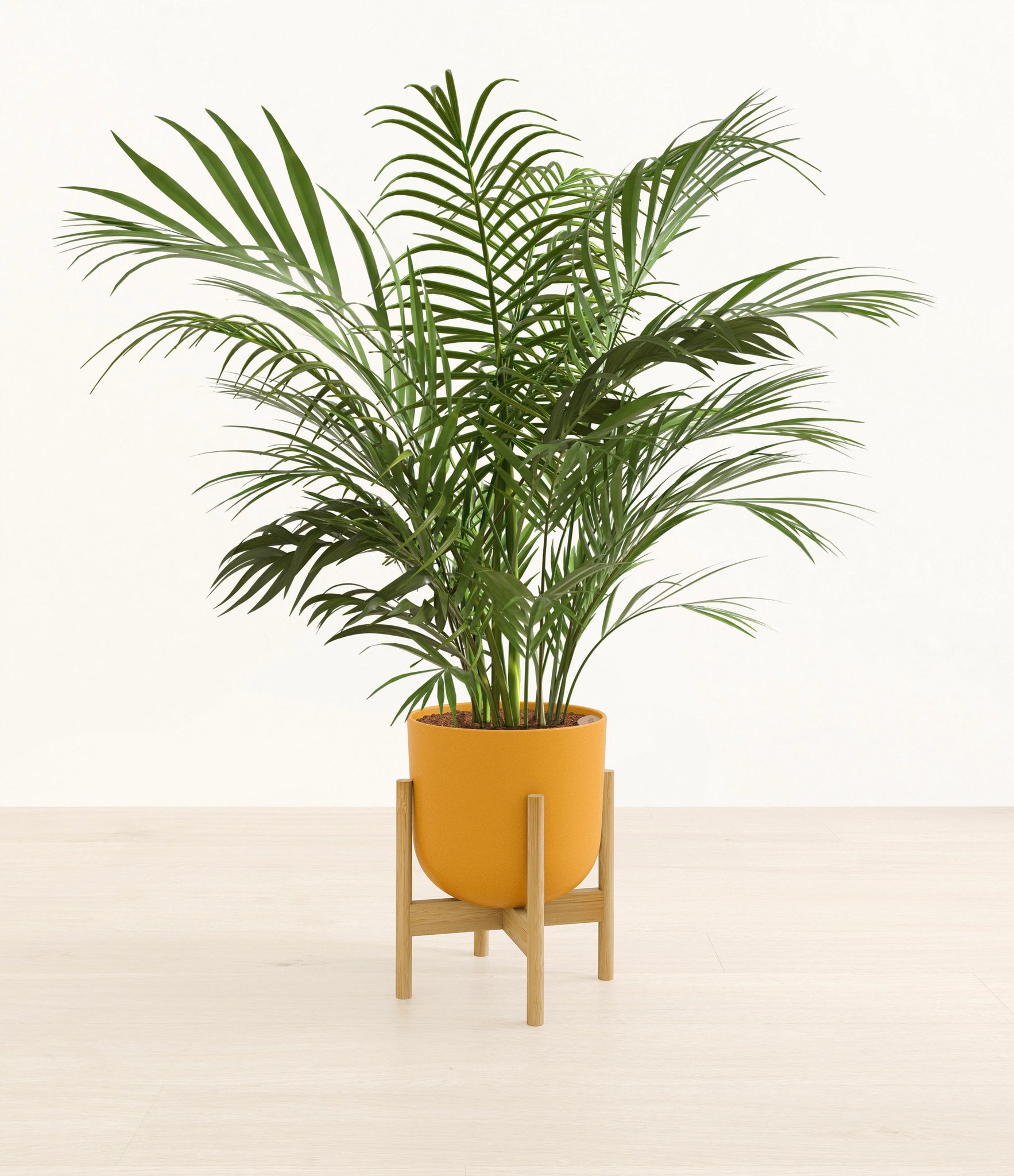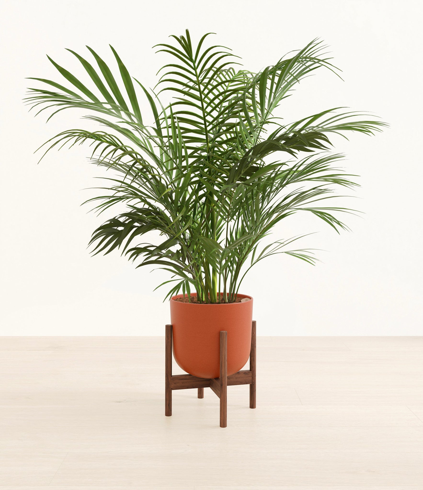 Potted in a premium quality self-watering pot with a soft matte finish, the Areca Palm is a slow to moderate-growing plant that can reach ten feet indoors and up to 35 feet outdoors.