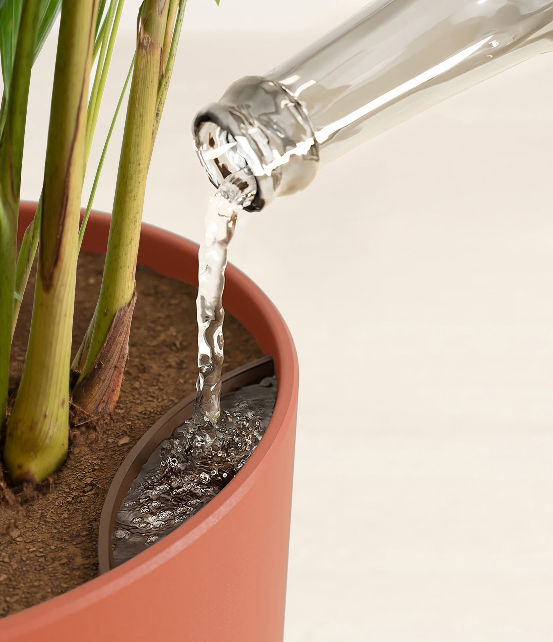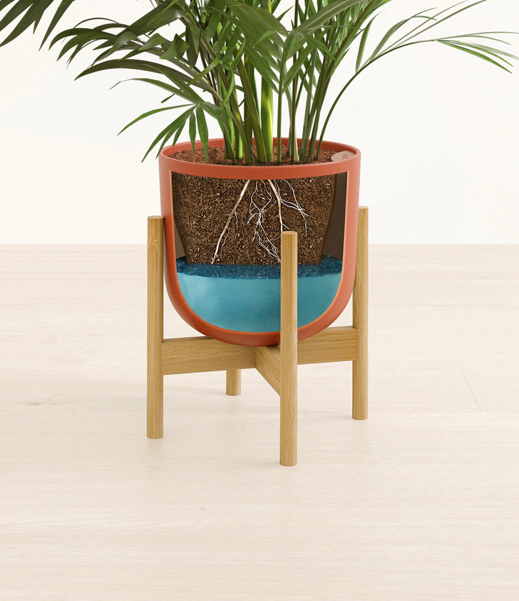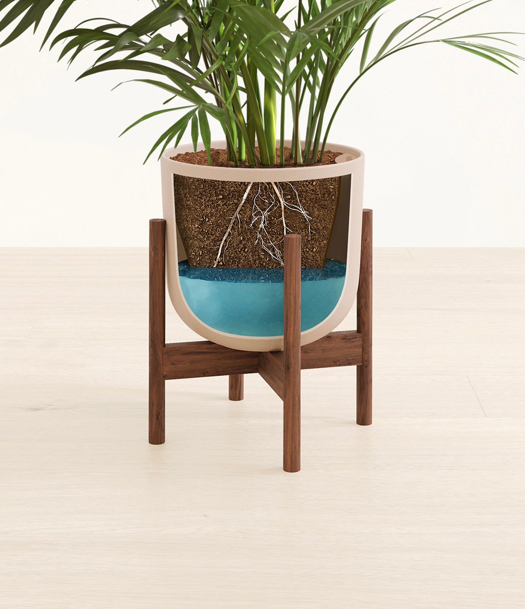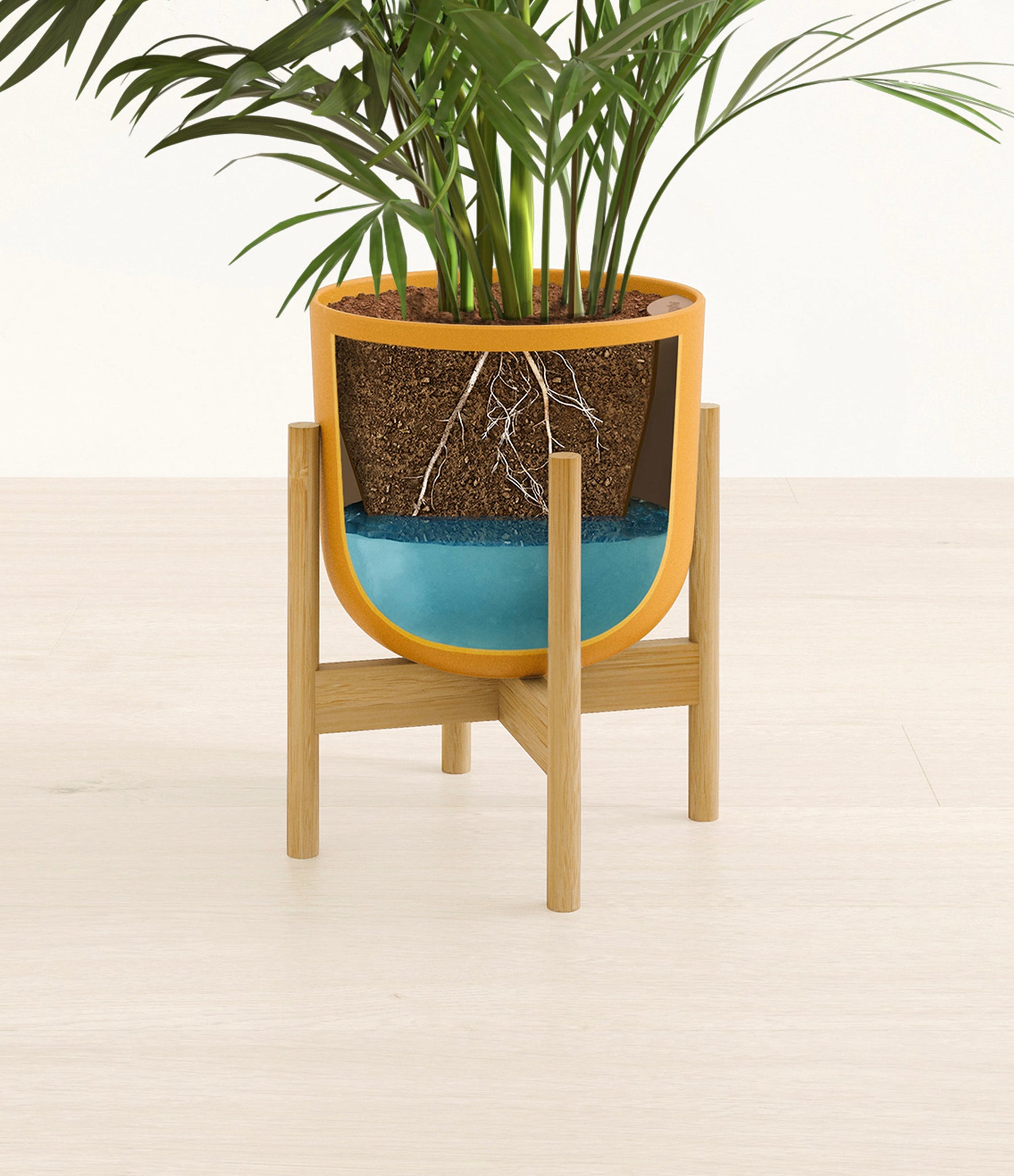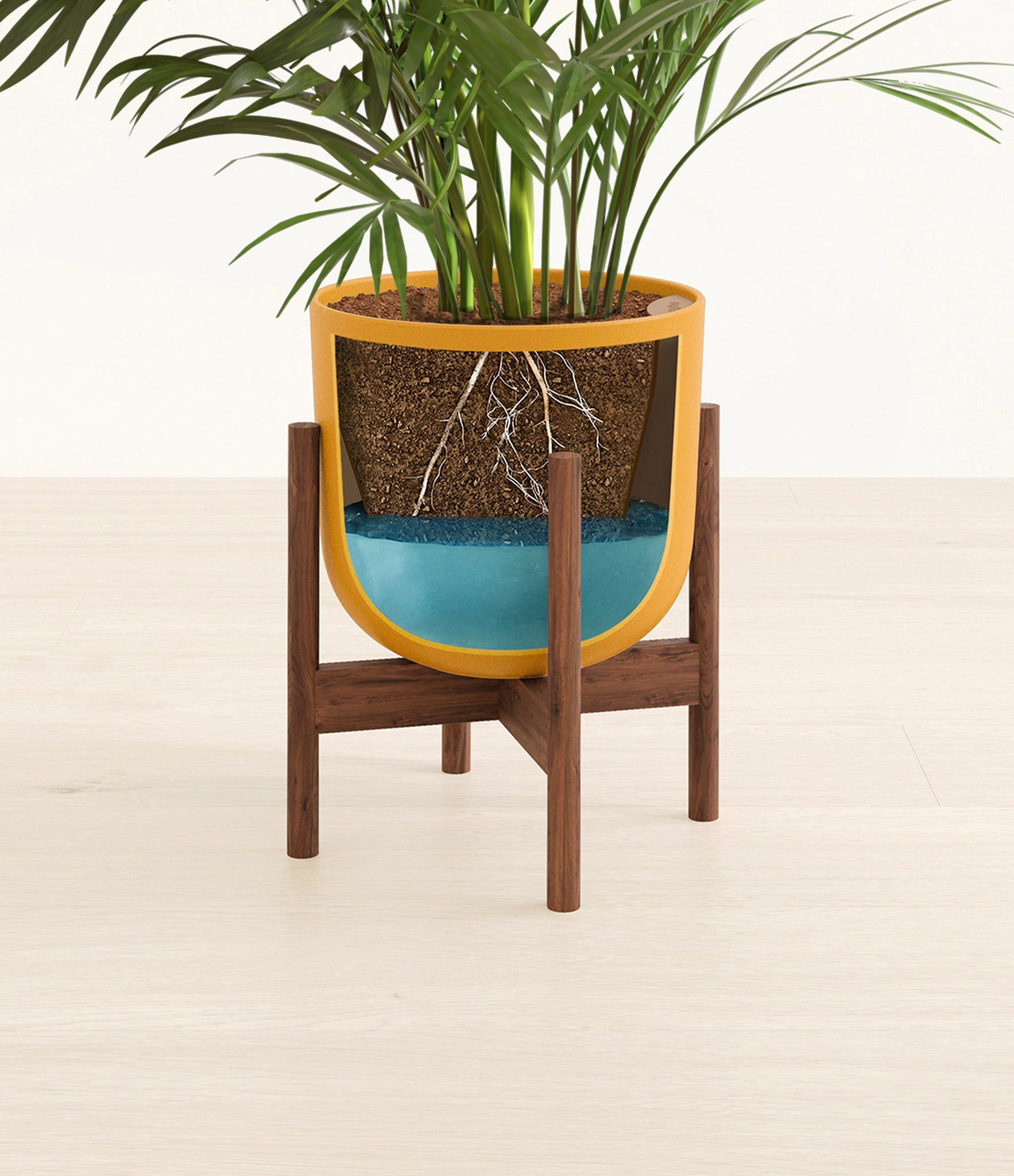 Potted in a premium quality self-watering pot with a soft matte finish, the Areca Palm is a slow to moderate-growing plant that can reach ten feet indoors and up to 35 feet outdoors.