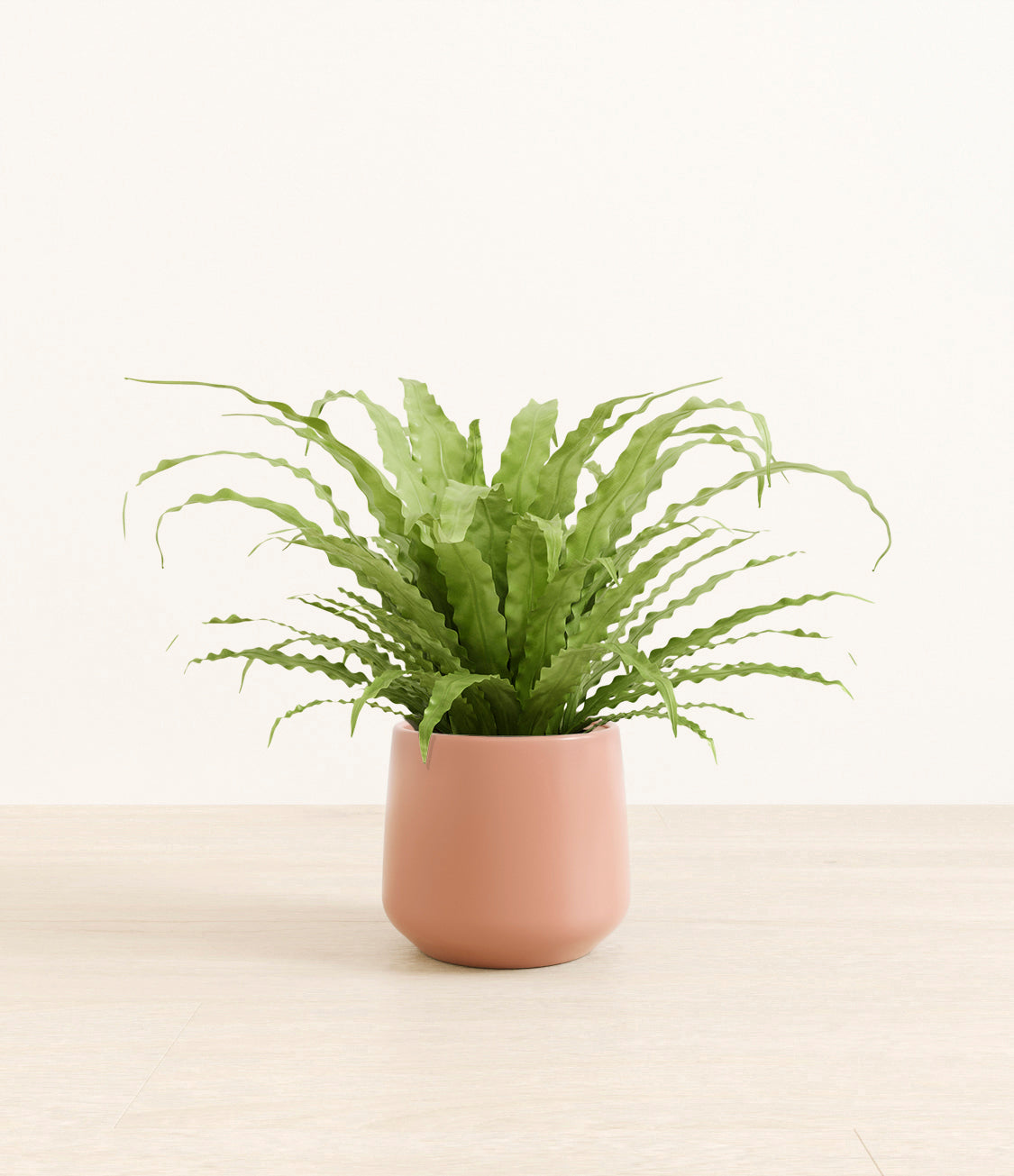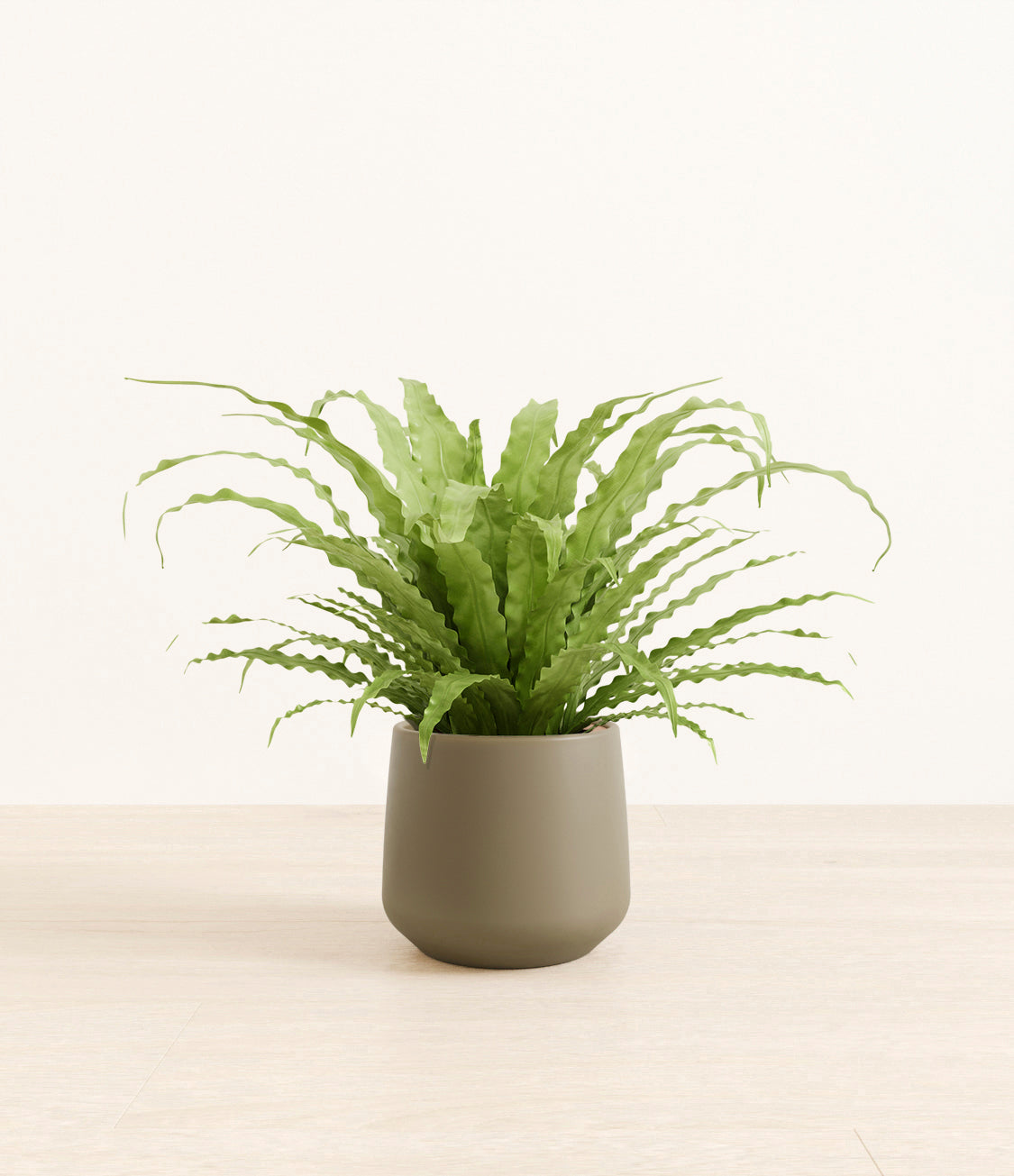In its native home of the South American rainforests, the wild Bird’s Nest Fern is an epiphyte - growing on the trunks of trees, with a special love for palm trees. Bird’s Nest Fern wears bright green, wavy fronds. They sprout in the shape of eggs, to make up a fluttering rosette resembling a delicate, well crafted bird’s nest.