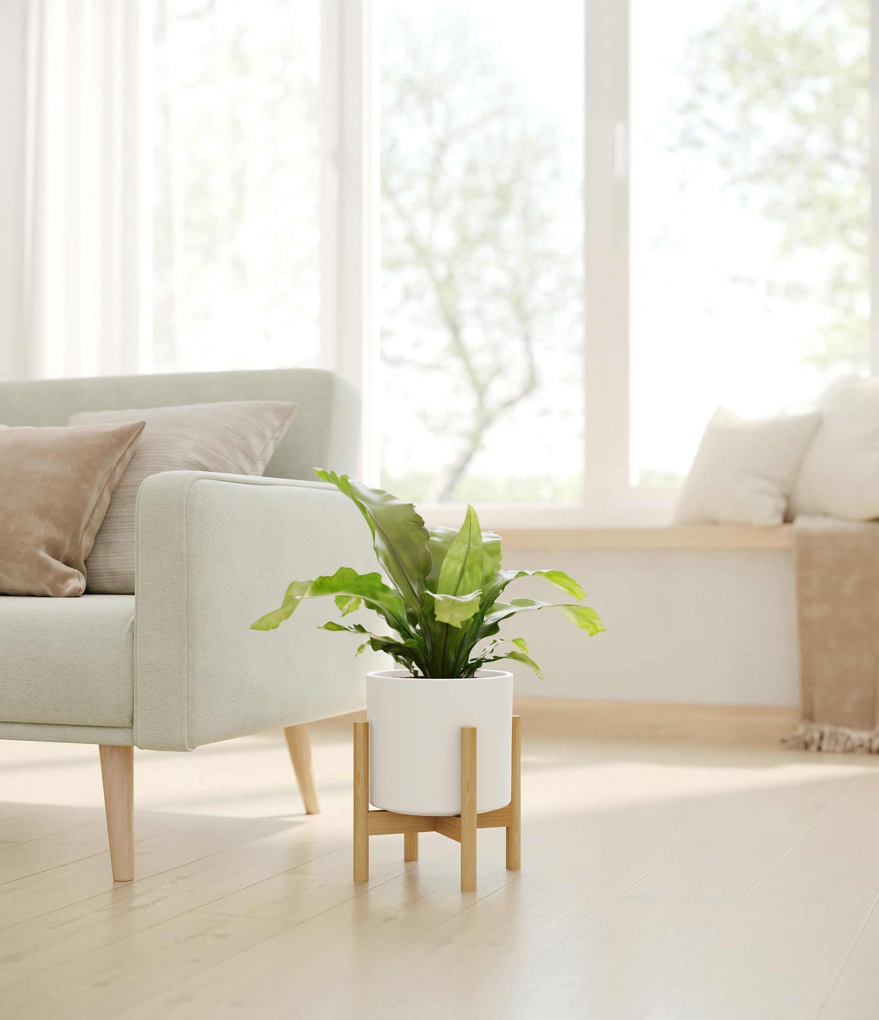 In its native home of the South American rainforests, the wild Bird’s Nest Fern is an epiphyte - growing on the trunks of trees, with a special love for palm trees. Bird’s Nest Fern wears bright green, wavy fronds. They sprout in the shape of eggs, to make up a fluttering rosette resembling a delicate, well crafted bird’s nest.