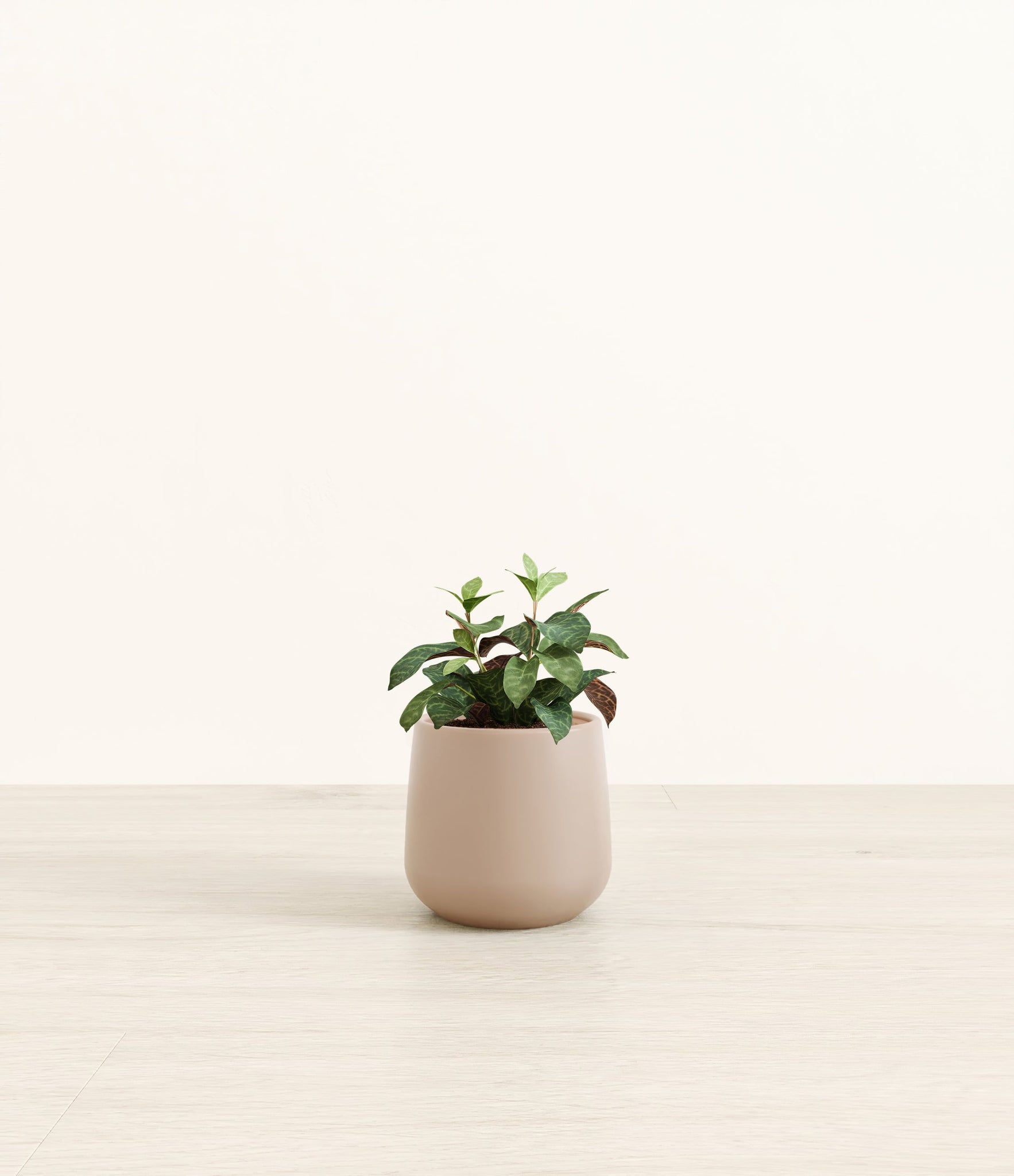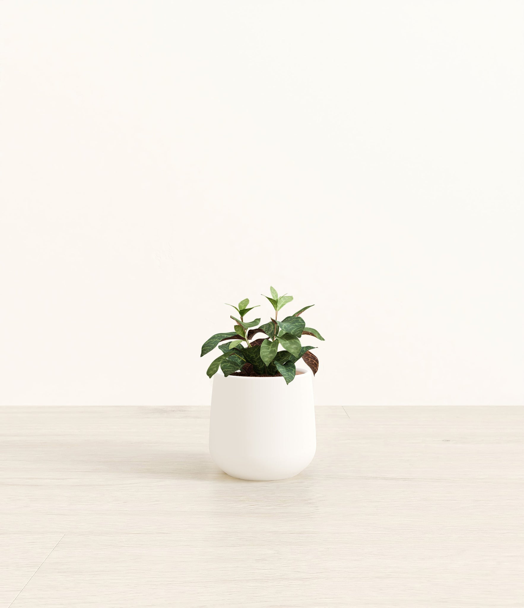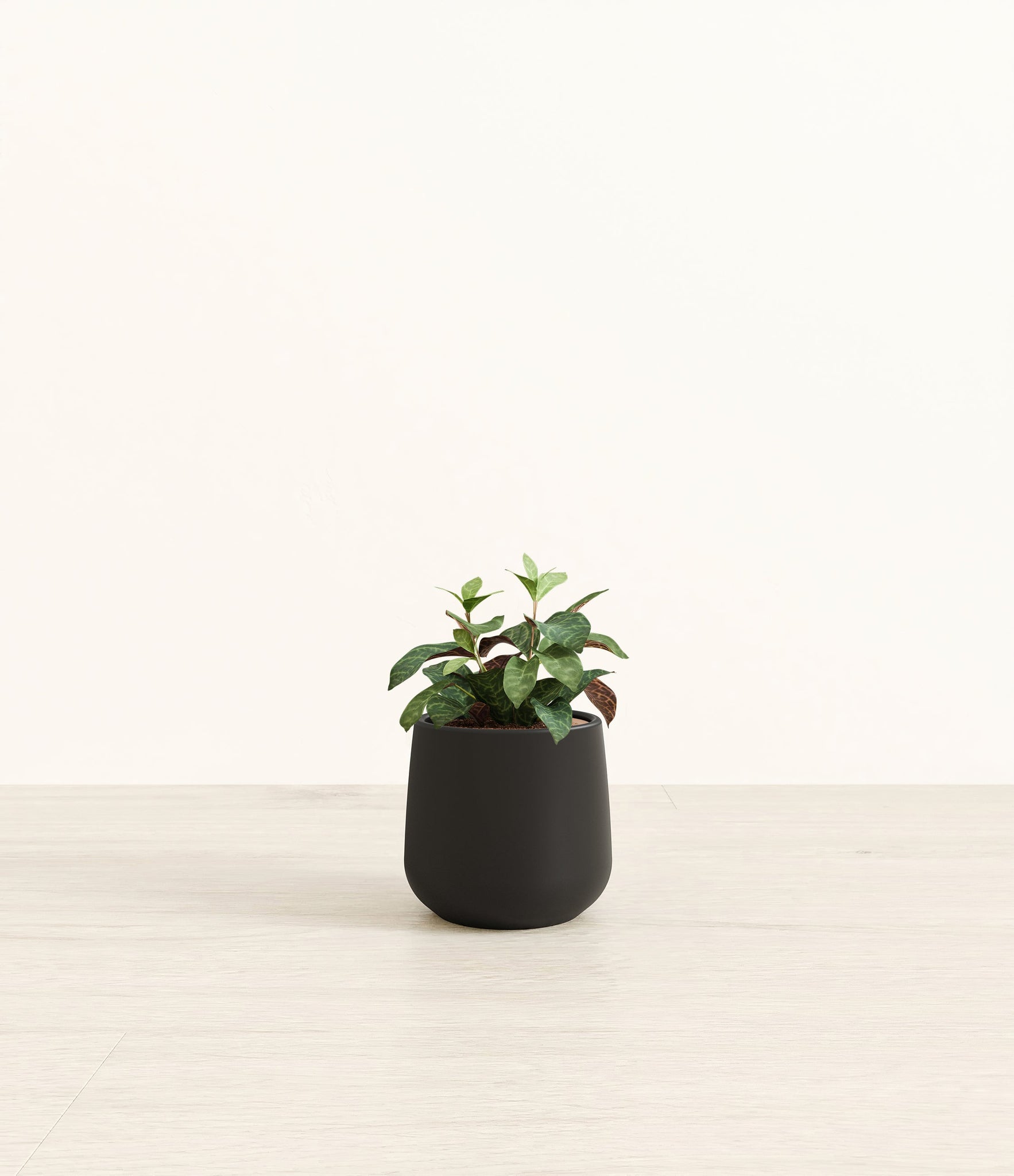 Native to the tropical forests of Southeast Asia, the Lipstick Plant 'Black Pagoda' stands out with its uniquely patterned leaves, showcasing a striking mix of deep green, purple, and black. This exotic beauty captivates with its vivid foliage and vibrant red, tubular flowers that bloom in the warmer months, adding a dramatic splash of color to any indoor setting. Its cascading tendrils make it an ideal choice for high shelves or as a striking centerpiece, enhancing any plant collection with its unique charm.