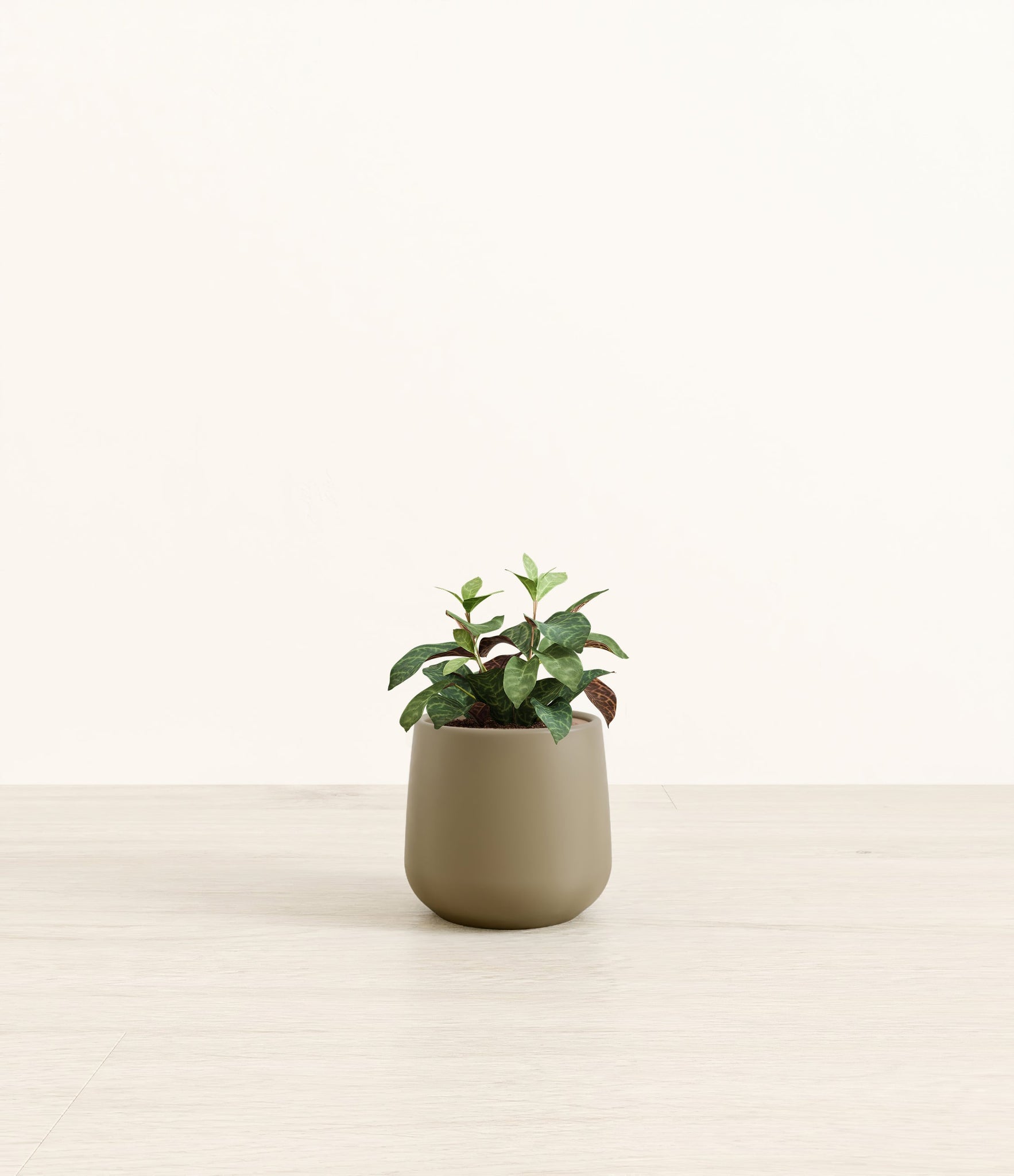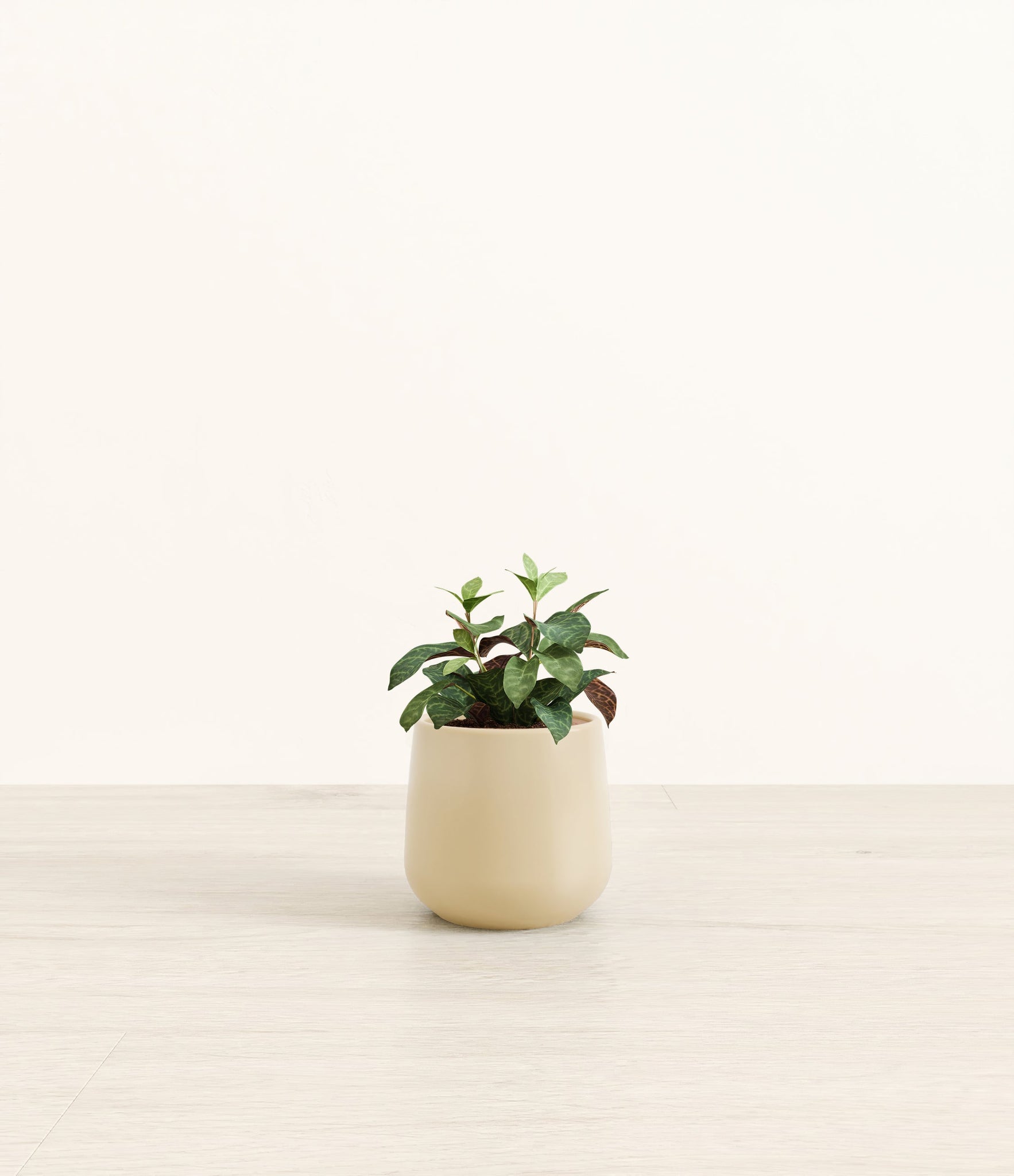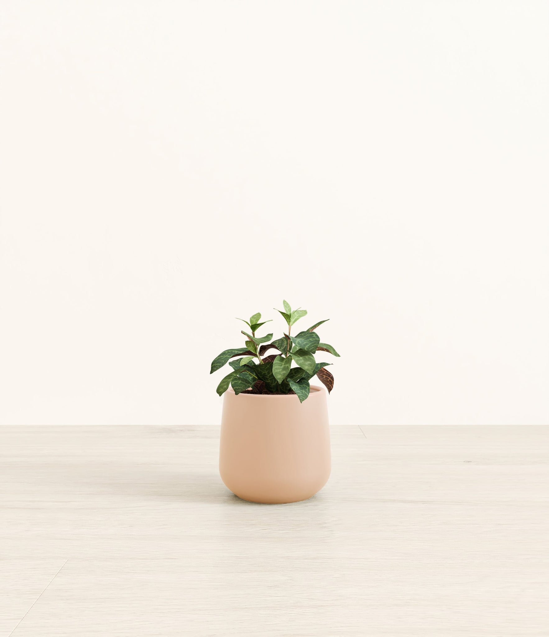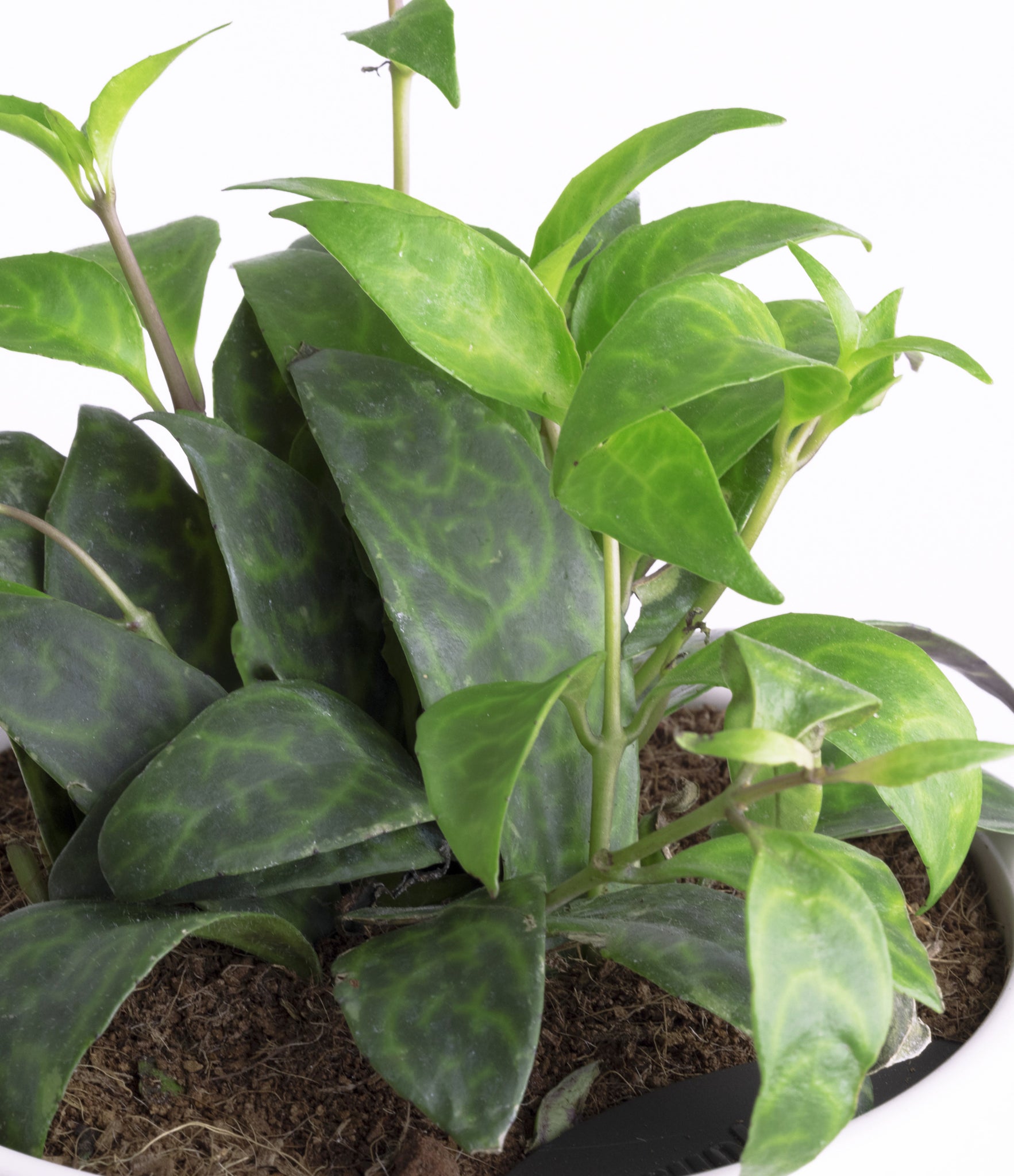 Native to the tropical forests of Southeast Asia, the Lipstick Plant 'Black Pagoda' stands out with its uniquely patterned leaves, showcasing a striking mix of deep green, purple, and black. This exotic beauty captivates with its vivid foliage and vibrant red, tubular flowers that bloom in the warmer months, adding a dramatic splash of color to any indoor setting. Its cascading tendrils make it an ideal choice for high shelves or as a striking centerpiece, enhancing any plant collection with its unique charm.
