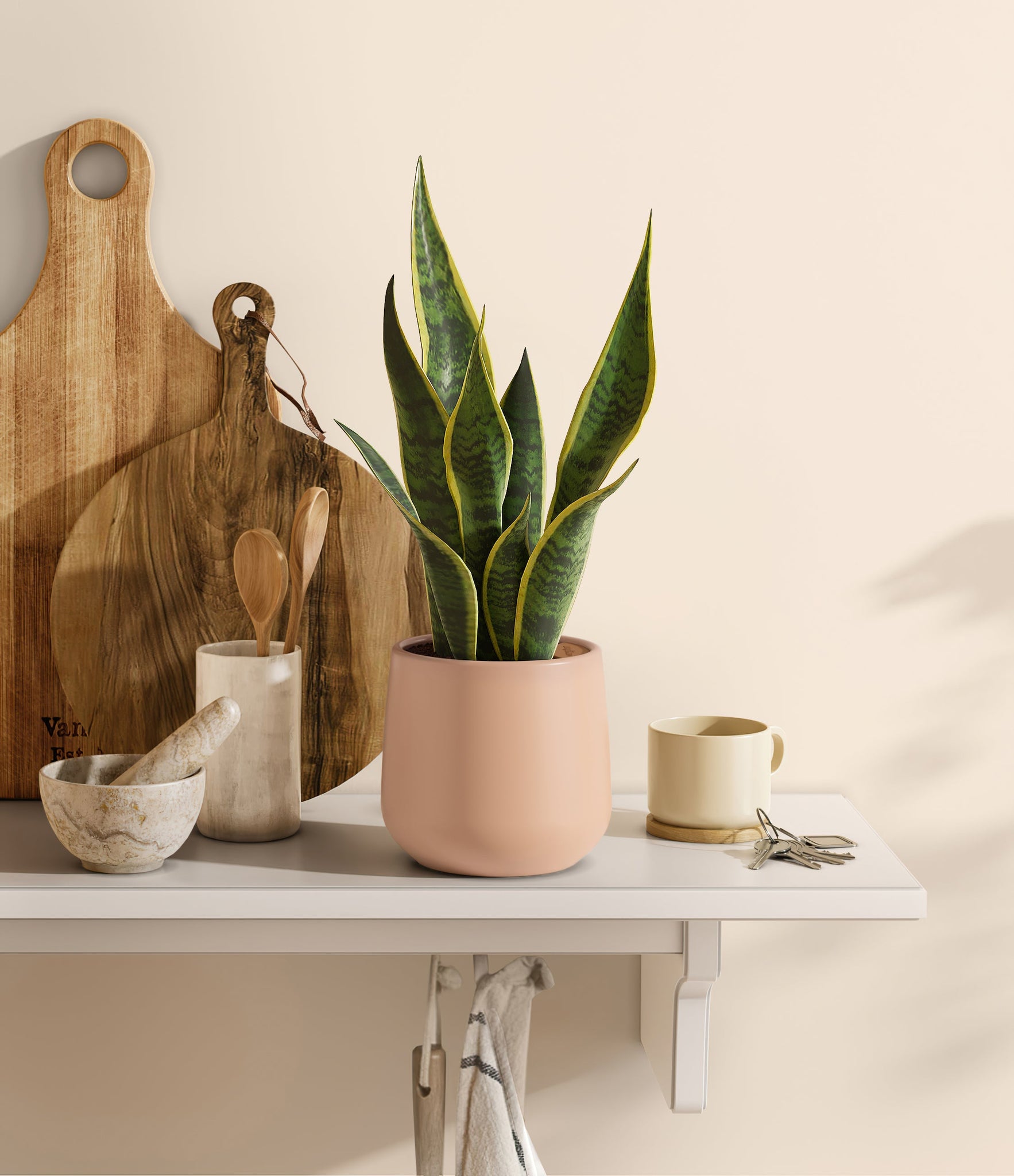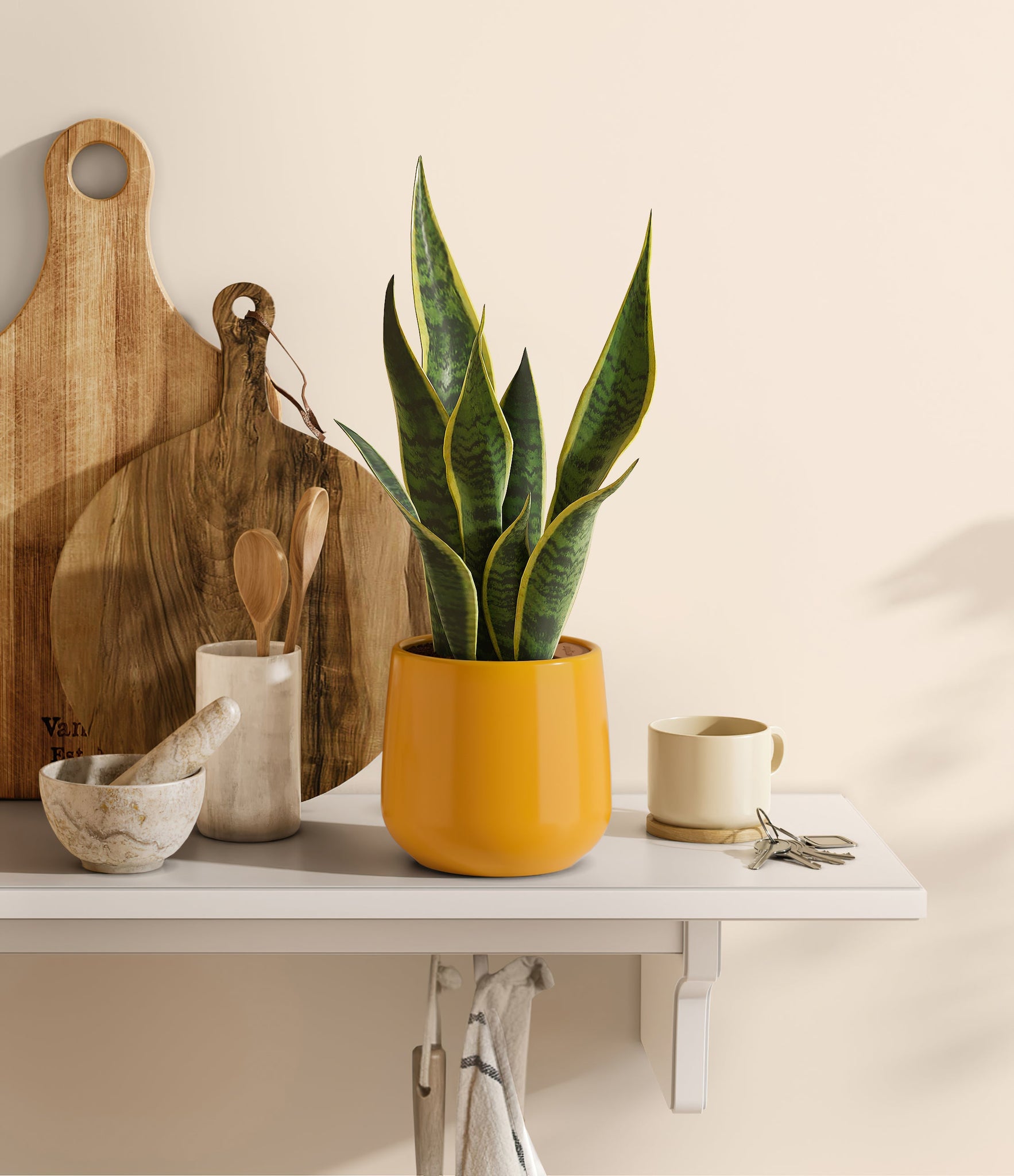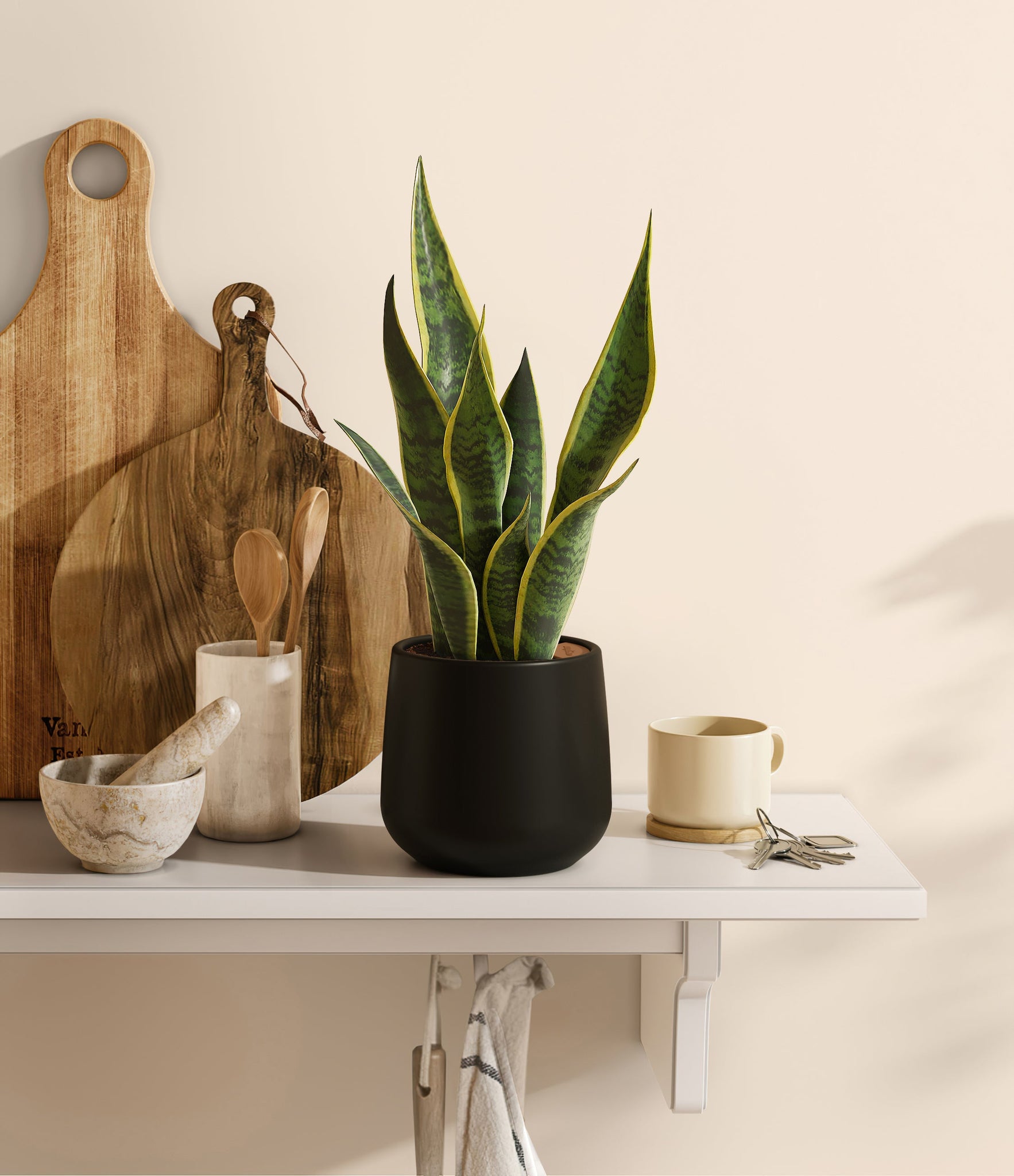 Originating from the desert lands of Africa, Asia, and Madagascar, Snake Plant is the most resilient of all houseplants and thrives under any condition - including the most forgetful of plant lovers. Its tall and narrow sword-shaped leaves wear a vibrant green edged with streaks of sunshine, ever so elegantly stealing the show. Not only is it easy on the eyes, Golden Snake Plant is a master air-purifier, removing allergens and toxins from the air we breathe, so keeping it goes a long way for our health.