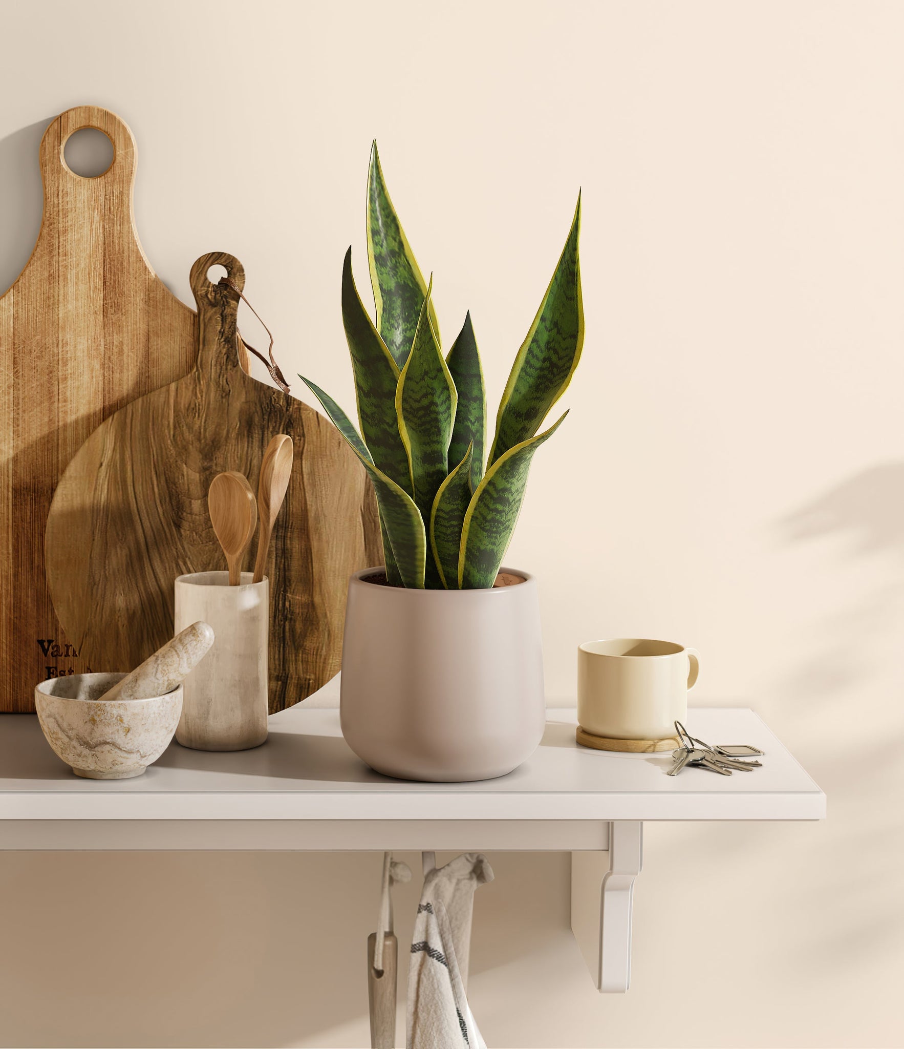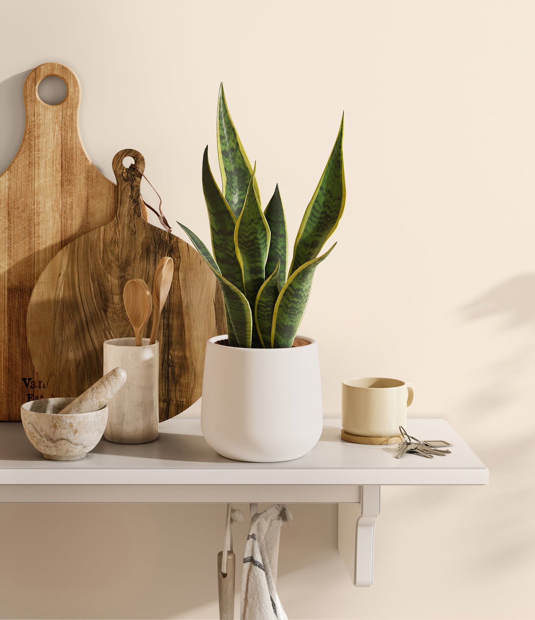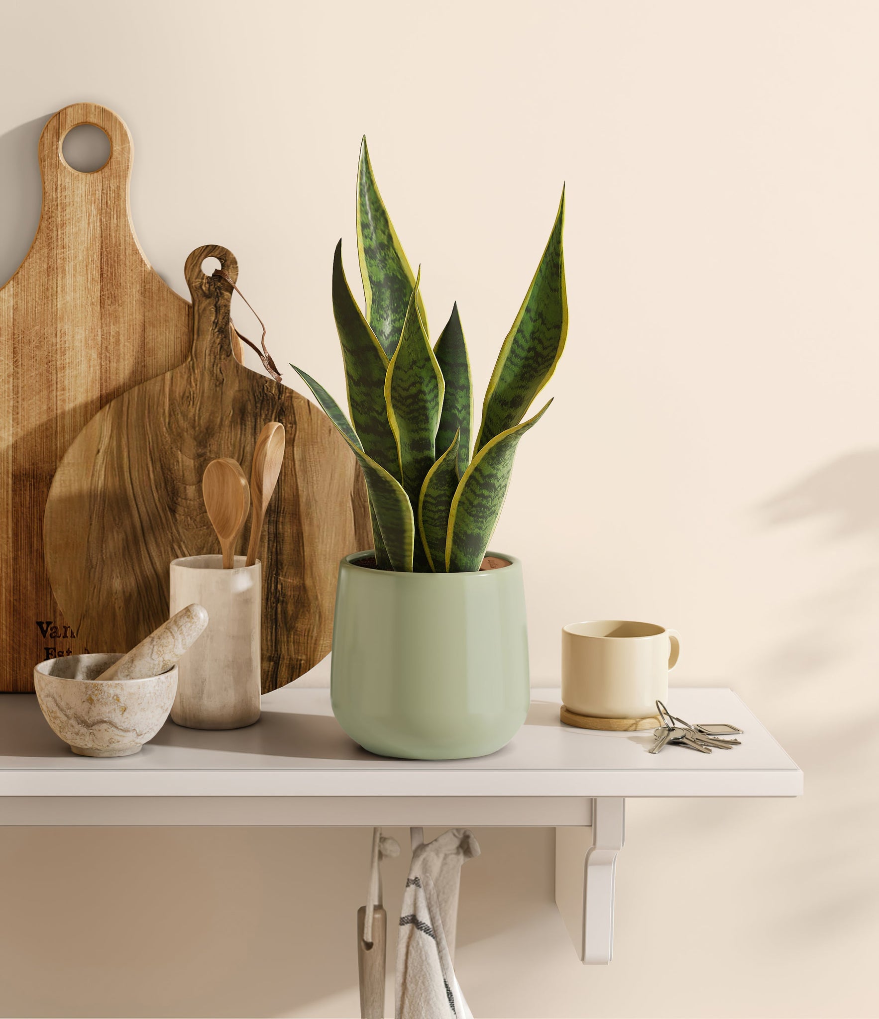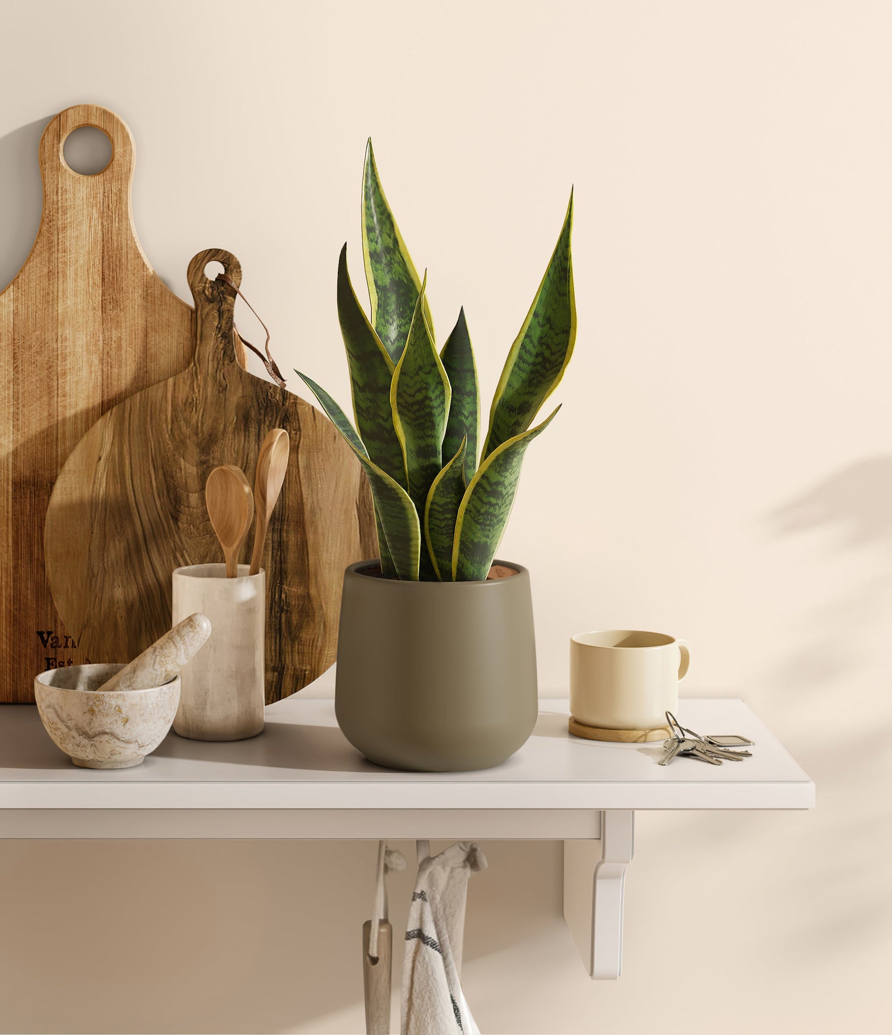 Originating from the desert lands of Africa, Asia, and Madagascar, Snake Plant is the most resilient of all houseplants and thrives under any condition - including the most forgetful of plant lovers. Its tall and narrow sword-shaped leaves wear a vibrant green edged with streaks of sunshine, ever so elegantly stealing the show. Not only is it easy on the eyes, Golden Snake Plant is a master air-purifier, removing allergens and toxins from the air we breathe, so keeping it goes a long way for our health.