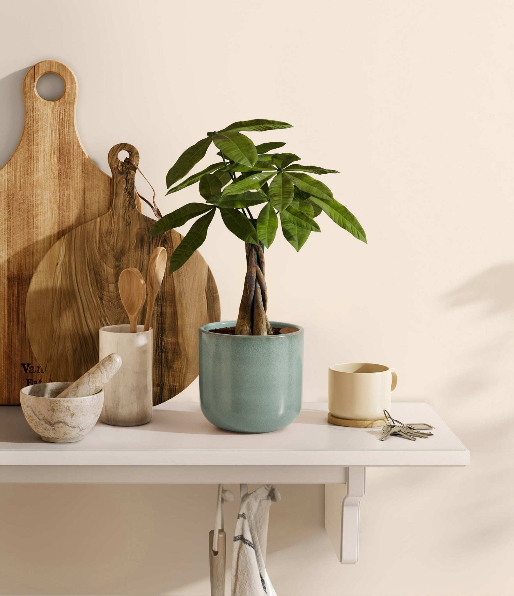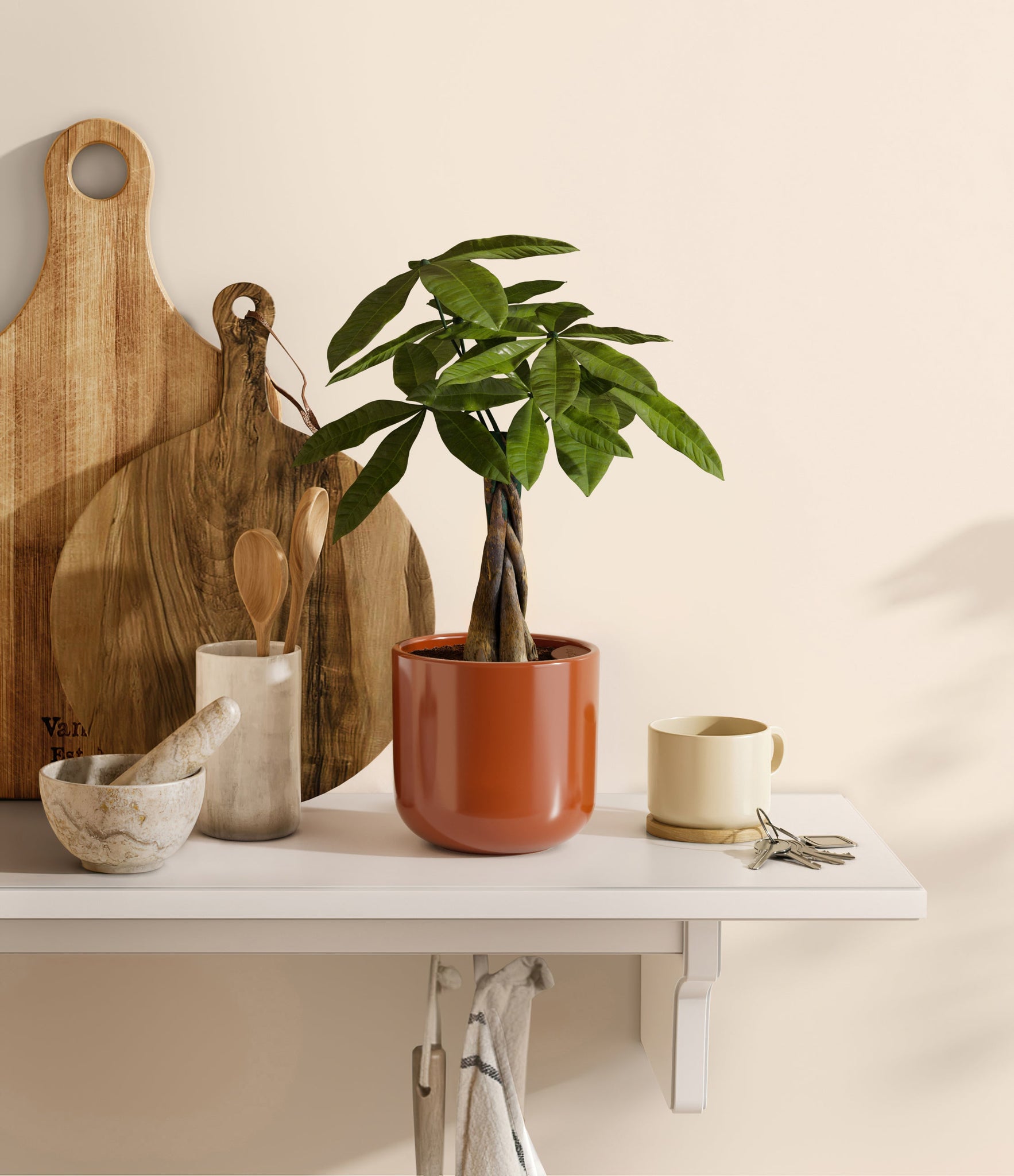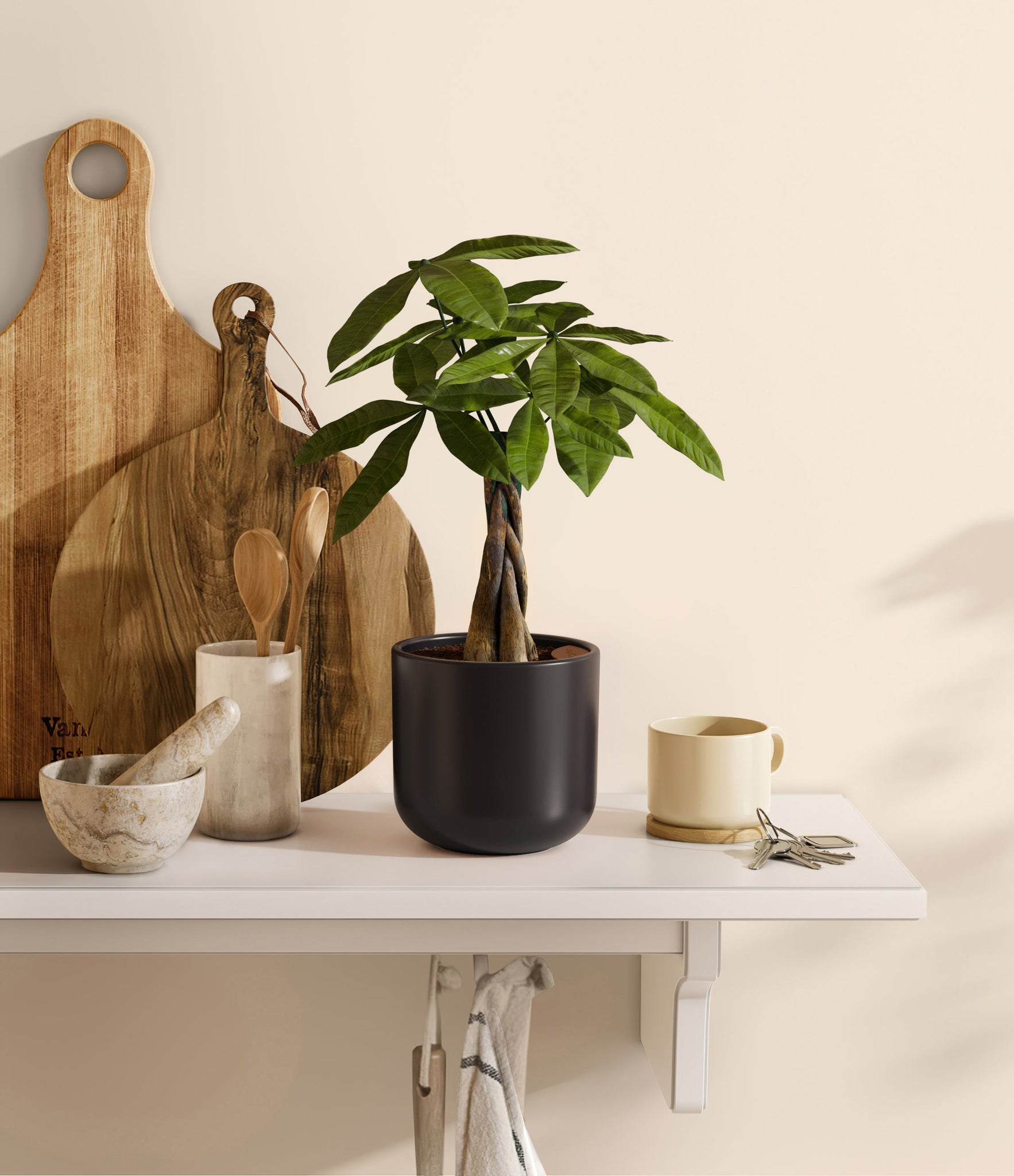 Though native to Mexico and South America, Money Tree rose to fame in East Asia, where it is cultivated as one of the luckiest ornaments, symbolizing prosperity. Its trunk is believed to hold within its folds good fortune, and its palmate leaves resemble open hands offering great abundance. Despite its outstanding appearance and symbolic meaning, this evergreen is very easy to care for, and makes for a great indoor plant.