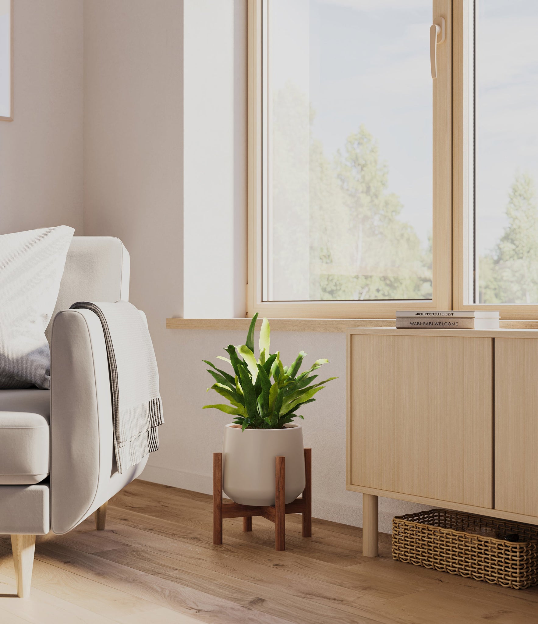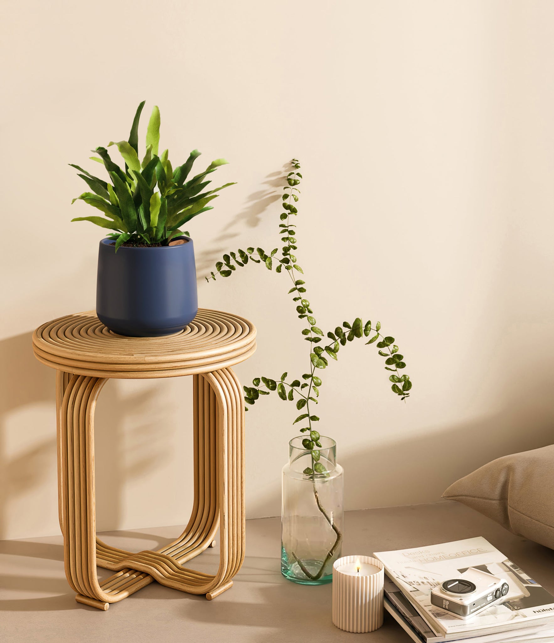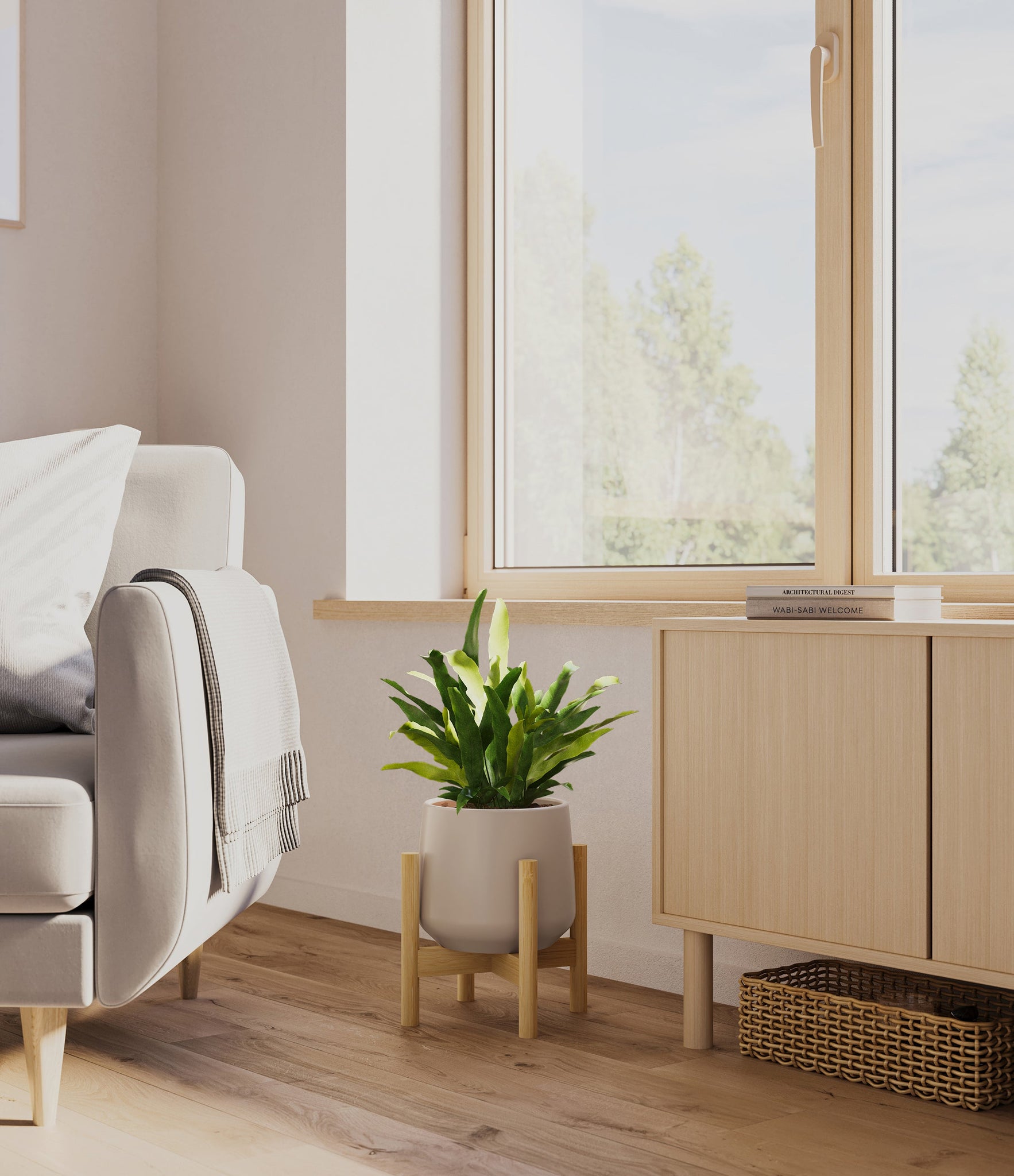 From the sheltered forests of Brazil emerges the Blue Star Fern, or Phlebodium aureum, with its blue-green fronds that cascade with a gentle and inviting poise. This fern's distinct coloration and the lush, wavy texture of its leaves bring a relaxed and refreshing vibe to any indoor space. Appreciated for both its visual appeal and its low-maintenance nature, the Blue Star Fern is a resilient addition to any plant collection.