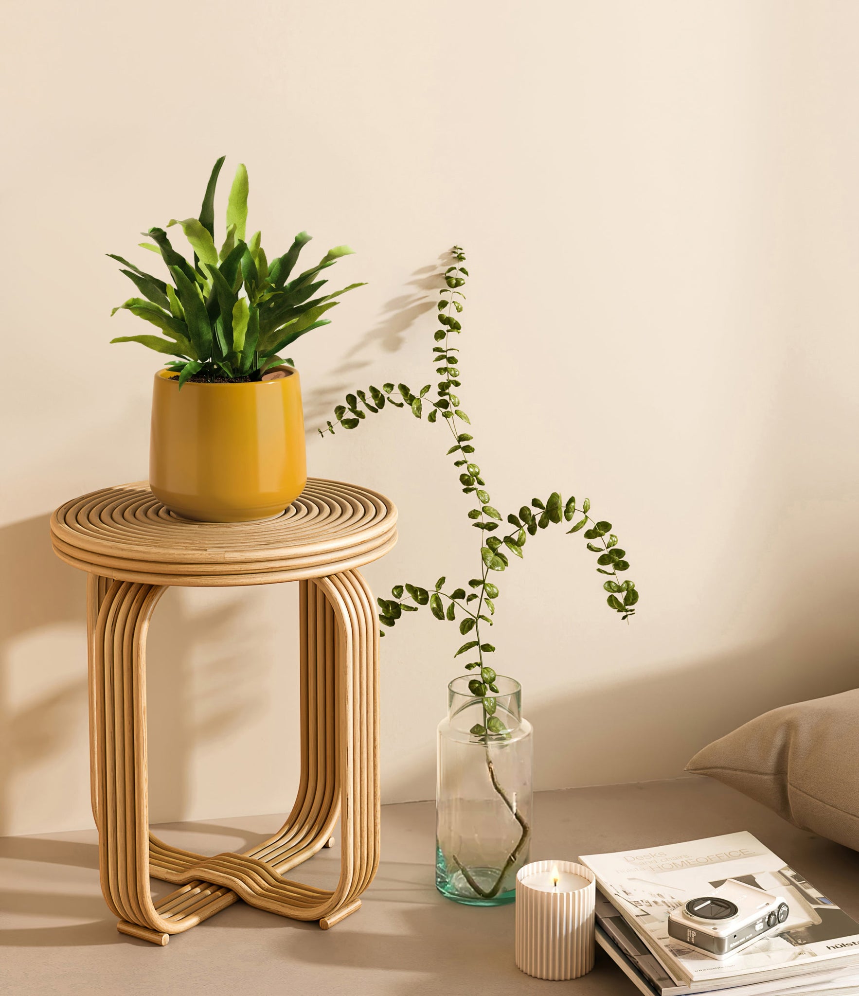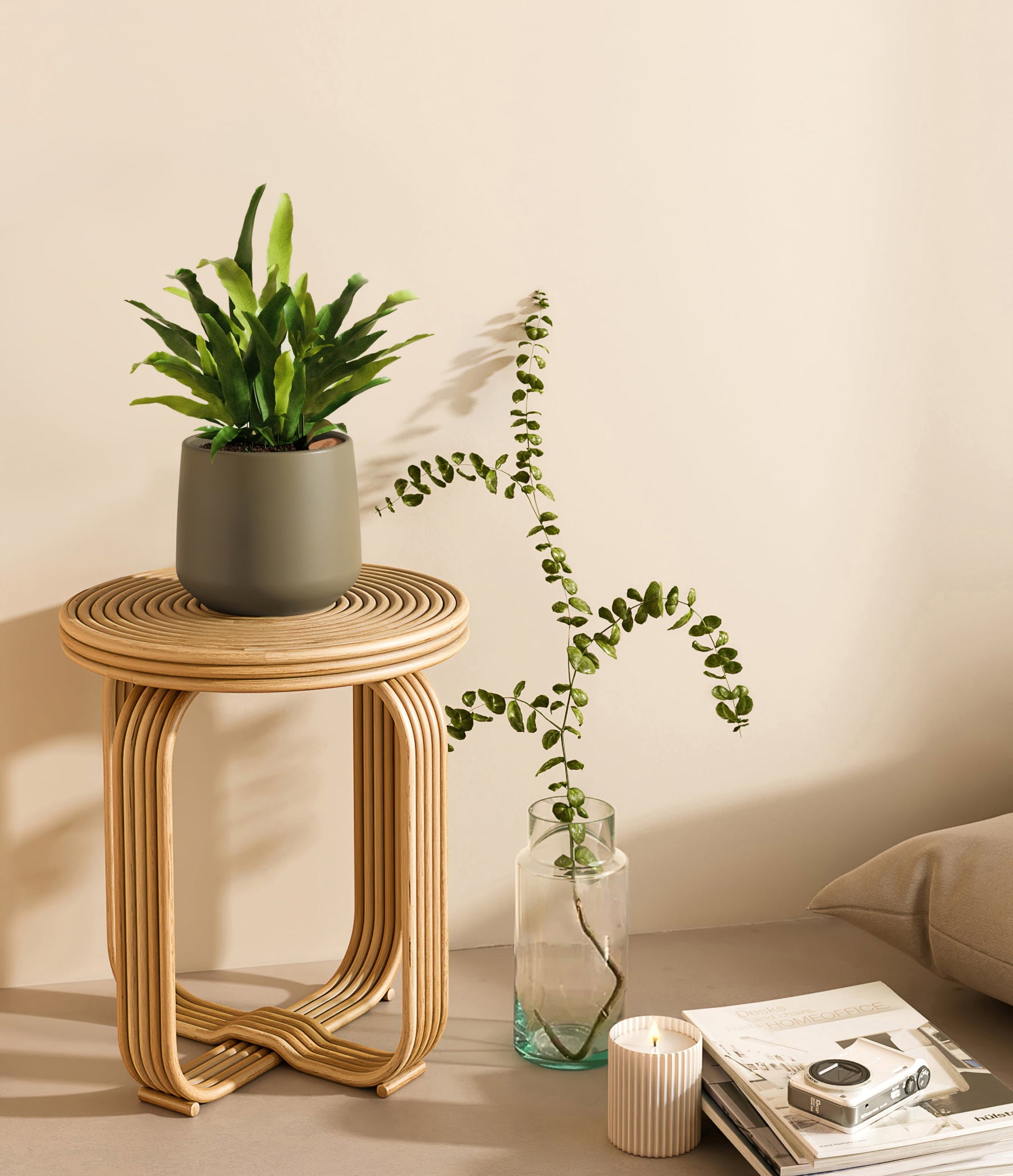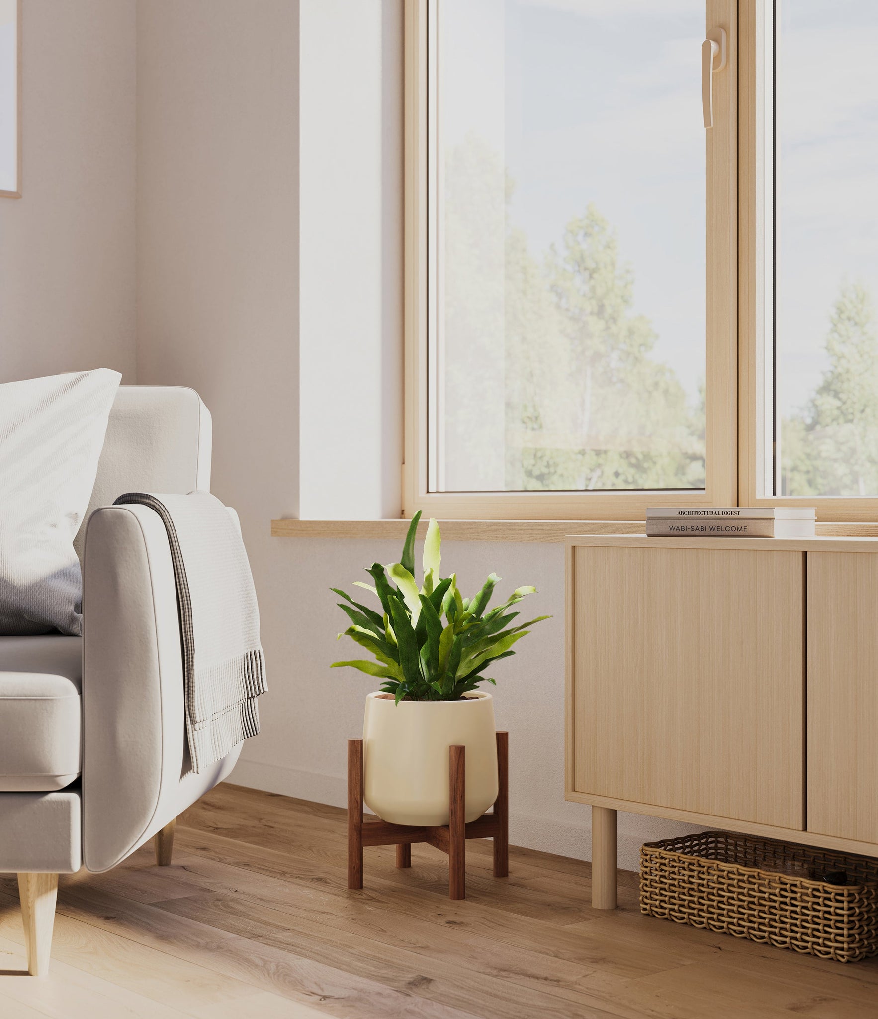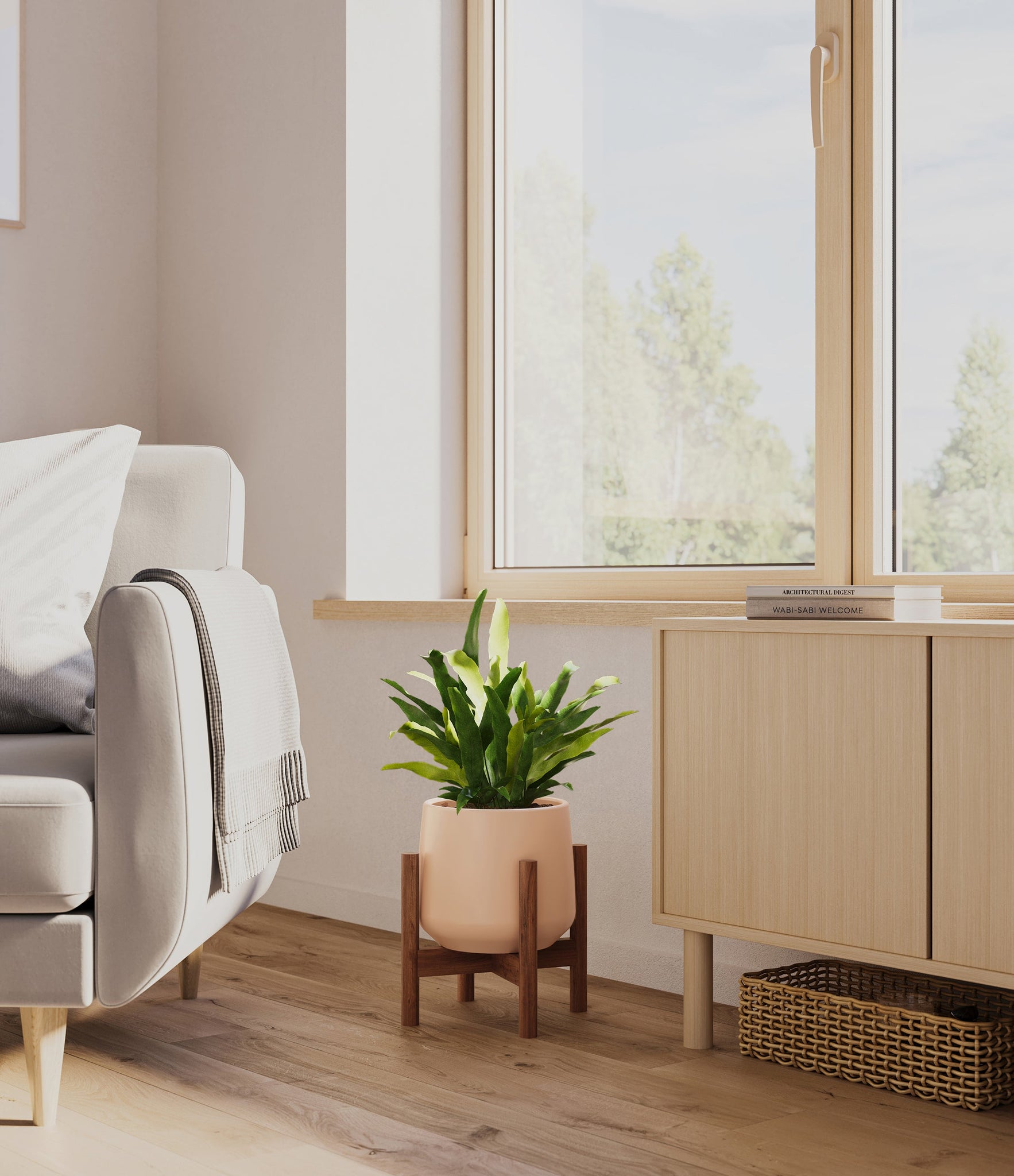 From the sheltered forests of Brazil emerges the Blue Star Fern, or Phlebodium aureum, with its blue-green fronds that cascade with a gentle and inviting poise. This fern's distinct coloration and the lush, wavy texture of its leaves bring a relaxed and refreshing vibe to any indoor space. Appreciated for both its visual appeal and its low-maintenance nature, the Blue Star Fern is a resilient addition to any plant collection.