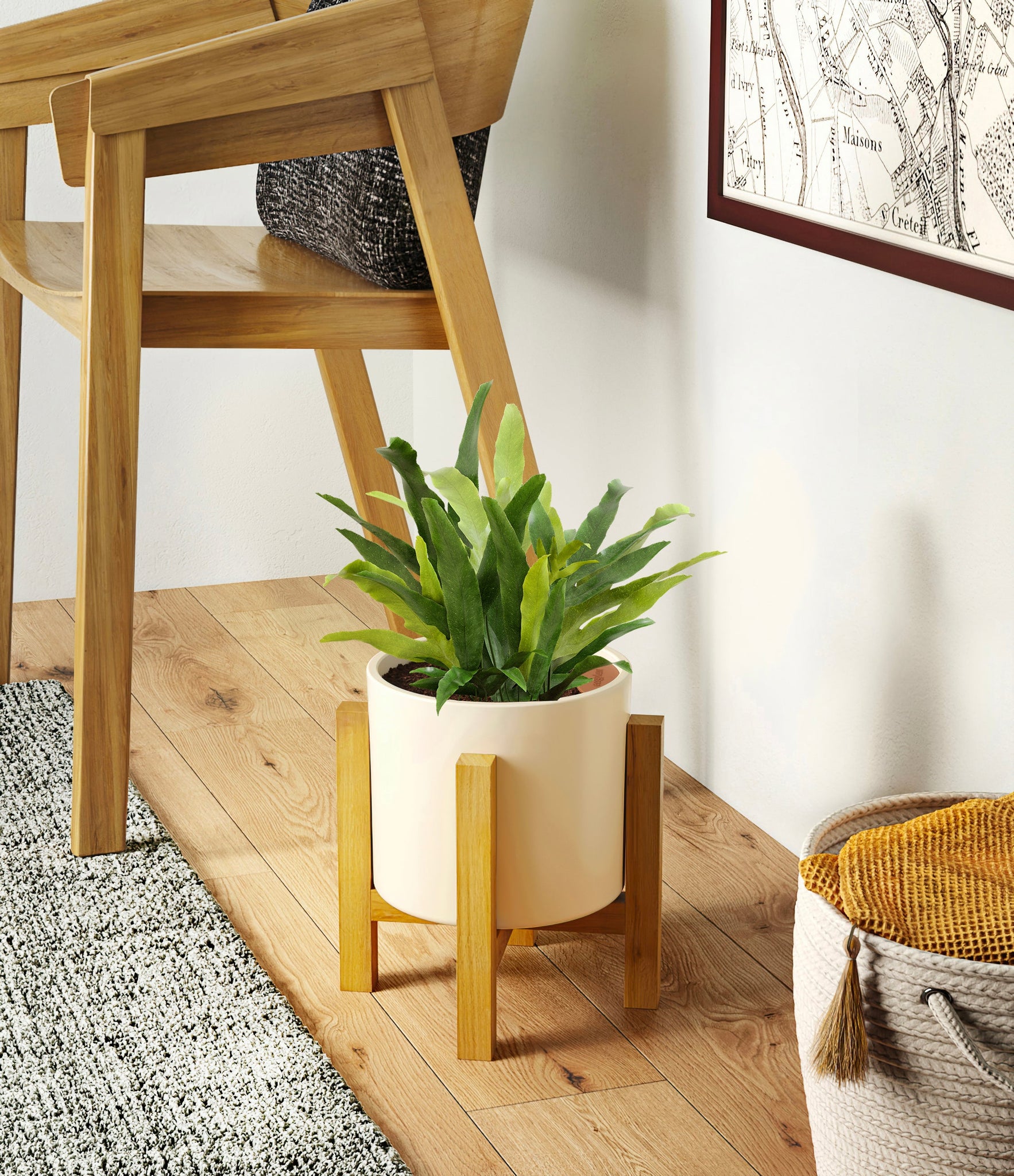 From the sheltered forests of Brazil emerges the Blue Star Fern, or Phlebodium aureum, with its blue-green fronds that cascade with a gentle and inviting poise. This fern's distinct coloration and the lush, wavy texture of its leaves bring a relaxed and refreshing vibe to any indoor space. Appreciated for both its visual appeal and its low-maintenance nature, the Blue Star Fern is a resilient addition to any plant collection.