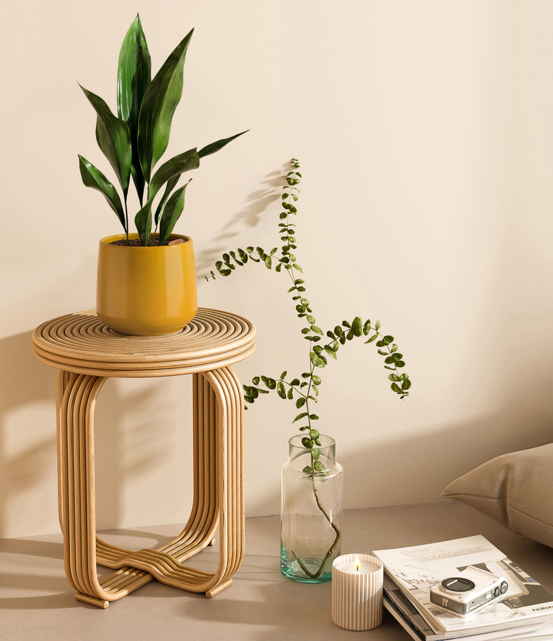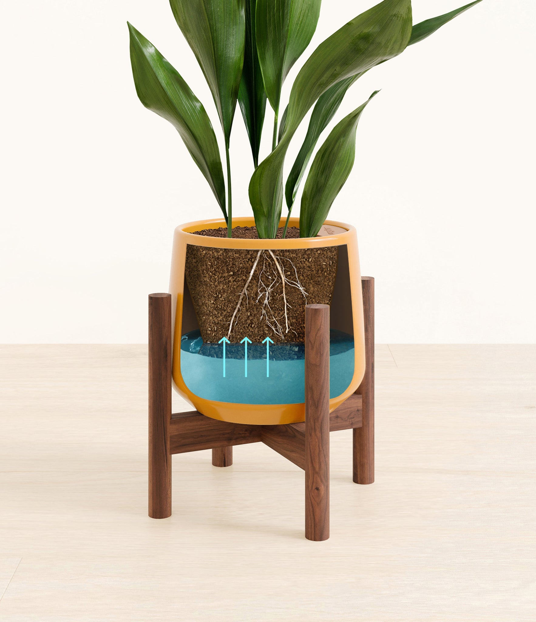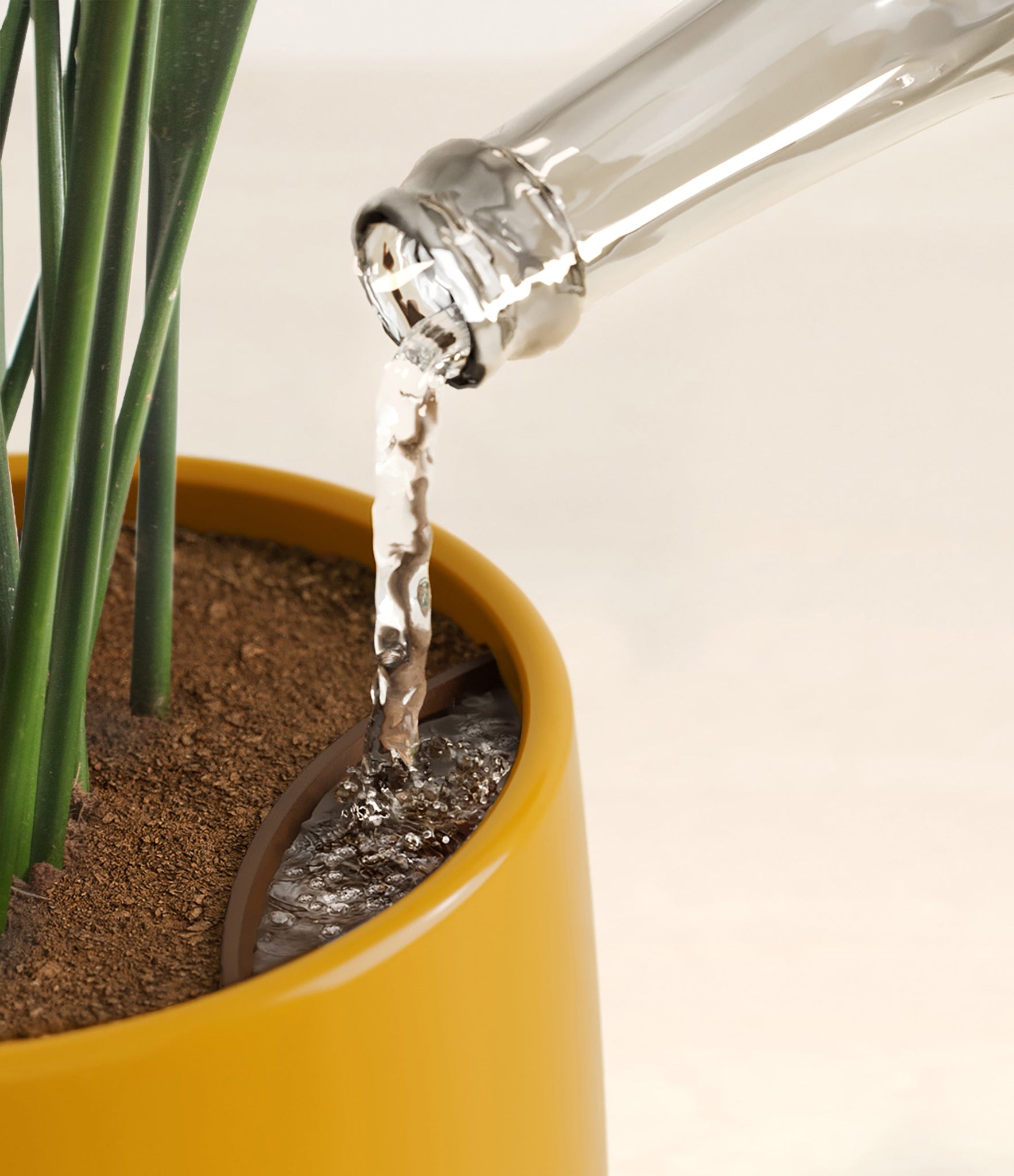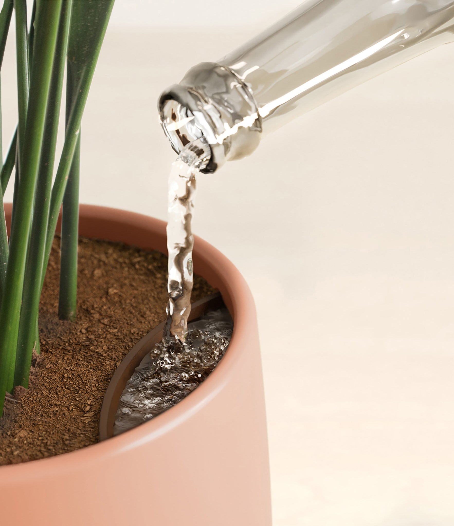 Potted in a premium quality self-watering pot with a soft matte finish, this exquisite plant can grow up to 3 feet tall indoors, and its leaves can reach up to 2 feet long.