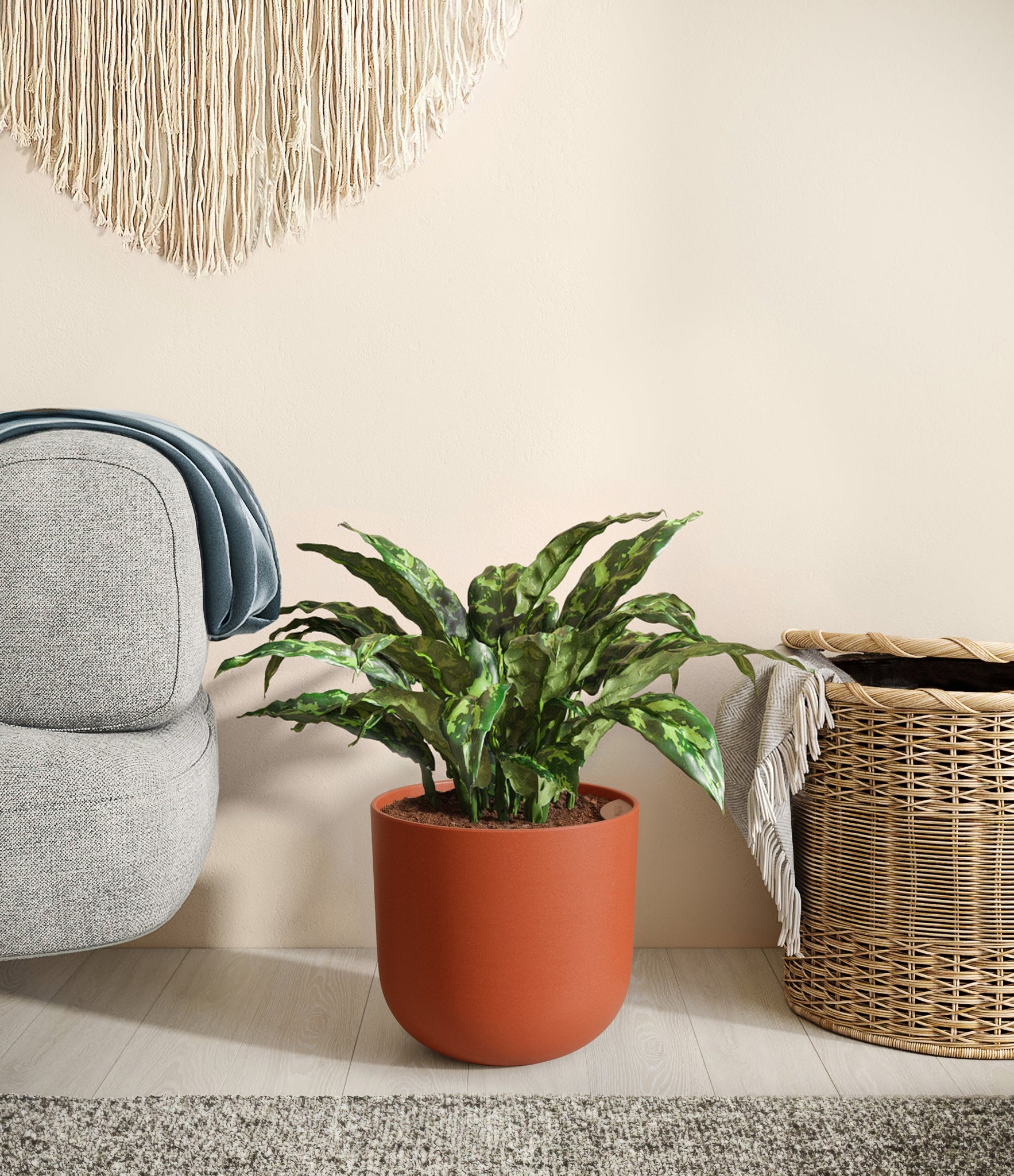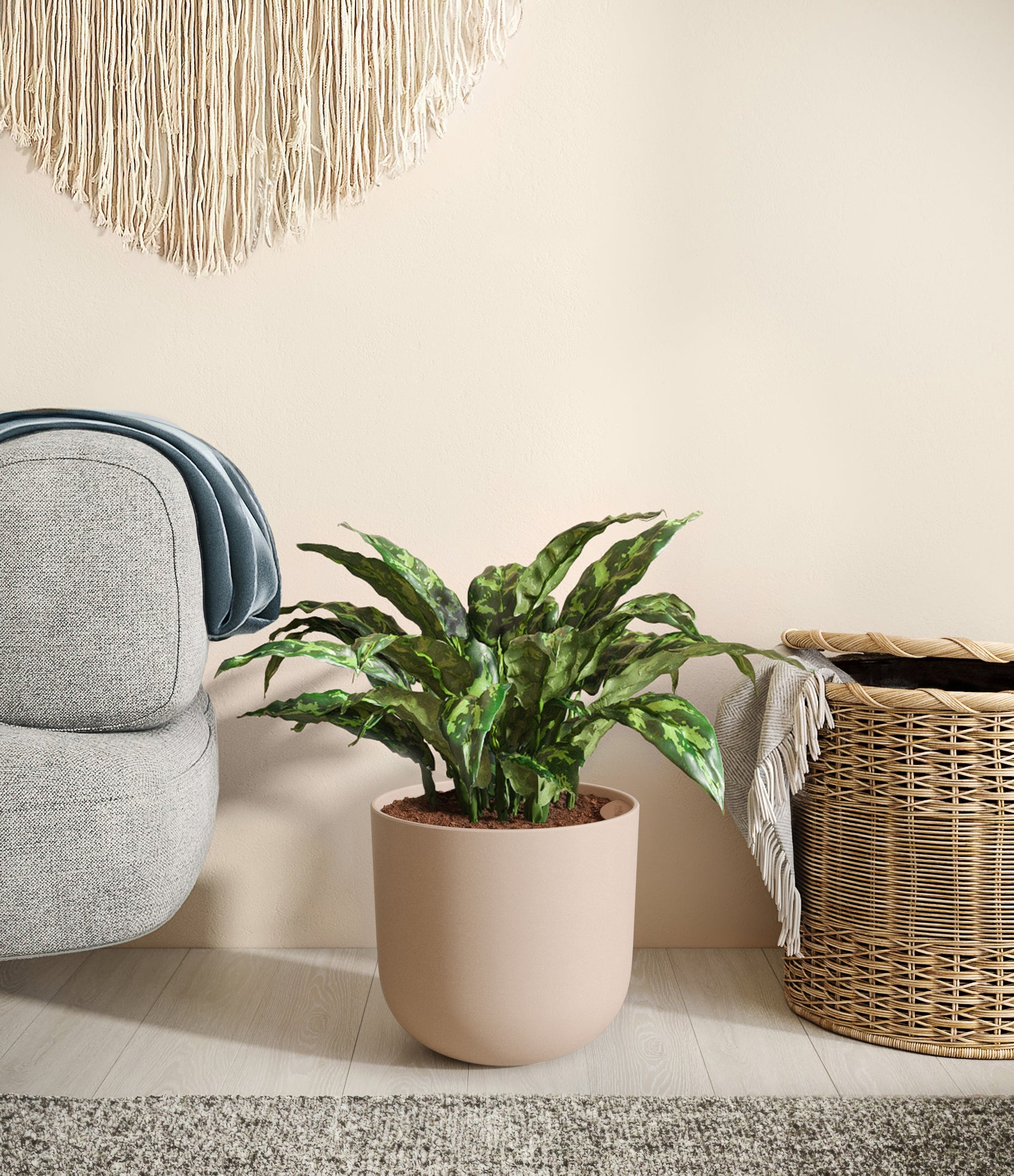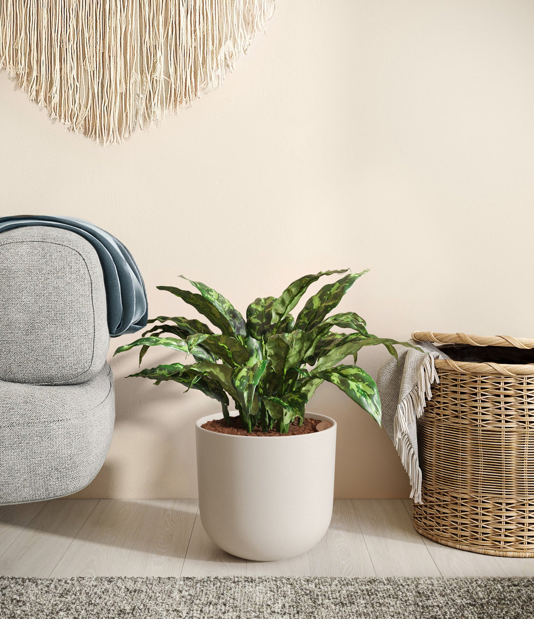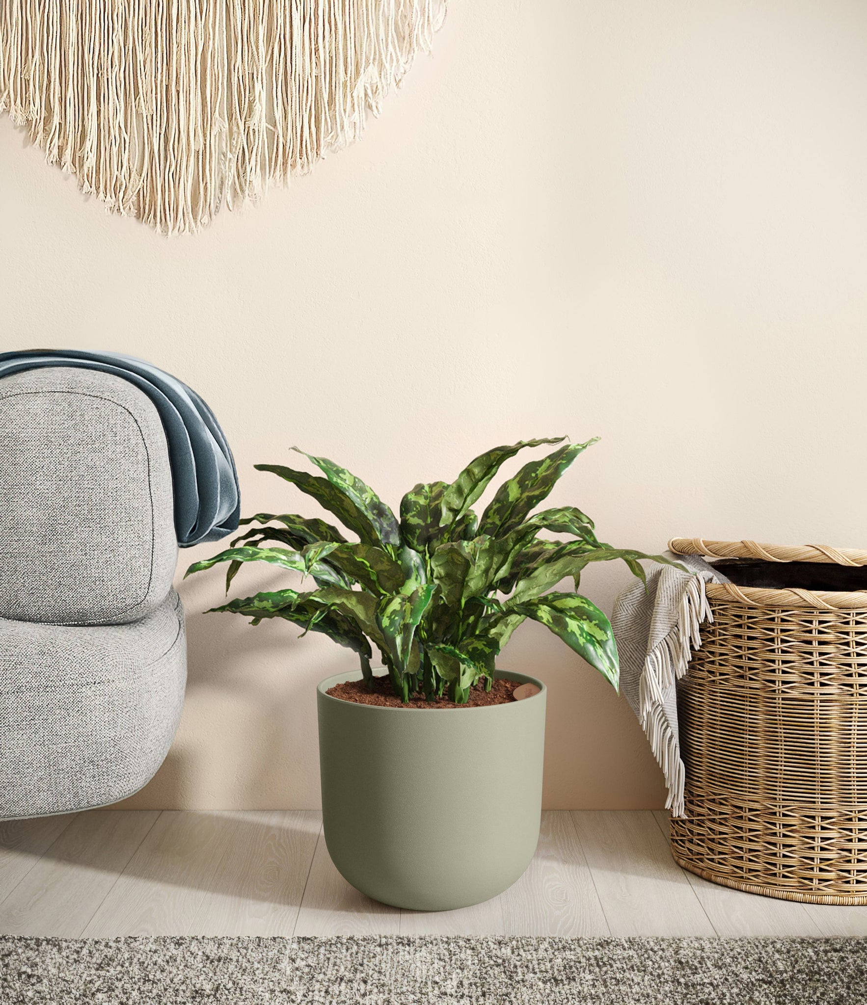 Native to the tropical and subtropical regions of Asia and New Guinea, Chinese Evergreen has been cultivated for centuries as a good luck charm. Known to live a long and healthy life, it is believed to bring wellbeing to the home and all its dwellers. Chinese Evergreen wears a luminant sage-green foliage that brings class and sophistication to any room.