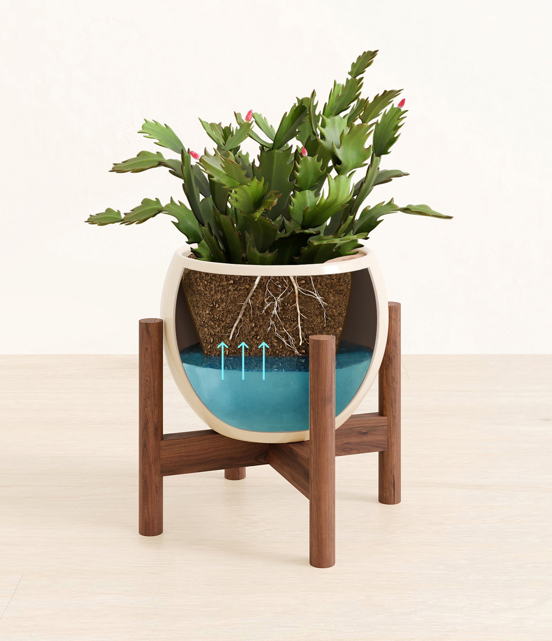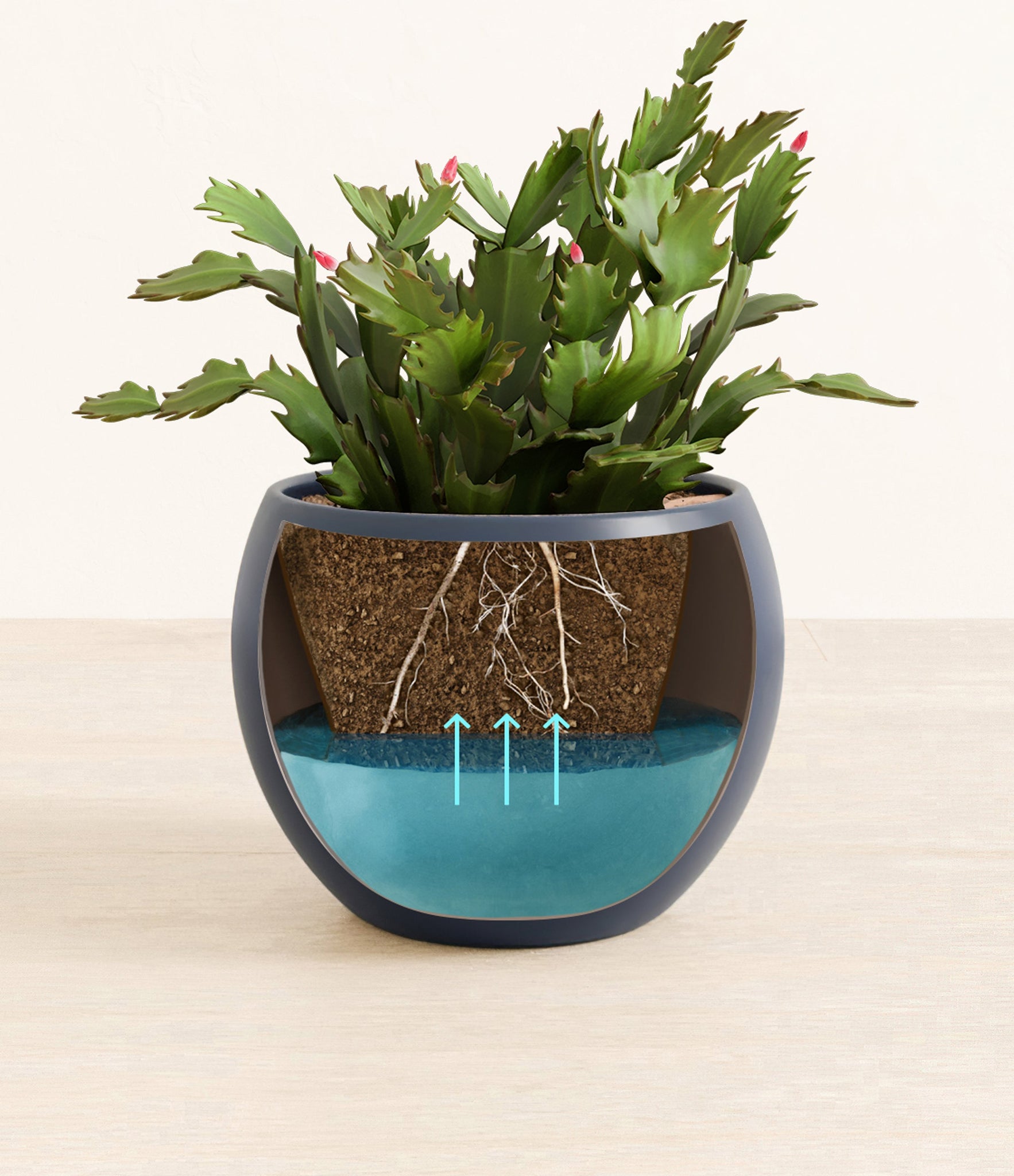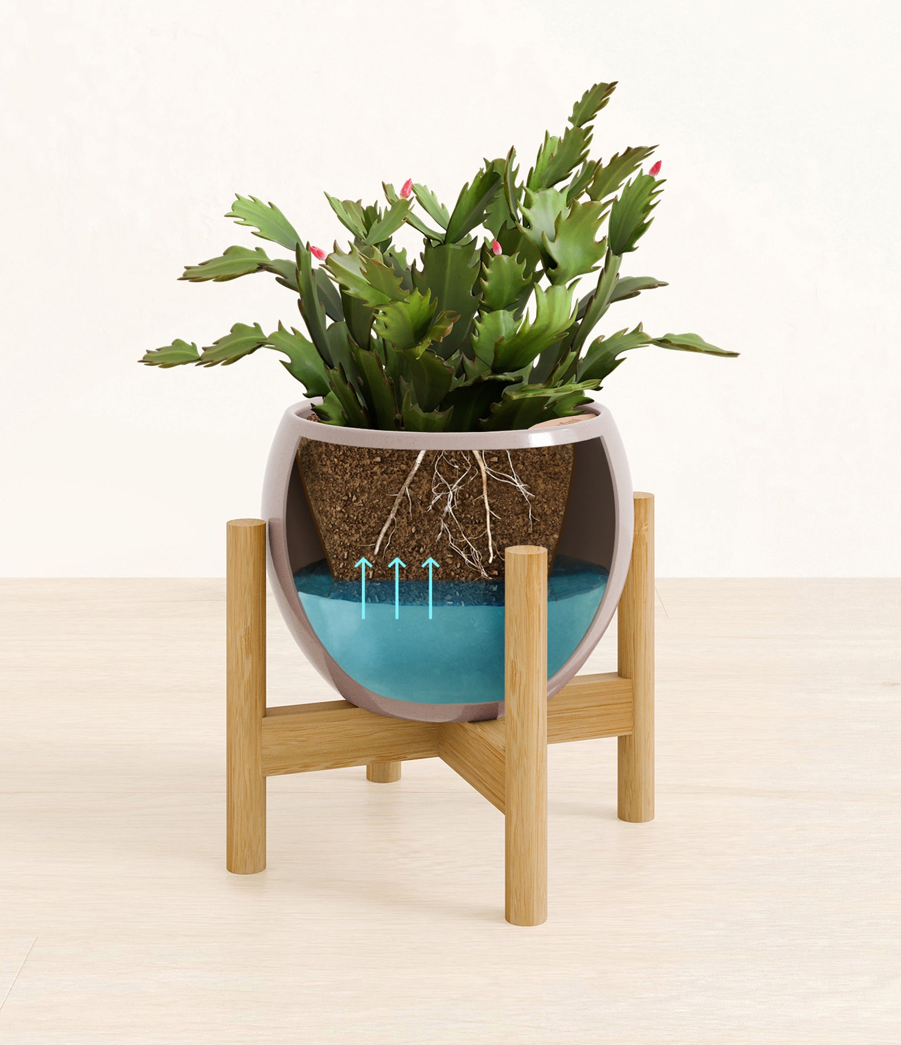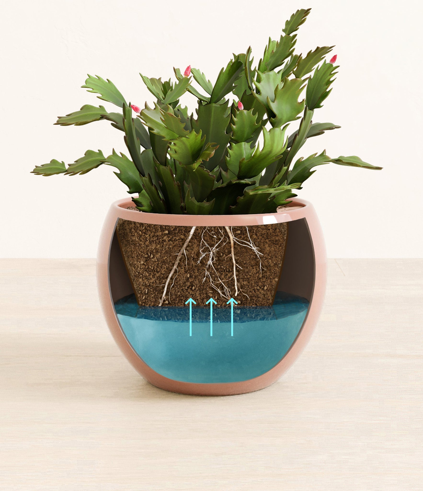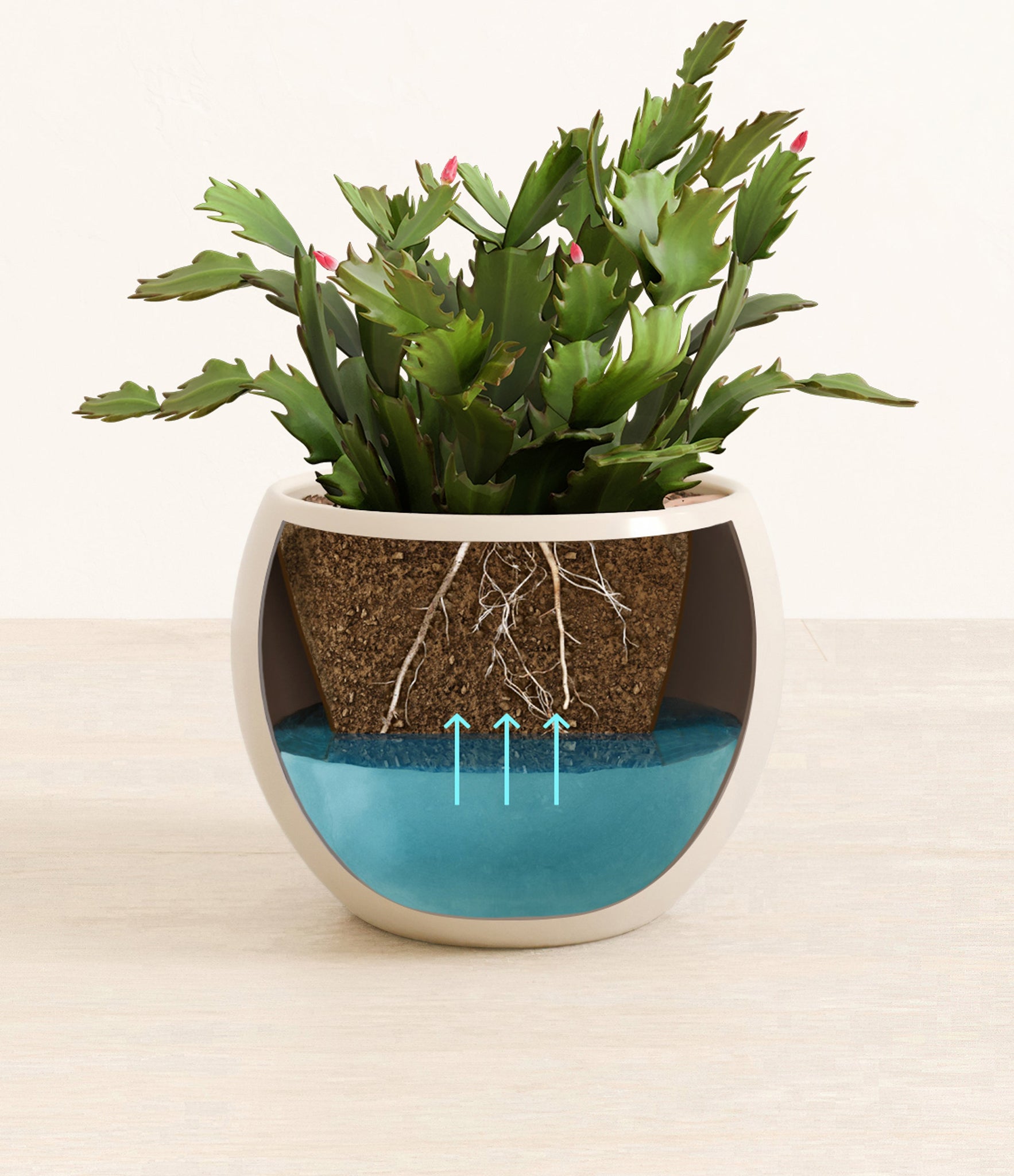 From the lush highlands of Brazil, the Christmas Cactus, also known as Schlumbergera Birdgesii, is a captivating herald of joy with its fuchsia flowers that burst forth at winter's peak, embodying the cheerful spirit of Christmas. Potted in an easyplant self-watering pot, this effortlessly elegant and surprisingly easy-to-care-for plant will offer a burst of life amidst the chill of winter, making it not just a plant, but a cherished part of your holiday tradition.