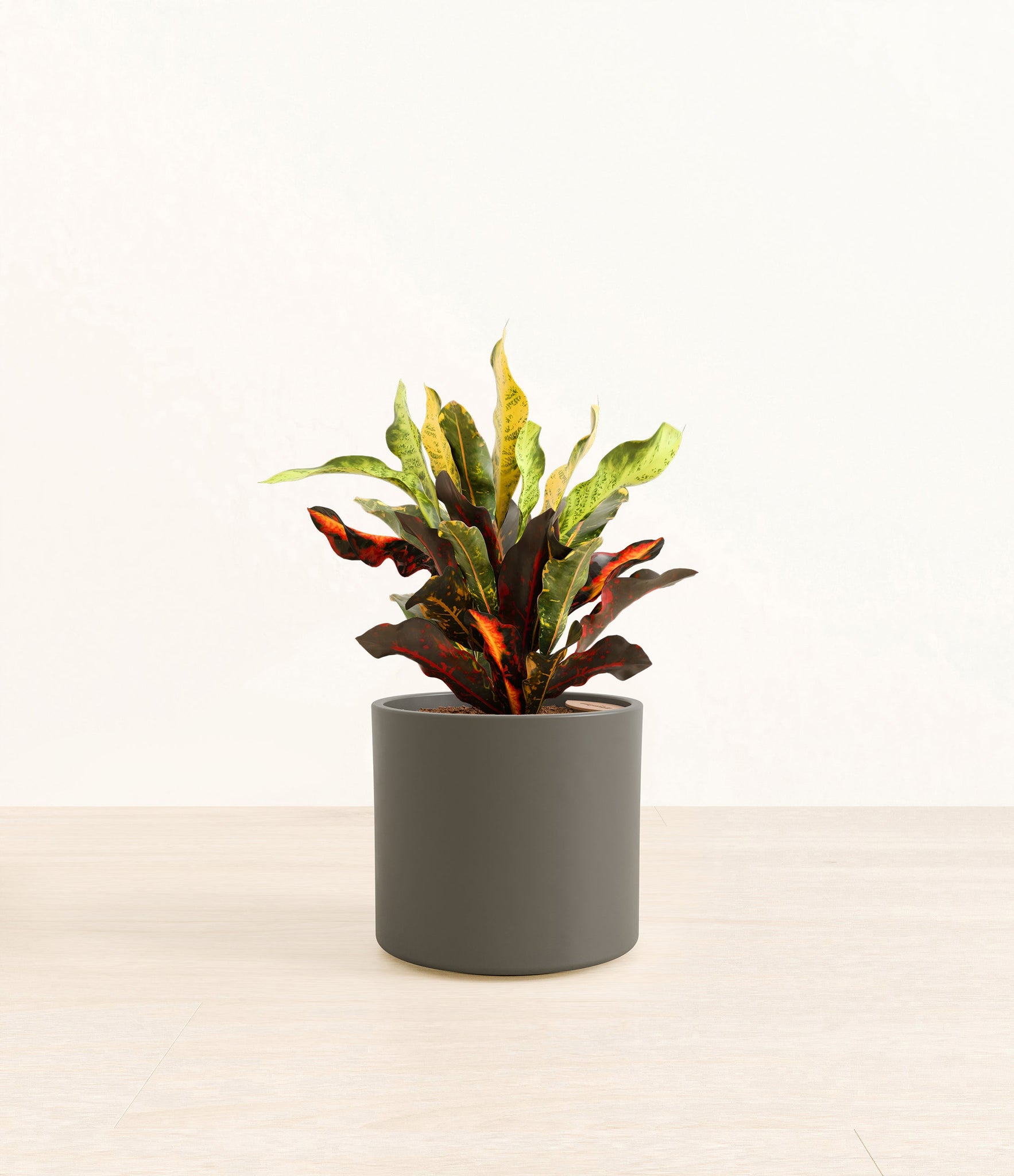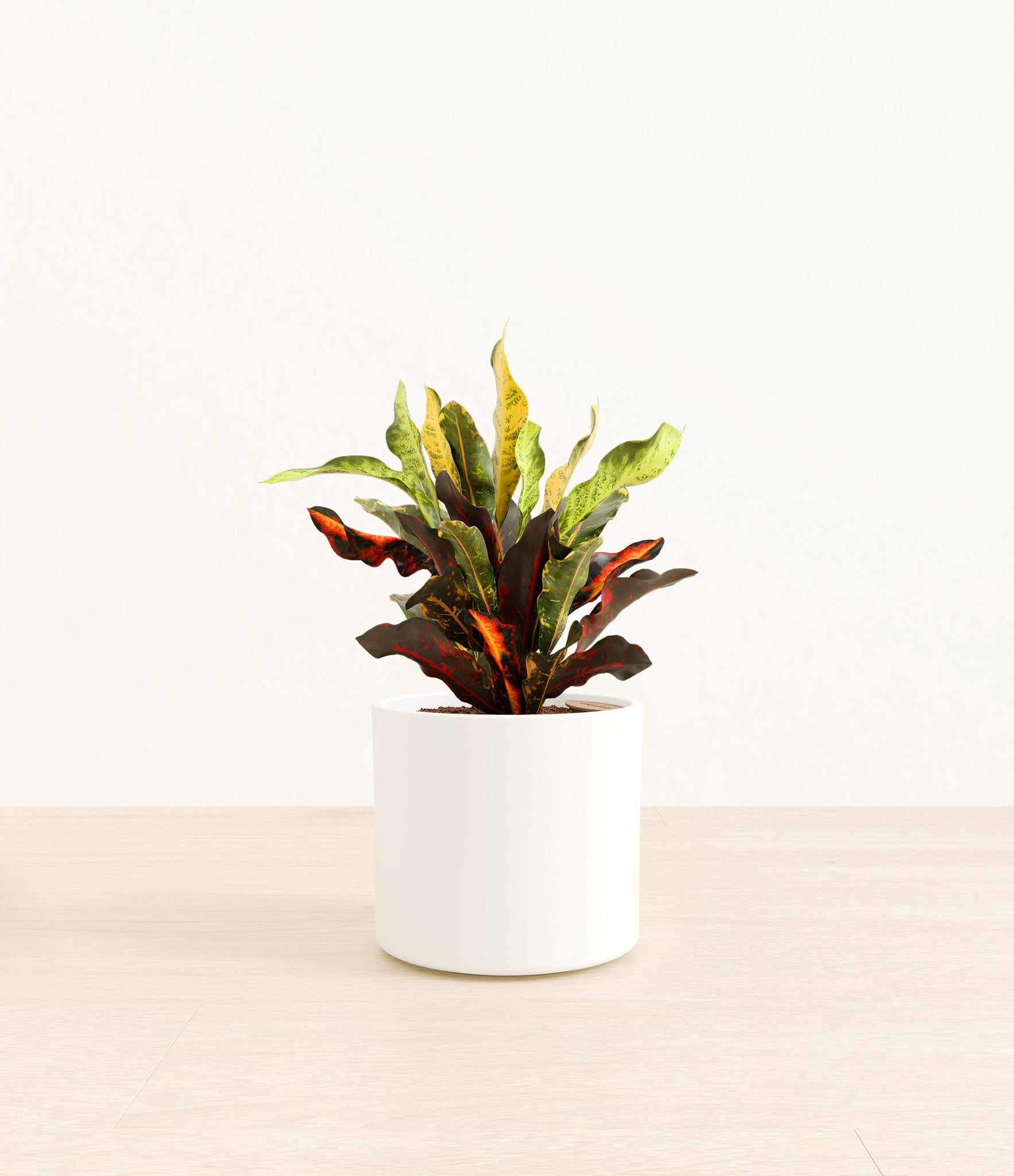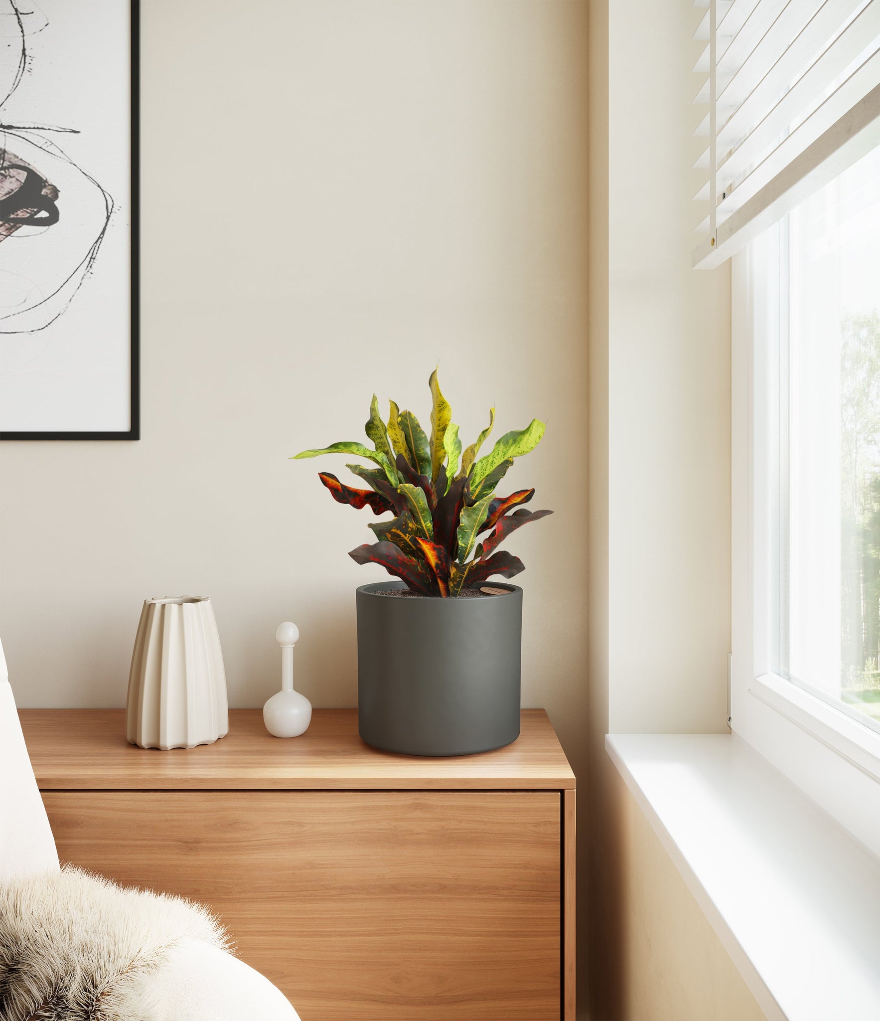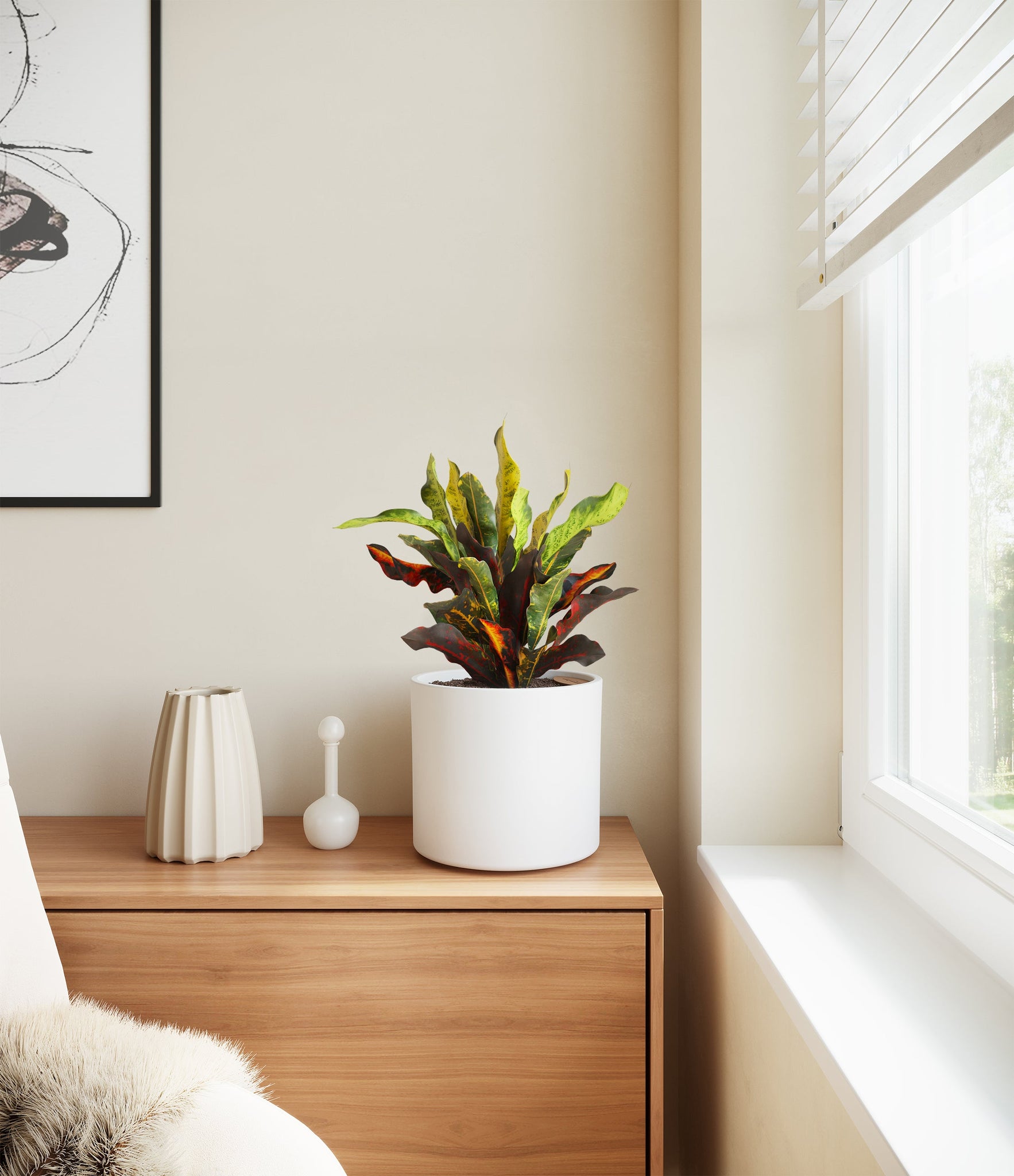 Bold and beautiful, Croton Mammy is by far the most picturesque plant friend. None can compete with its wide range of colors, from deep purples and fiery reds to bright yellows and neon greens - all in the same place at the same time. With such a voluminous presence, it holds first place in bringing a burst of colorful energy to any room. Native to India and Malaysia, it wears a vividly contrasting pattern on its plentiful narrow and curling leaves, reminiscent of a lively traditional dance in full ensemble.