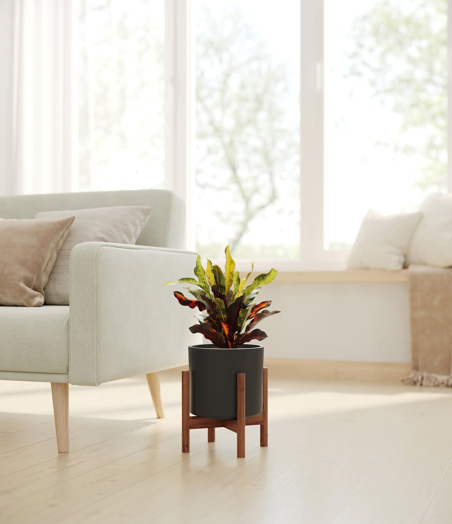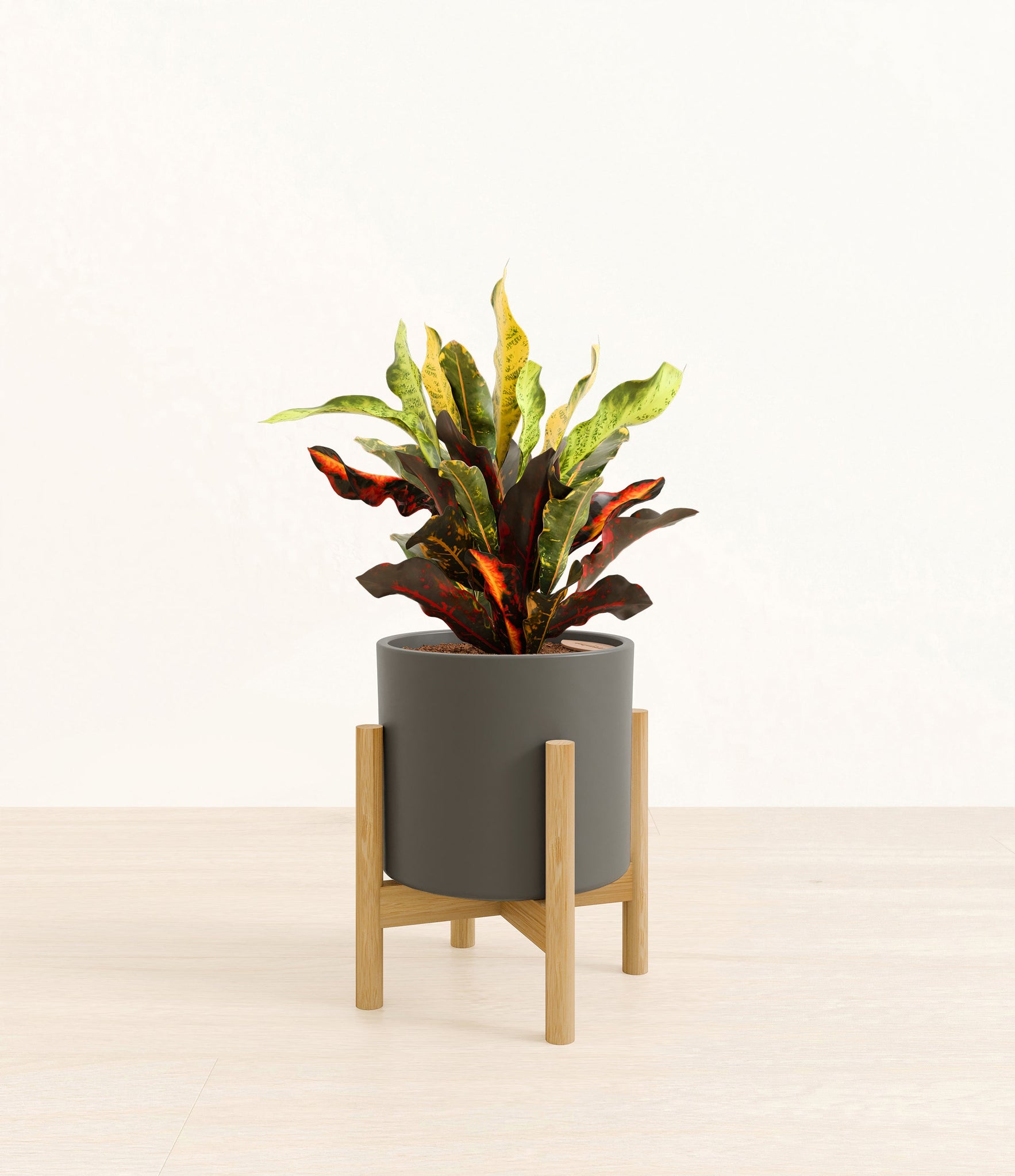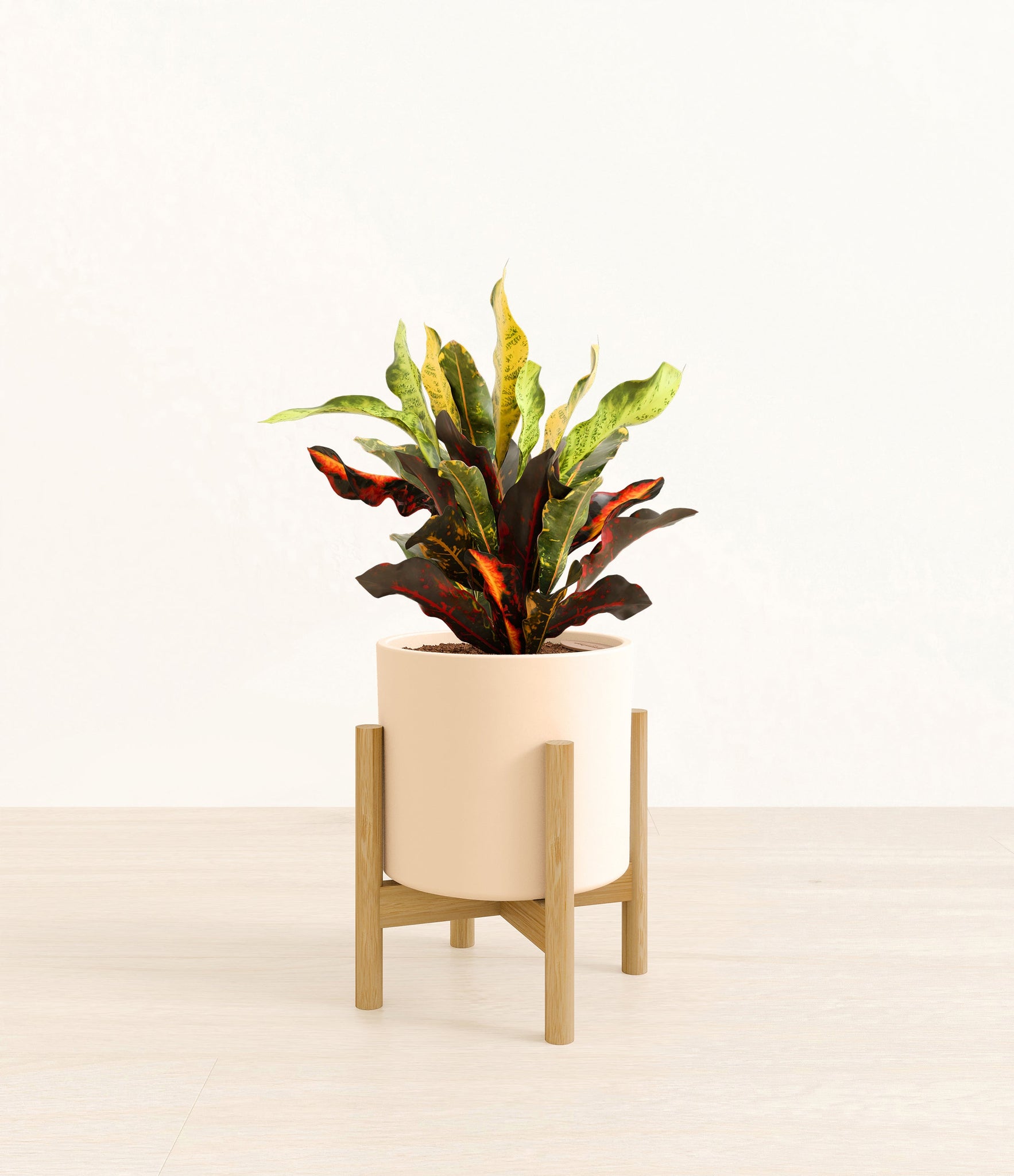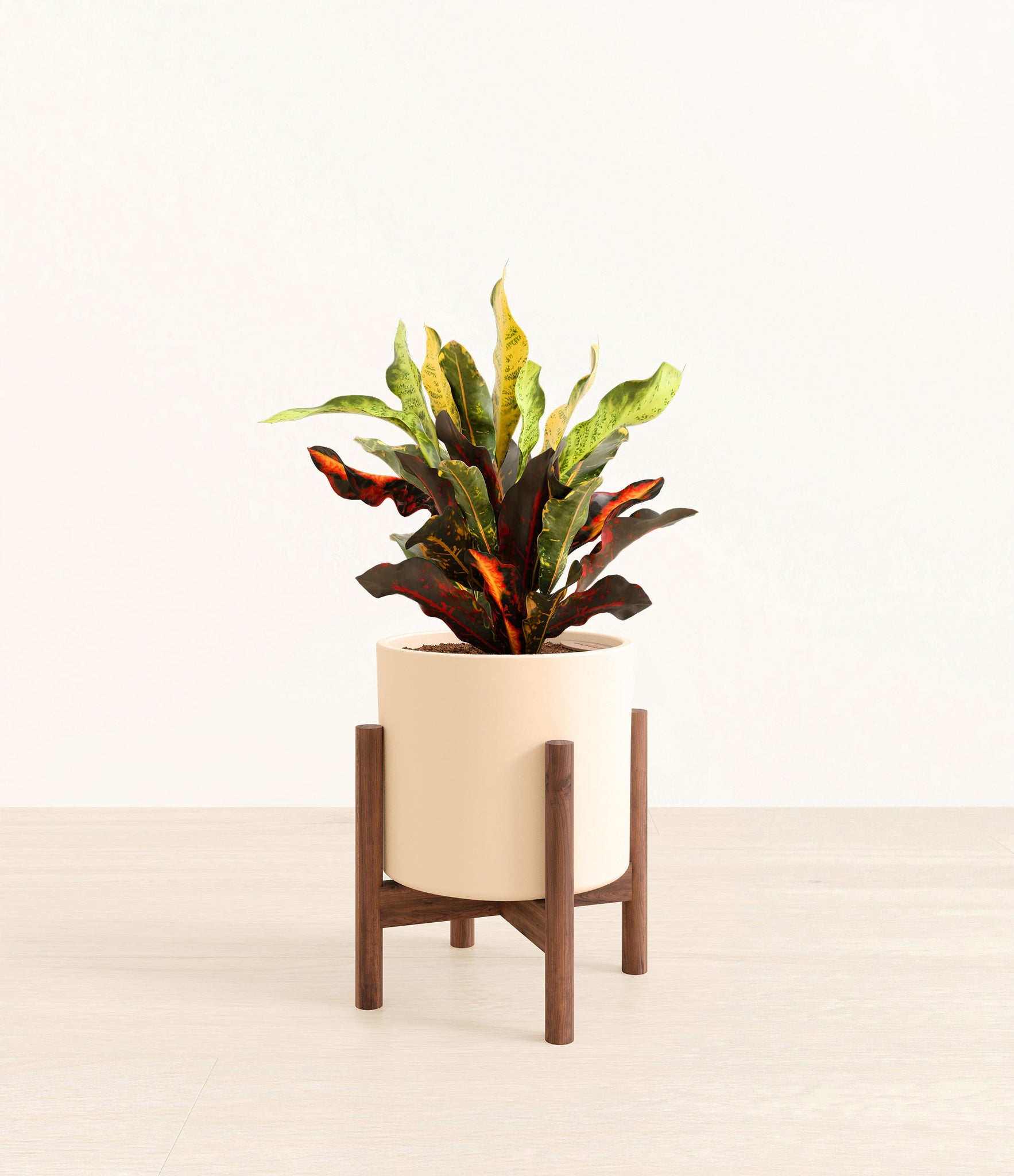 Bold and beautiful, Croton Mammy is by far the most picturesque plant friend. None can compete with its wide range of colors, from deep purples and fiery reds to bright yellows and neon greens - all in the same place at the same time. With such a voluminous presence, it holds first place in bringing a burst of colorful energy to any room. Native to India and Malaysia, it wears a vividly contrasting pattern on its plentiful narrow and curling leaves, reminiscent of a lively traditional dance in full ensemble.