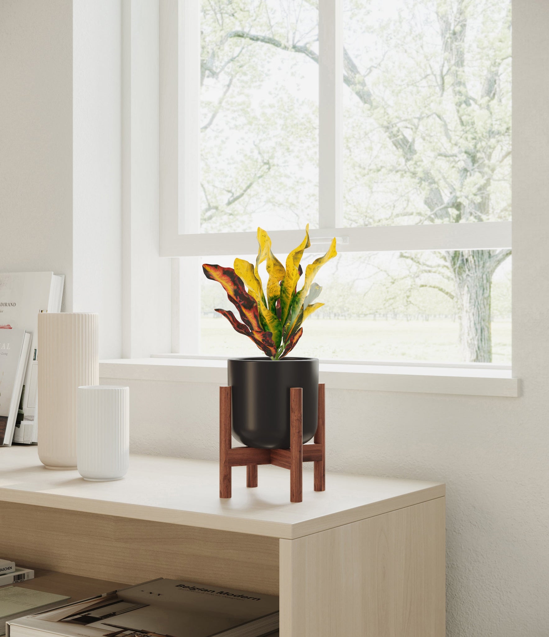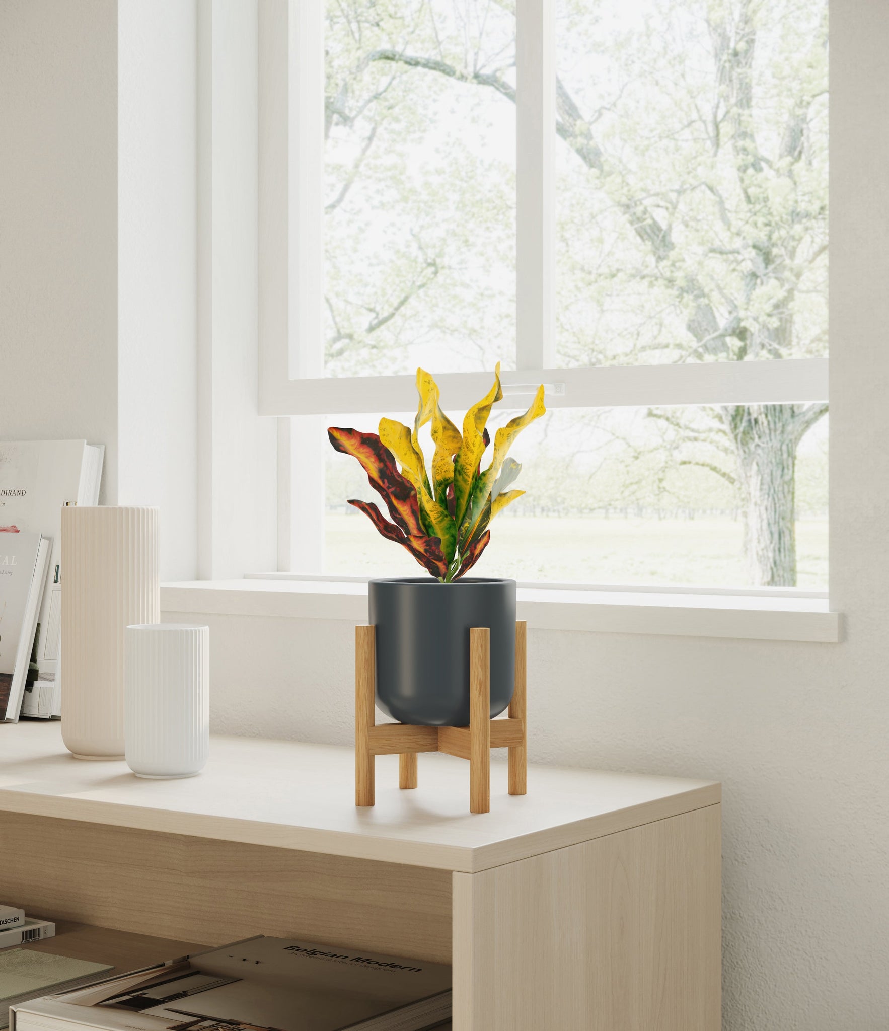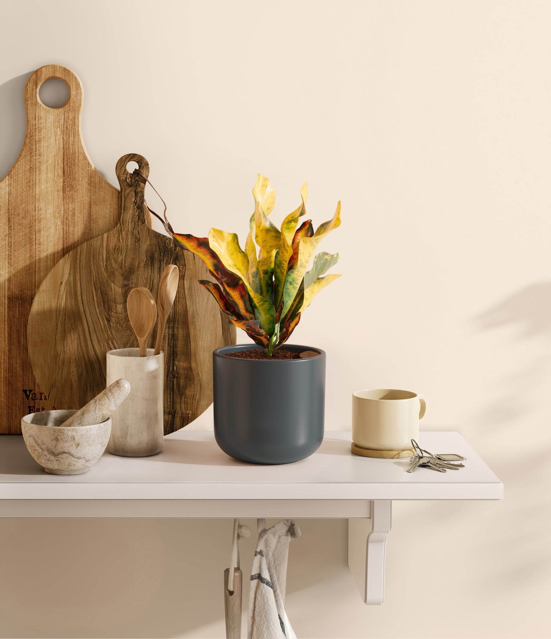 Bold and beautiful, Croton Mammy is by far the most picturesque plant friend. None can compete with its wide range of colors, from deep purples and fiery reds to bright yellows and neon greens - all in the same place at the same time. With such a voluminous presence, it holds first place in bringing a burst of colorful energy to any room. Native to India and Malaysia, it wears a vividly contrasting pattern on its plentiful narrow and curling leaves, reminiscent of a lively traditional dance in full ensemble.