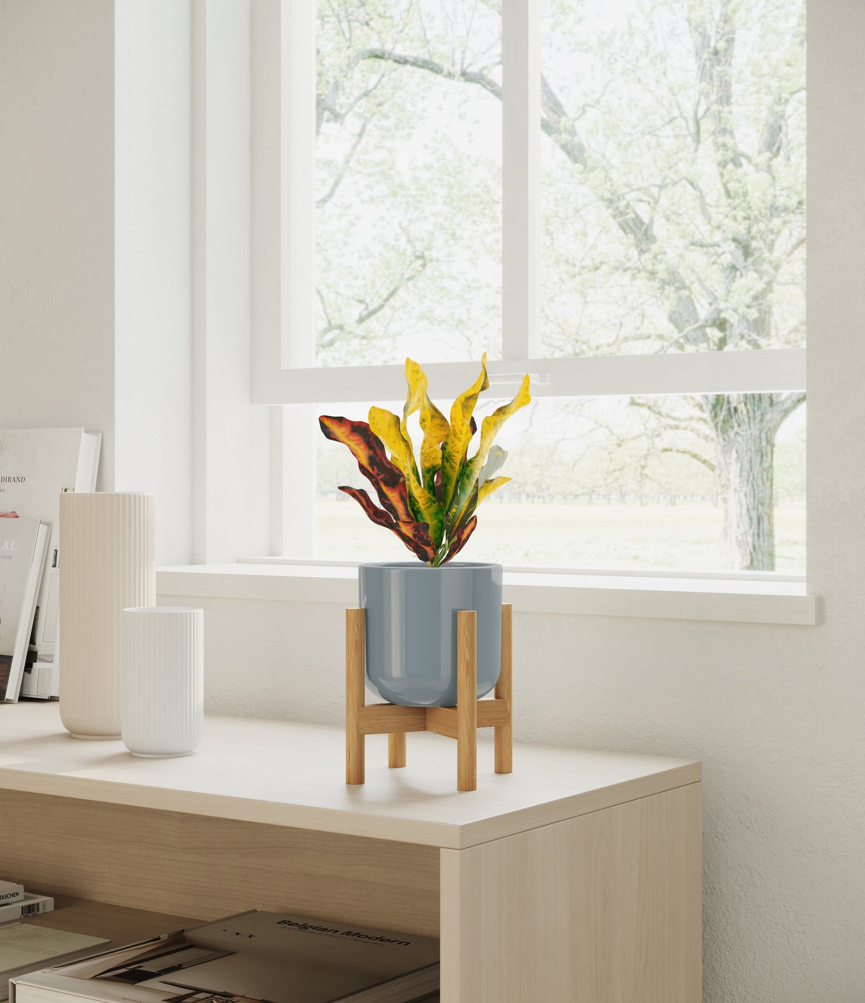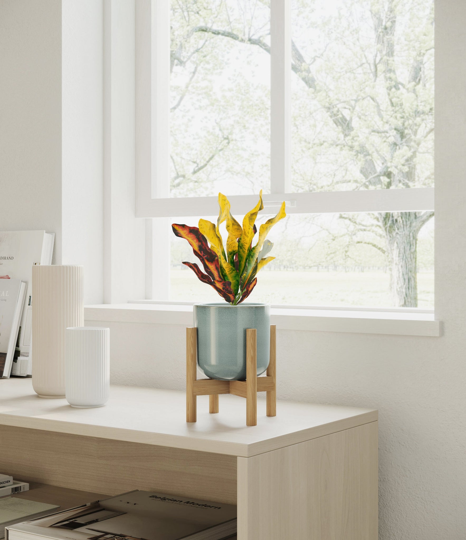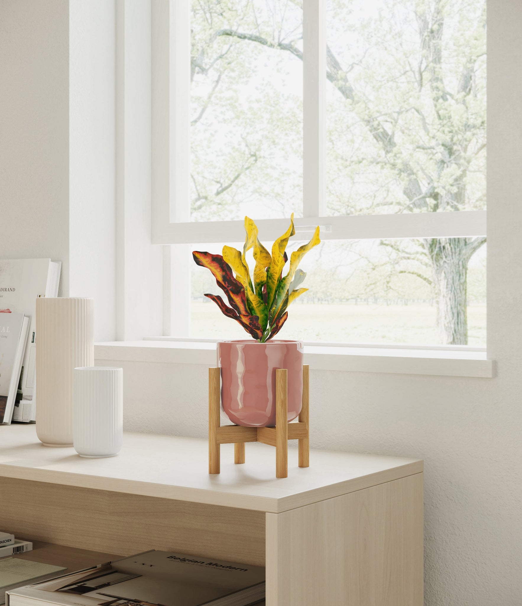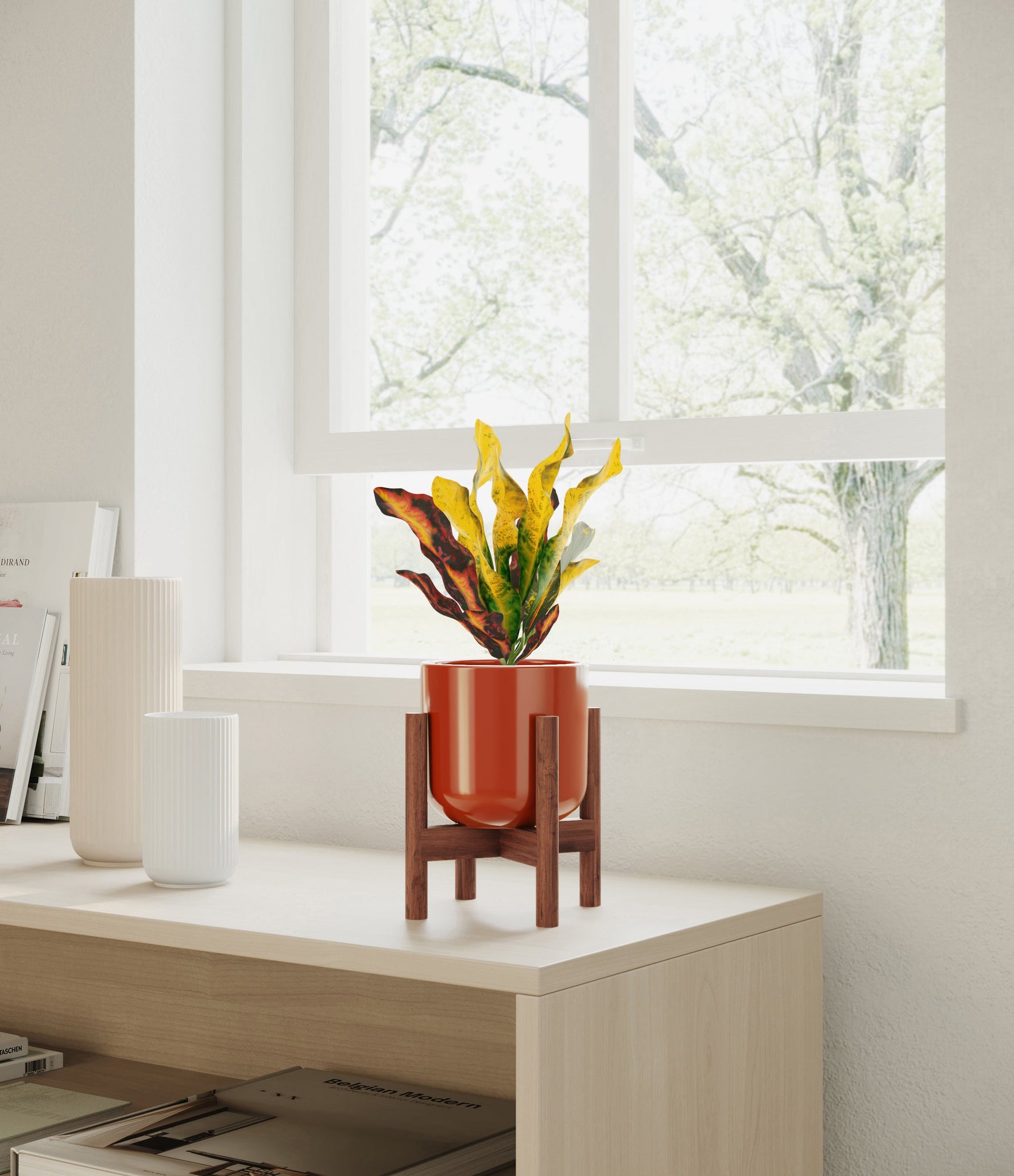 Bold and beautiful, Croton Mammy is by far the most picturesque plant friend. None can compete with its wide range of colors, from deep purples and fiery reds to bright yellows and neon greens - all in the same place at the same time. With such a voluminous presence, it holds first place in bringing a burst of colorful energy to any room. Native to India and Malaysia, it wears a vividly contrasting pattern on its plentiful narrow and curling leaves, reminiscent of a lively traditional dance in full ensemble.