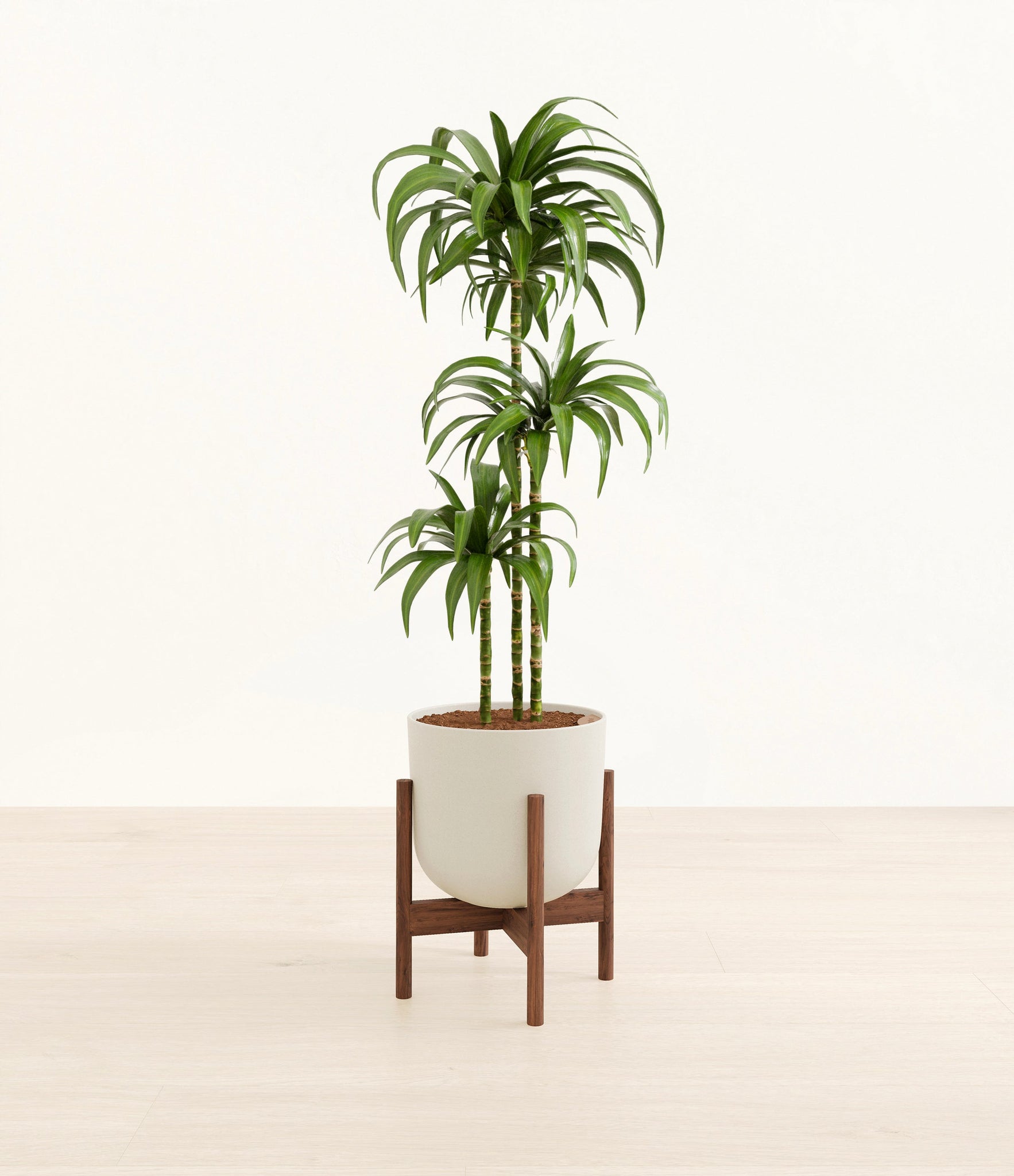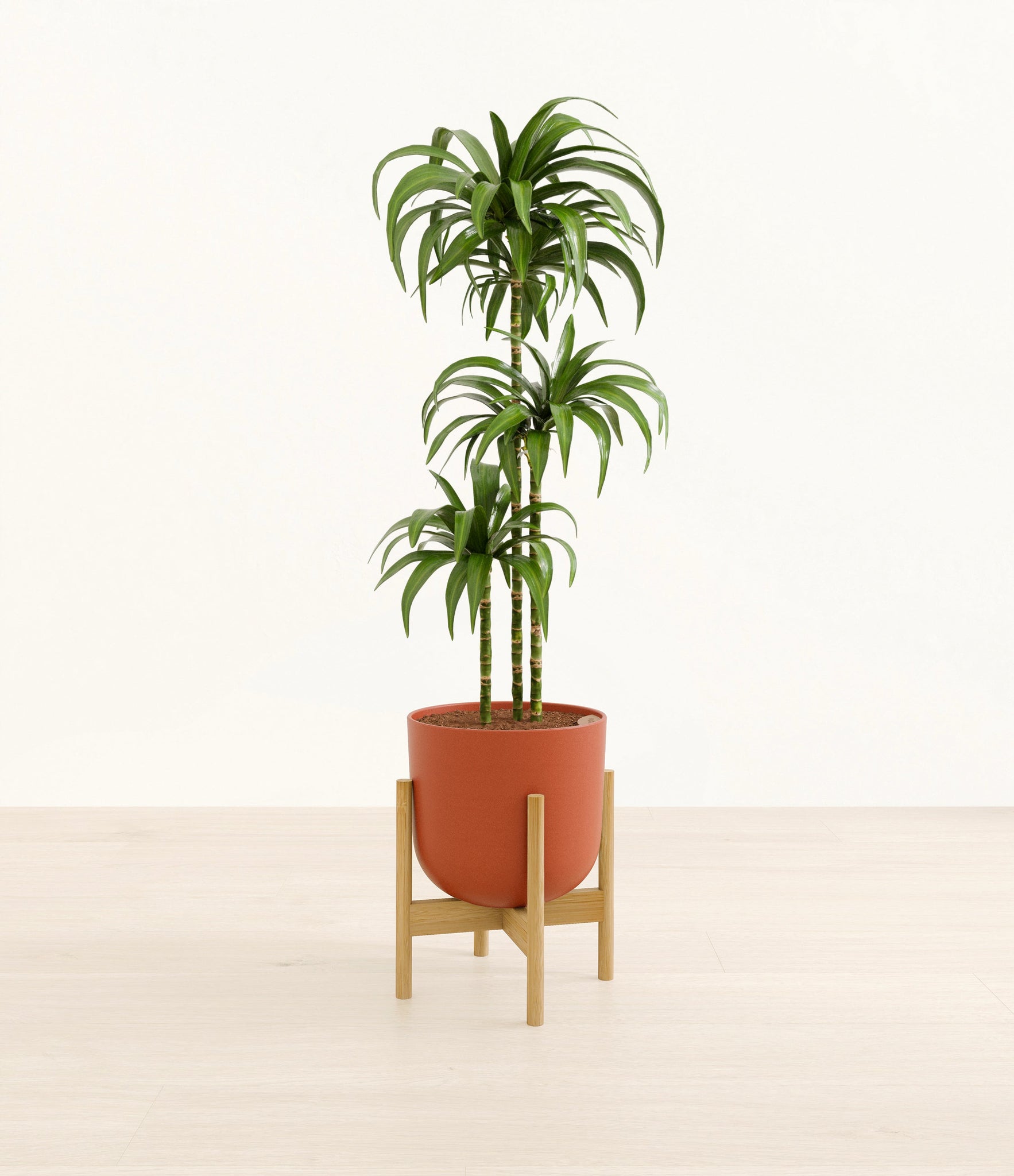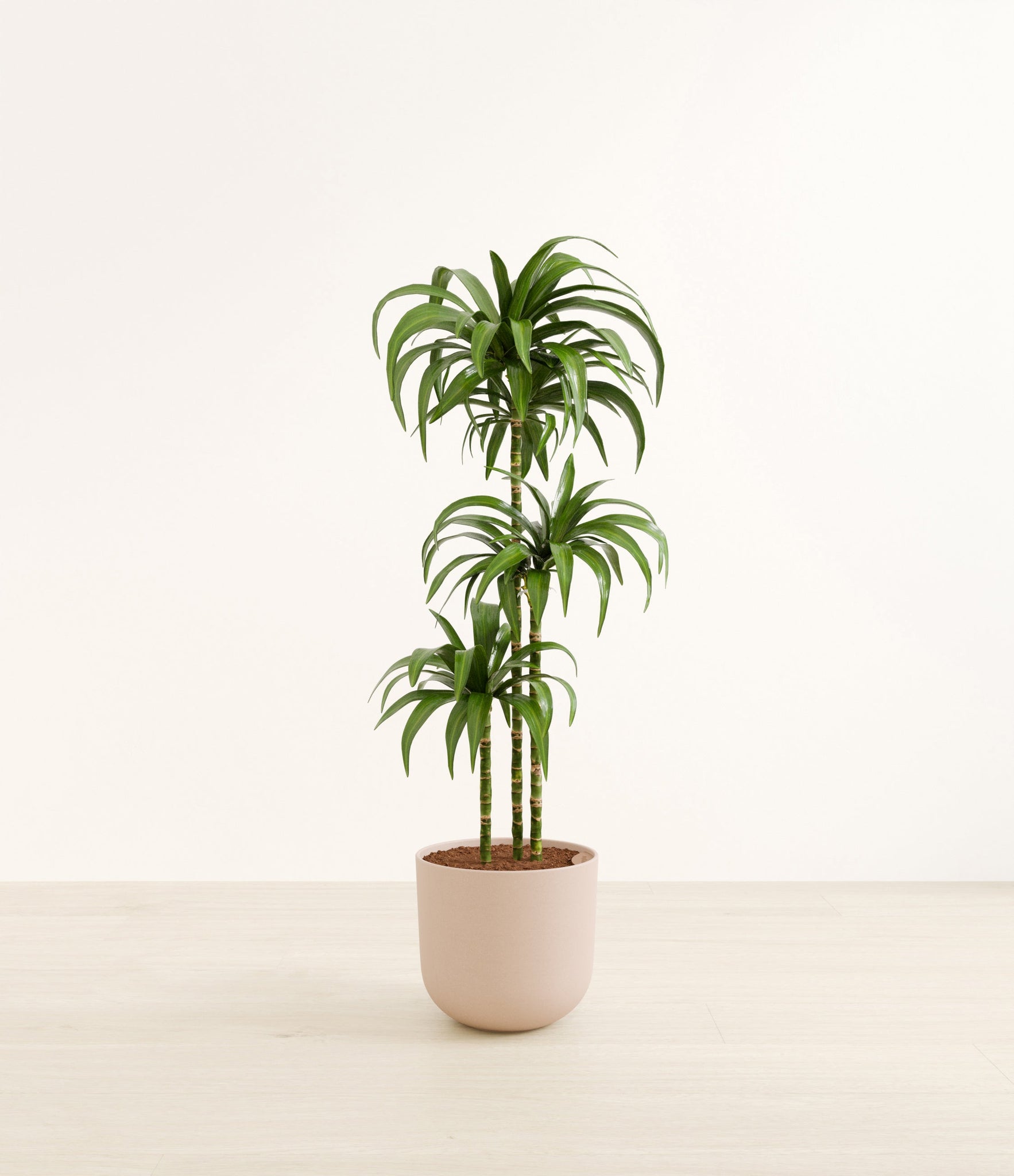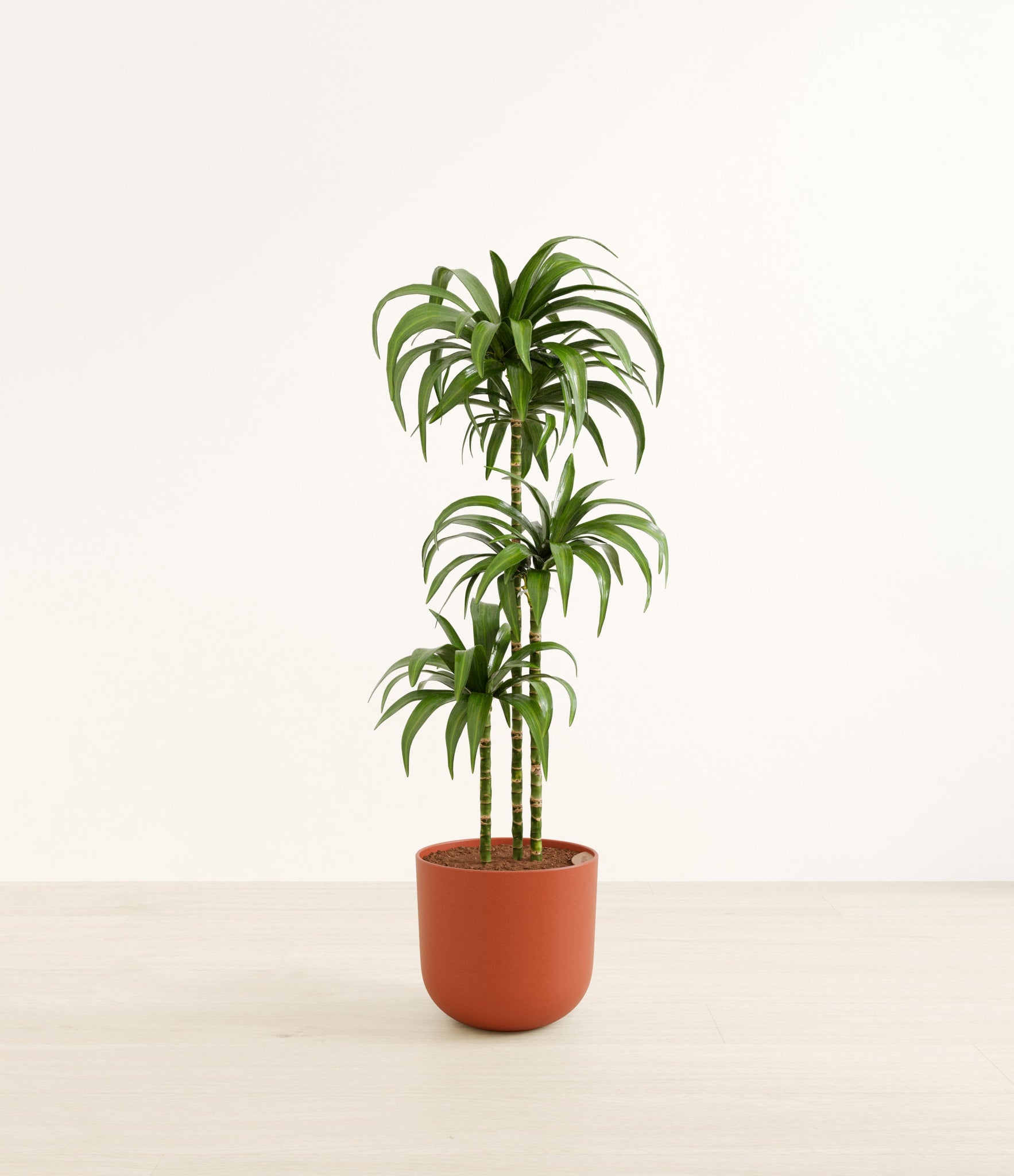 Hailing from Africa, Dracaena Janet Craig, or Dracaena Deremensis, is named after the Derema Forest in Tanzania. As the original Deremensis disappeared from cultivation, it was replaced by its resilient, adaptable and air-purifying daughter - Janet Craig, wearing a thick and wavy forest green foliage. As it evolves, Dracaena Janet Craig will drop a few lower leaves to be replaced by newer leaves on top.