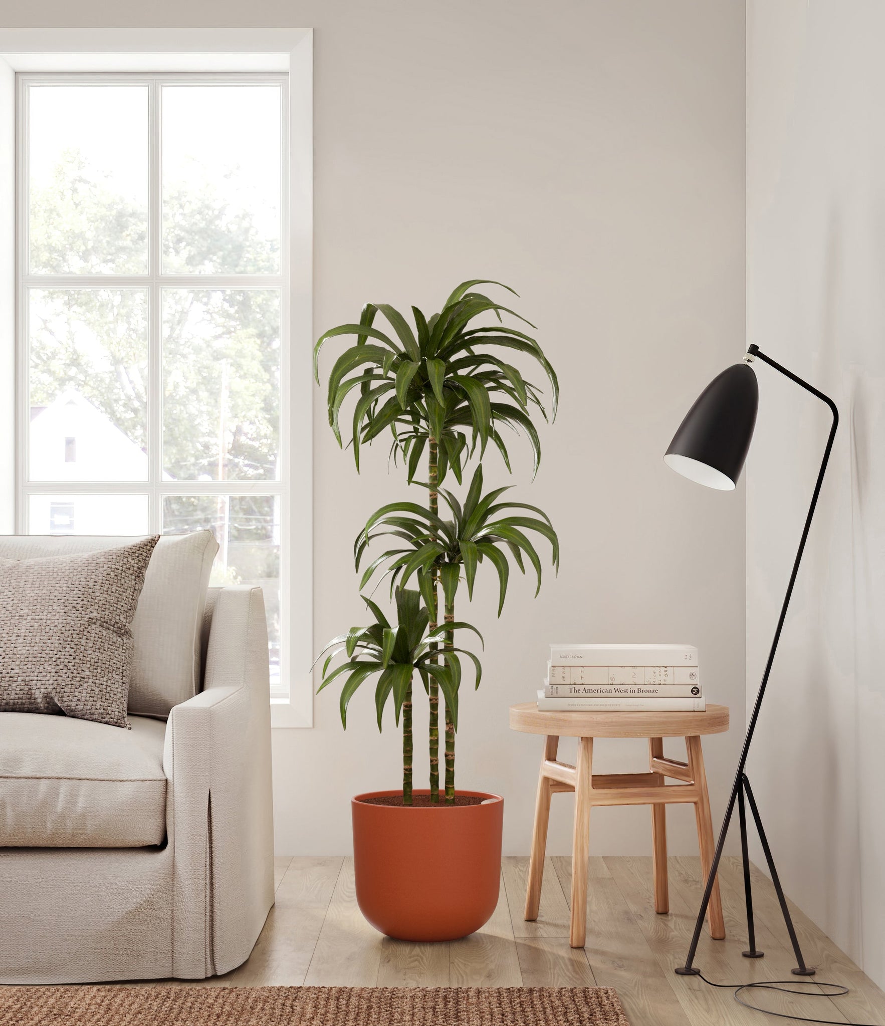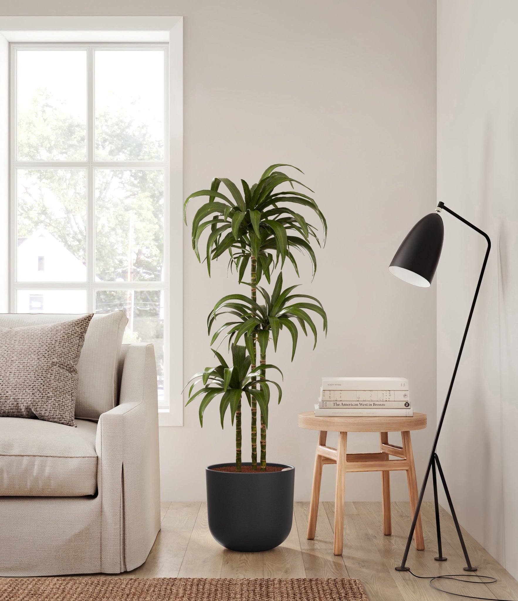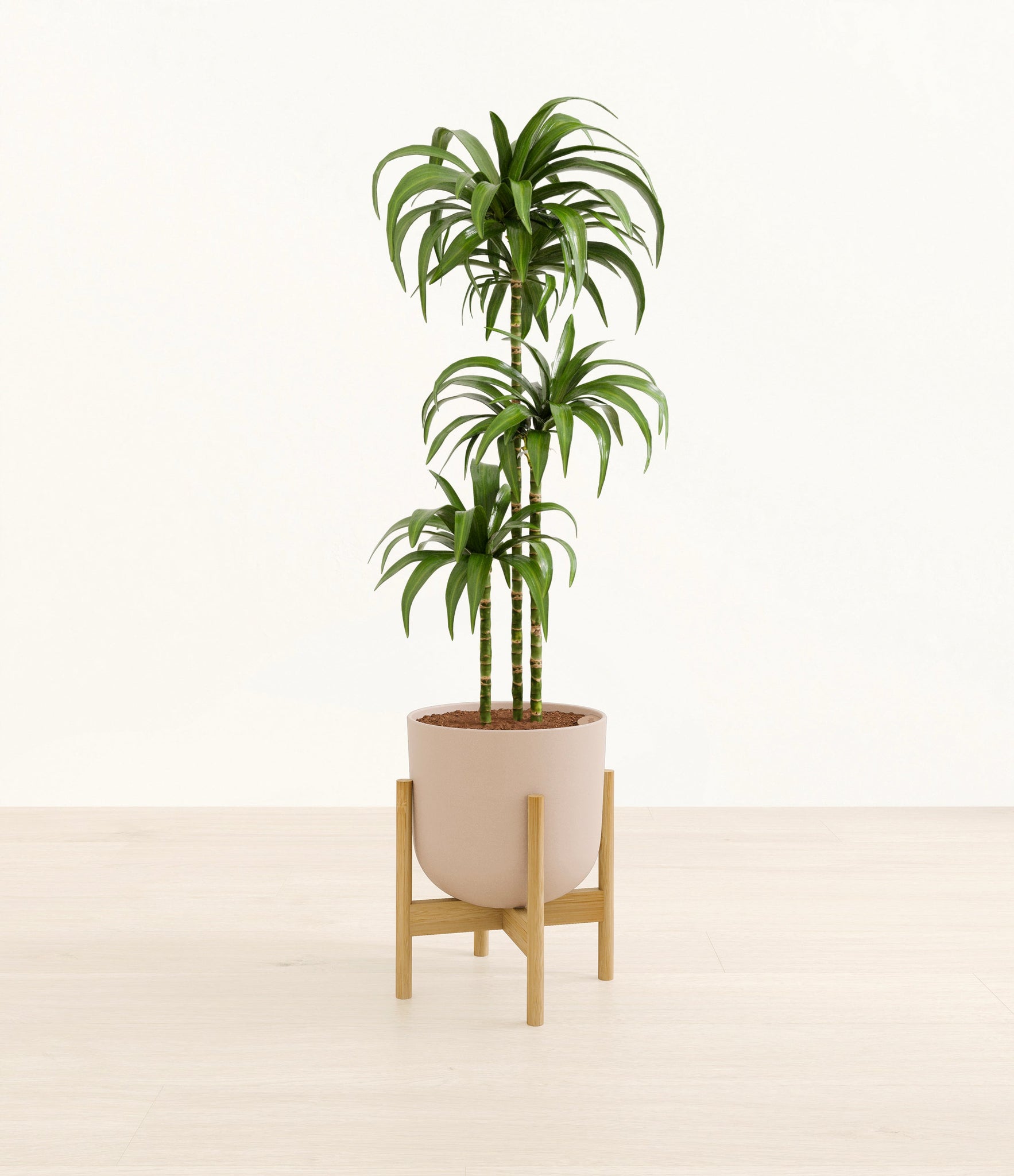 Hailing from Africa, Dracaena Janet Craig, or Dracaena Deremensis, is named after the Derema Forest in Tanzania. As the original Deremensis disappeared from cultivation, it was replaced by its resilient, adaptable and air-purifying daughter - Janet Craig, wearing a thick and wavy forest green foliage. As it evolves, Dracaena Janet Craig will drop a few lower leaves to be replaced by newer leaves on top.