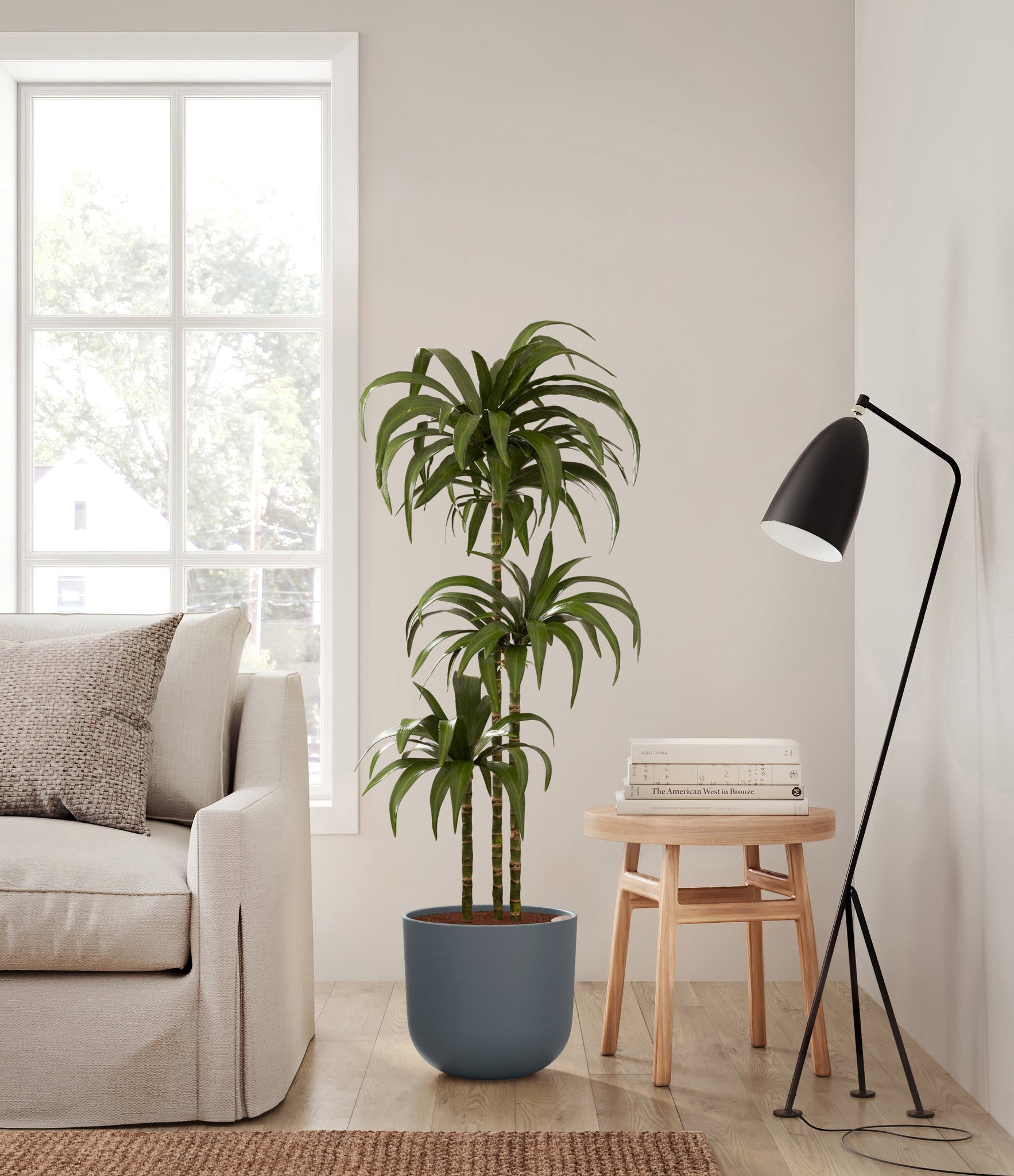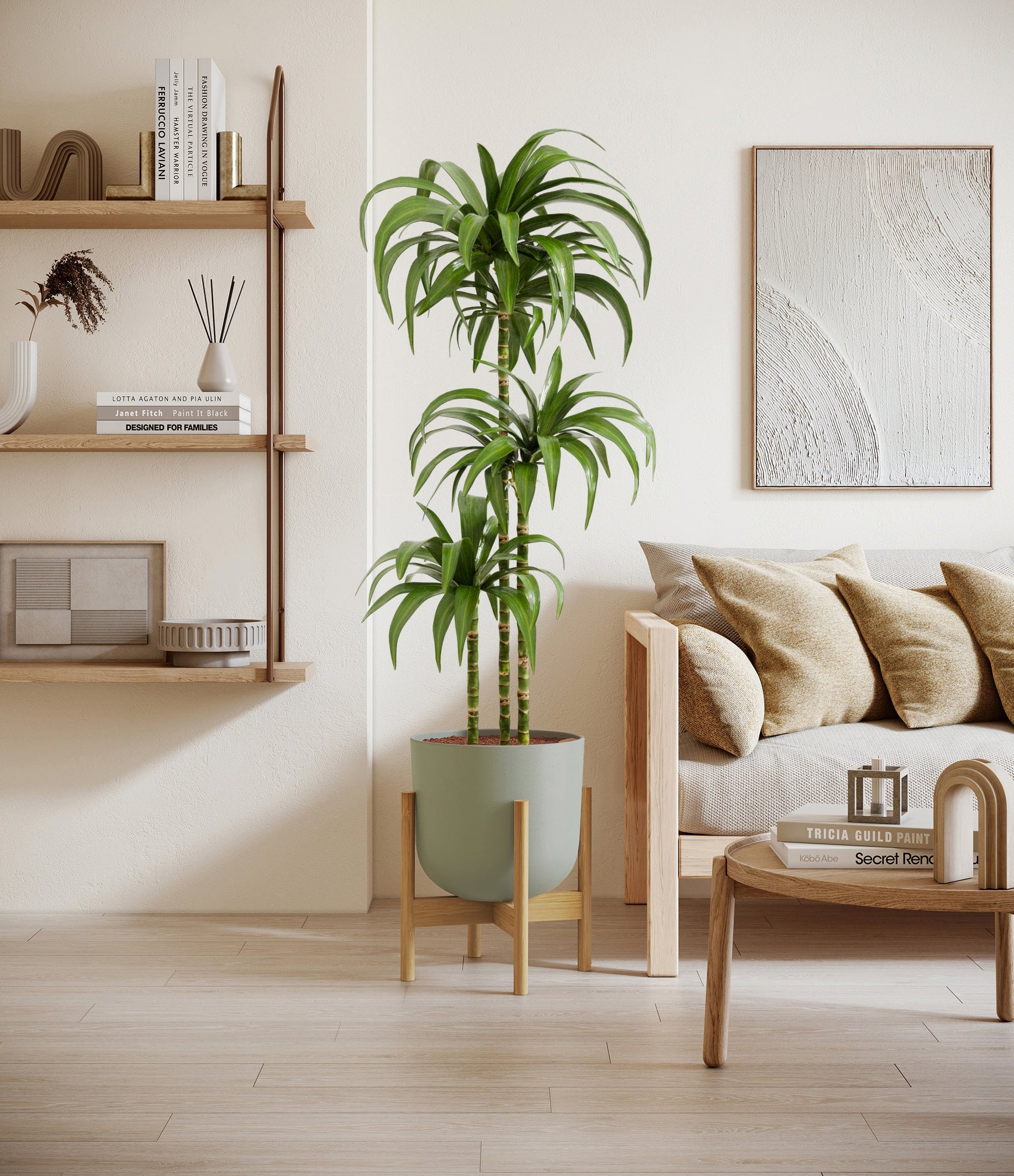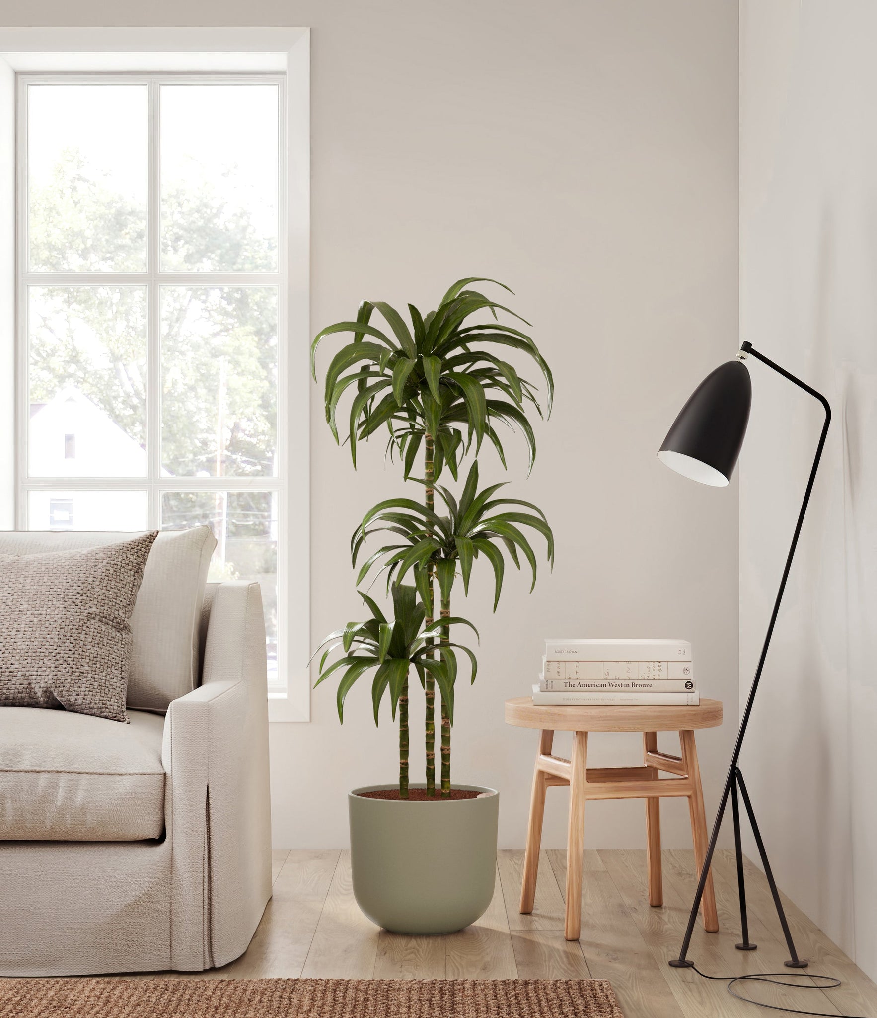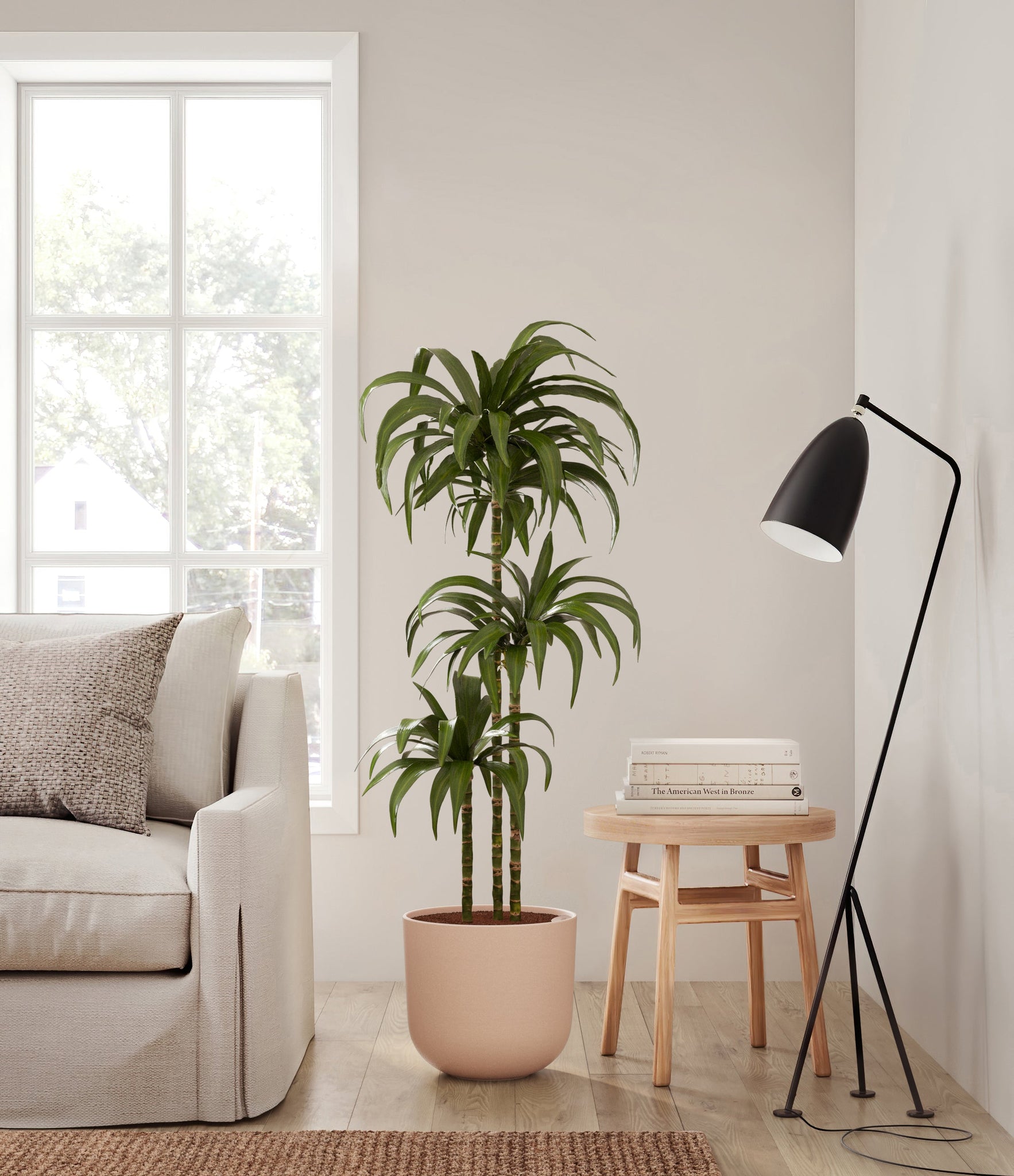 Hailing from Africa, Dracaena Janet Craig, or Dracaena Deremensis, is named after the Derema Forest in Tanzania. As the original Deremensis disappeared from cultivation, it was replaced by its resilient, adaptable and air-purifying daughter - Janet Craig, wearing a thick and wavy forest green foliage. As it evolves, Dracaena Janet Craig will drop a few lower leaves to be replaced by newer leaves on top.