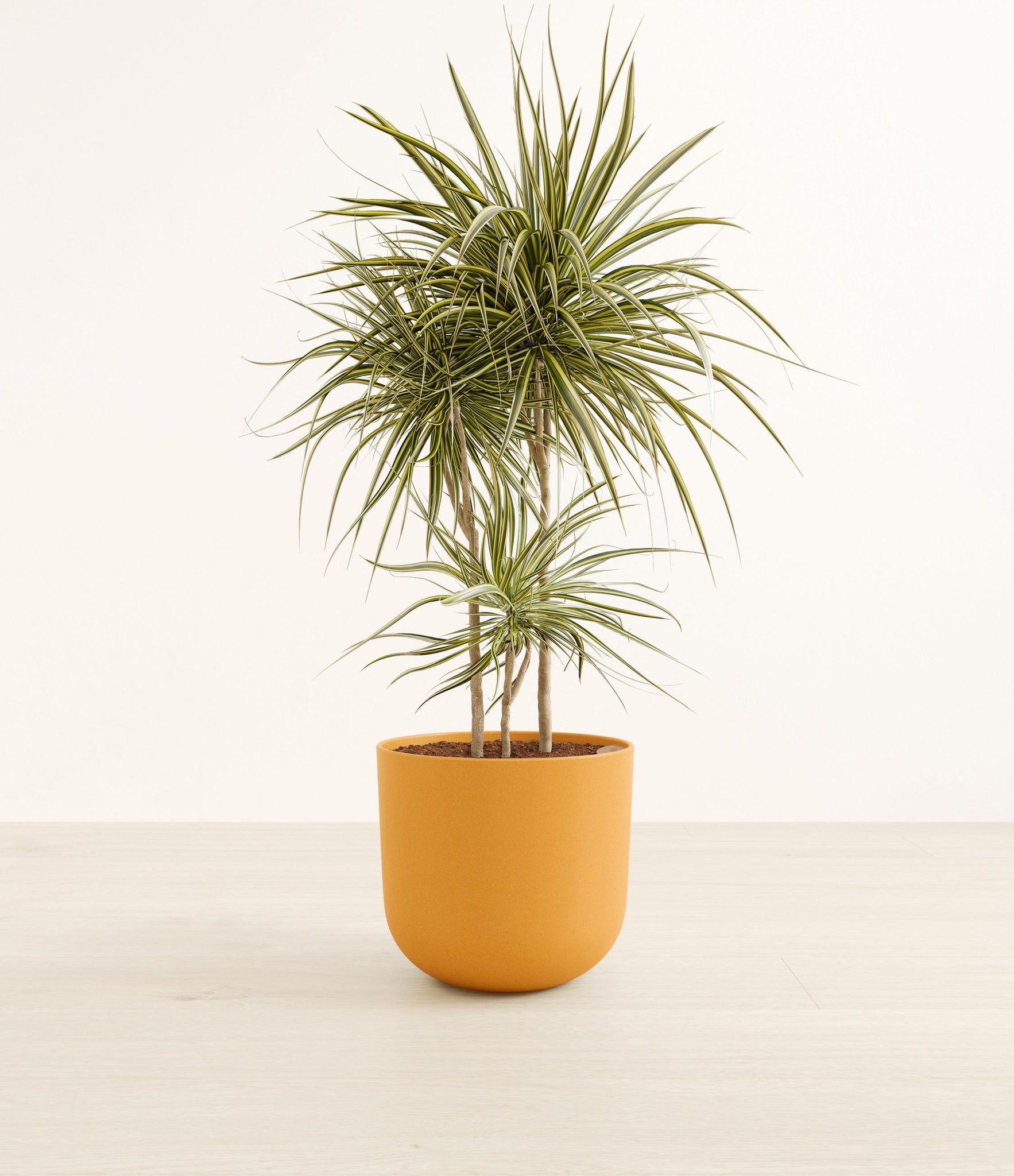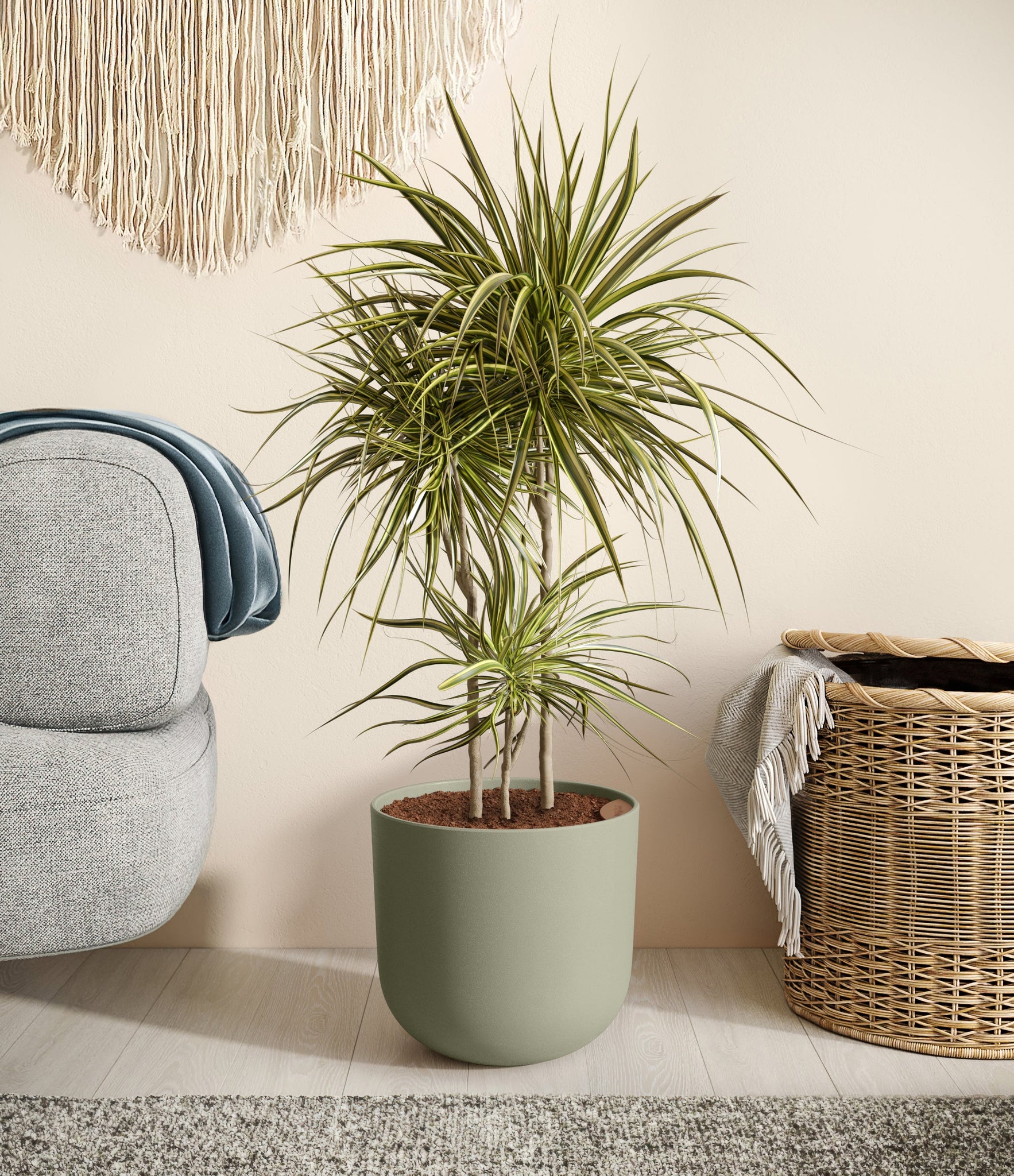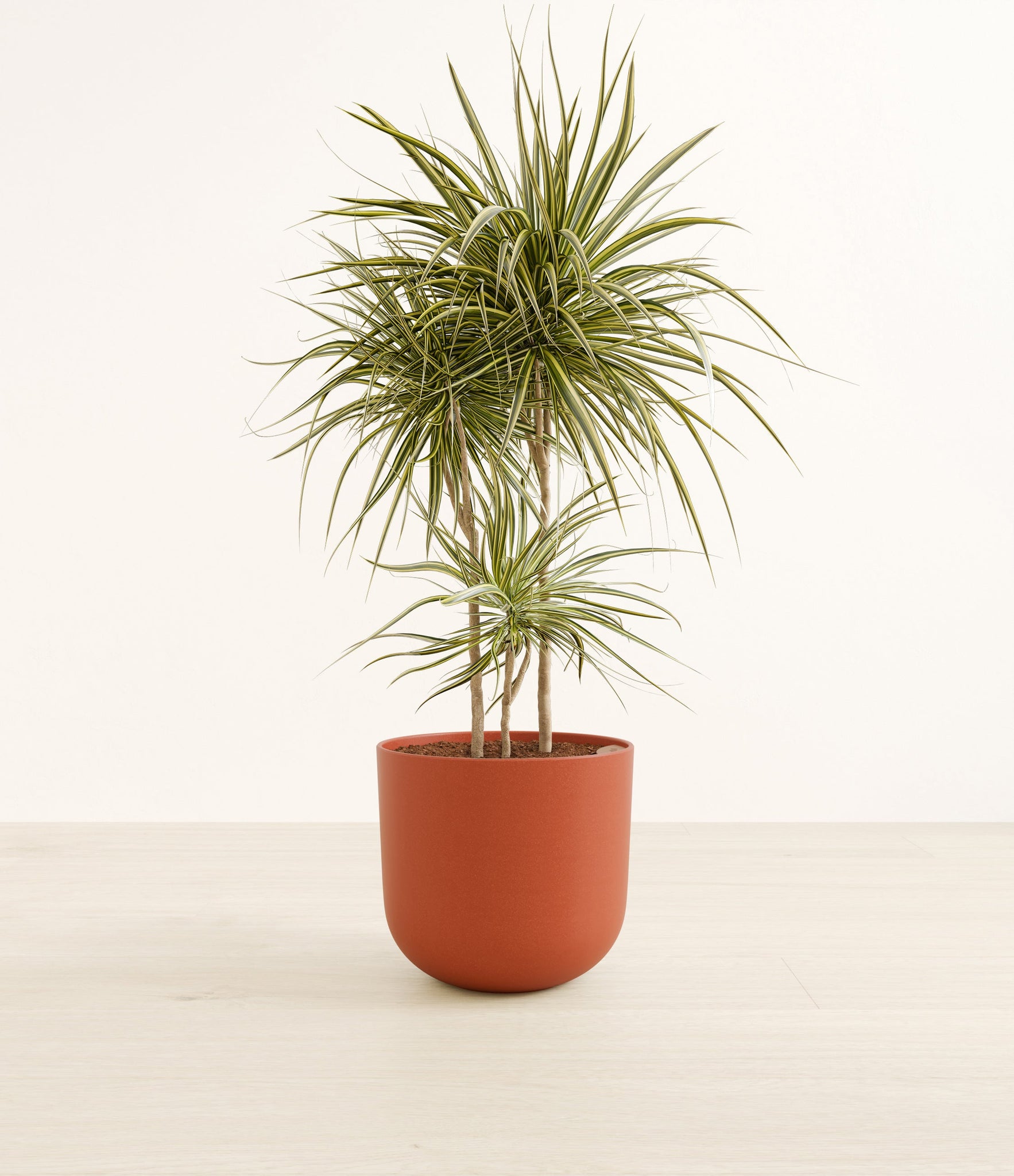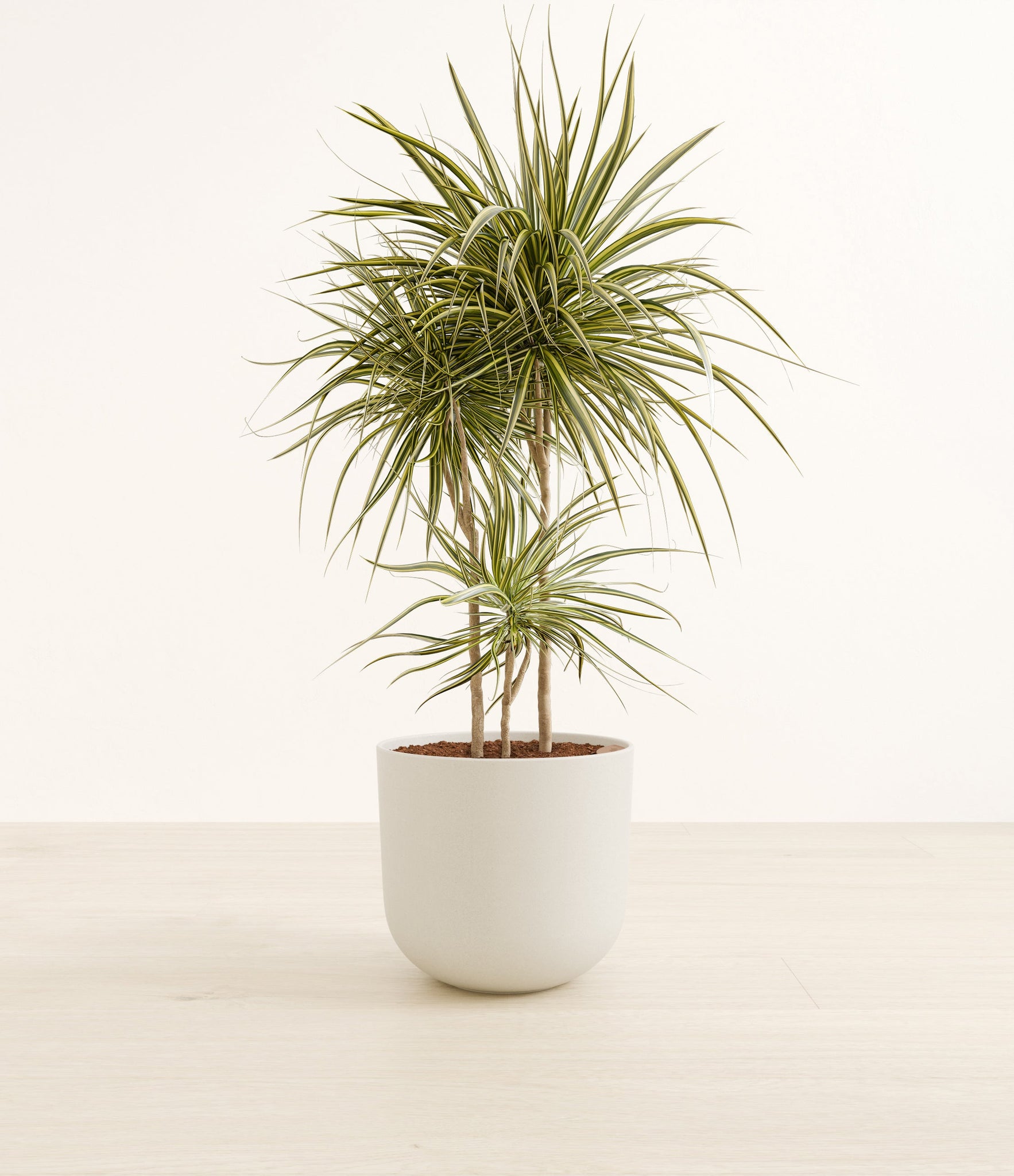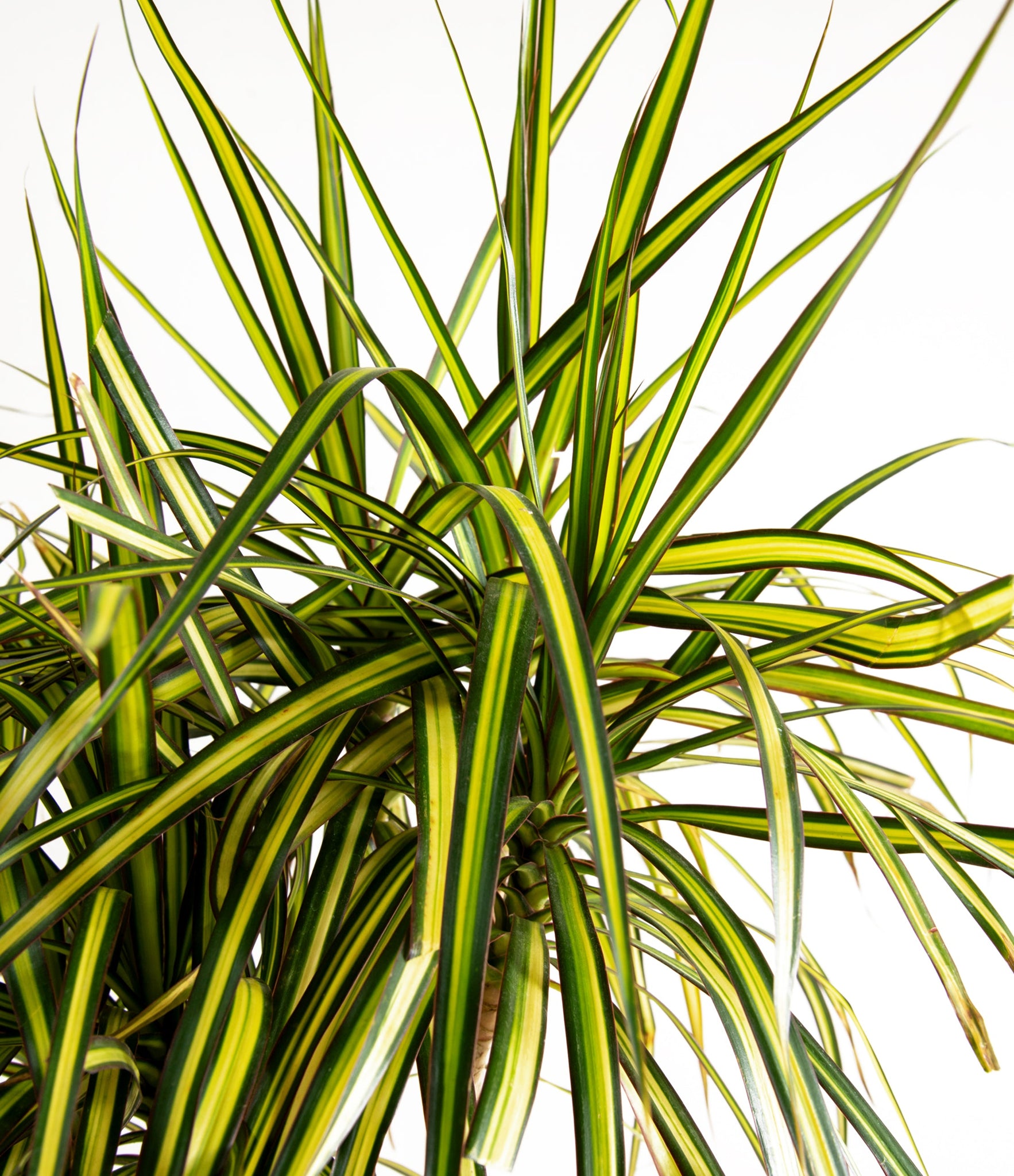 Native to the warm climates of Africa, the Dracaena 'Kiwi' stands out within its genus with its vibrant, crown-like foliage. Each slender leaf boasts a burst of kiwi green edged with bold stripes of cream, creating a visual spectacle. In the home, this Dracaena 'Kiwi' evokes a lively tropical ambiance, with leaves that arch gracefully from a central stalk, reminiscent of an exotic fountain. Its adaptability and low maintenance requirements make the 'Kiwi' a preferred choice for adding enduring natural beauty and a dynamic splash of color to any space.