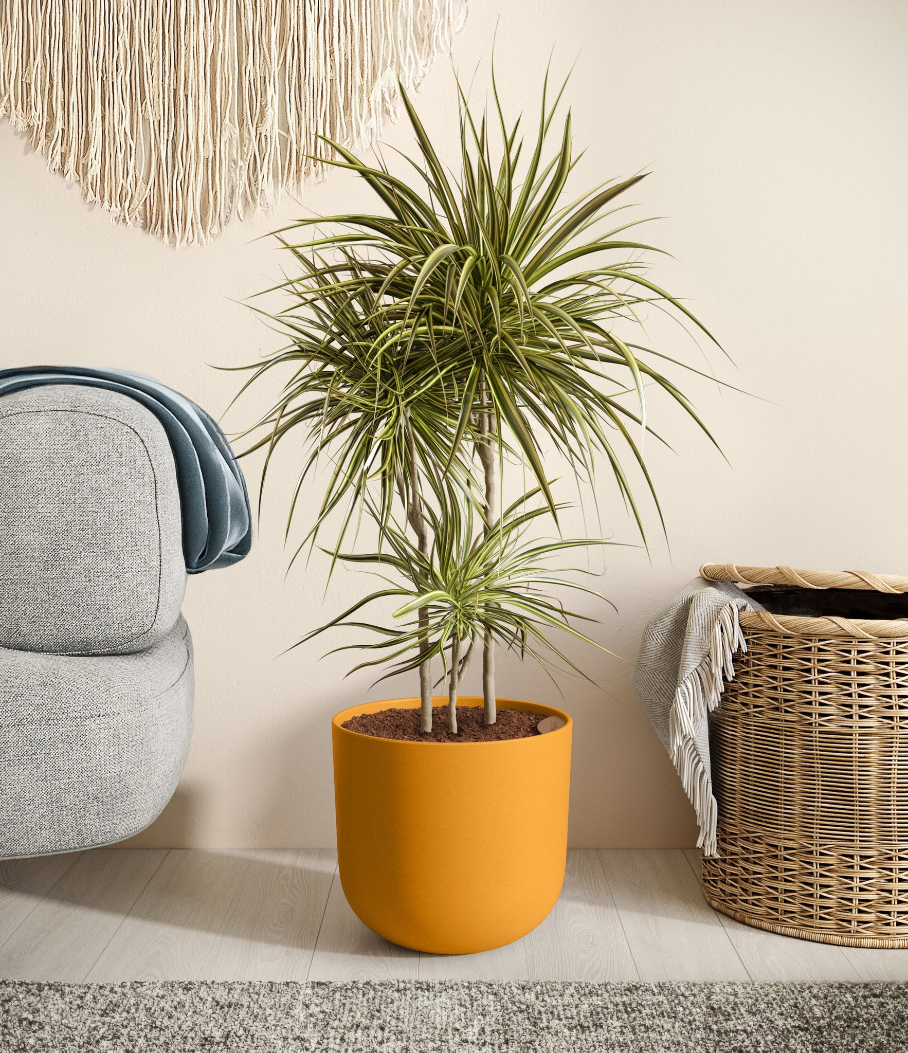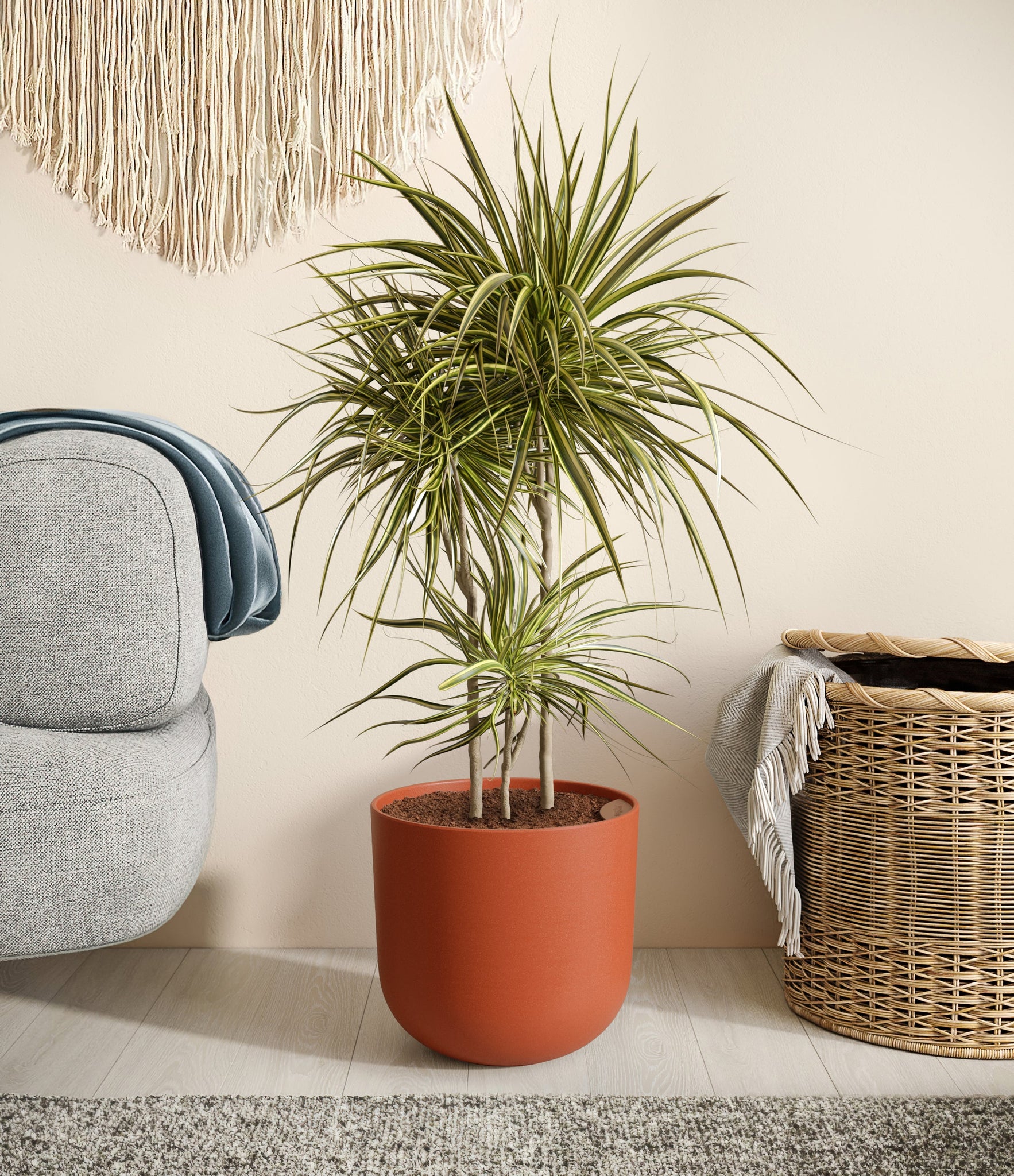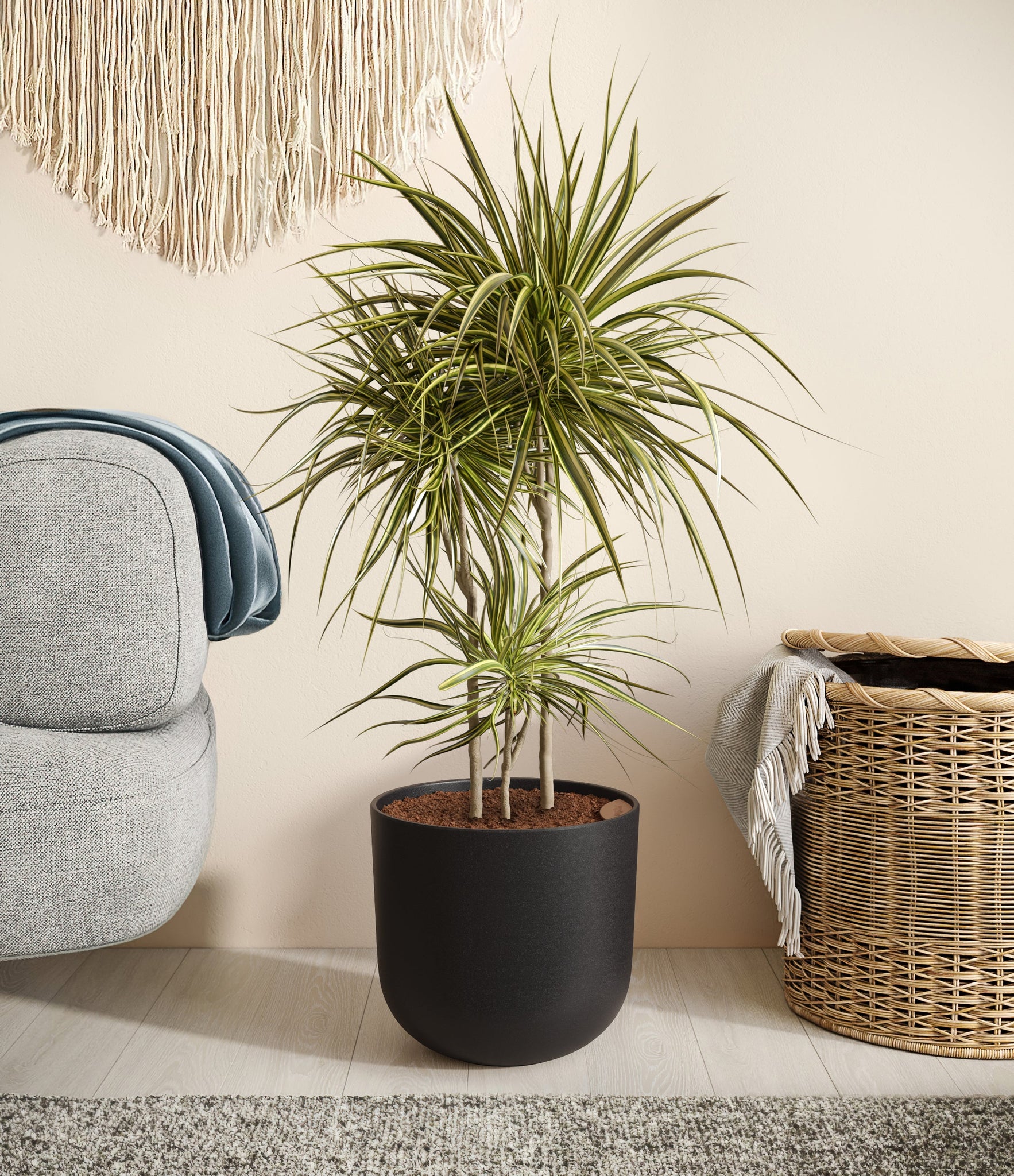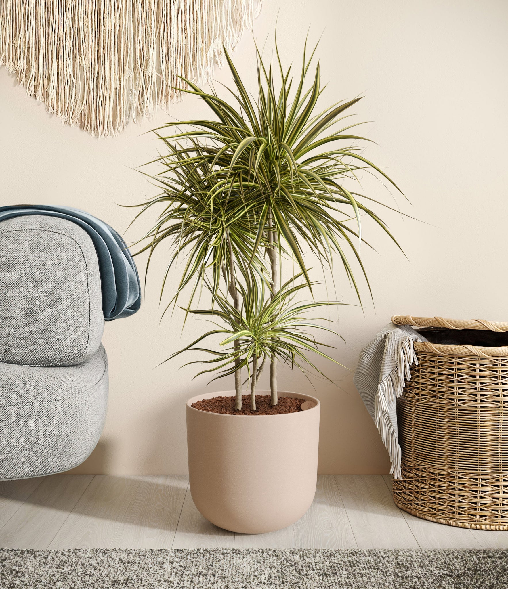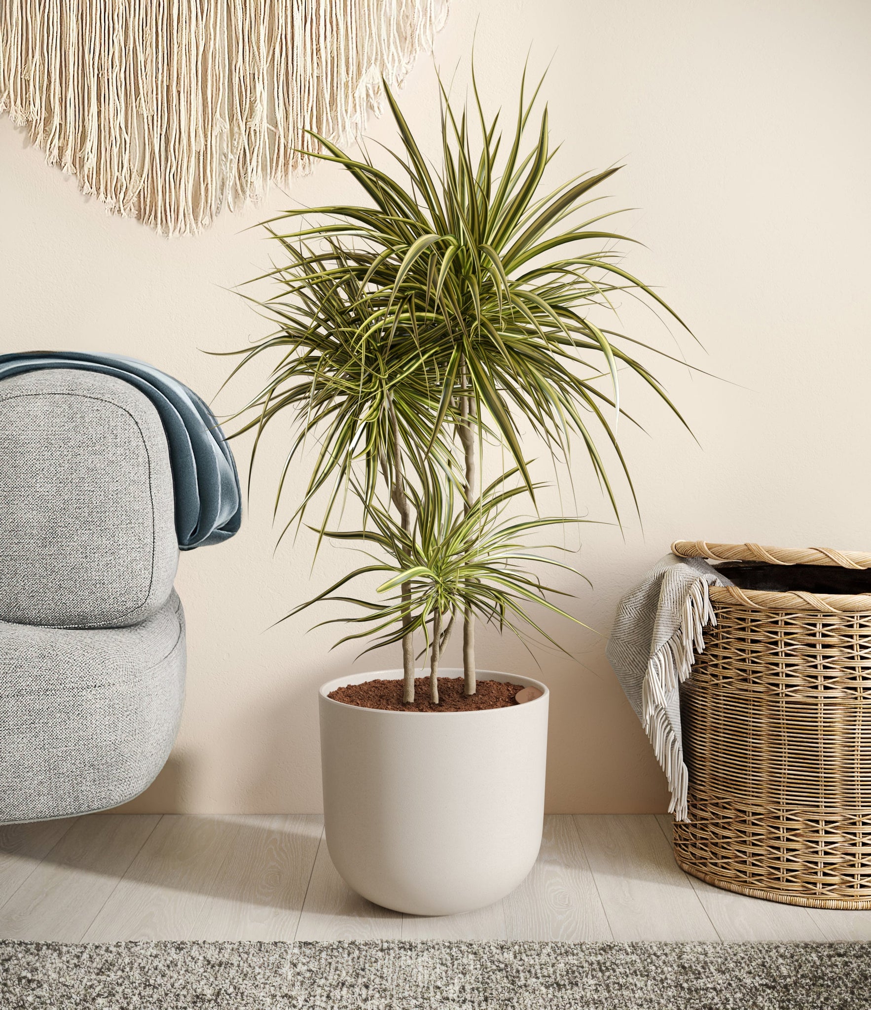 Native to the warm climates of Africa, the Dracaena 'Kiwi' stands out within its genus with its vibrant, crown-like foliage. Each slender leaf boasts a burst of kiwi green edged with bold stripes of cream, creating a visual spectacle. In the home, this Dracaena 'Kiwi' evokes a lively tropical ambiance, with leaves that arch gracefully from a central stalk, reminiscent of an exotic fountain. Its adaptability and low maintenance requirements make the 'Kiwi' a preferred choice for adding enduring natural beauty and a dynamic splash of color to any space.