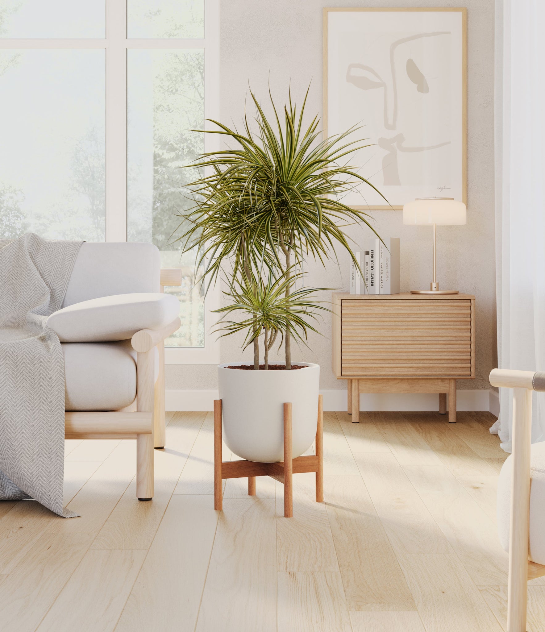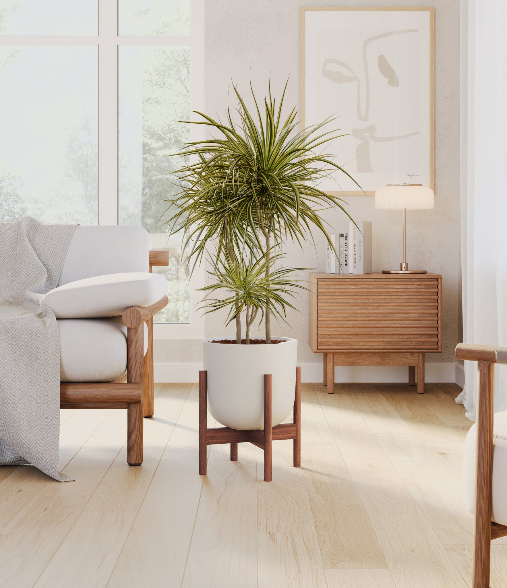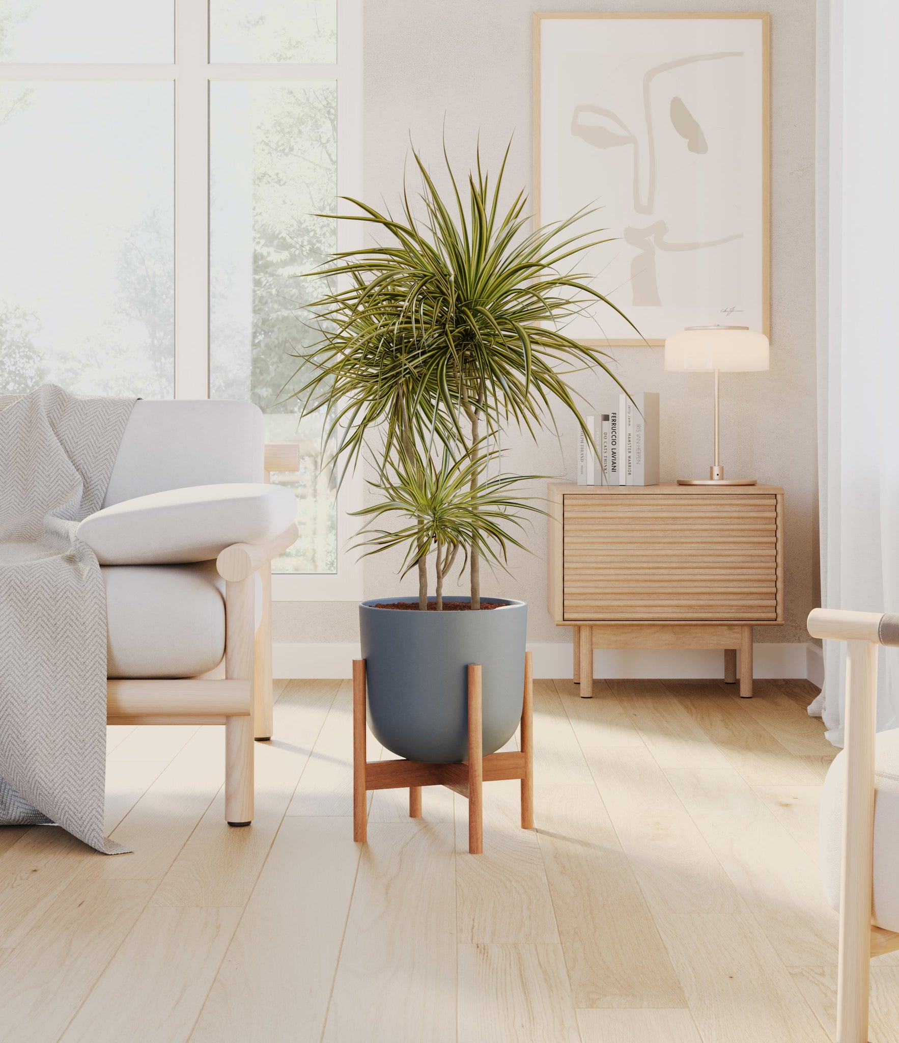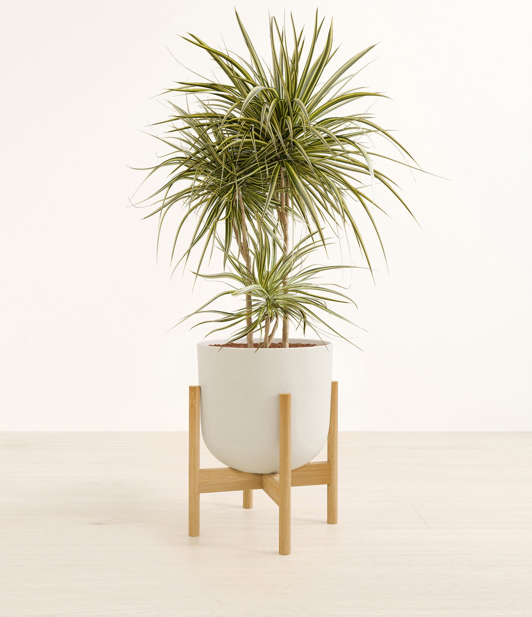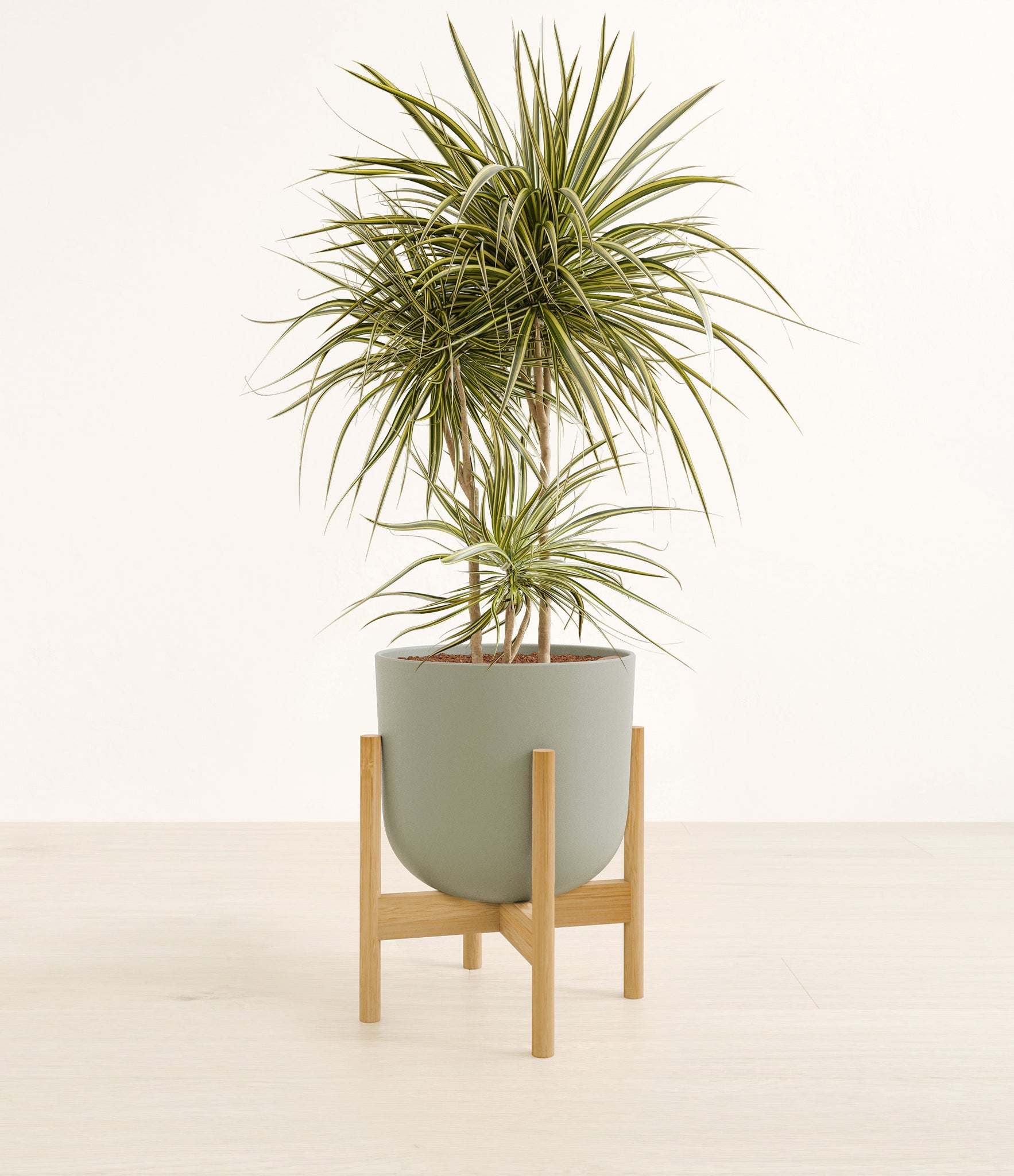 Native to the warm climates of Africa, the Dracaena 'Kiwi' stands out within its genus with its vibrant, crown-like foliage. Each slender leaf boasts a burst of kiwi green edged with bold stripes of cream, creating a visual spectacle. In the home, this Dracaena 'Kiwi' evokes a lively tropical ambiance, with leaves that arch gracefully from a central stalk, reminiscent of an exotic fountain. Its adaptability and low maintenance requirements make the 'Kiwi' a preferred choice for adding enduring natural beauty and a dynamic splash of color to any space.