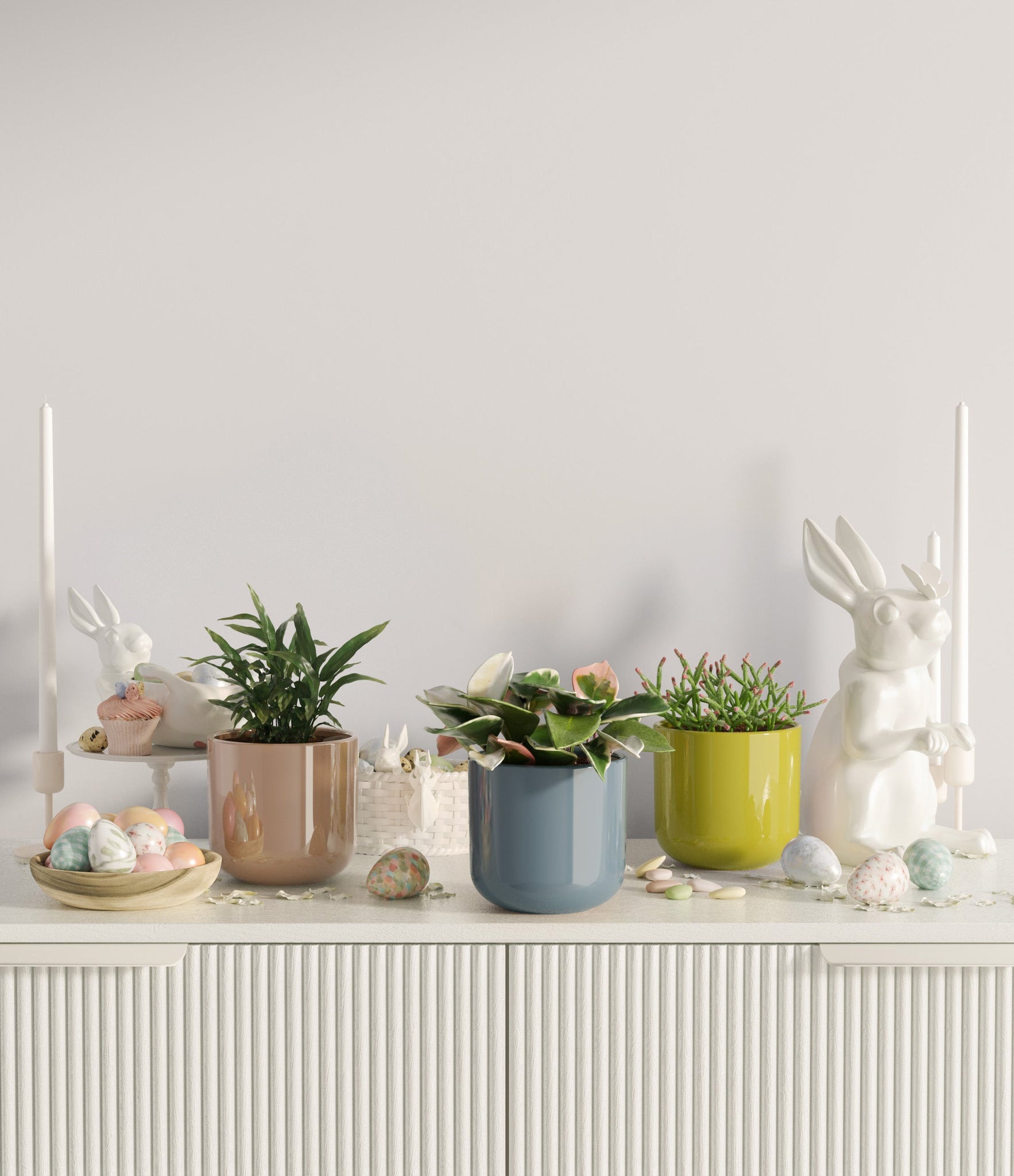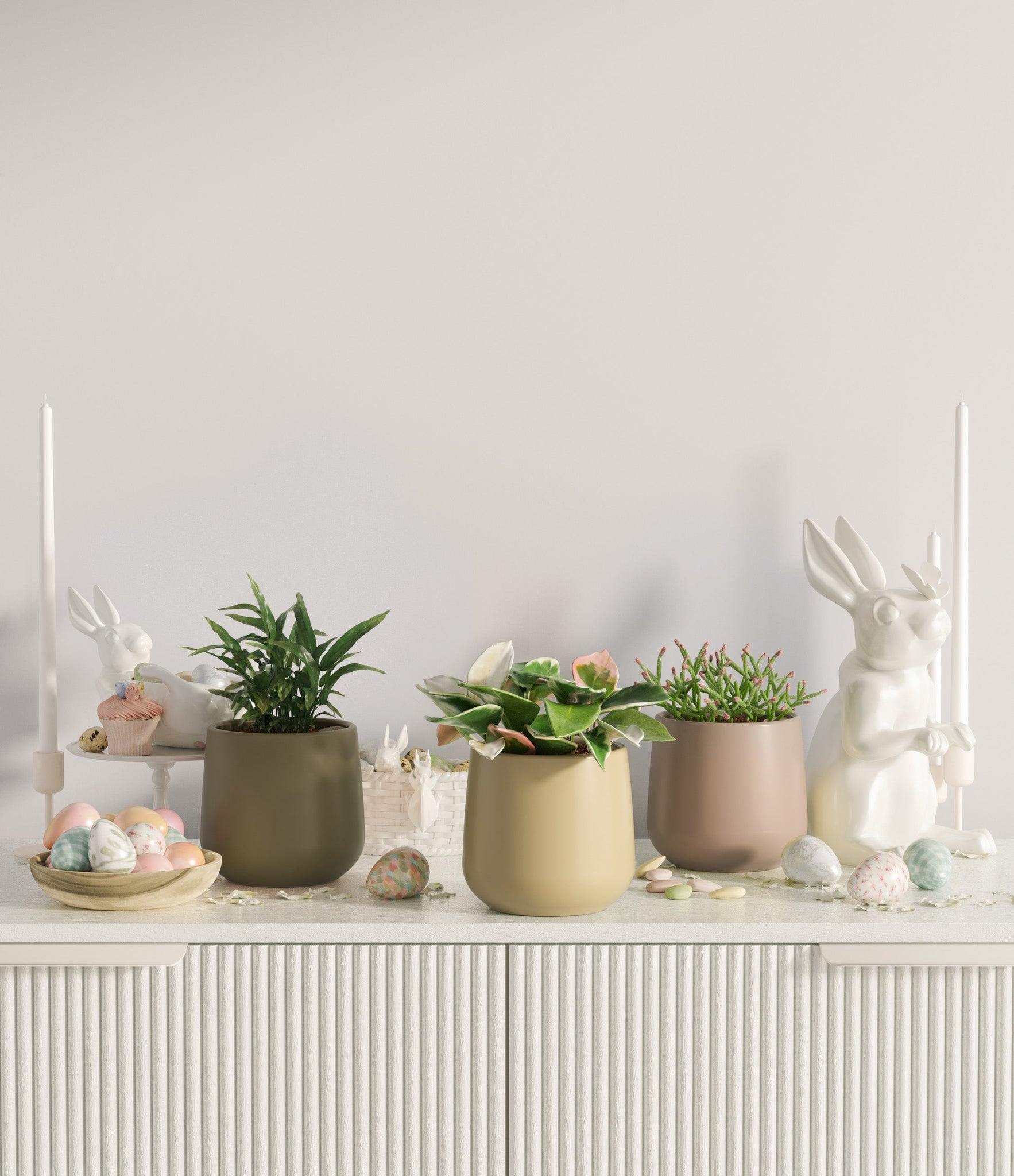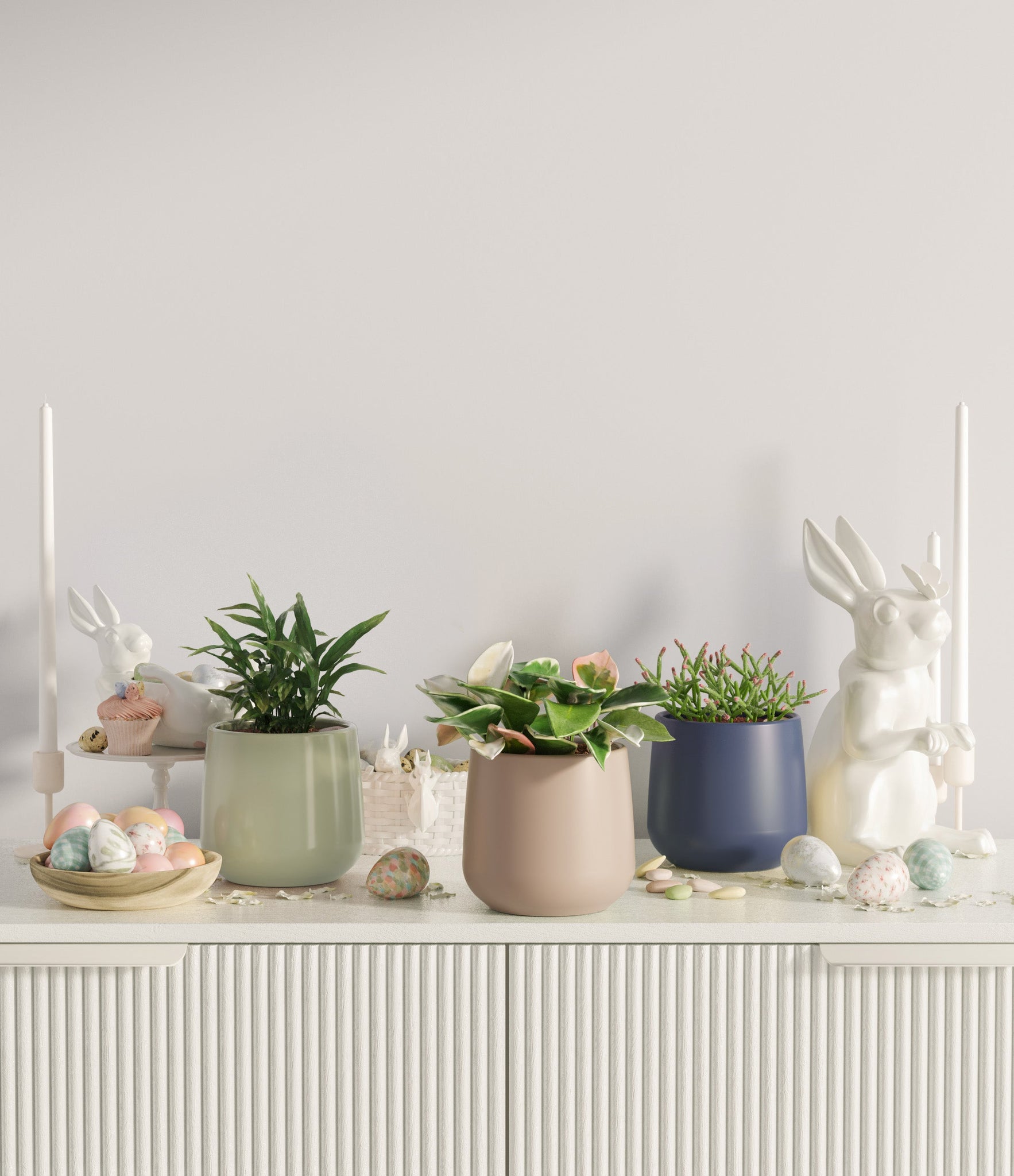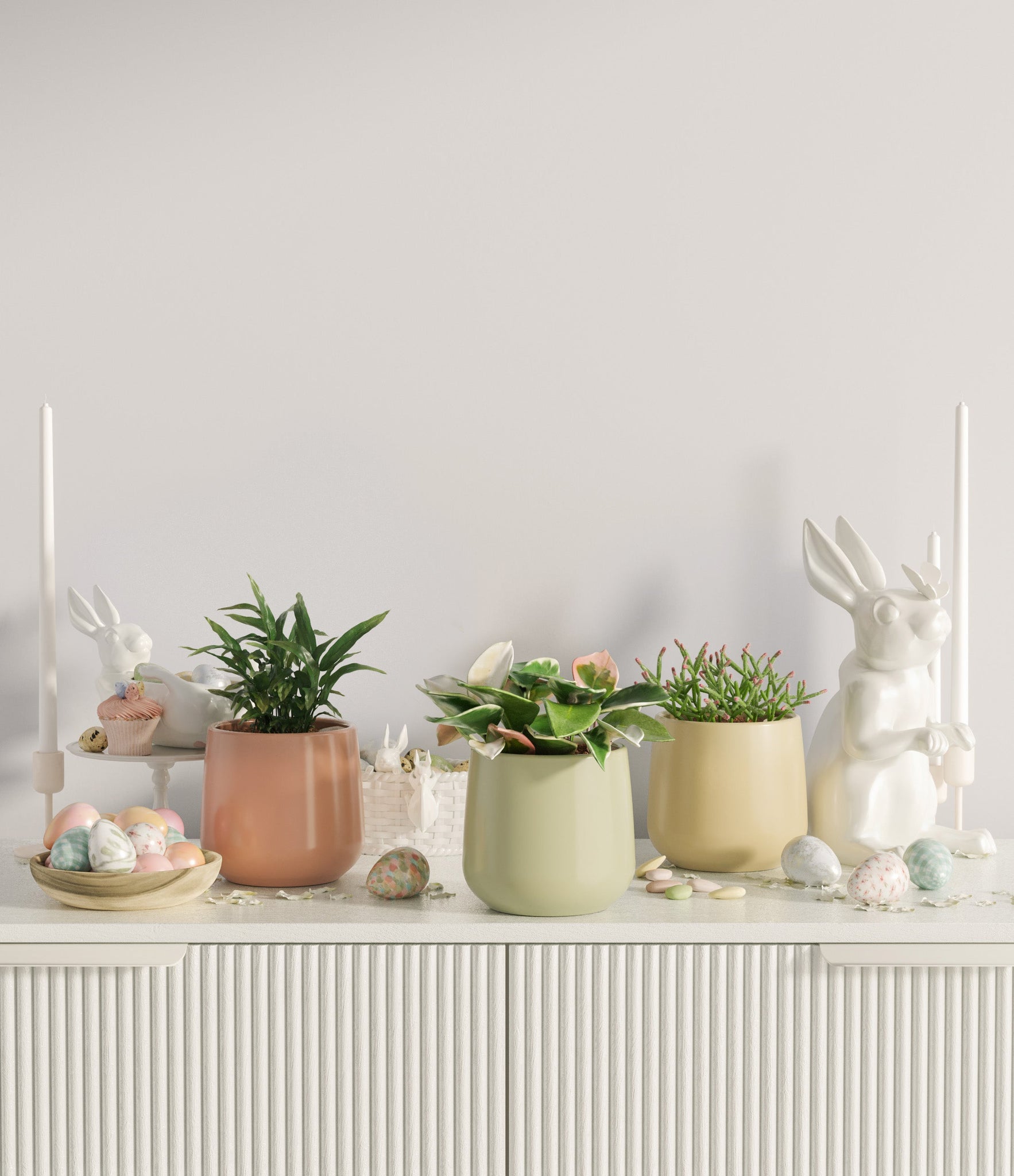 In this set, you'll receive three delightful small houseplants that are the perfect springtime additions to any space. The Mistletoe Cactus is admired for its bright green pencil-thin foliage that effortlessly trails; the Blue Star Fern has blue-green fronds that cascade with a gentle and inviting poise; and the Hoya Tri-Color is a trailing beauty, with variegations of pink and white on its forest green foliage.