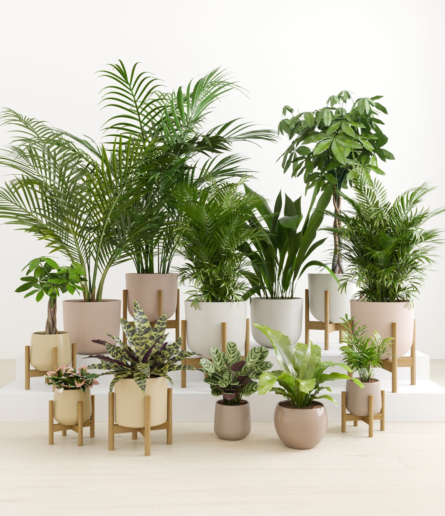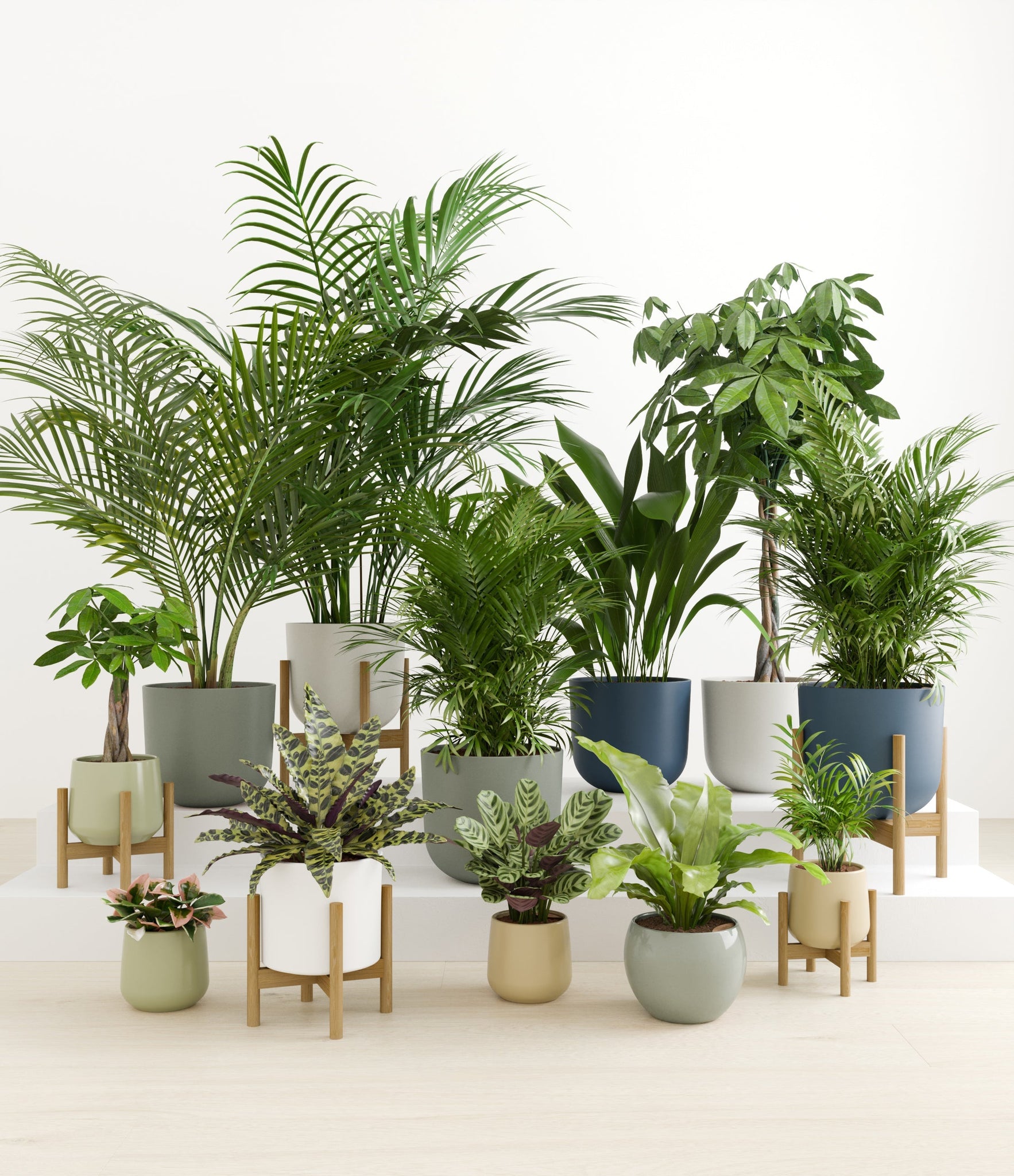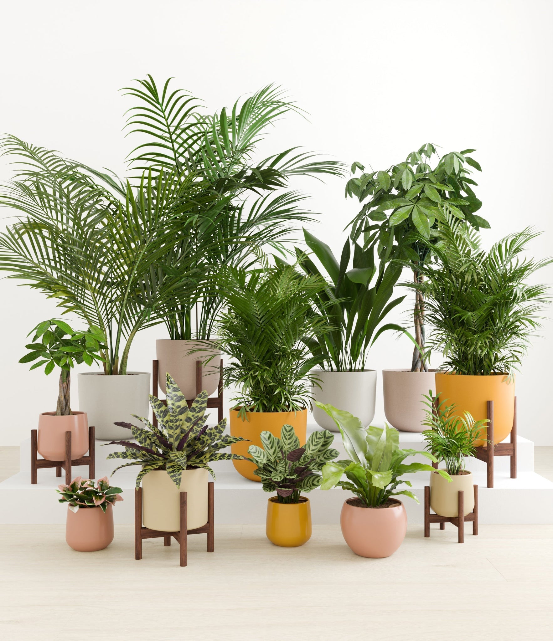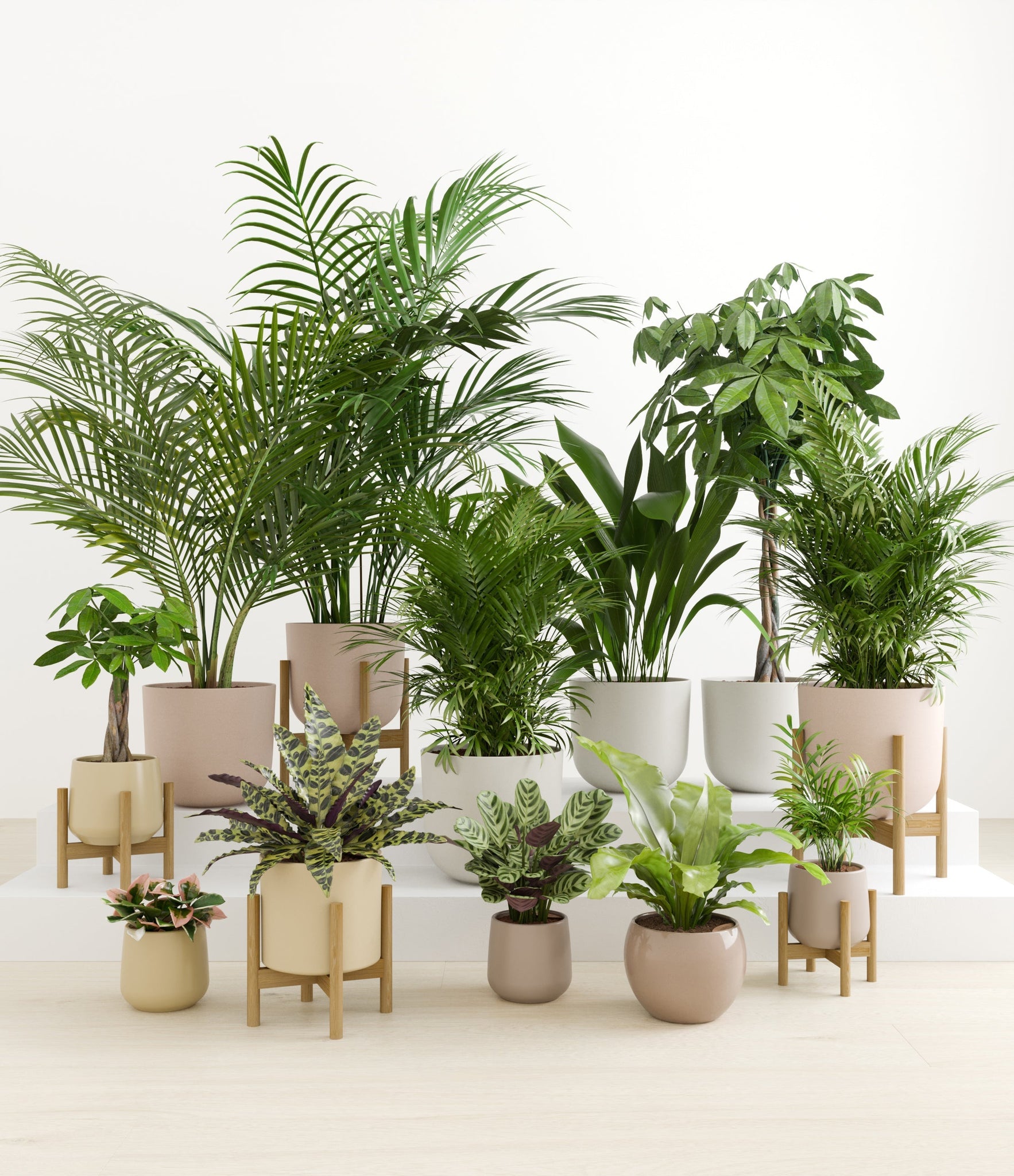 In this collection, you'll receive 12 stunning, pet-friendly houseplants that effortlessly transform any space into a lush, green indoor jungle. The set includes a small Hoya Tri Color, showcasing marvelous pink and white variegation; a small Marxii Calathea, with striking emblem-shaped leaves; and a small Parlor Palm, perfect for brightening shelves and smaller spaces. For medium plants, you'll enjoy a Bird’s Nest Fern, full of wavy fronds; a Rattlesnake Calathea, wearing its signature reptilian pattern; and a Money Tree, symbolizing good fortune and prosperity. The large selection includes two Parlor Palms, timeless favorites for low-light corners; and a Cast Iron Plant, with arching, glossy green foliage. And finally, for the grand statement pieces, you'll receive a huge Majesty Palm, a huge Areca Palm with feathery fronds, and a huge Money Tree, bringing height and elegance to any room.