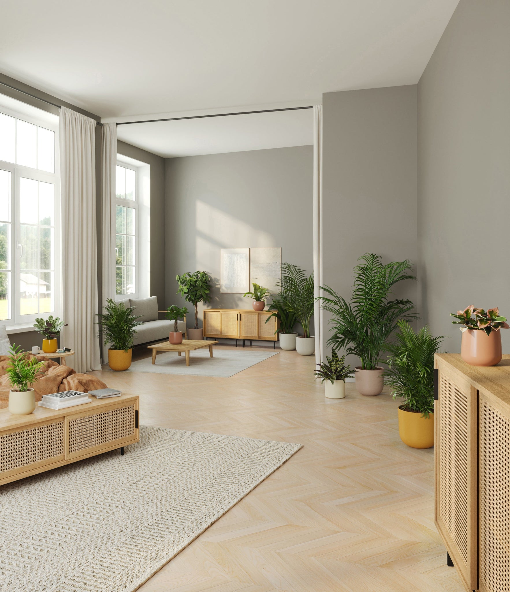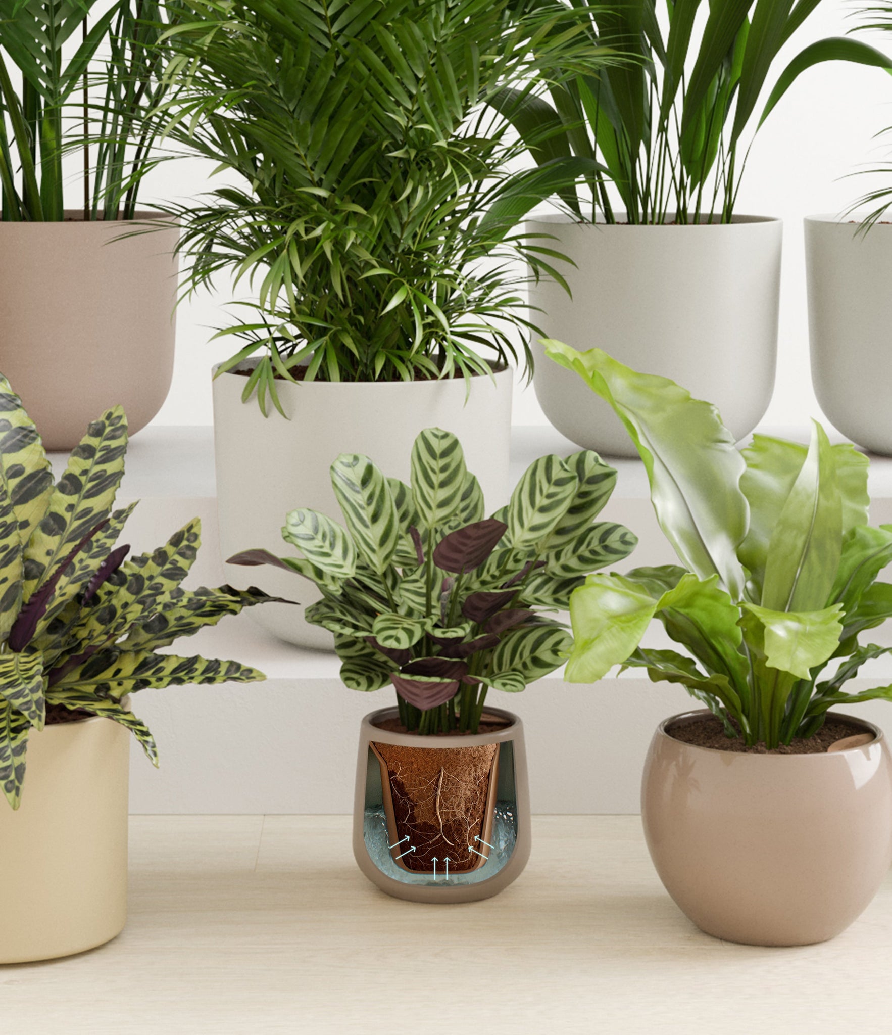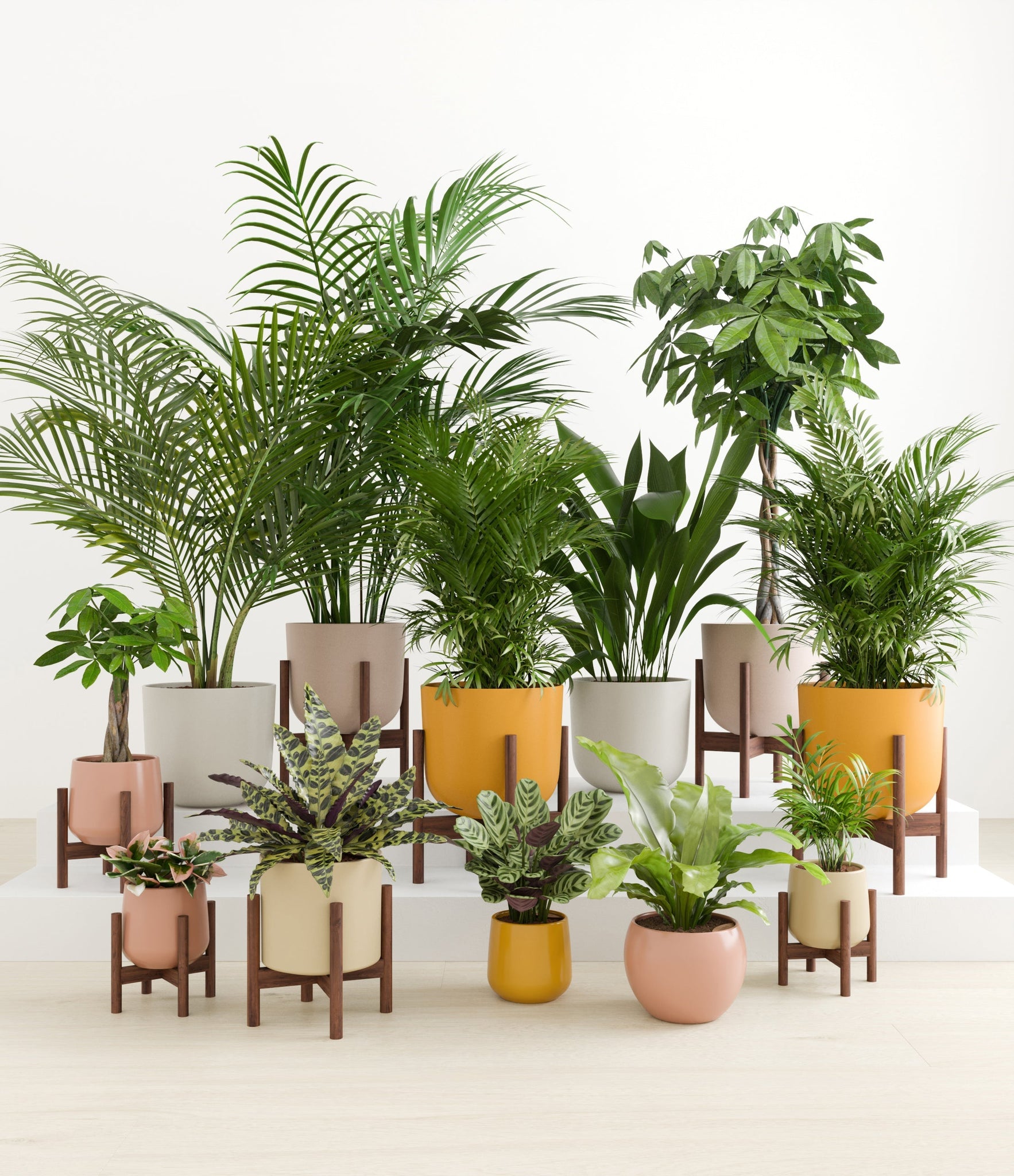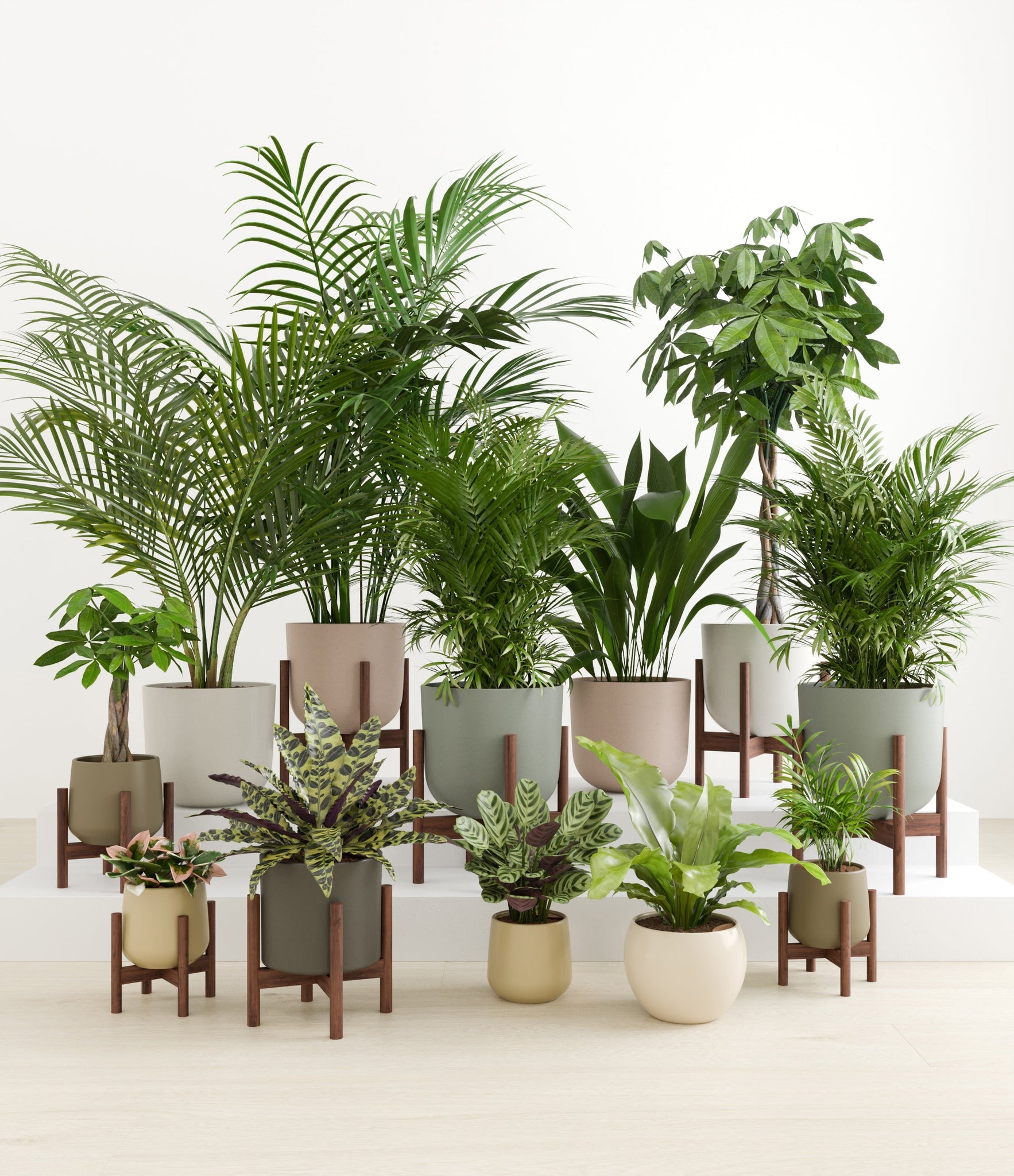 In this collection, you'll receive 12 stunning, pet-friendly houseplants that effortlessly transform any space into a lush, green indoor jungle. The set includes a small Hoya Tri Color, showcasing marvelous pink and white variegation; a small Marxii Calathea, with striking emblem-shaped leaves; and a small Parlor Palm, perfect for brightening shelves and smaller spaces. For medium plants, you'll enjoy a Bird’s Nest Fern, full of wavy fronds; a Rattlesnake Calathea, wearing its signature reptilian pattern; and a Money Tree, symbolizing good fortune and prosperity. The large selection includes two Parlor Palms, timeless favorites for low-light corners; and a Cast Iron Plant, with arching, glossy green foliage. And finally, for the grand statement pieces, you'll receive a huge Majesty Palm, a huge Areca Palm with feathery fronds, and a huge Money Tree, bringing height and elegance to any room.
