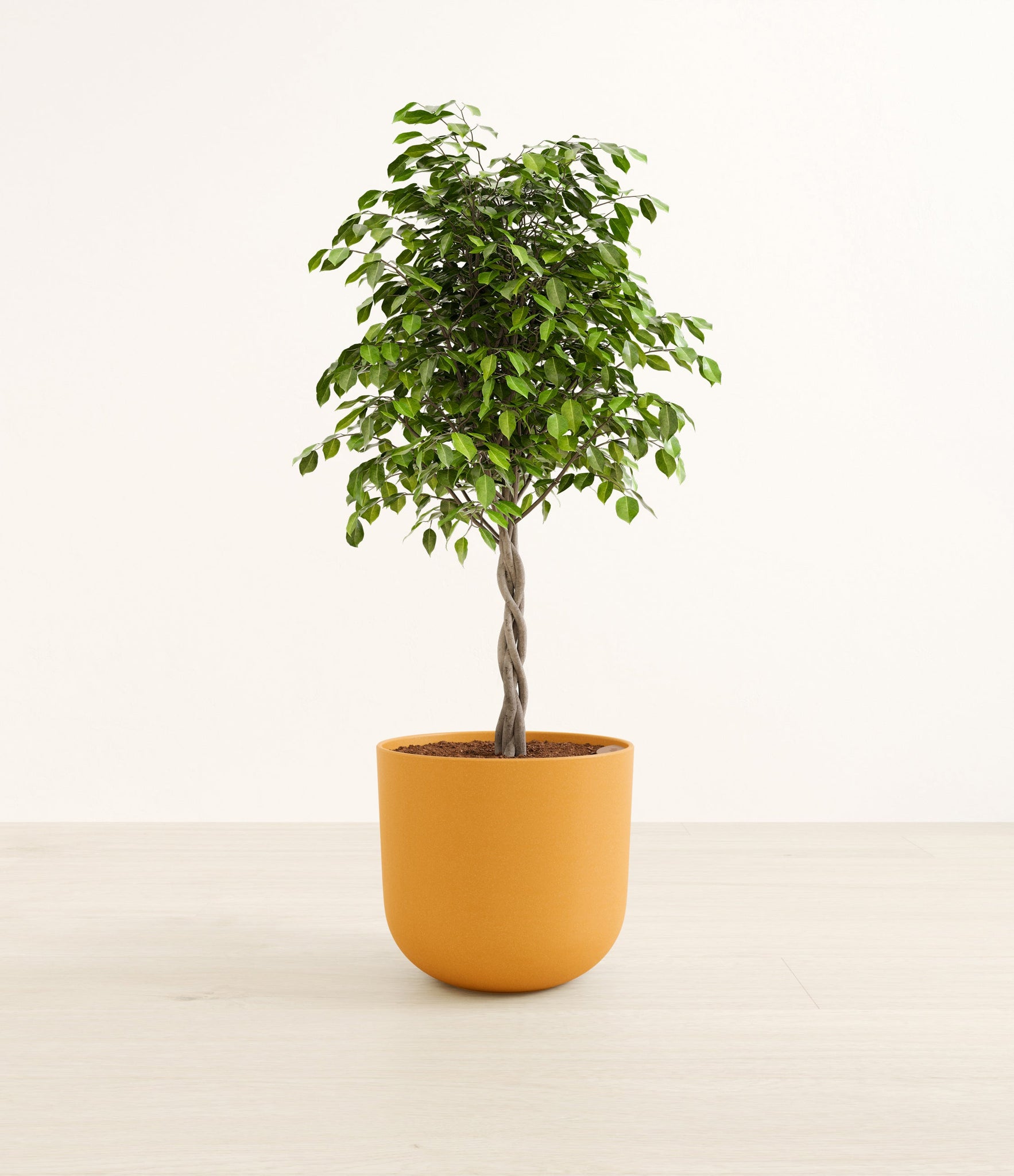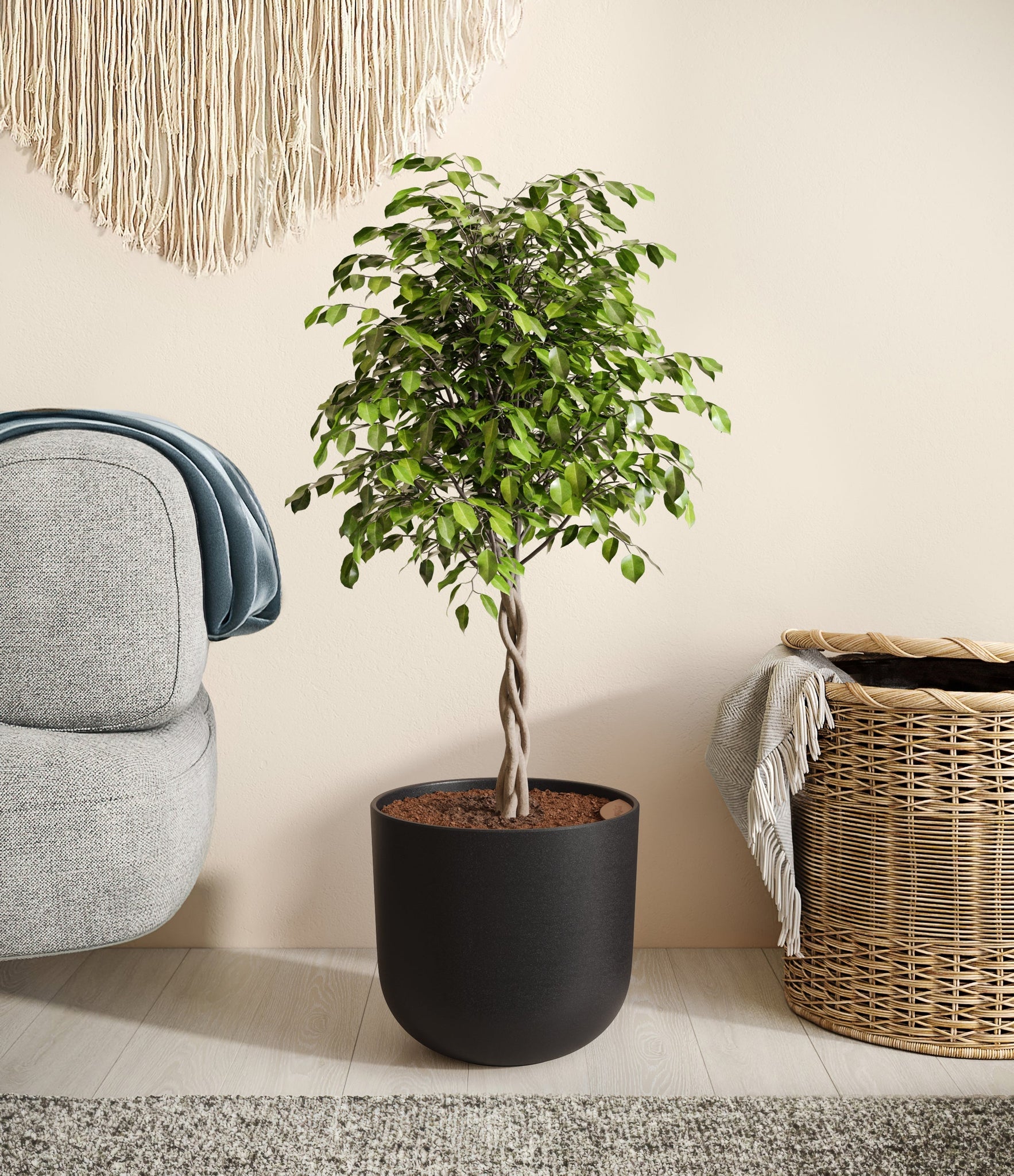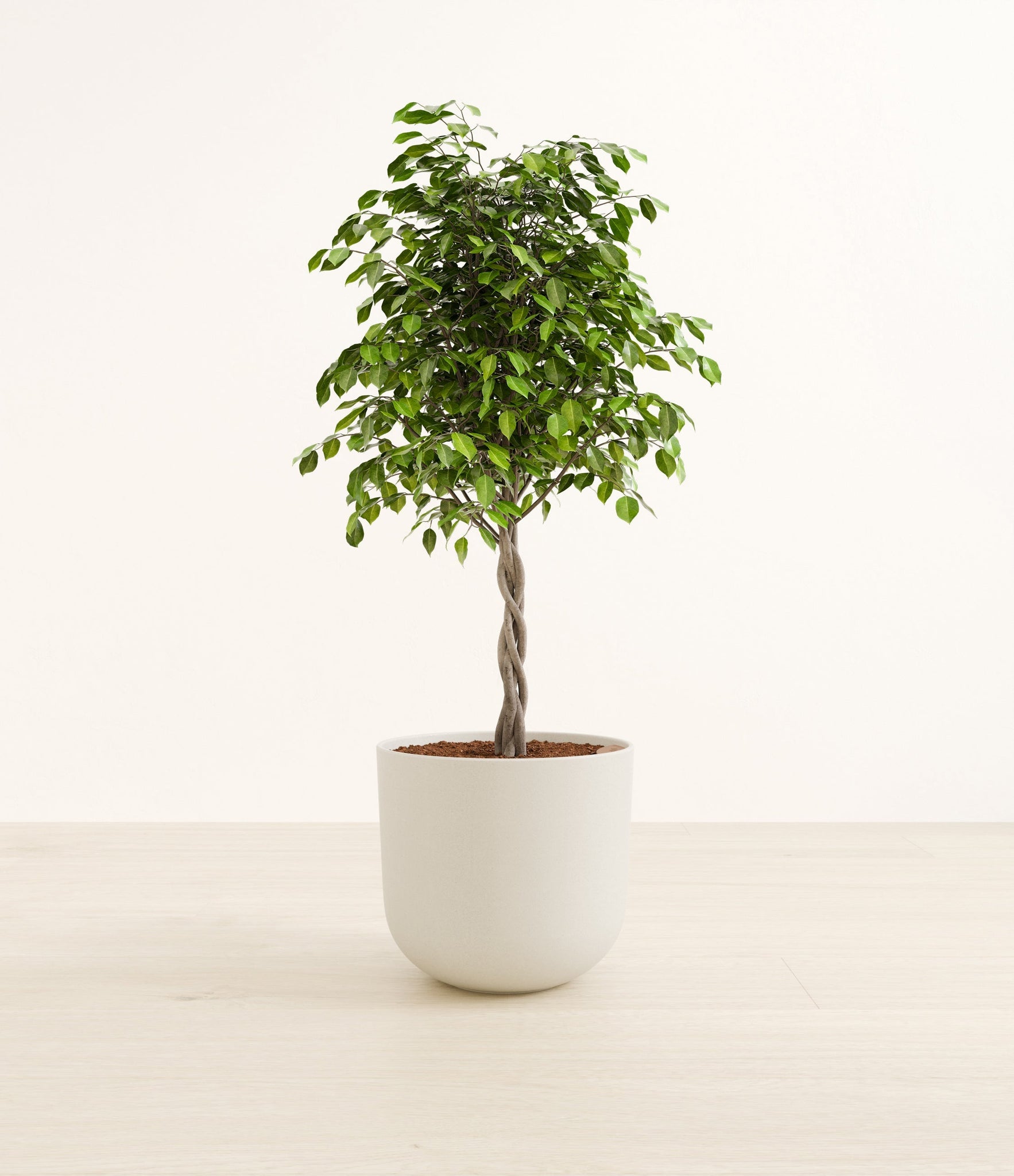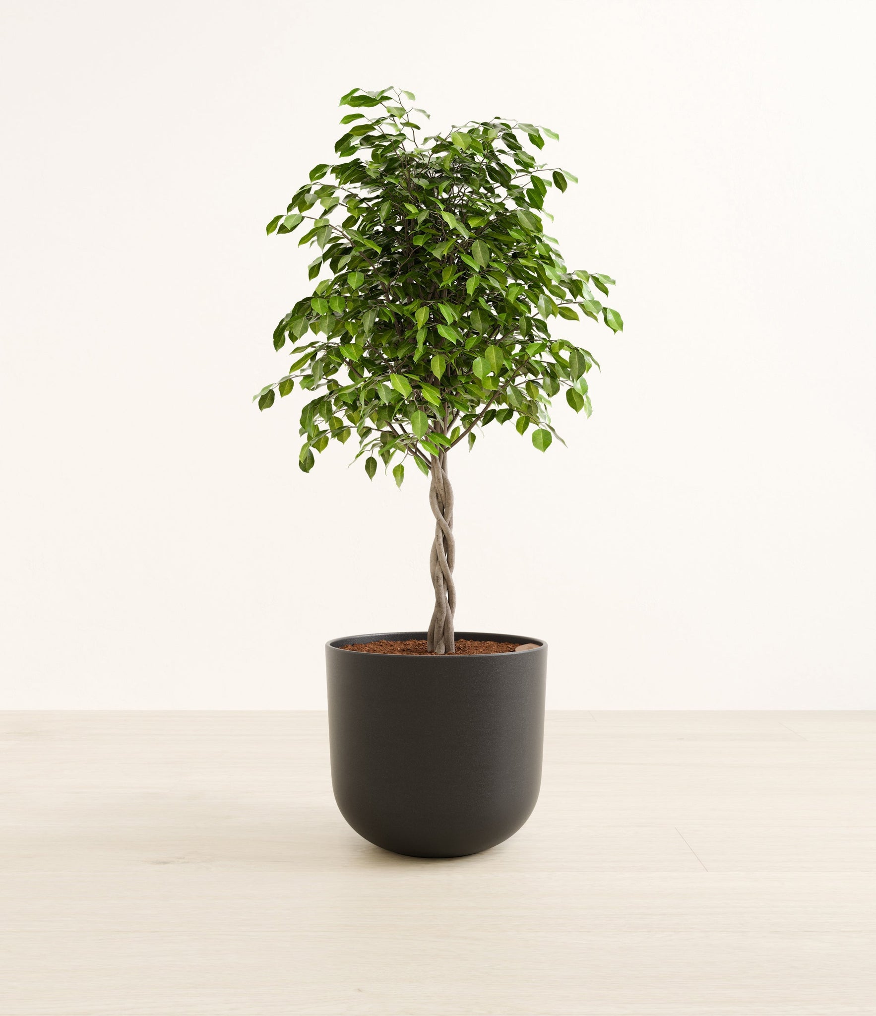 Native to the lush rainforests of Asia and Australia, Ficus Benjamina, also known as the Weeping Fig, is a popular choice for both homes and offices. Its arching branches and glossy, dense leaves create a visually soothing presence that gracefully enhances any space. Renowned not only for its aesthetic appeal but also for its air-purifying capabilities, the Weeping Fig embodies a blend of natural beauty and practicality. This plant offers a touch of tranquility and improves indoor air quality, making it an ideal addition for those seeking a serene yet low-maintenance indoor companion.