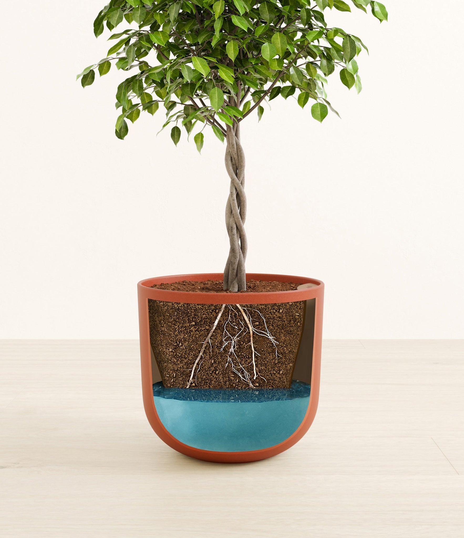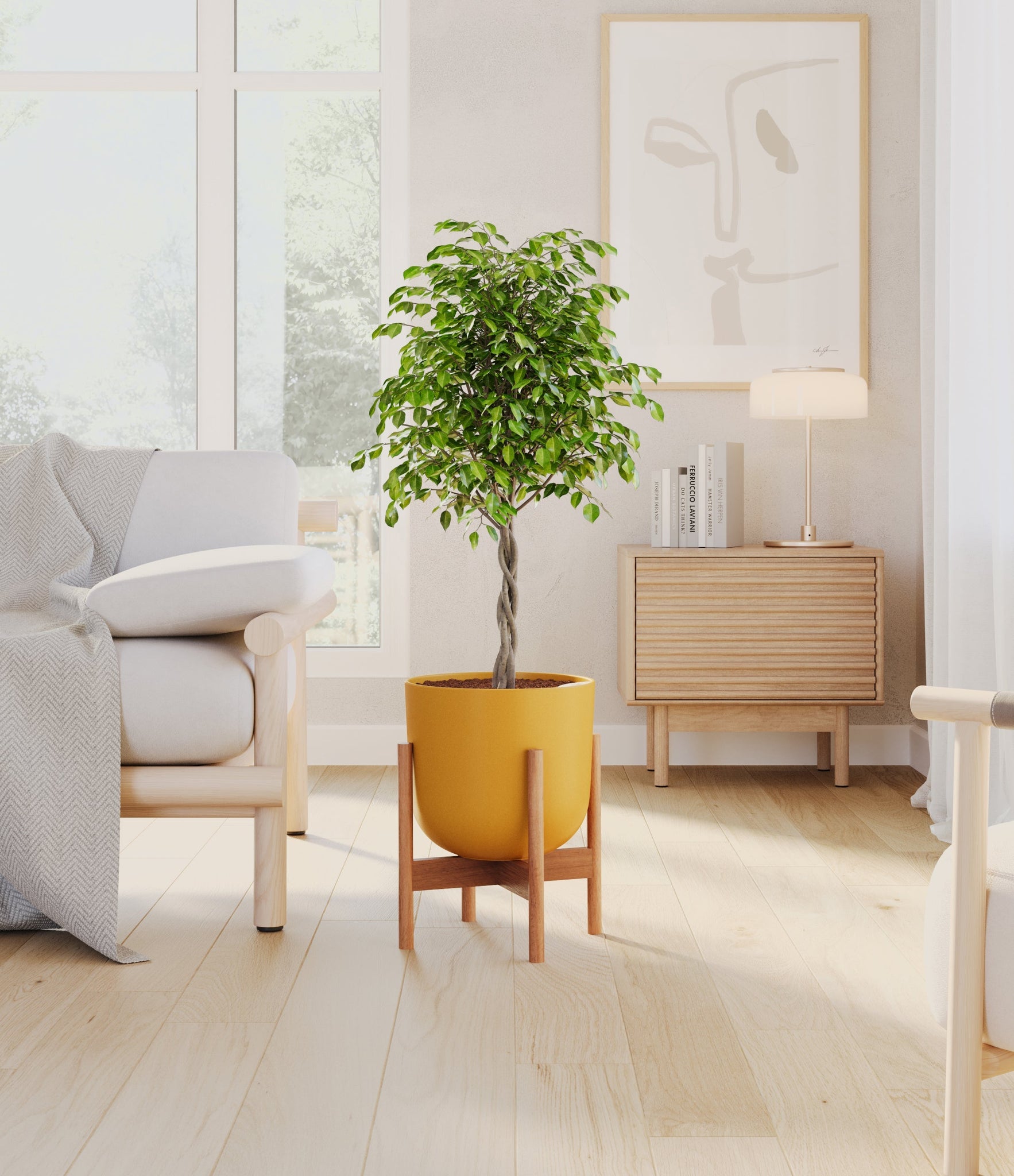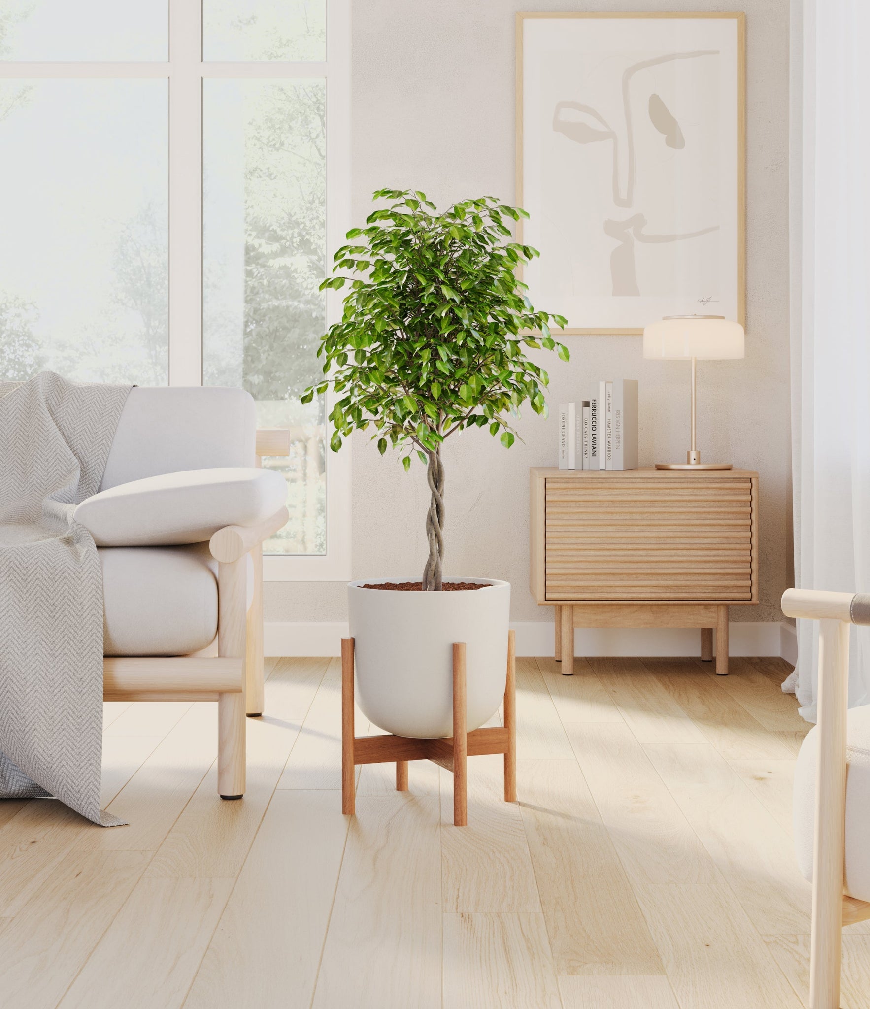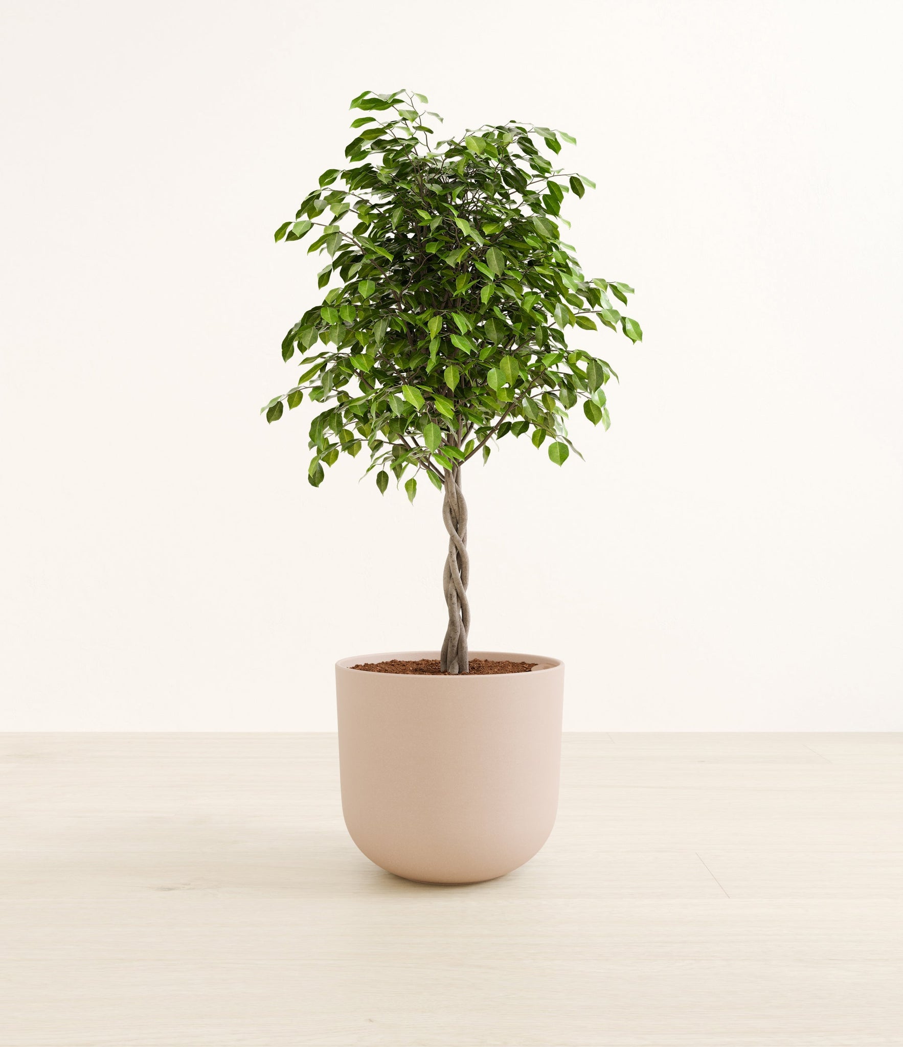 Native to the lush rainforests of Asia and Australia, Ficus Benjamina, also known as the Weeping Fig, is a popular choice for both homes and offices. Its arching branches and glossy, dense leaves create a visually soothing presence that gracefully enhances any space. Renowned not only for its aesthetic appeal but also for its air-purifying capabilities, the Weeping Fig embodies a blend of natural beauty and practicality. This plant offers a touch of tranquility and improves indoor air quality, making it an ideal addition for those seeking a serene yet low-maintenance indoor companion.
