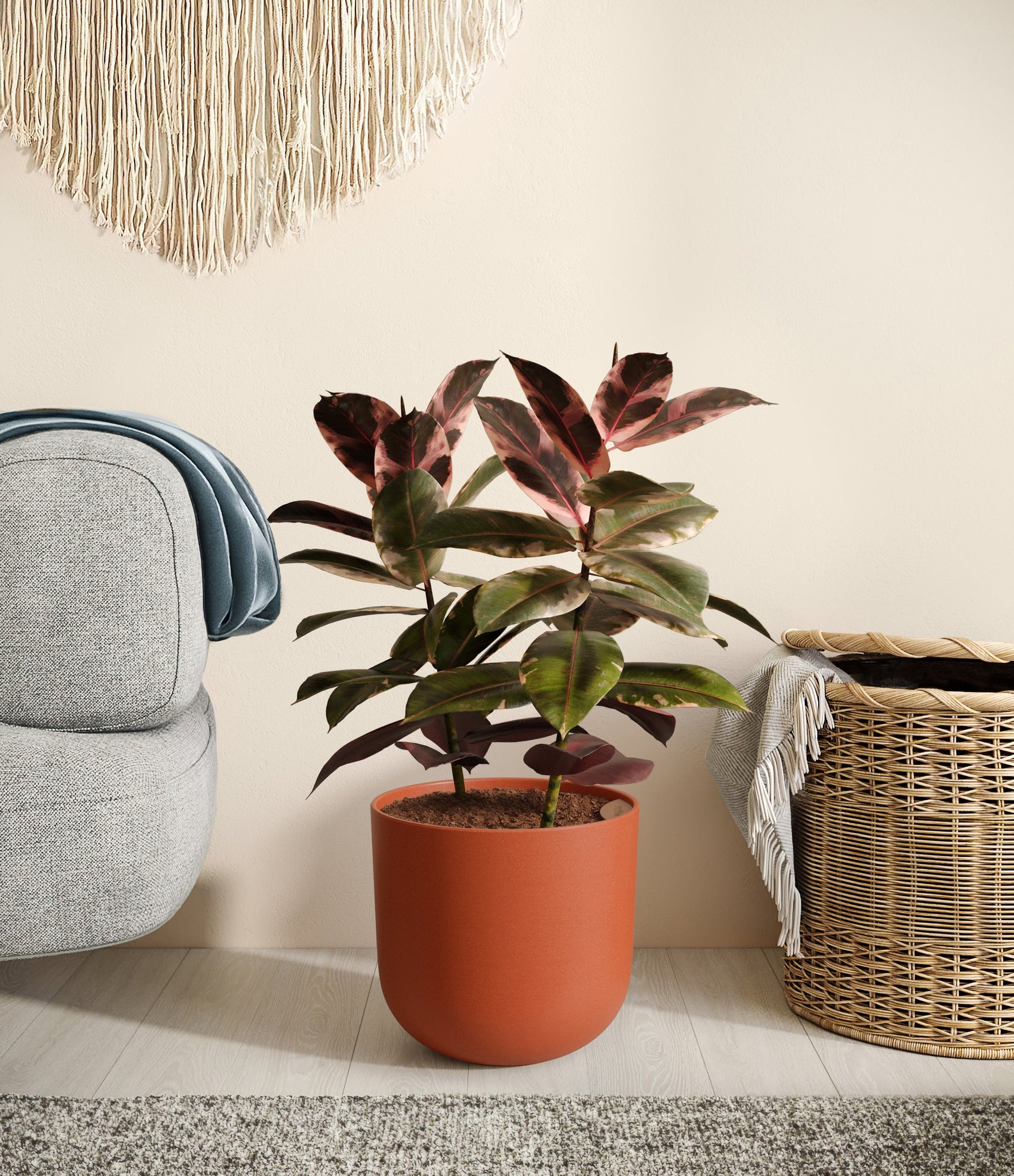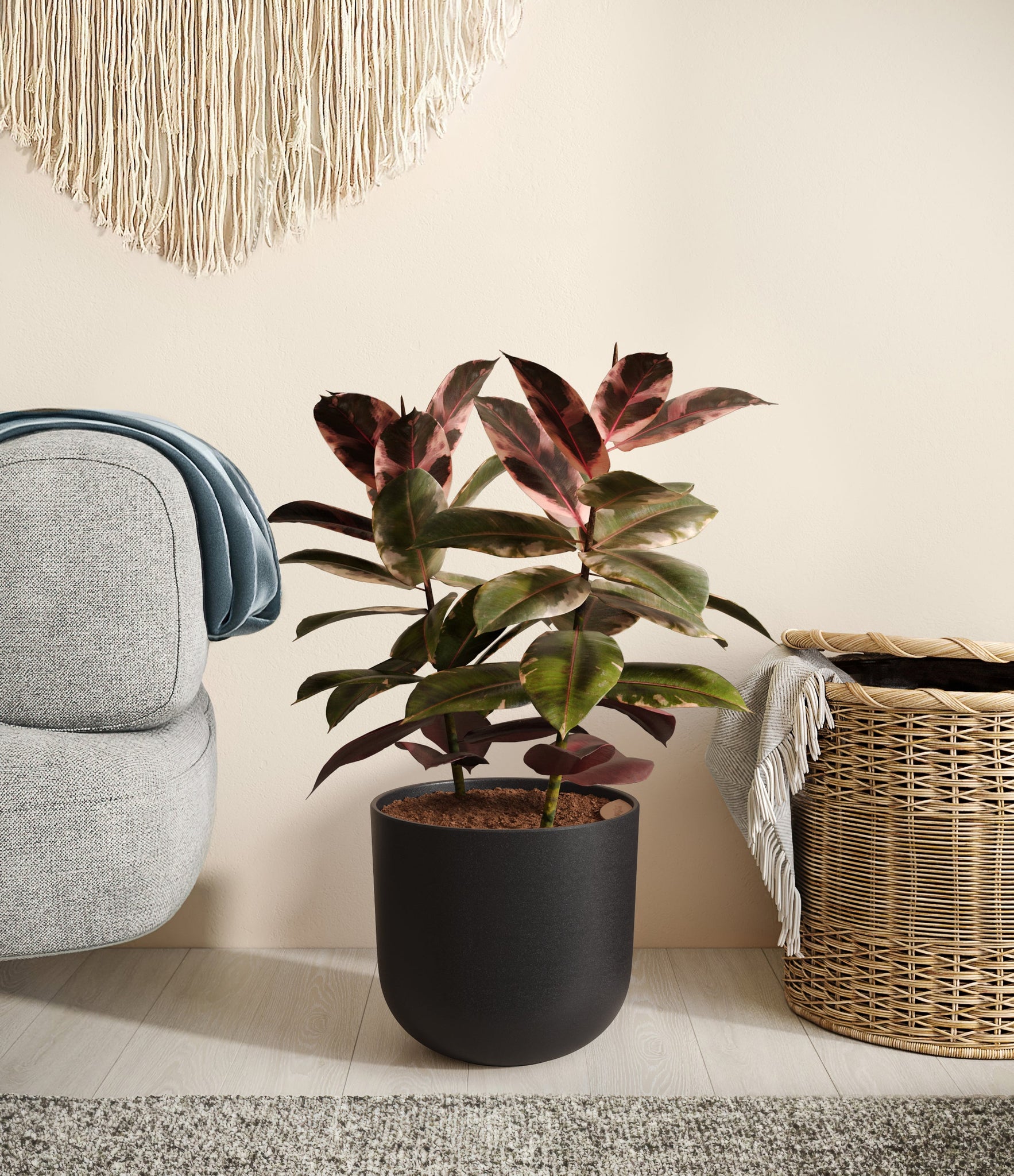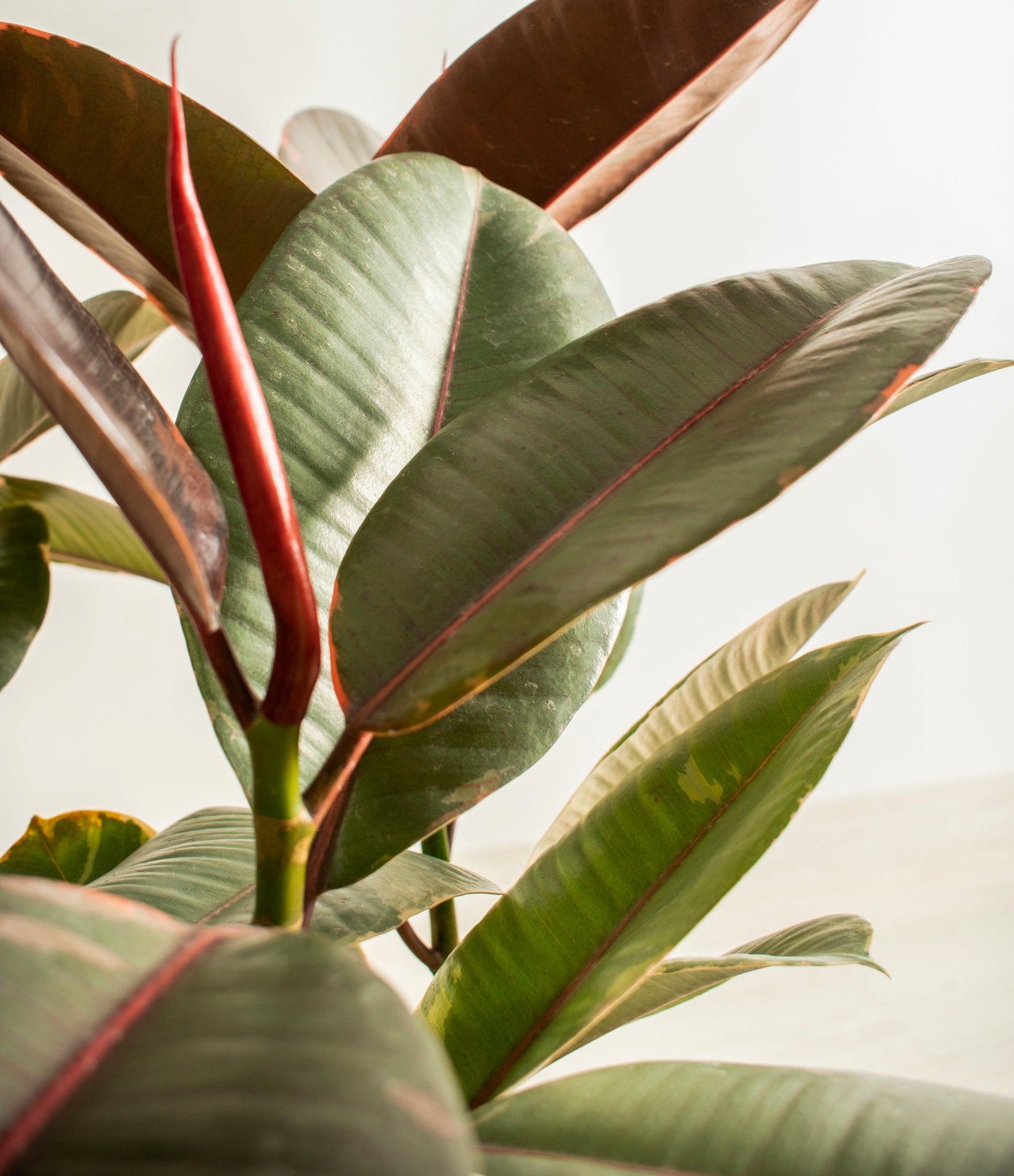 Native to the tropical zones of Malaysia and India, the Ficus Ruby thrives in warm, humid environments, so be sure to keep it somewhere cozy to make it feel at home.